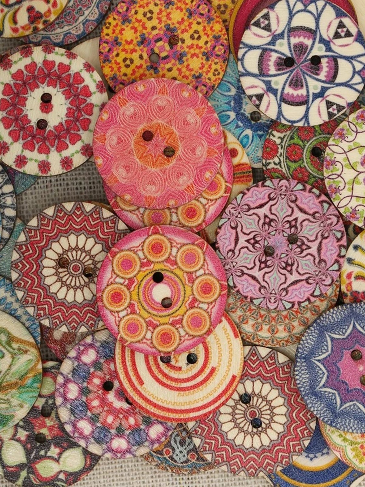 50 pieces of 25mm multicolor wooden buttons round sewing buttons for DIY woven bags, hats and decorations