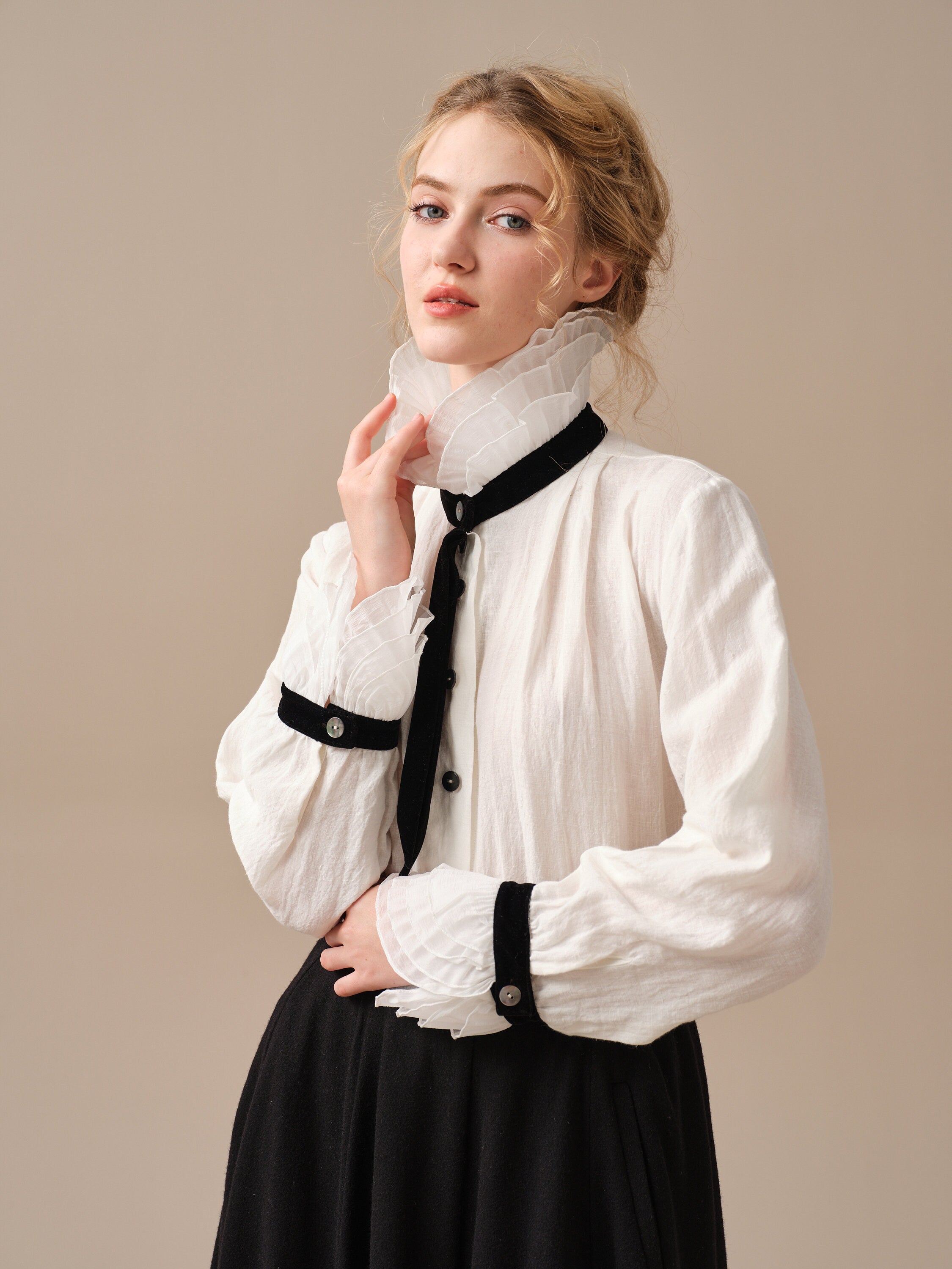 FELICIA 12 | Ruffled White Linen Shirt