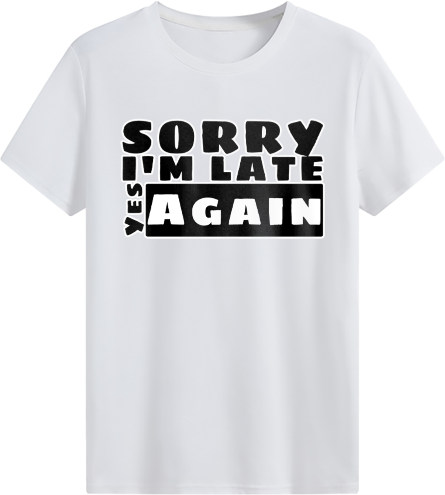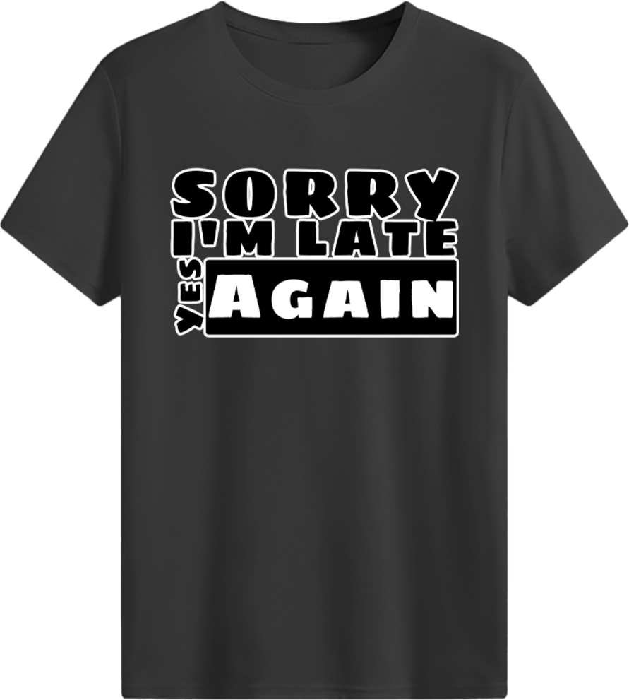 • Sorry I'm late. YES. Again. T-shirt
