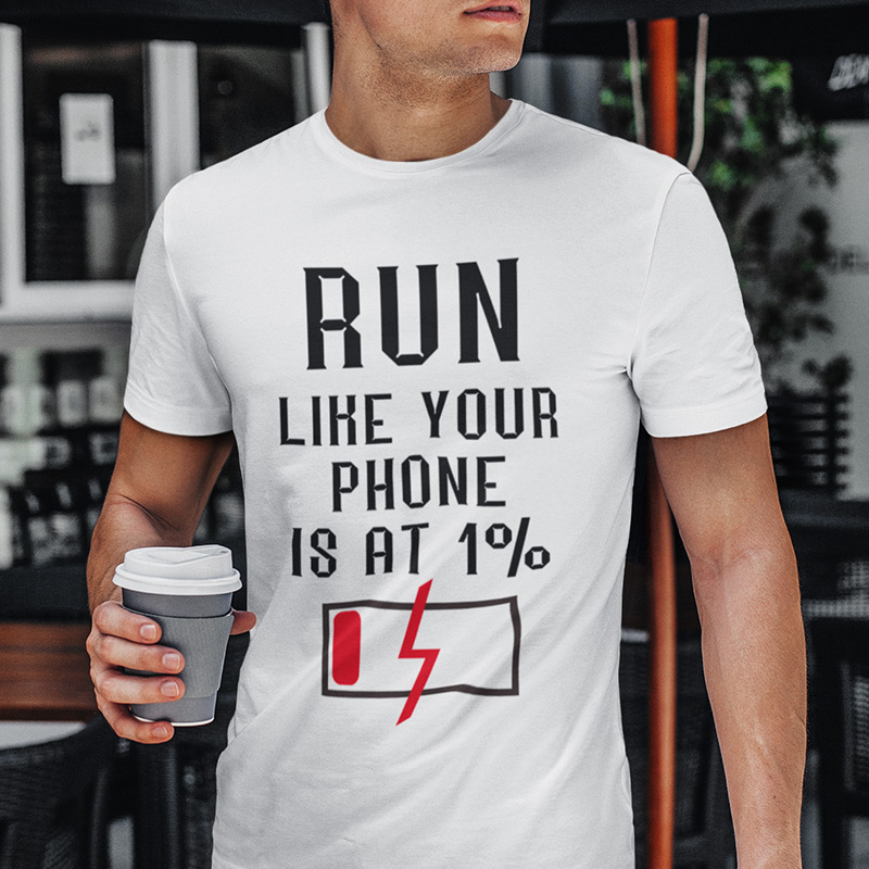 RUN LIKE YOUR PHONE IS AT 1% T-shirt