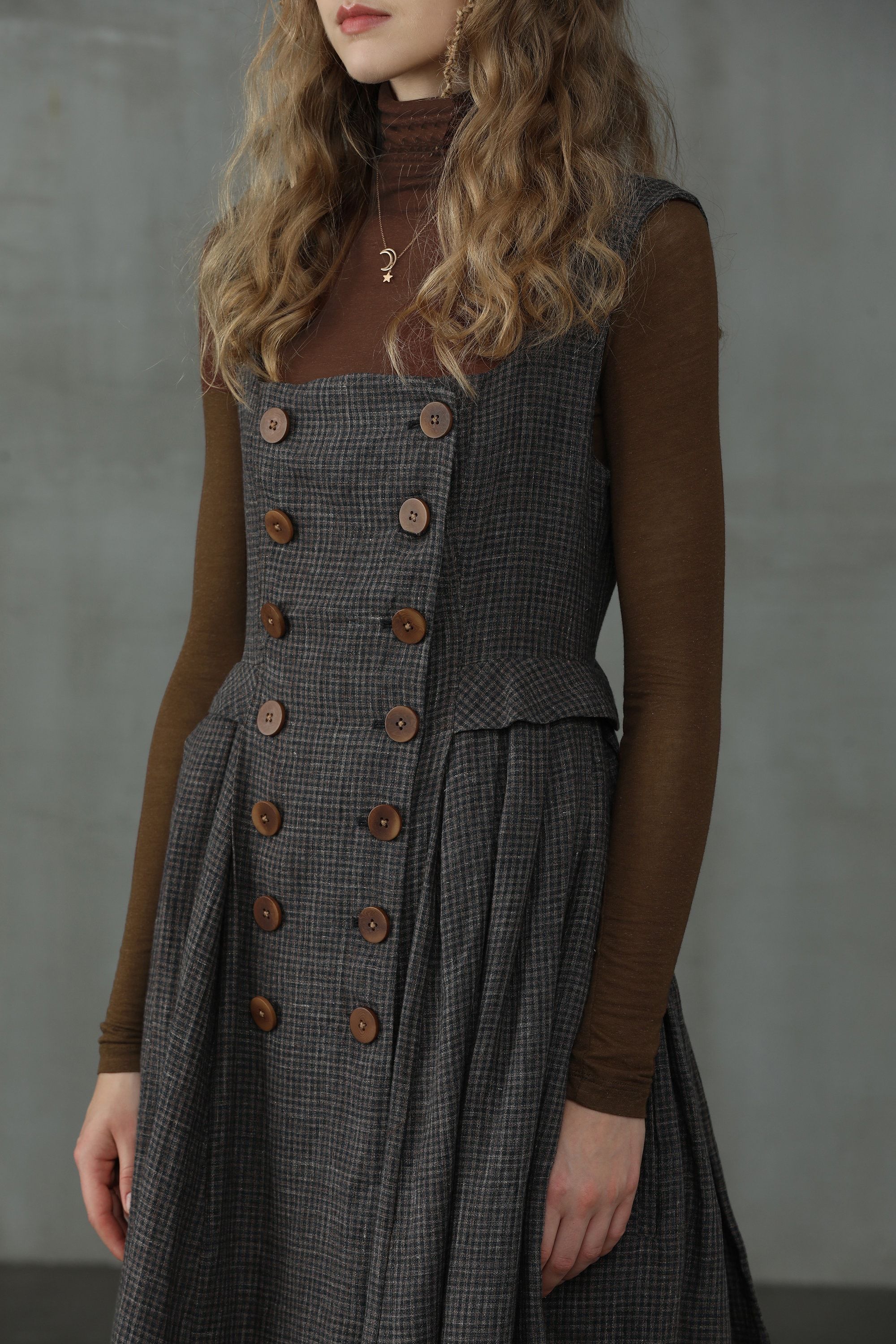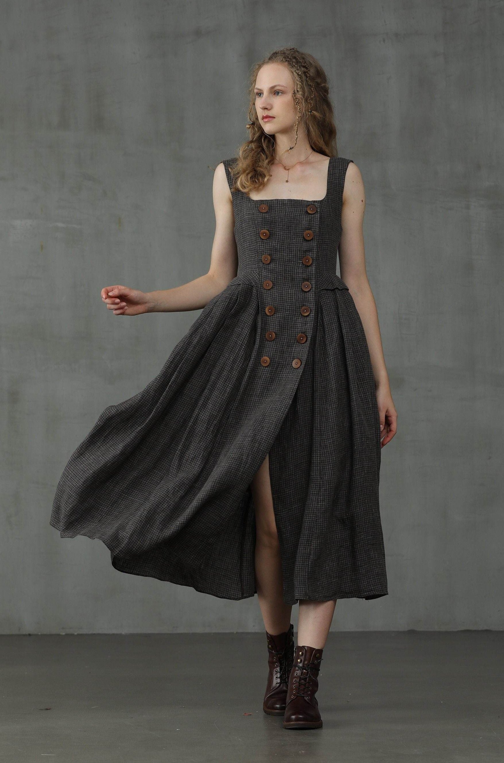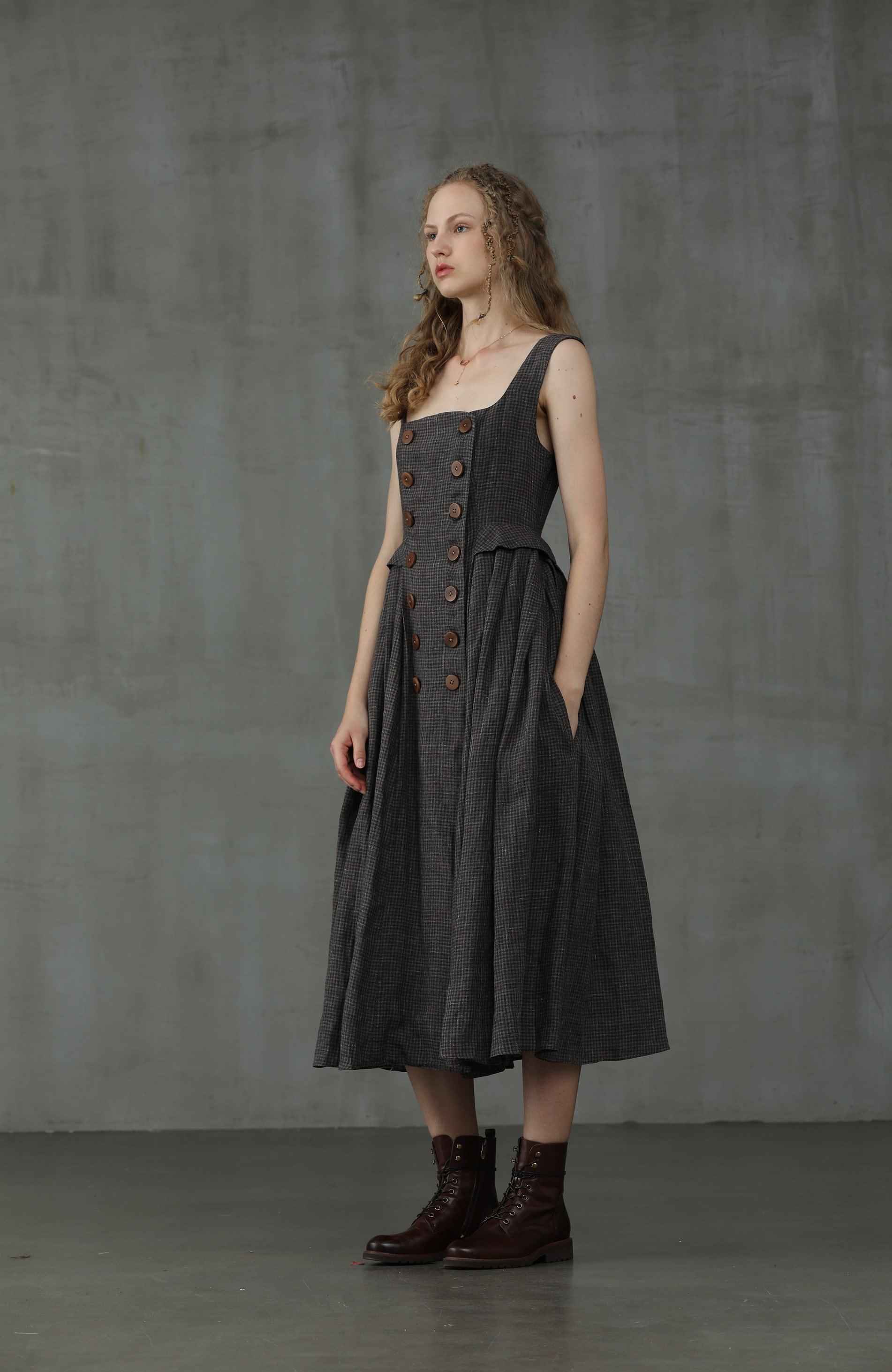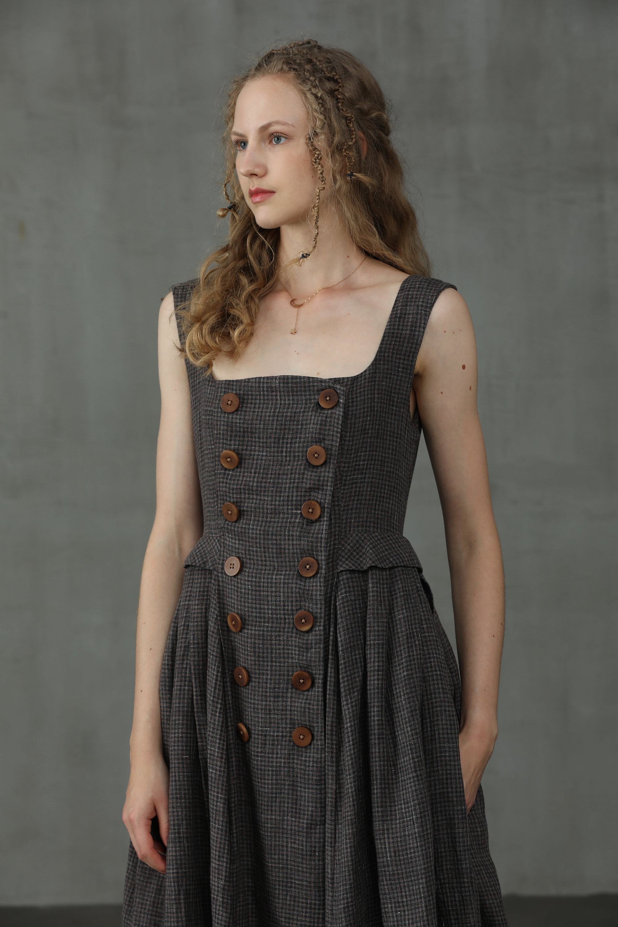 This linen check pinafore dress from Linennaive is sure to make everyone do a double-take once you enter the room.