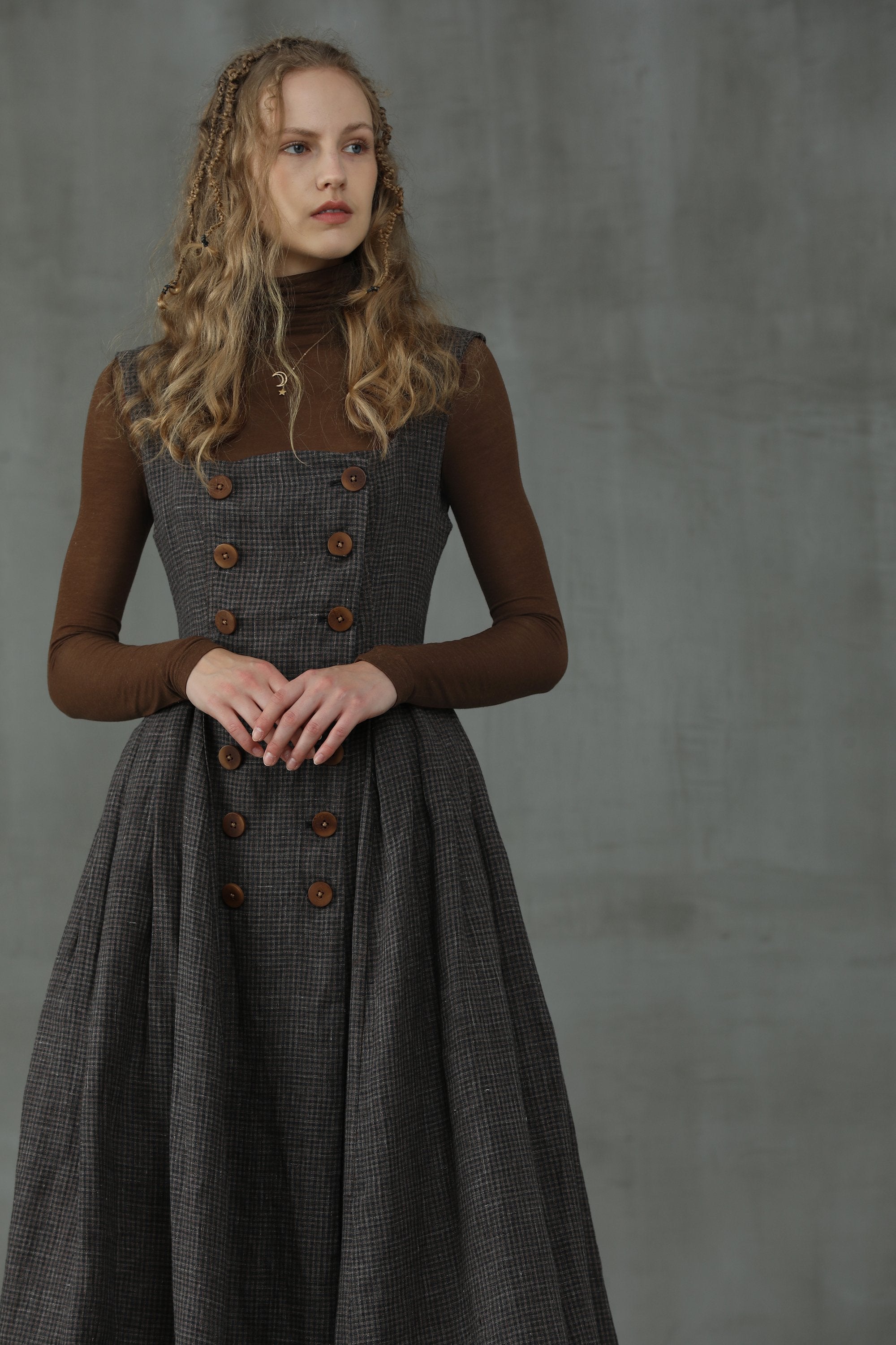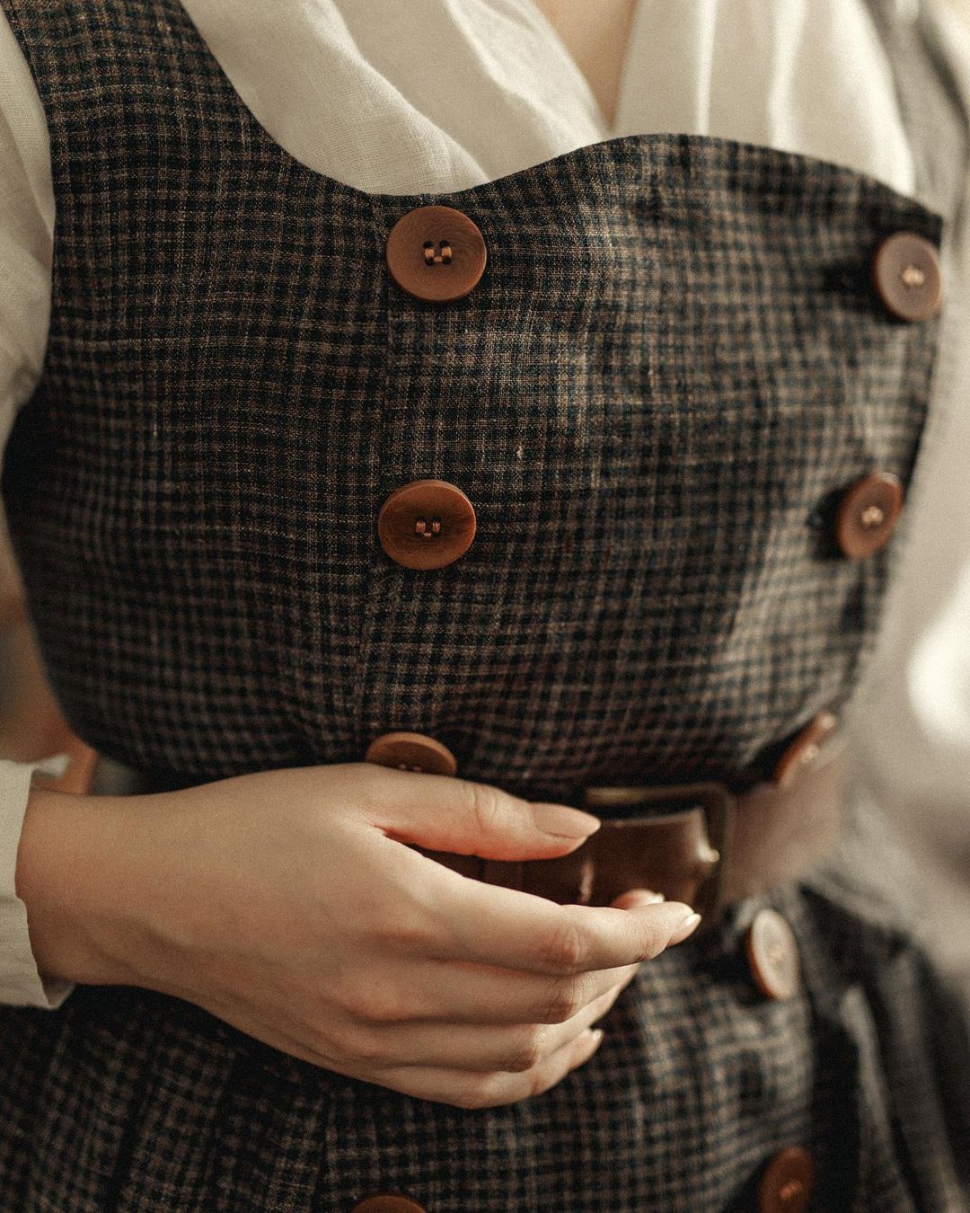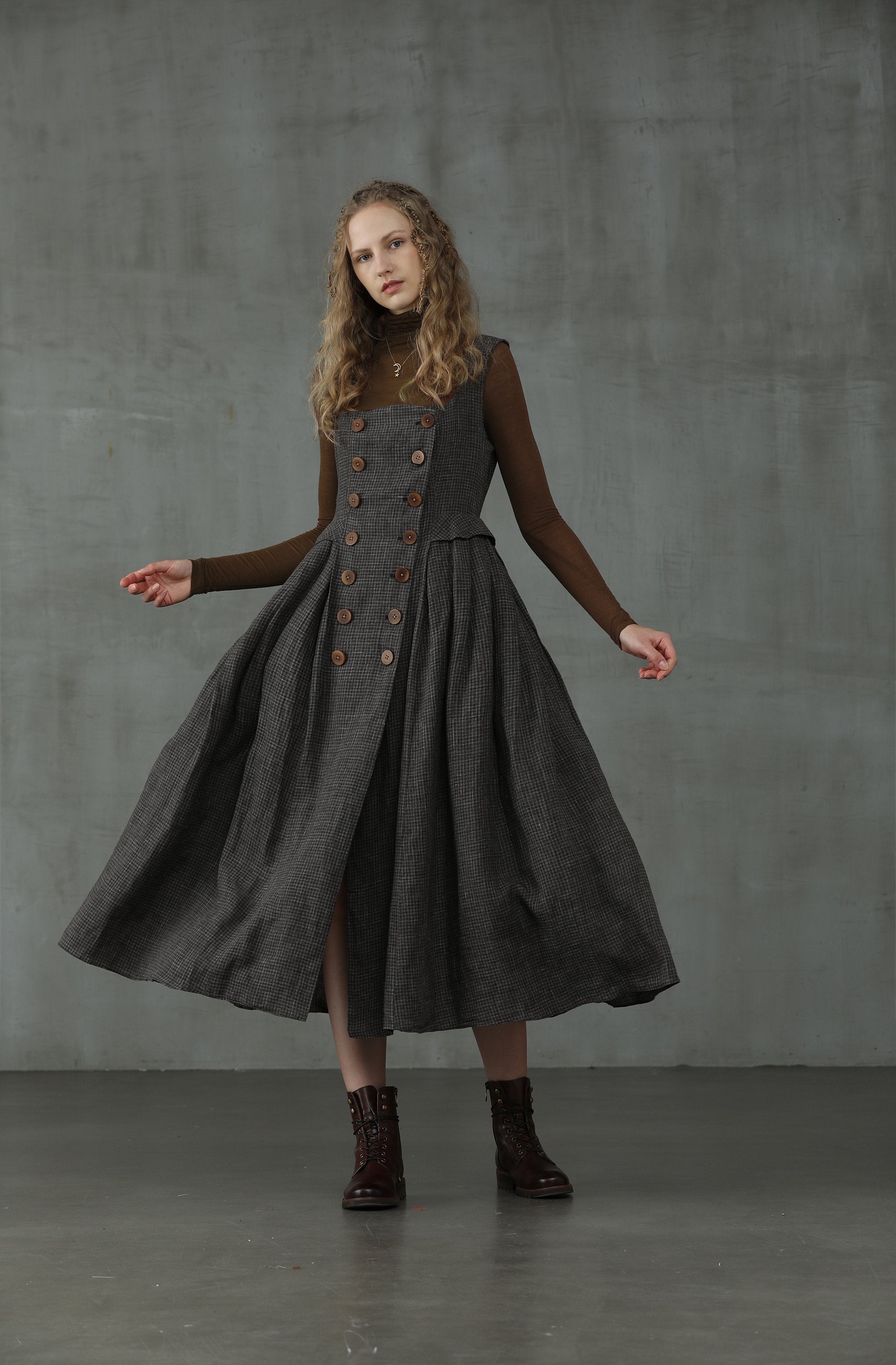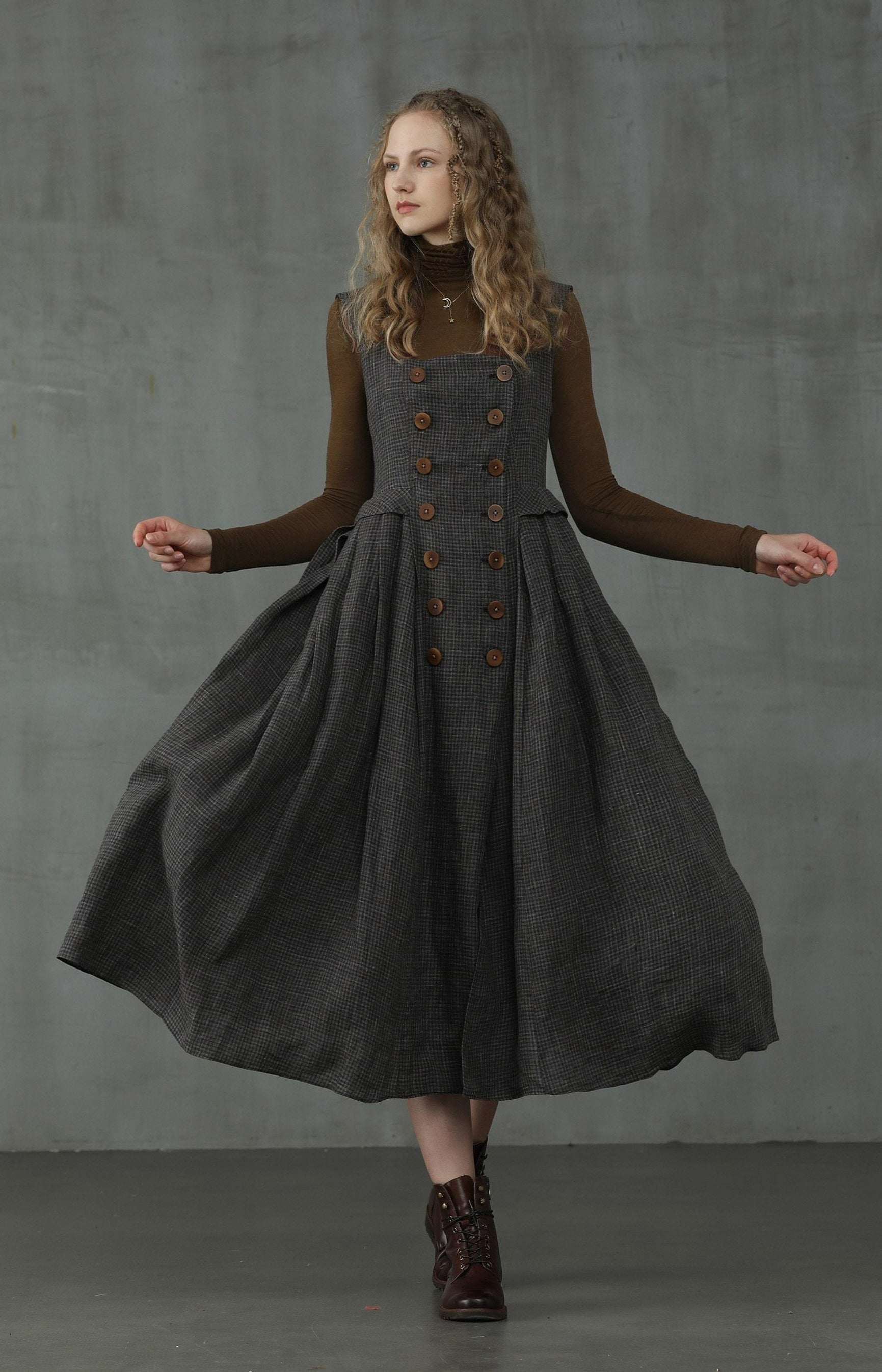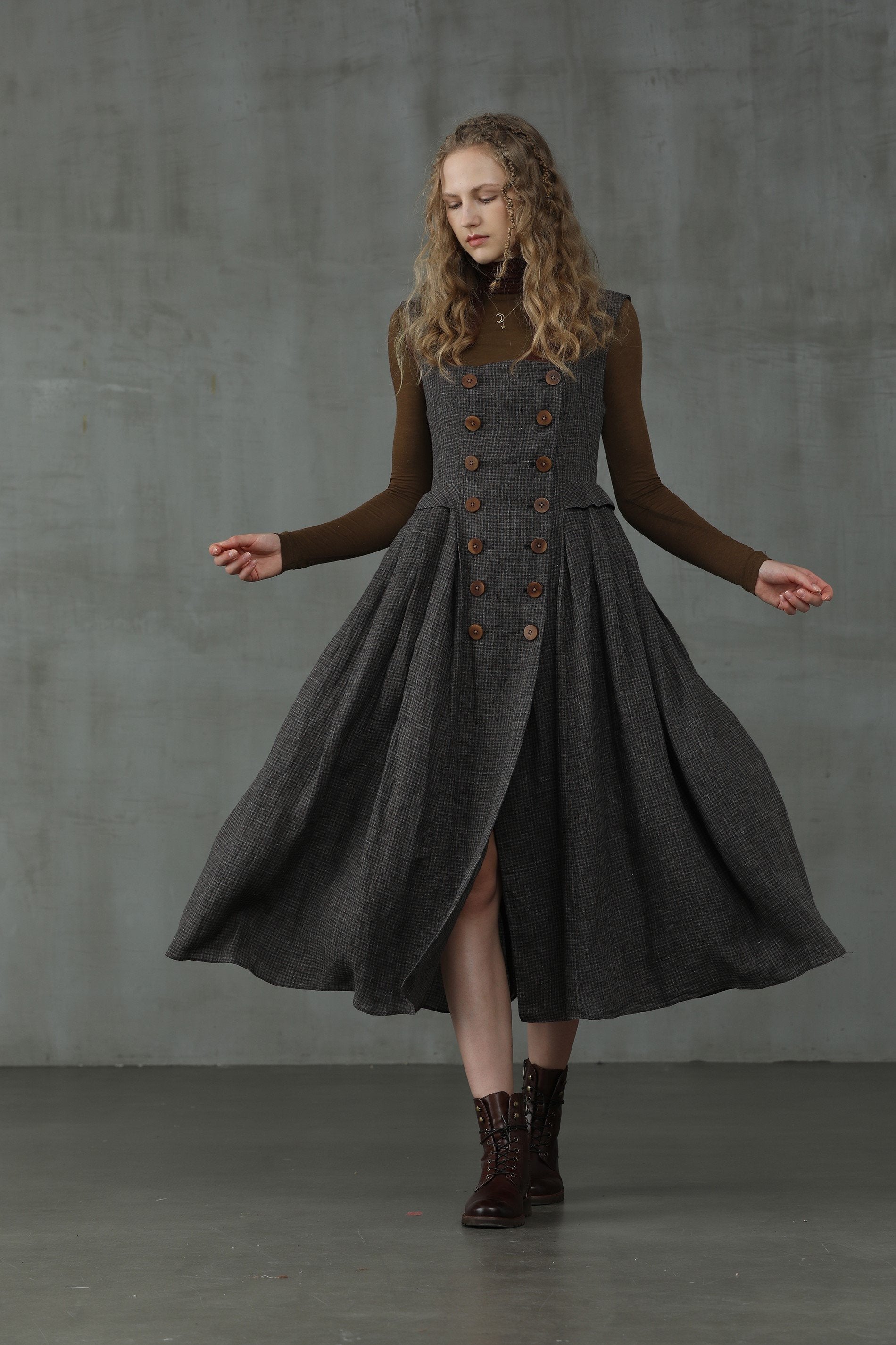 This linen check pinafore dress from Linennaive is sure to make everyone do a double-take once you enter the room.