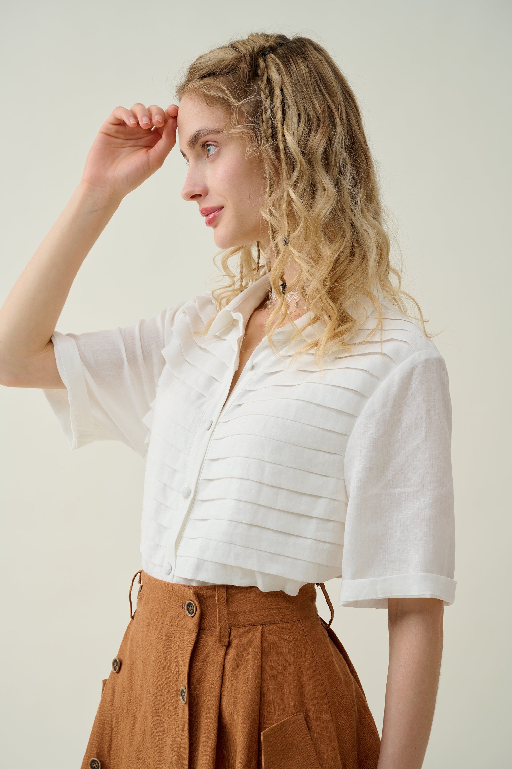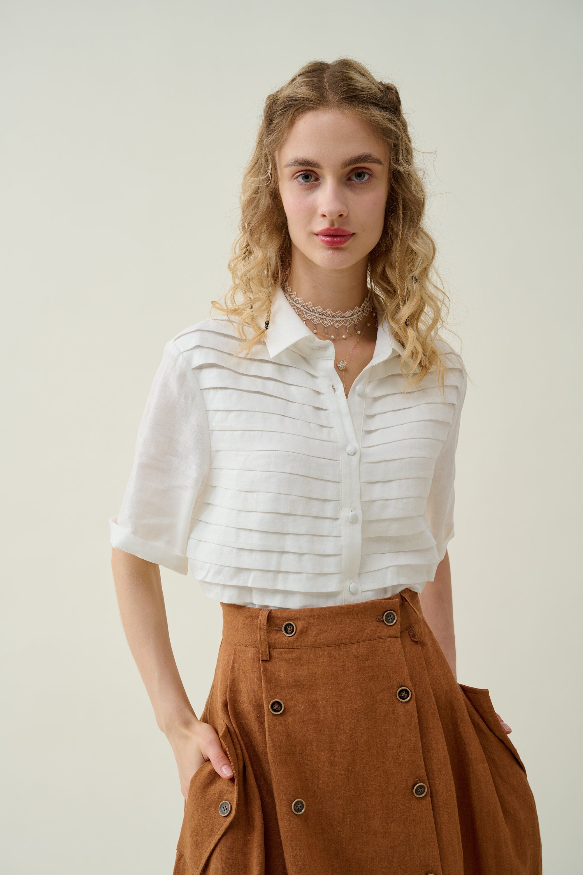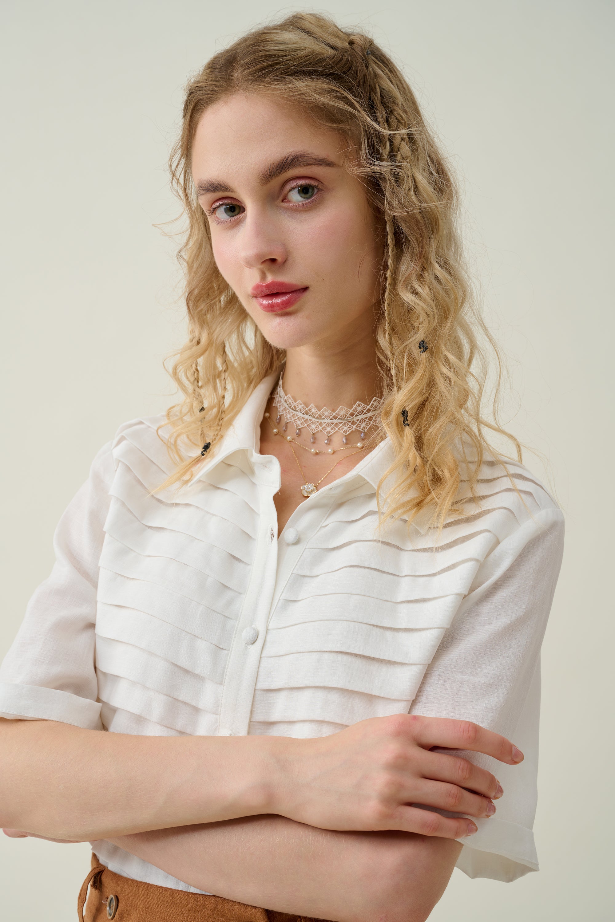 Linennaive combines timeless glamour with spring-summer vibrancy, as echoed in the fluid construction of this white shirt. It features a pleated design that will add a romantic touch to your outfit.