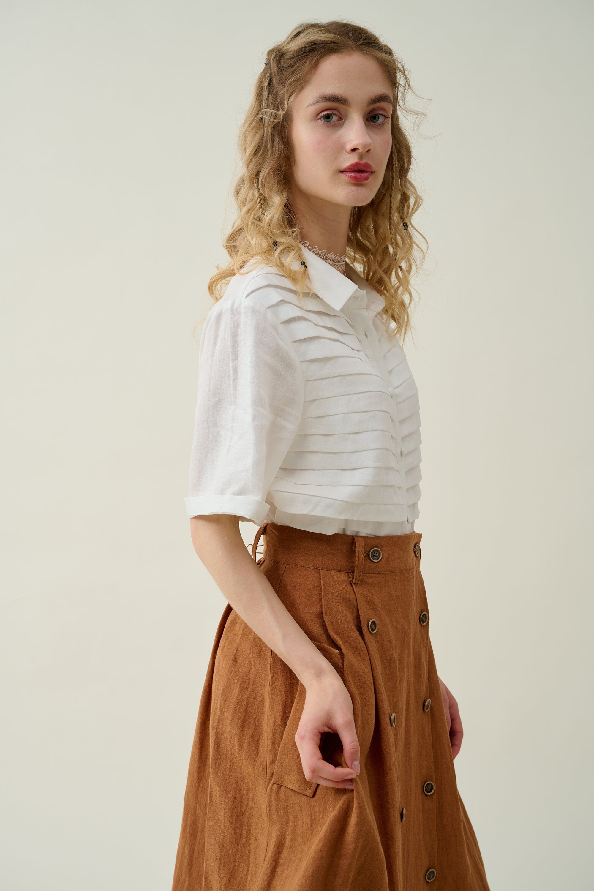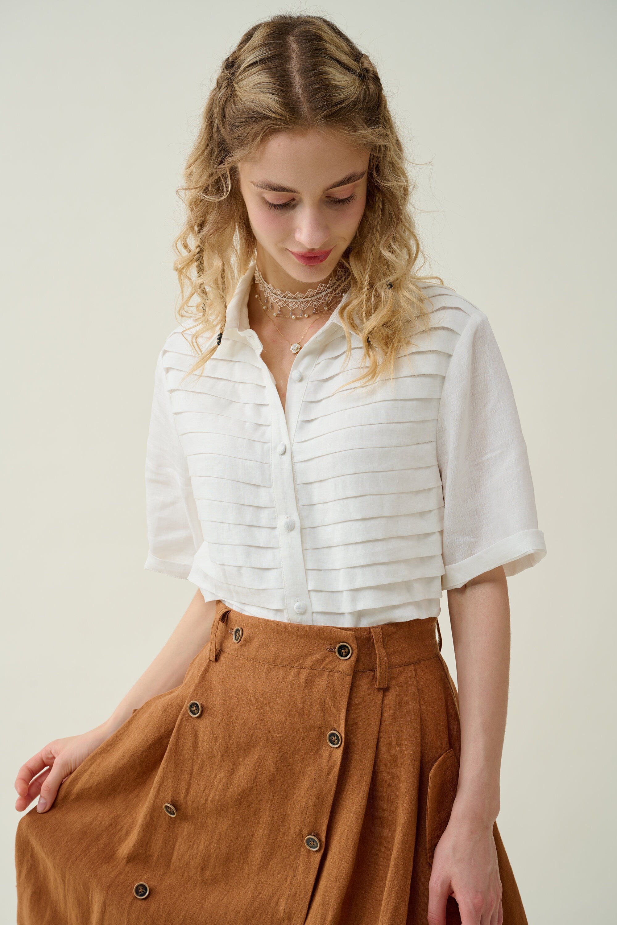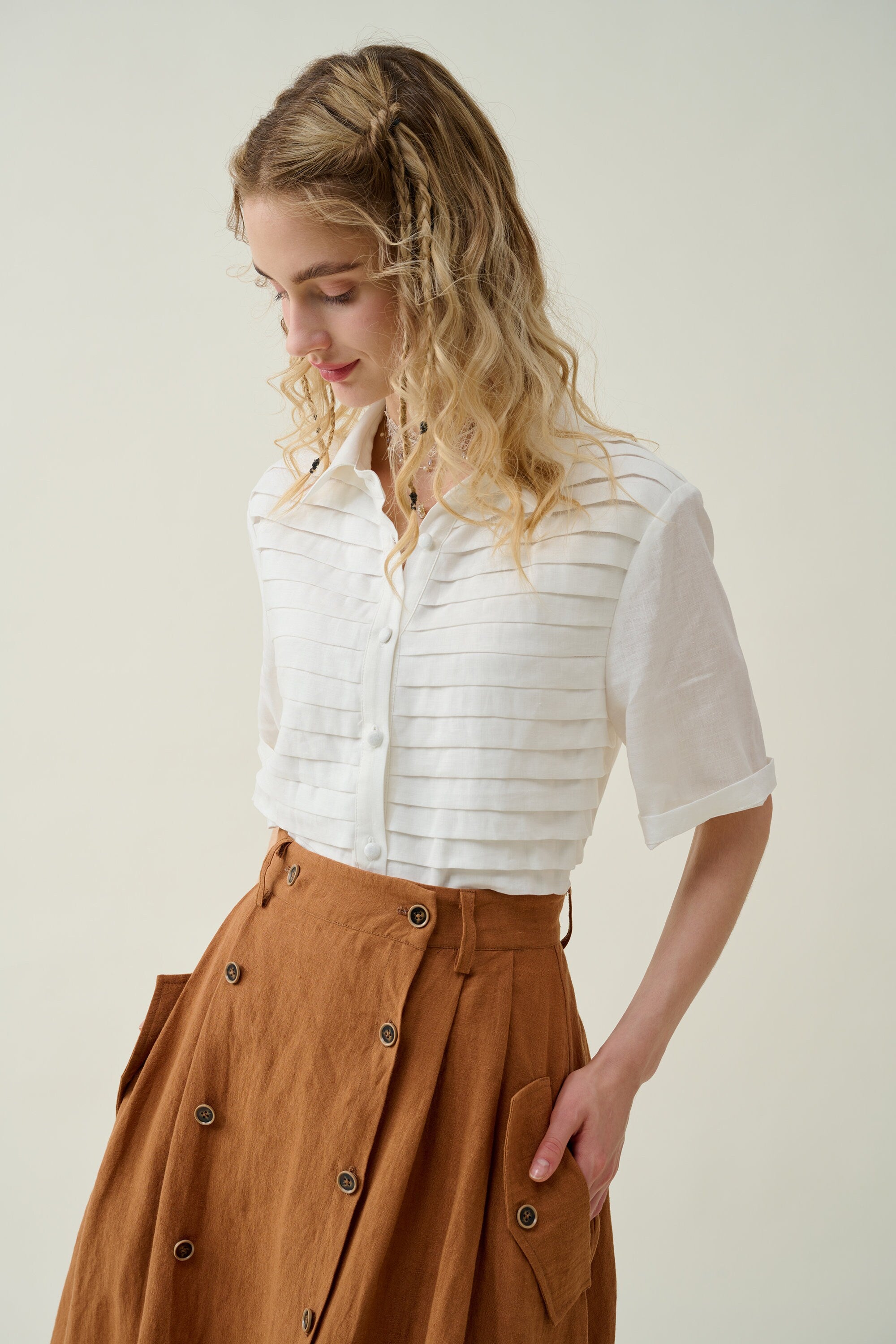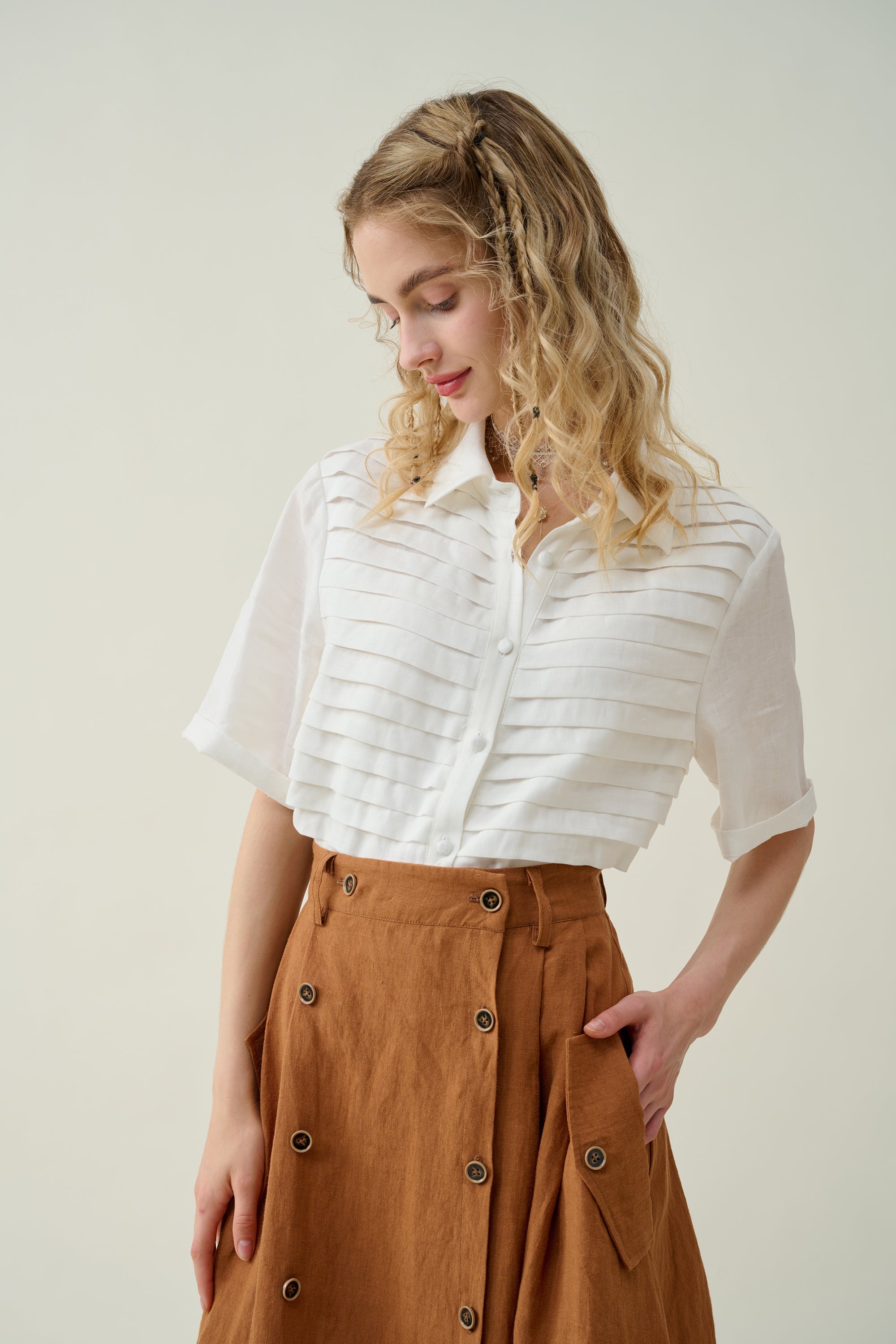 Linennaive combines timeless glamour with spring-summer vibrancy, as echoed in the fluid construction of this white shirt. It features a pleated design that will add a romantic touch to your outfit.