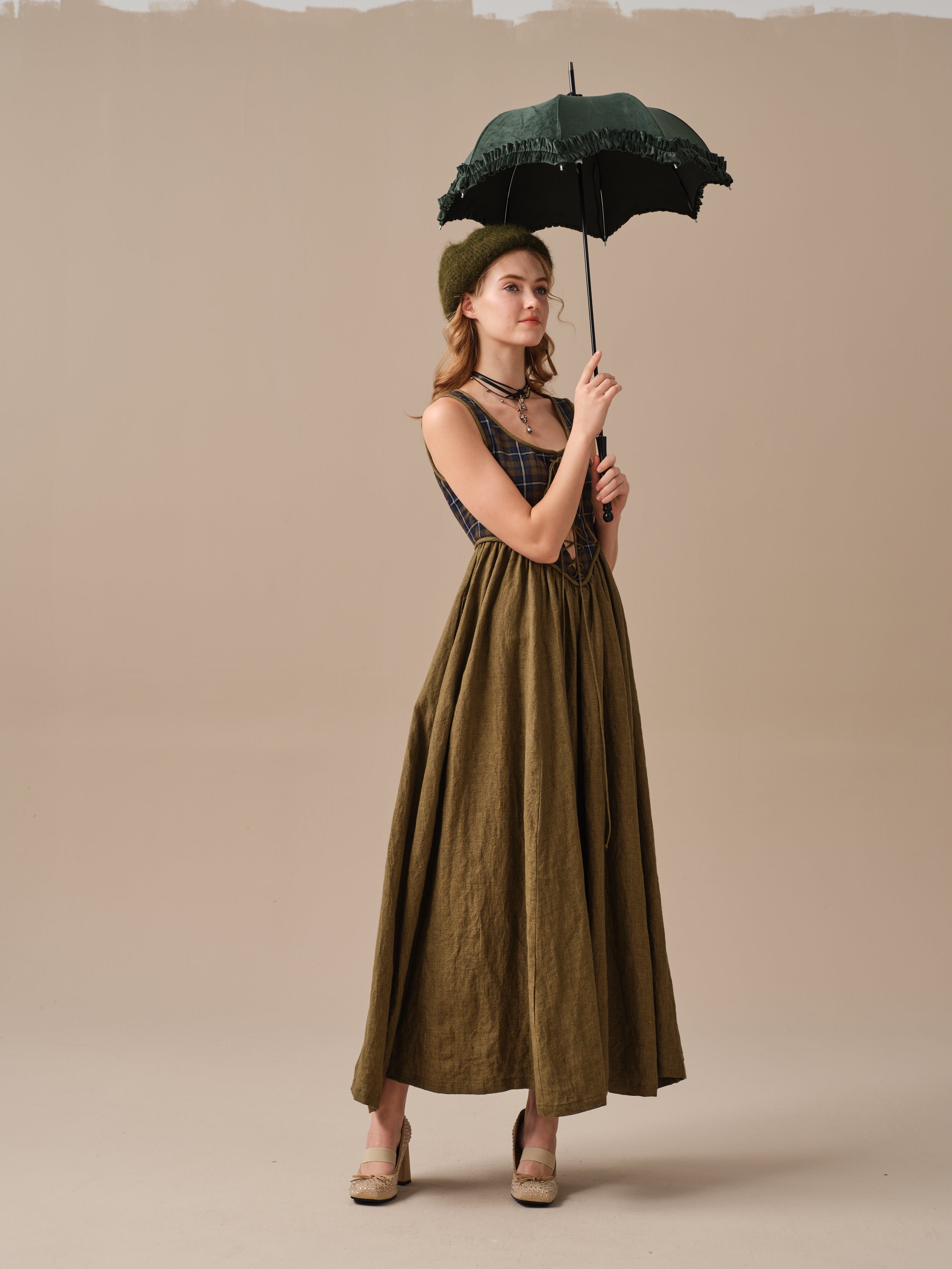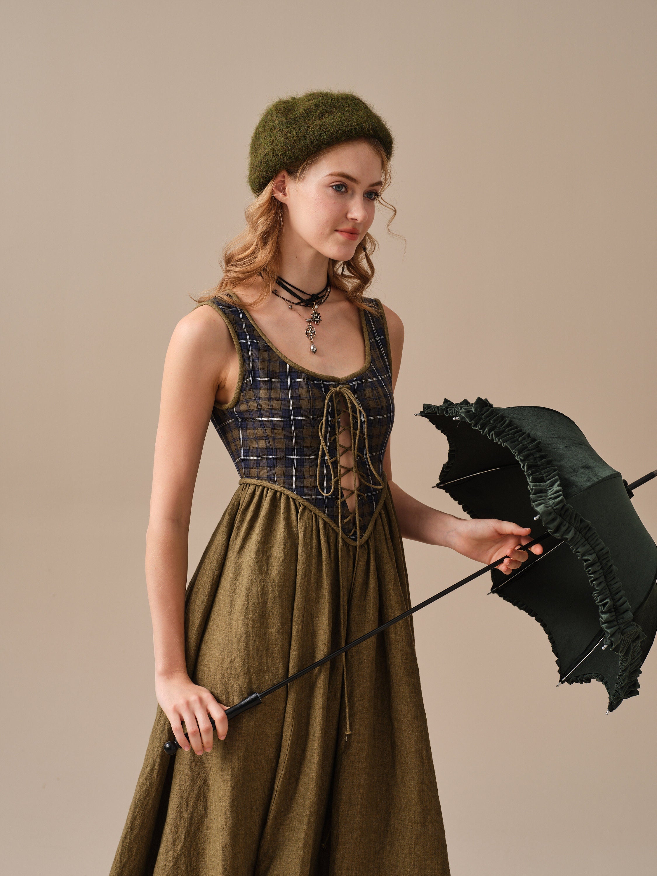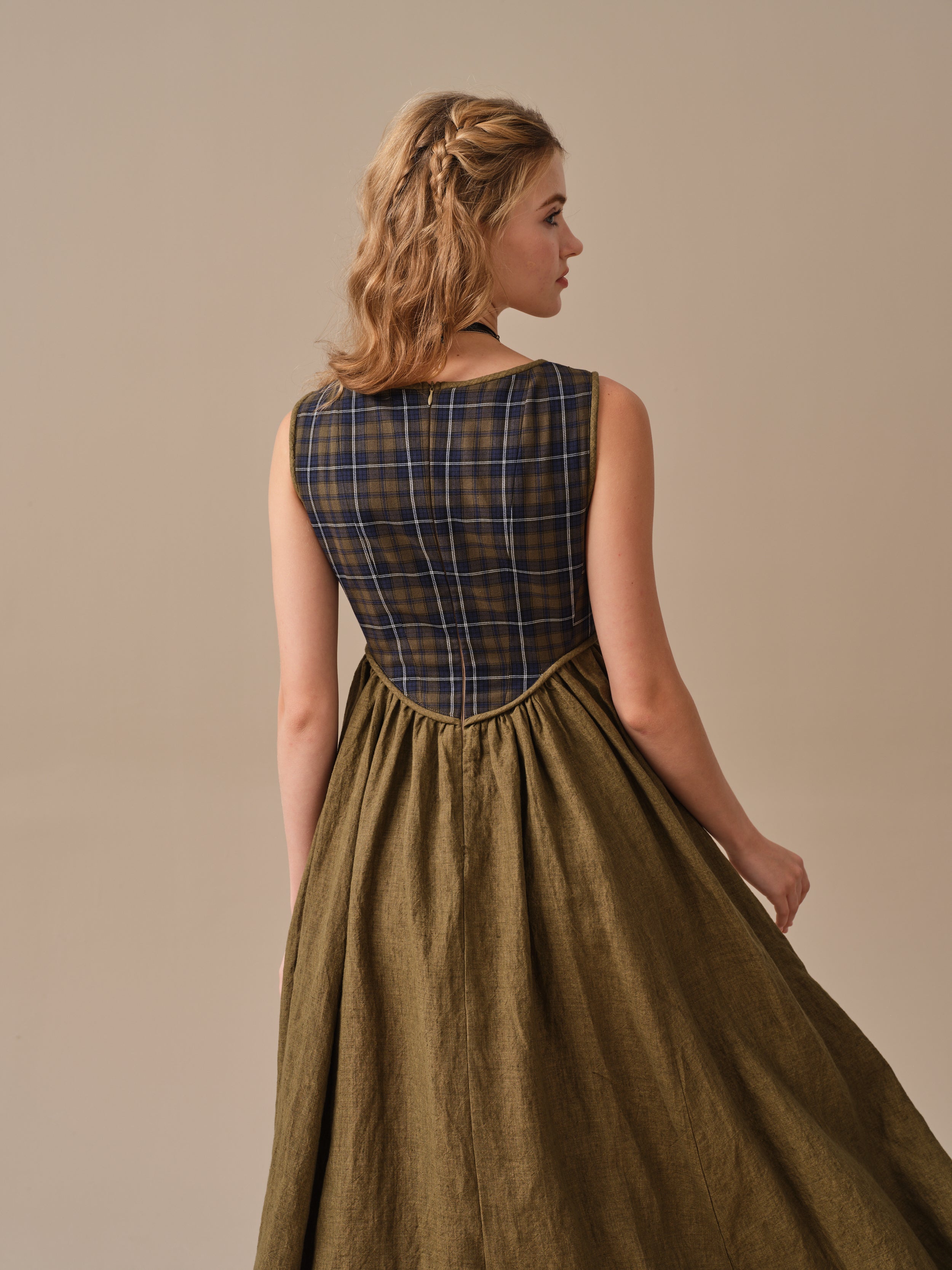 The delicate color weavings and enchanting plaid patterns create a dreamlike aura, transporting you to a world of magic and imagination. Wearing this dress is like stepping into a fairy tale, where elegance meets fantasy.