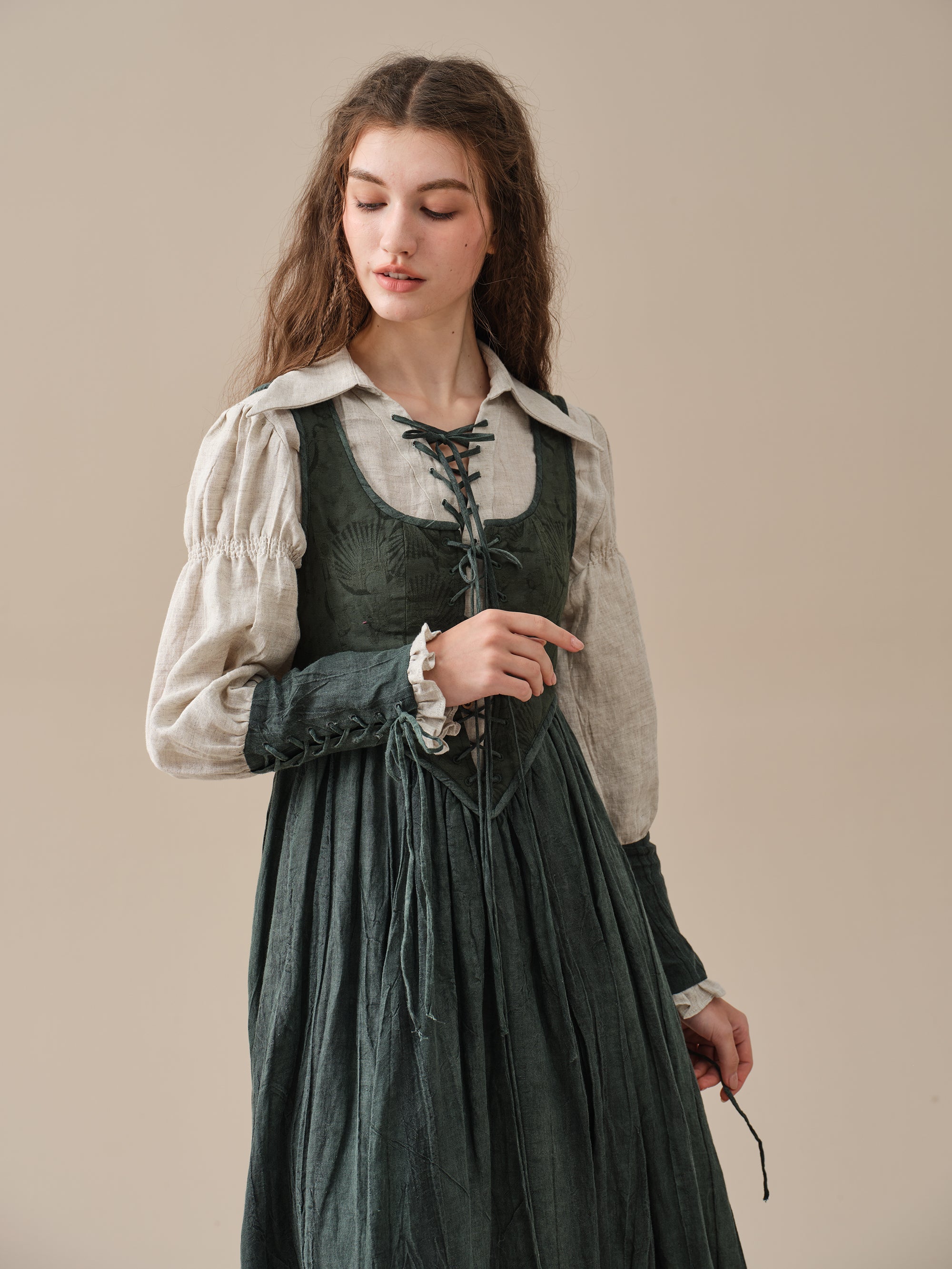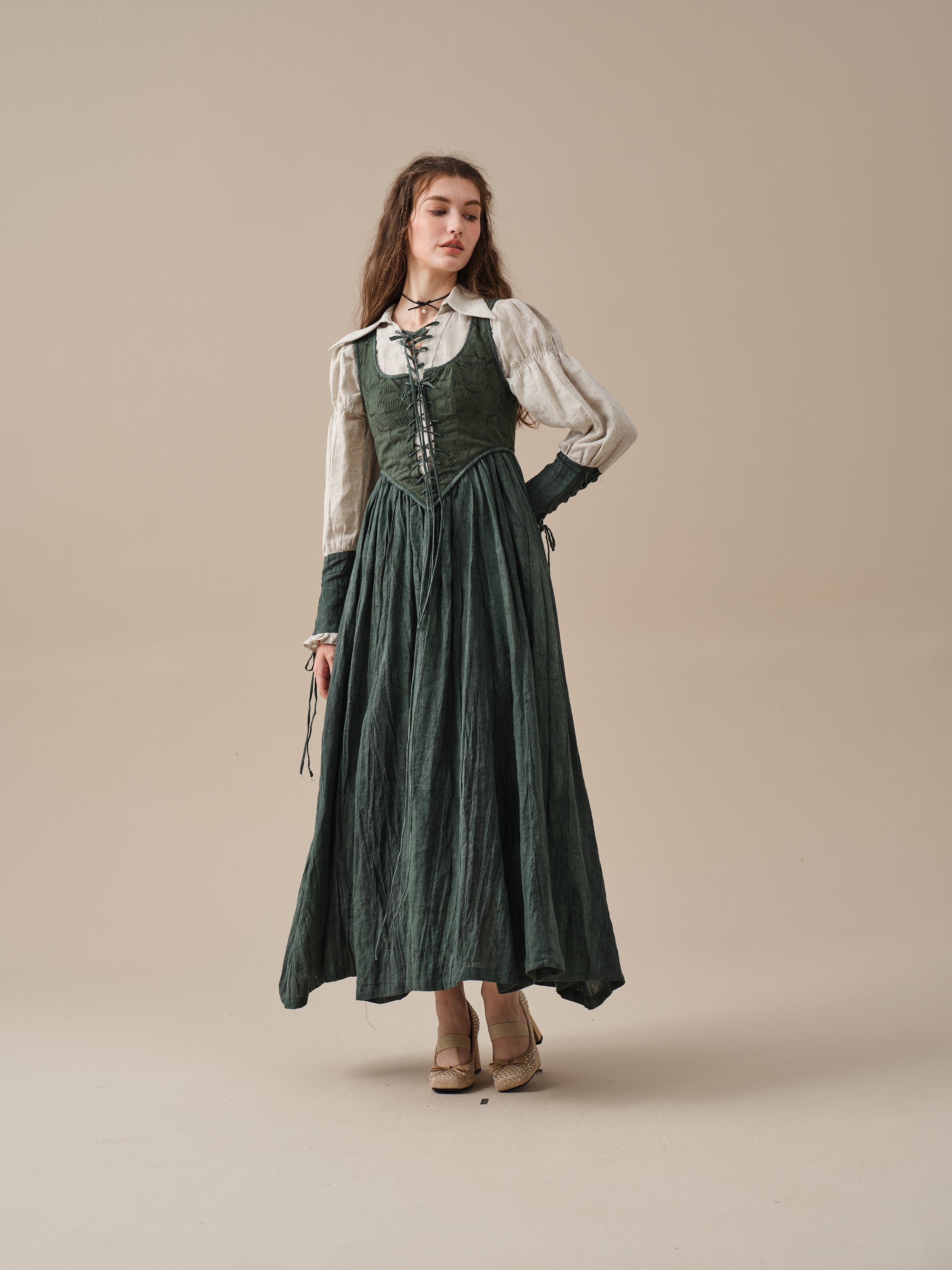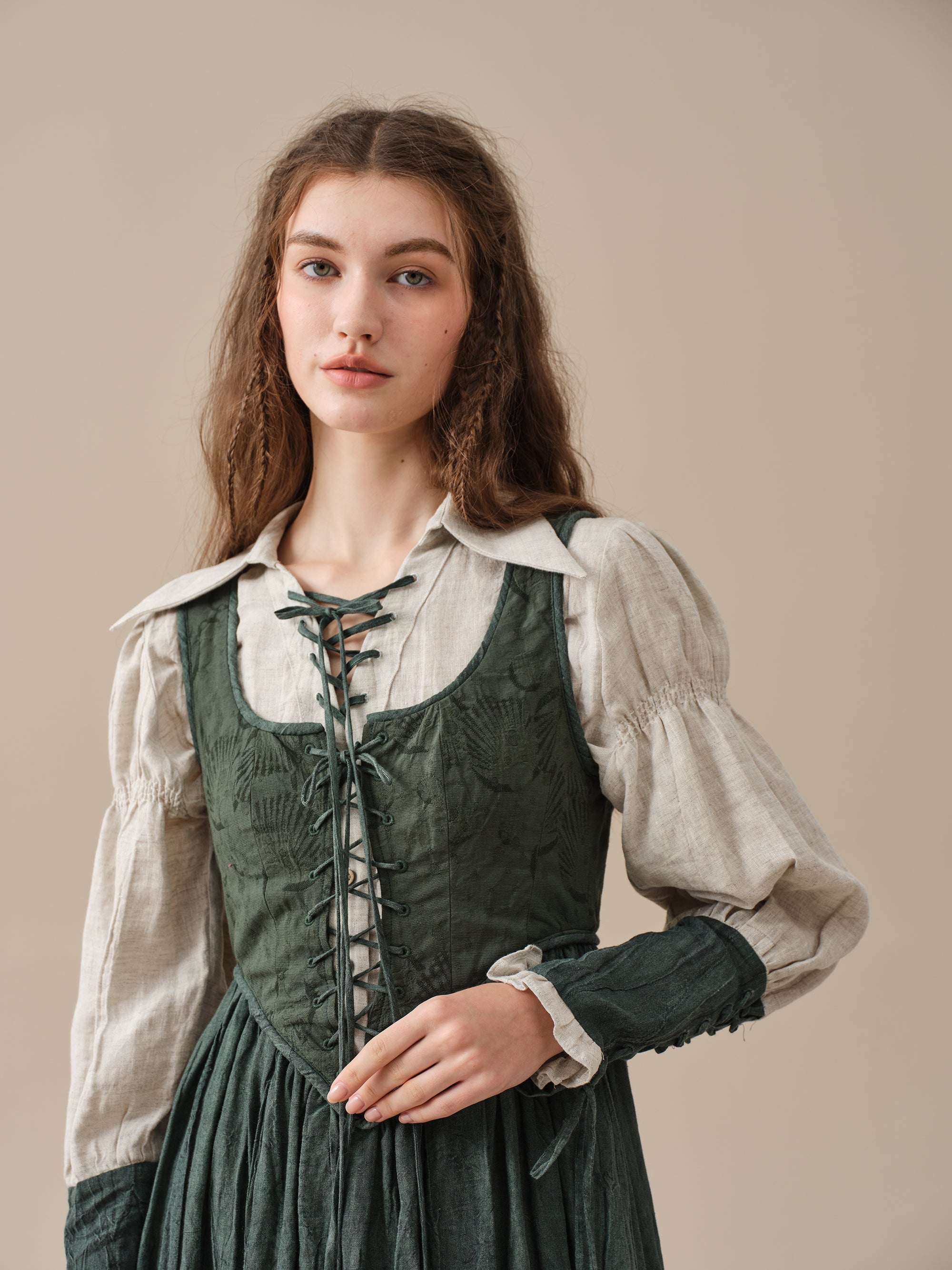 Anis 23 | Lace-up Jacquard Linen Corset Dress