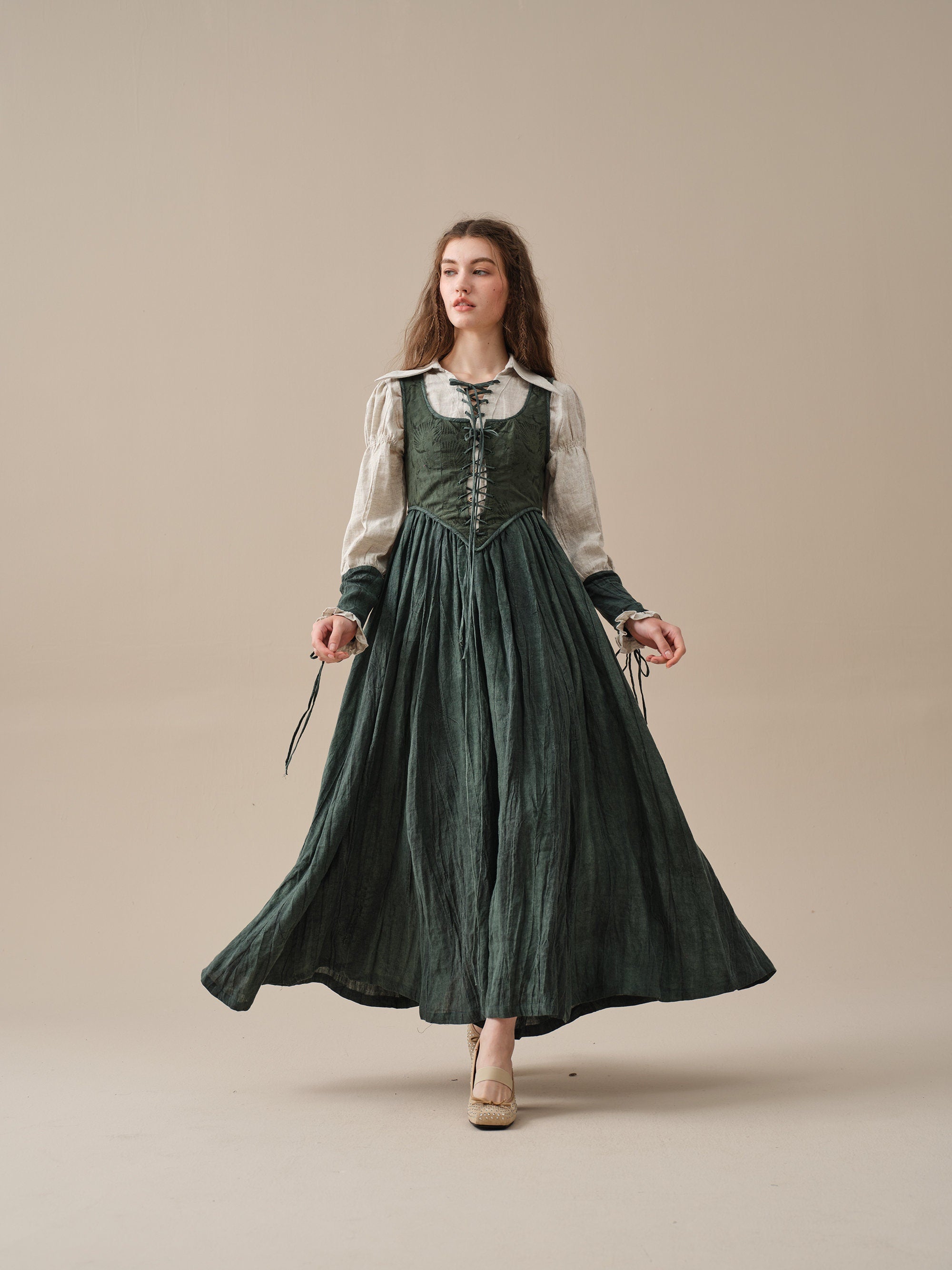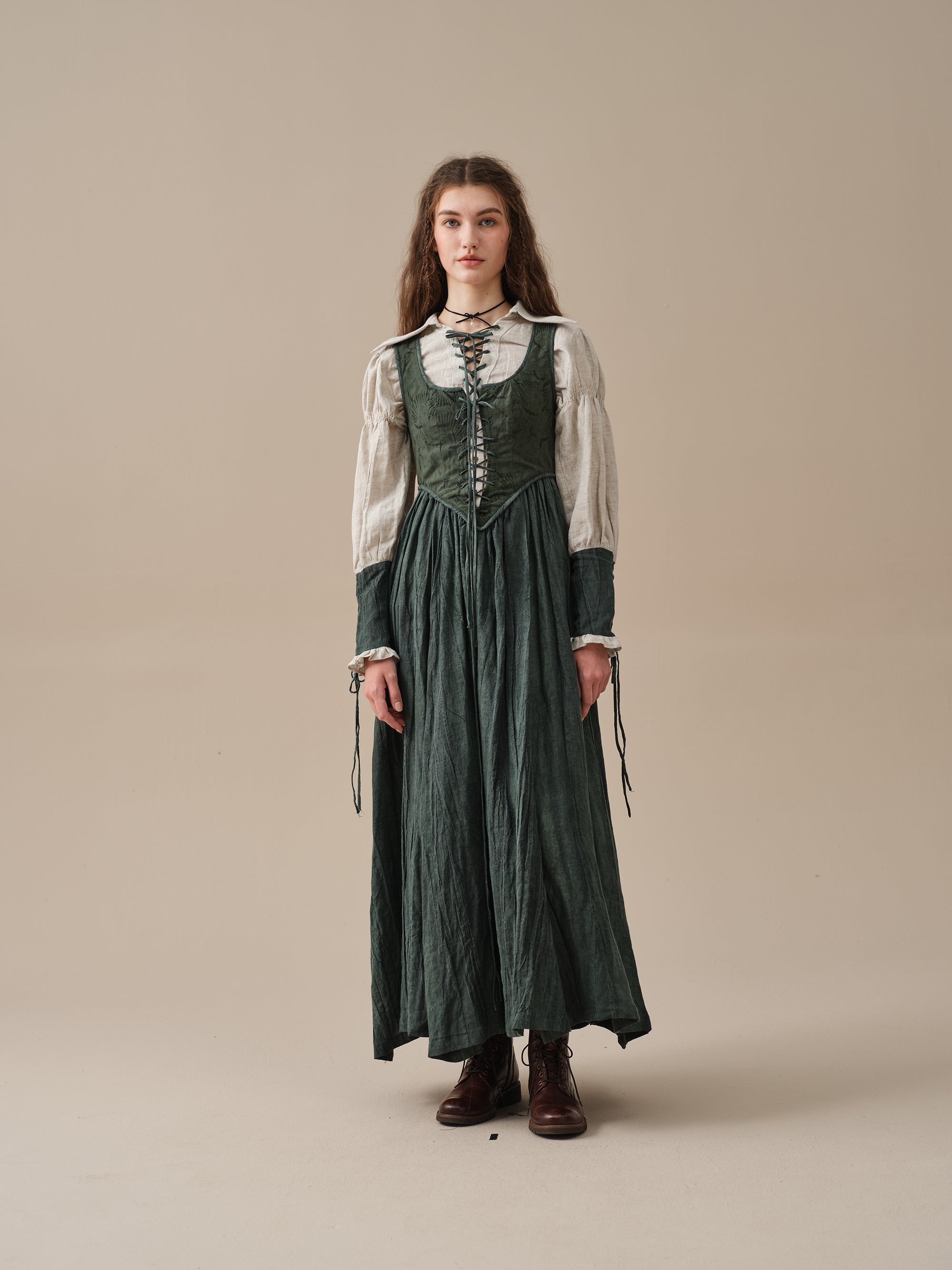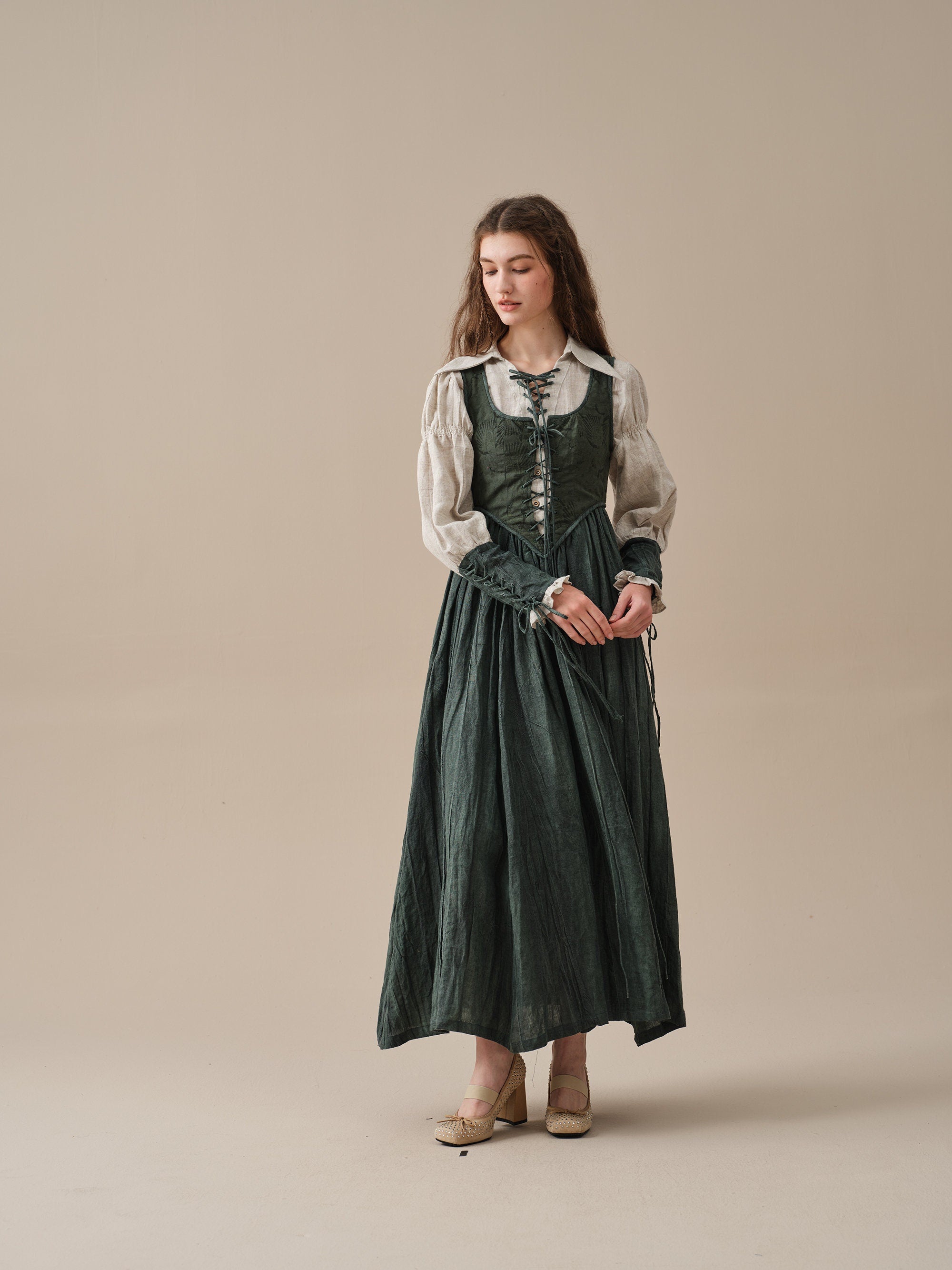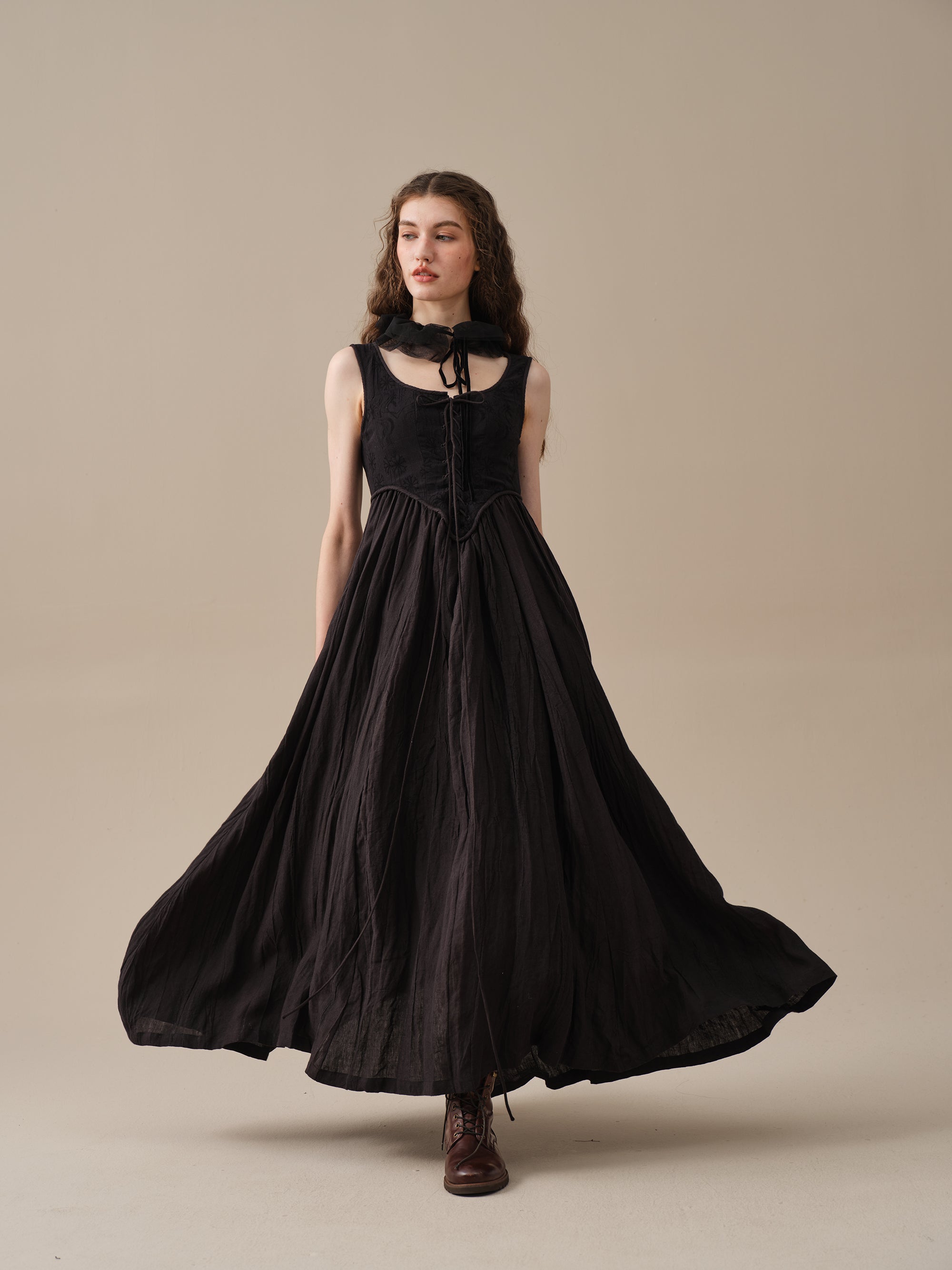 Anis 23 | Lace-up Jacquard Linen Corset Dress