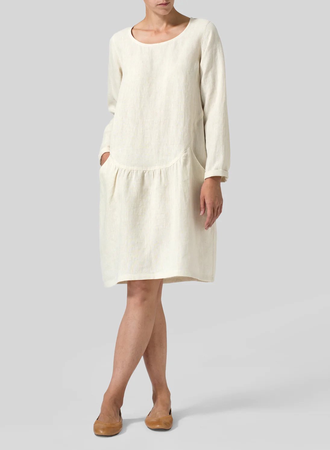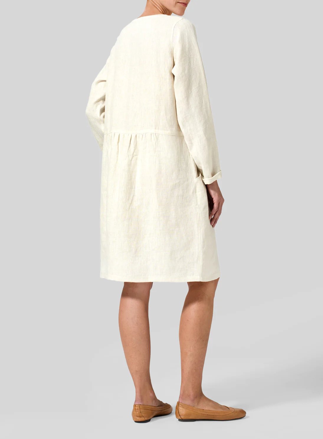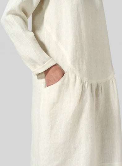 This is a beautifully Pleated Waist Dress made from high quality, eco-friendly natural cotton and linen fabric.With a neat collar,features a simple A-line design.Featuring the popular crew neck and pullover style with straight hem, it comes in a premium and elegant colorway and is knee-length.Wearing her will not only bring you a comfortable wearing experience, but also enhance your elegant femininity.