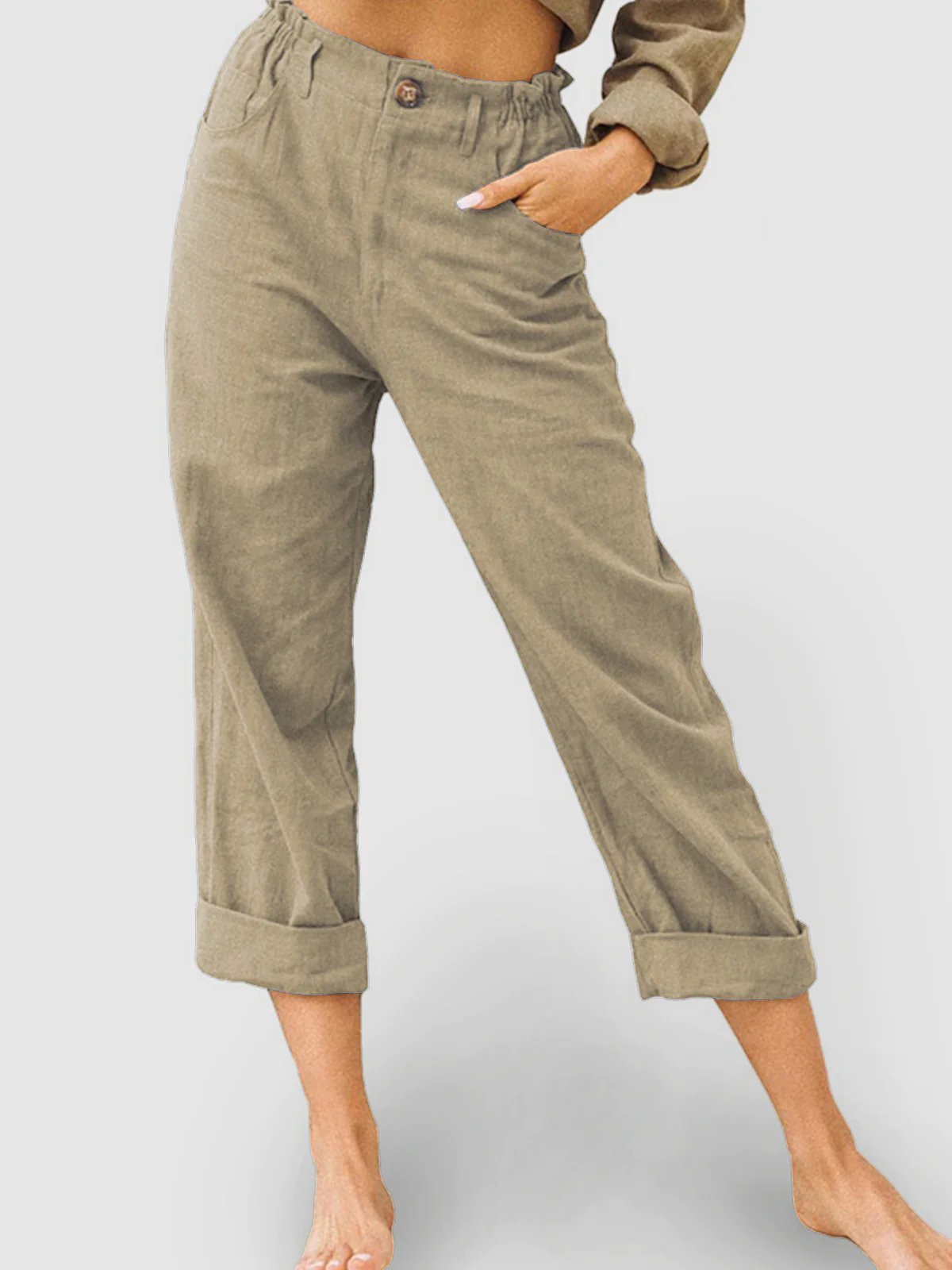 This is a slacks made of high quality eco-friendly natural cotton and linen fabrics, available in a wide range of colors for you to choose from. Wearing it will not only give you a comfortable wearing experience, but also enhance your elegant temperament.