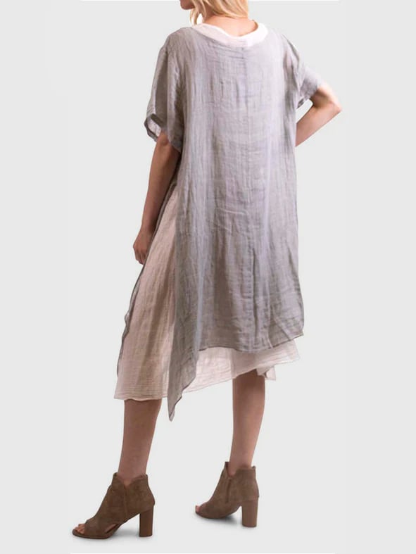 This is a dress made from high quality, eco-friendly natural cotton and linen fabric. It features a sleek two-piece design with a flattering side slit and a premium, elegant colorway. Wearing it can not only bring a comfortable wearing experience, but also highlight the fashionable and elegant femininity.