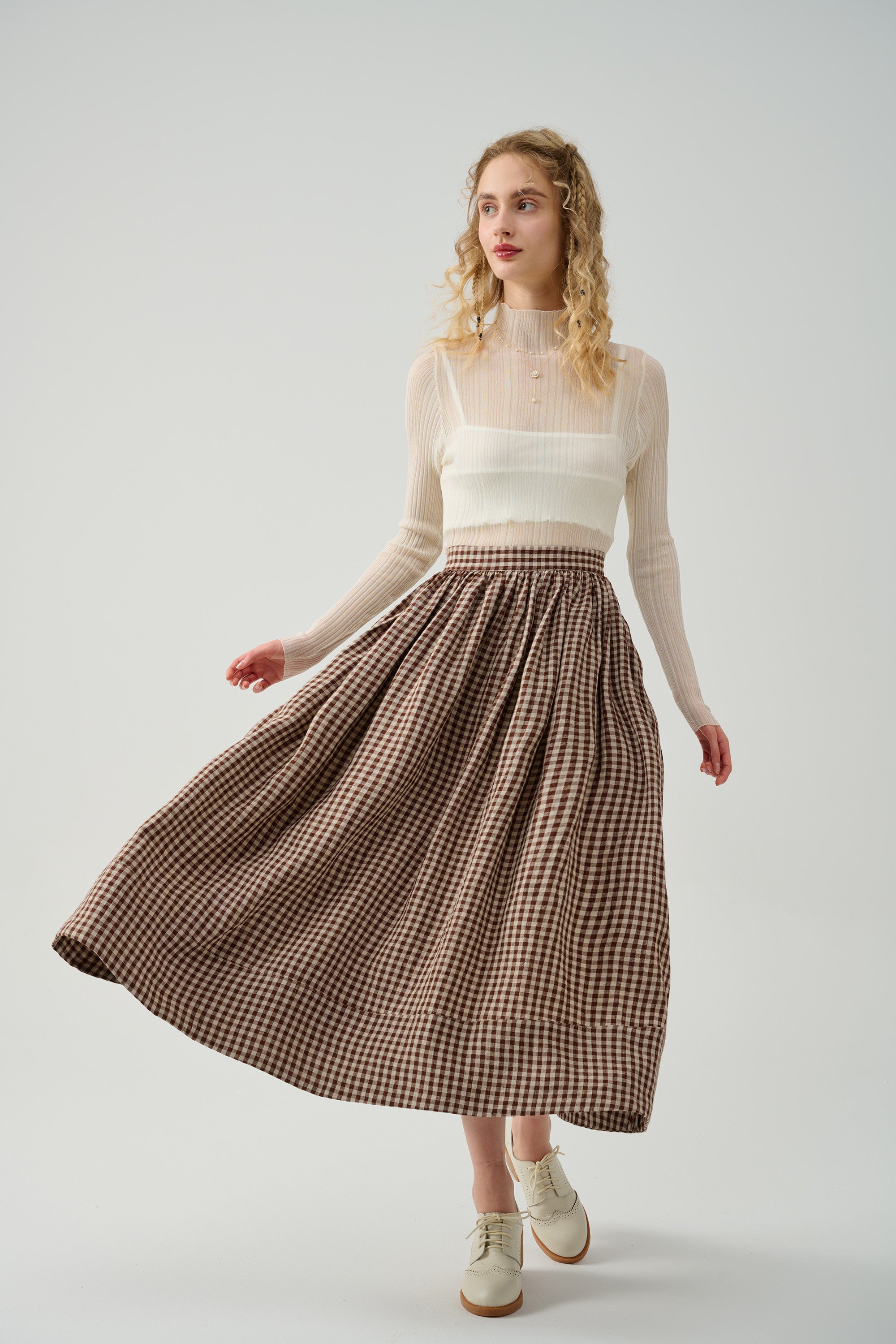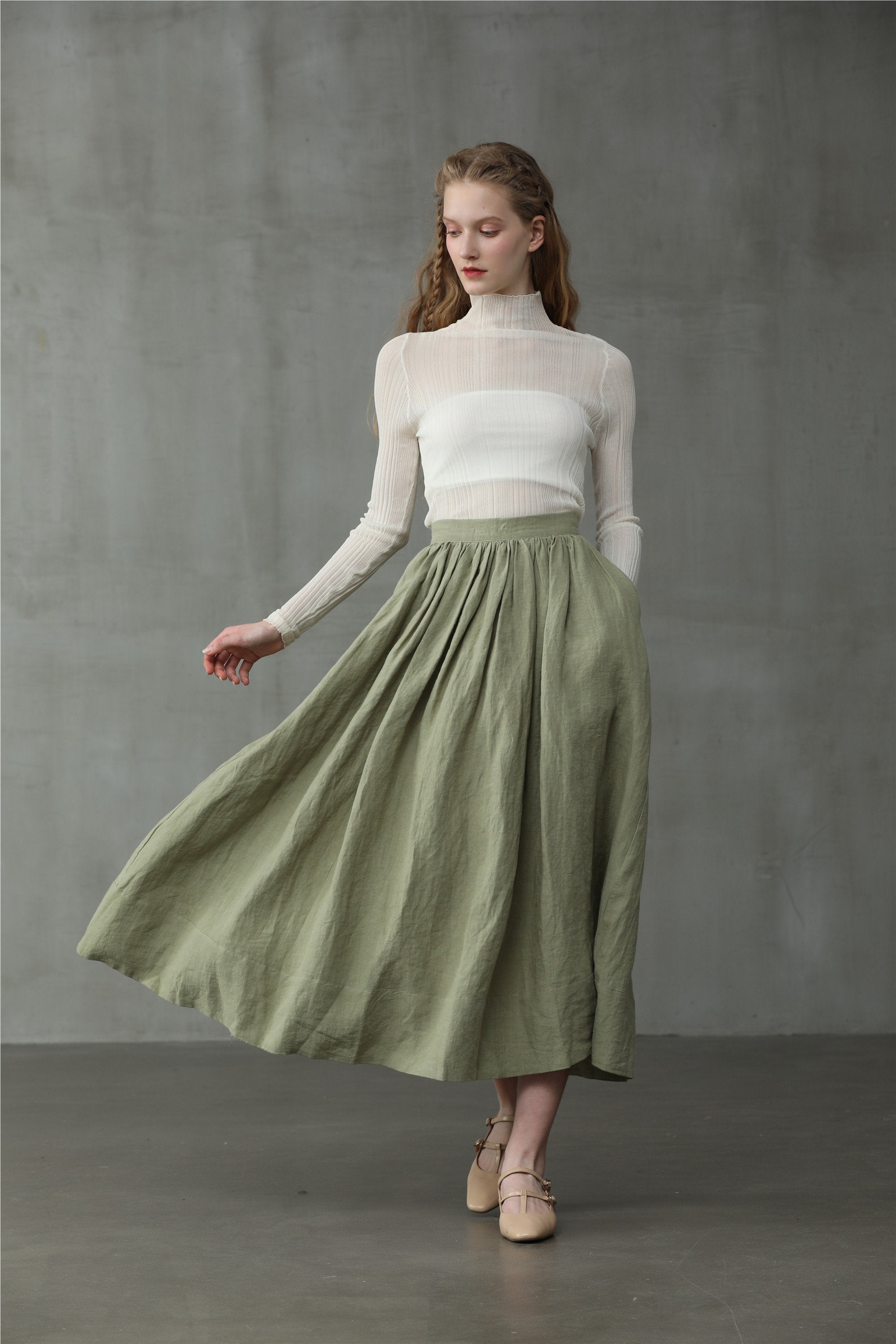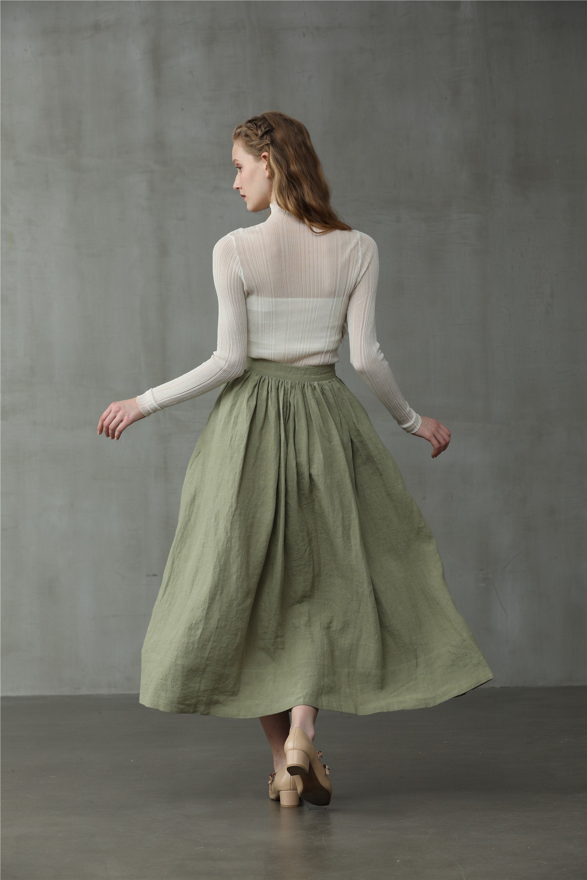 Waistline. Sometimes we feel something was so wrong when we put a skirt on. One of the most important element is the position of its waistline. Our designers have tested and made a few samples in order to set a correct waistline, and also not sacrifice any comfortable feeling that a linen skirt should be. Comfortable first.