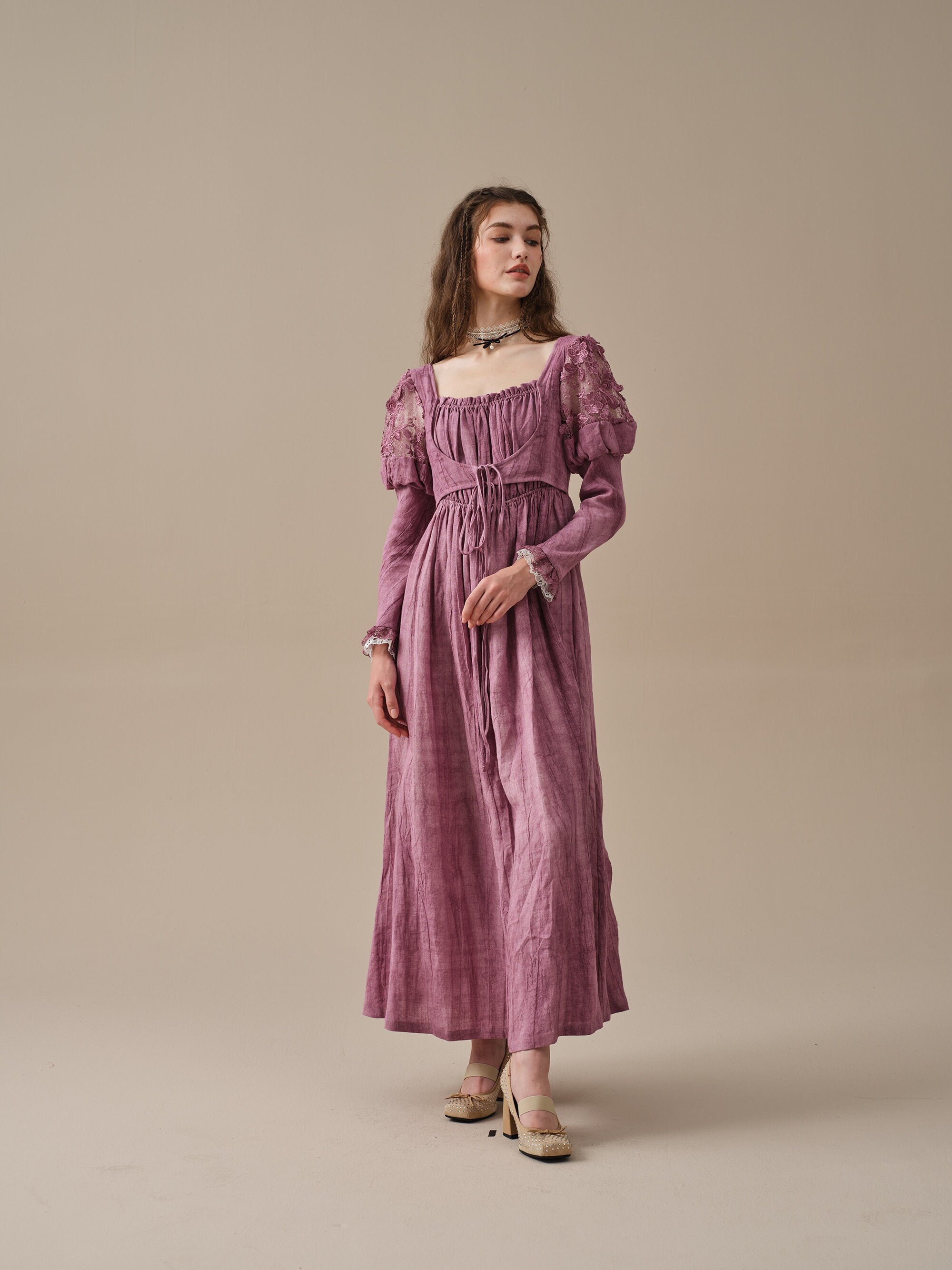 Apart from its artistic elements, this linen dress also prioritizes comfort and practicality. The soft and breathable linen fabric keeps you cool and comfortable throughout the day, making it a perfect choice for casual outings or special occasions.