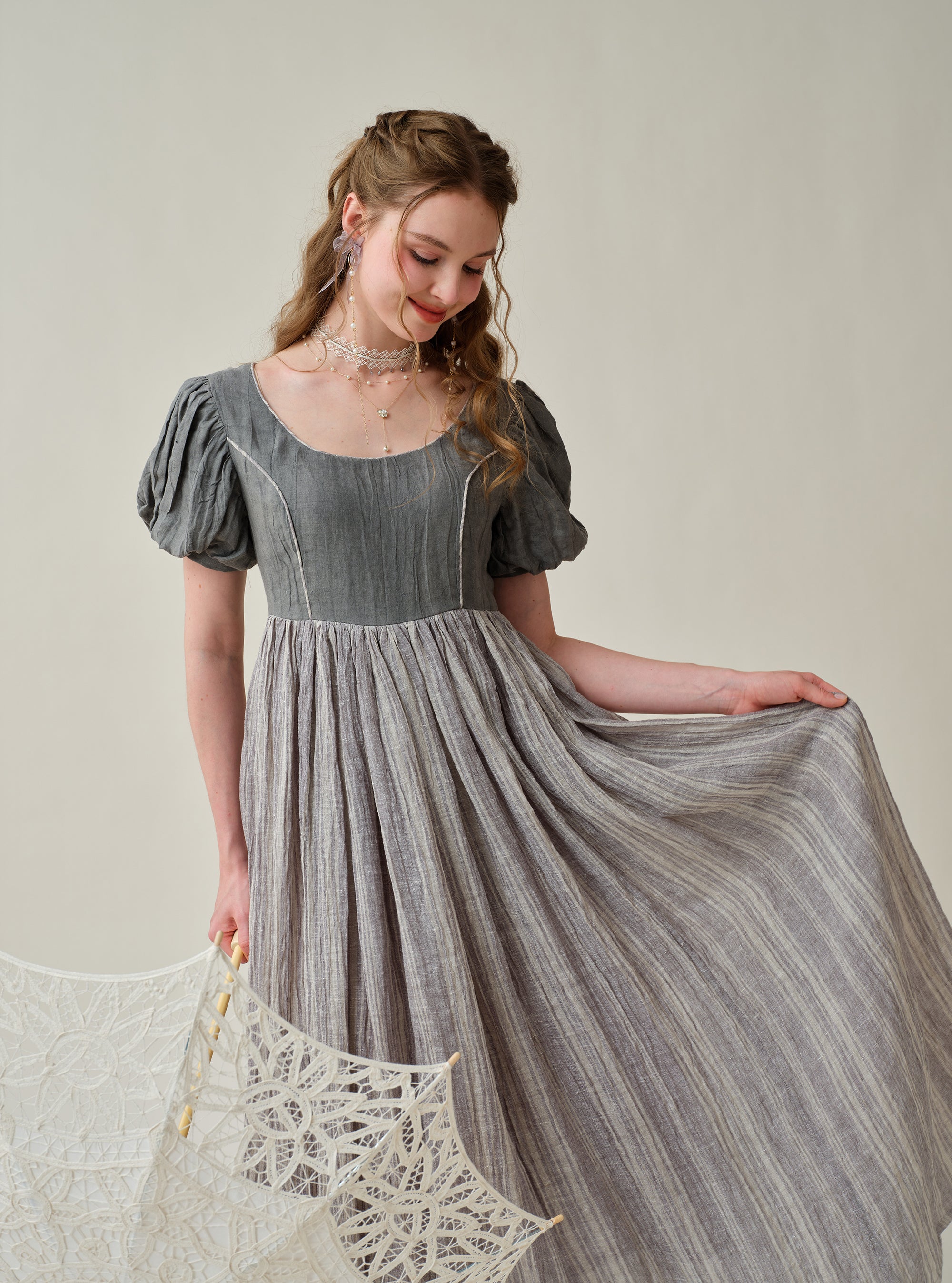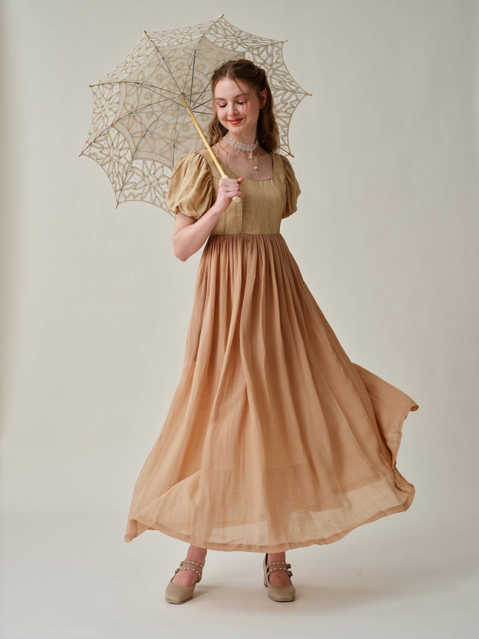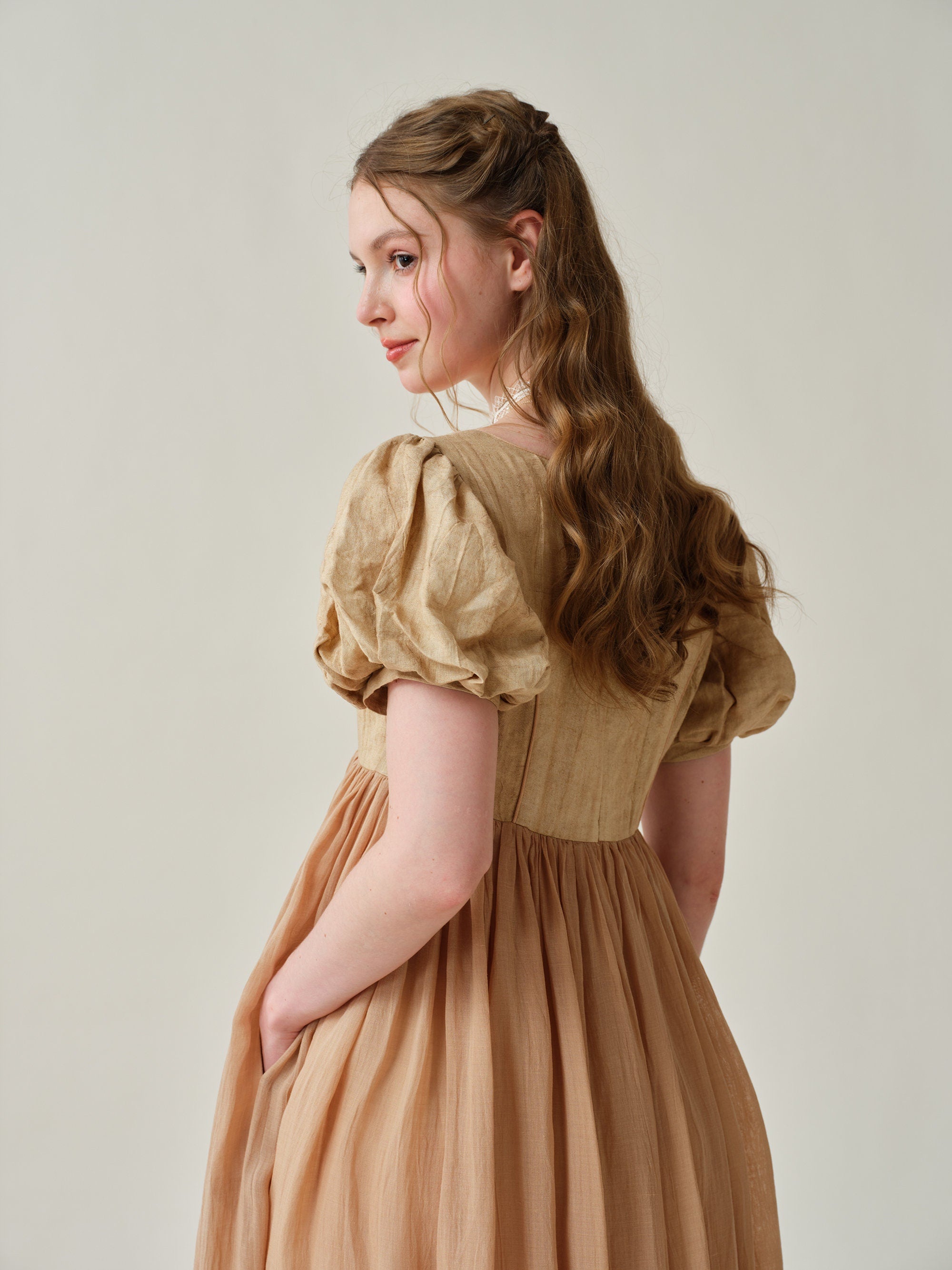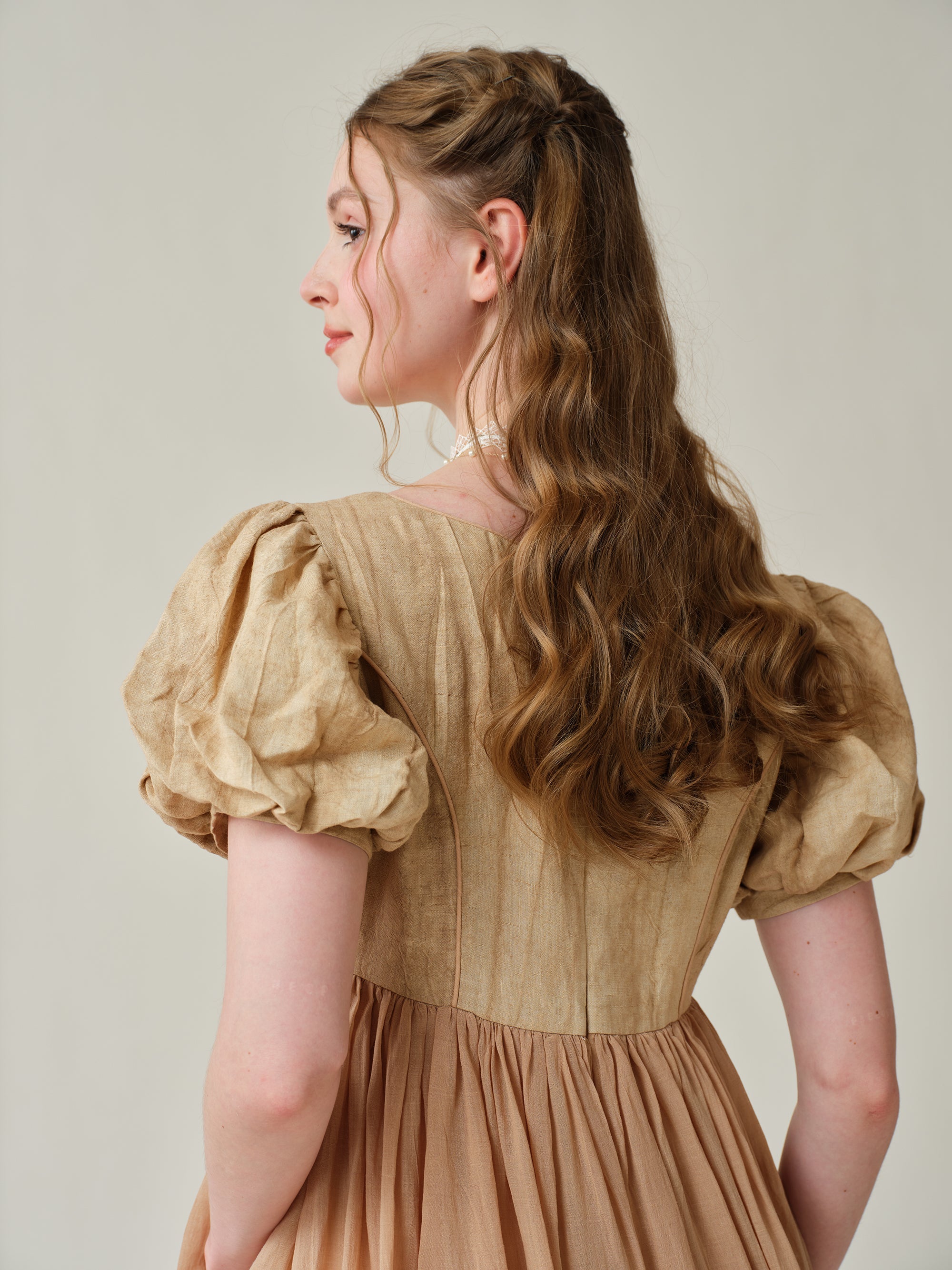 Puff sleeves with soft pleats and flowing skirt exudes vintage-inspired charm. Will make you stand out from the crowd.