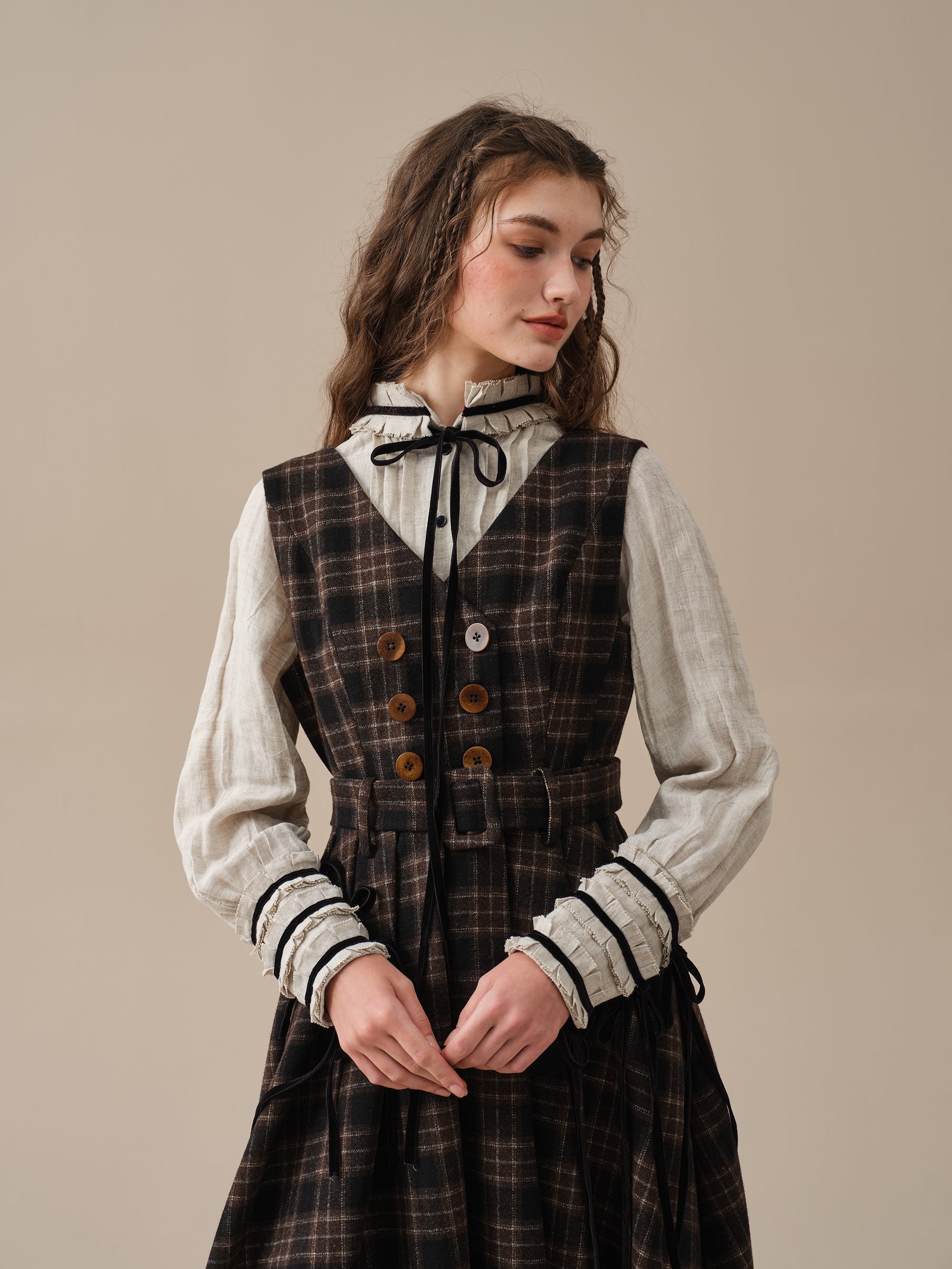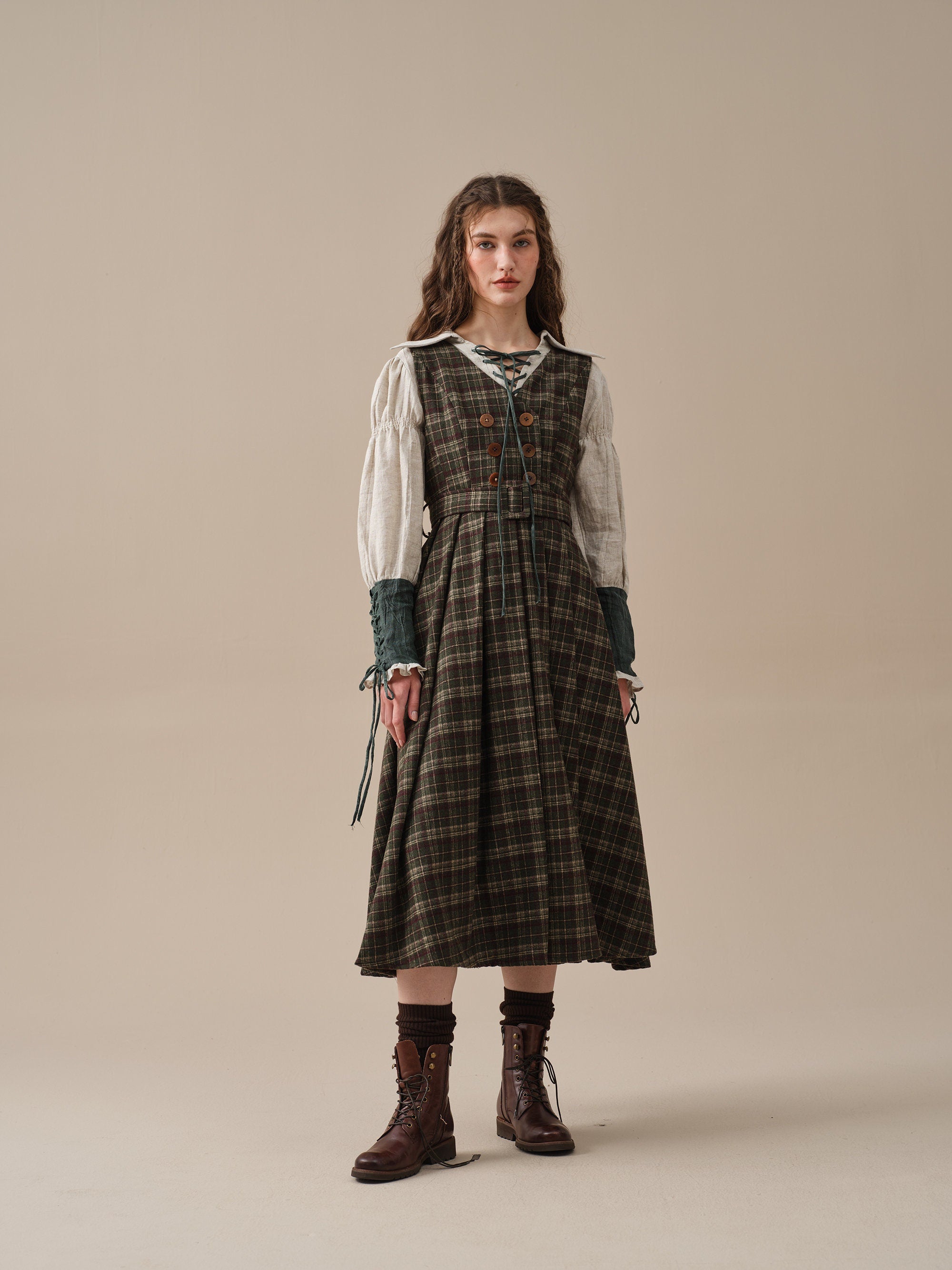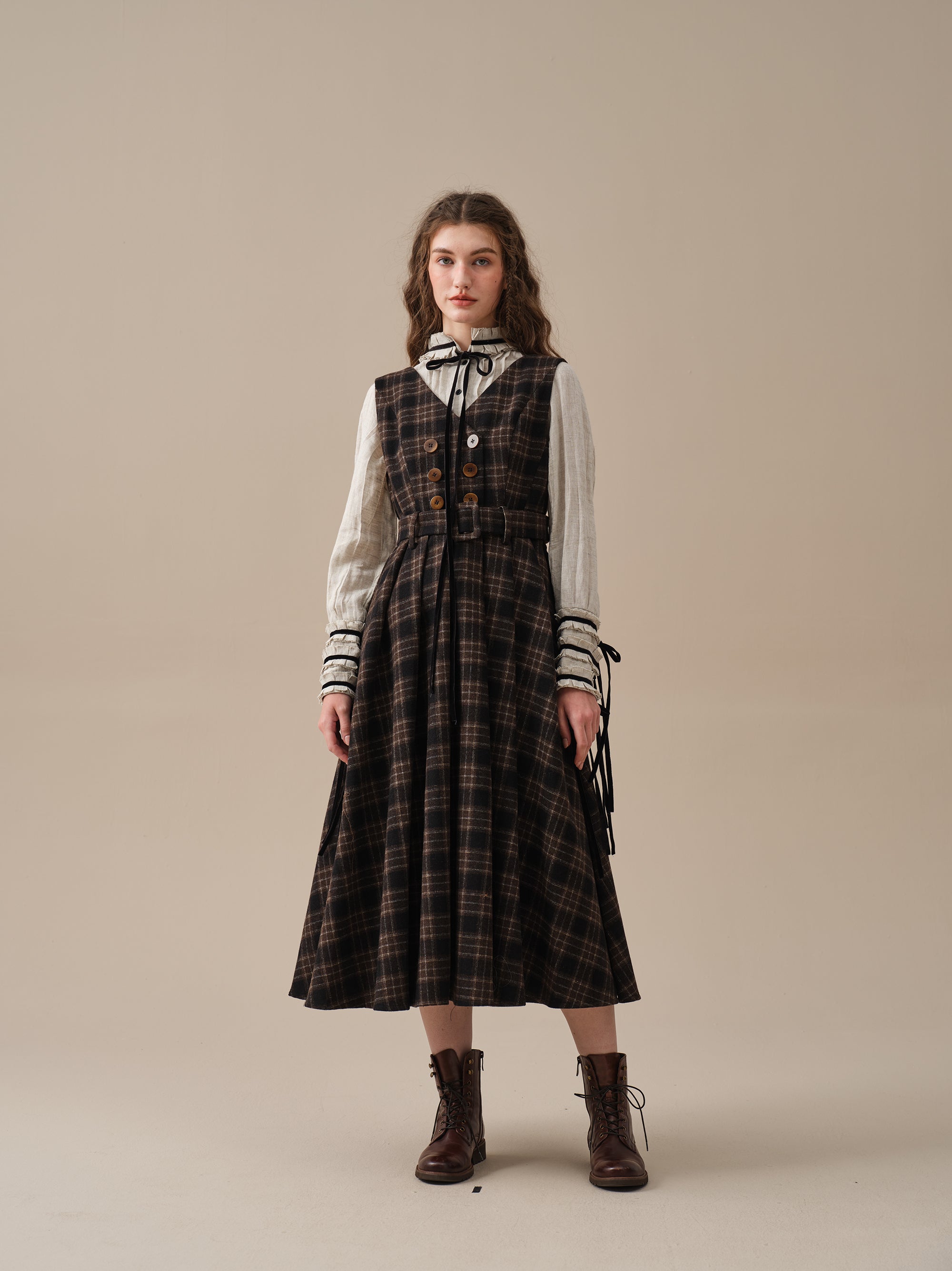 The delicate plaid pattern of the dress is both timeless and elegant, allowing you to exude a sense of classic style. The intricate pleating detail adds a touch of allure and creates beautiful movement with every step.