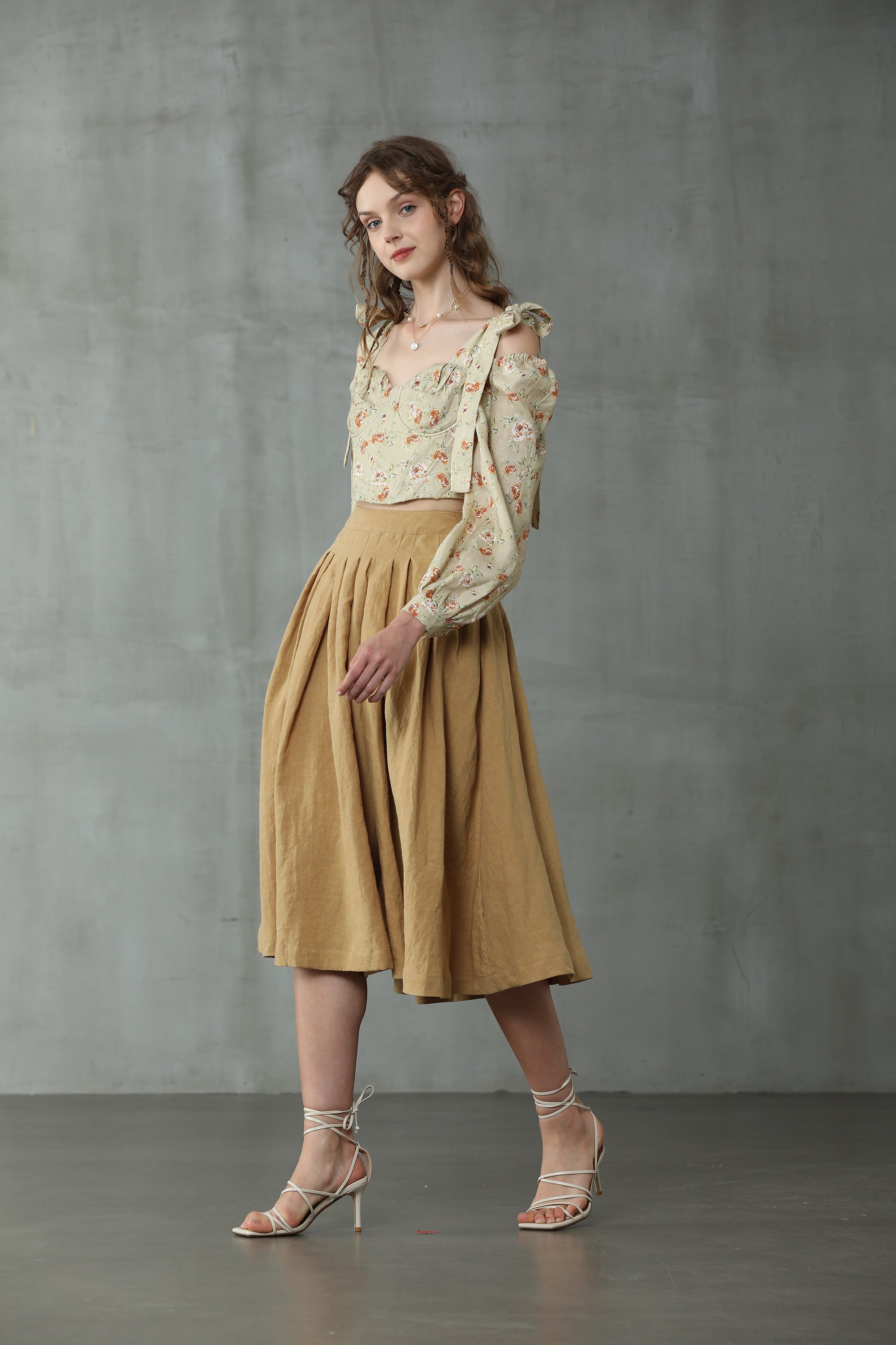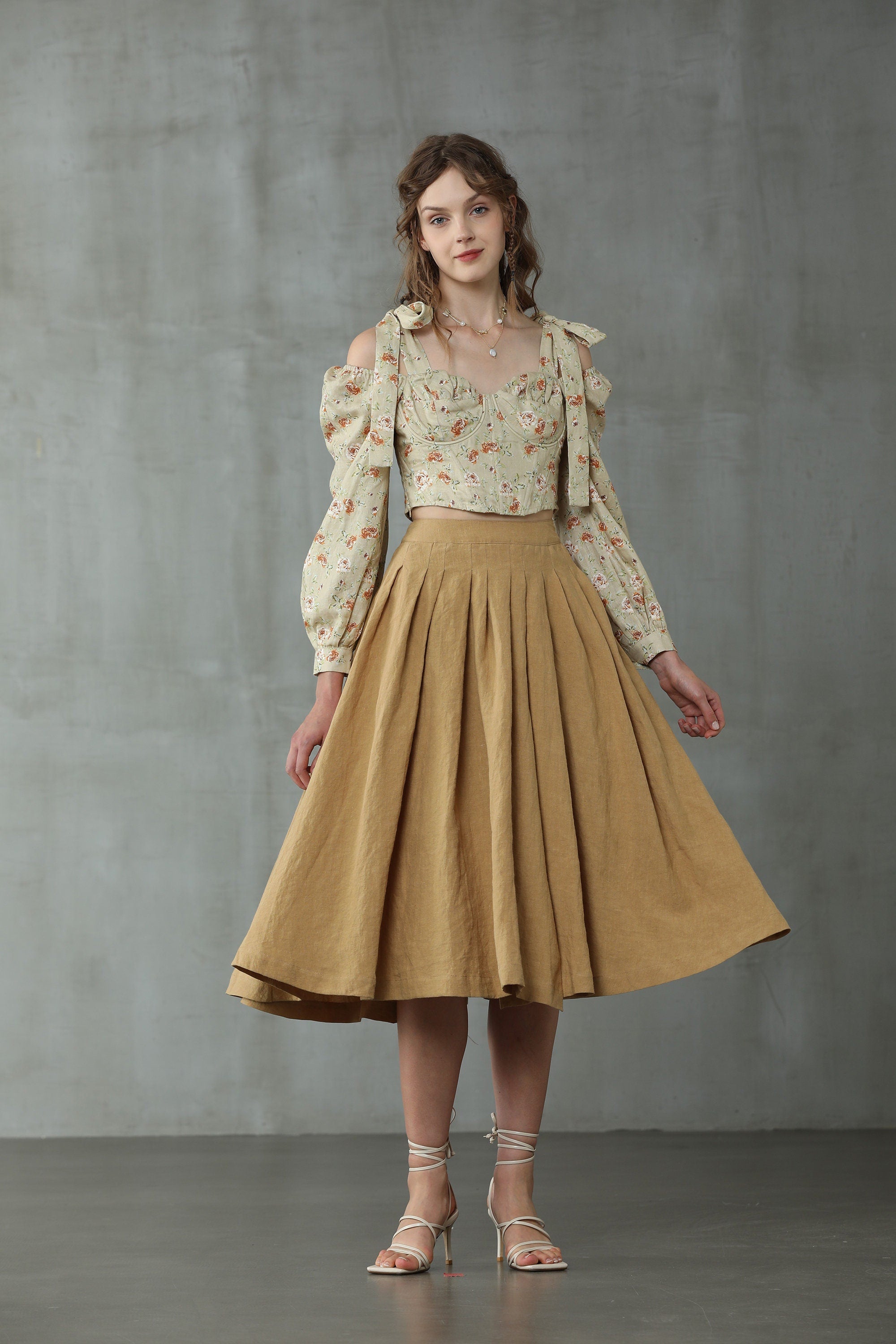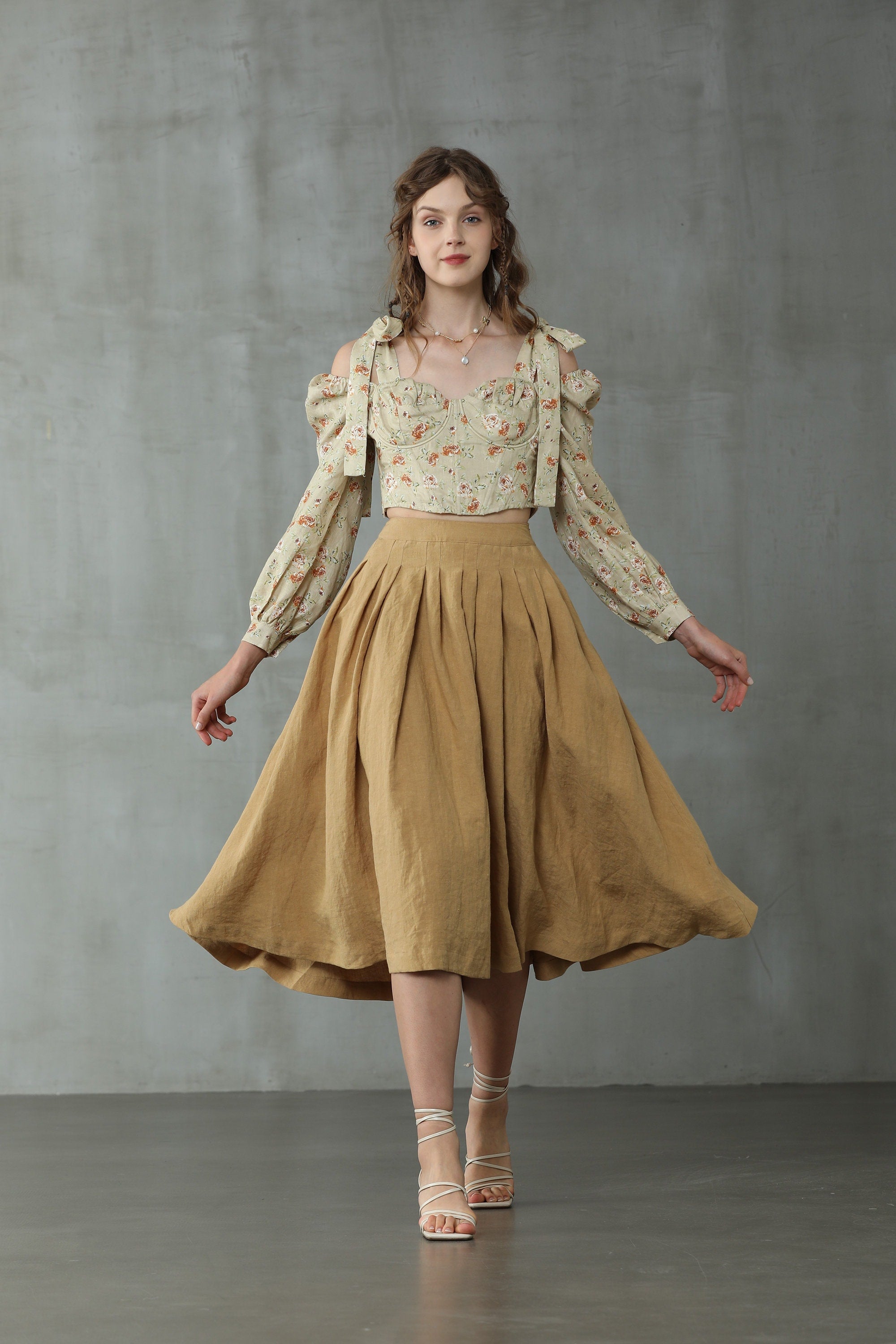 Crafted from great pure linen,side pockets, the pleated design creates a wavy feel, while the front slit creates a refined yet whimsical look.