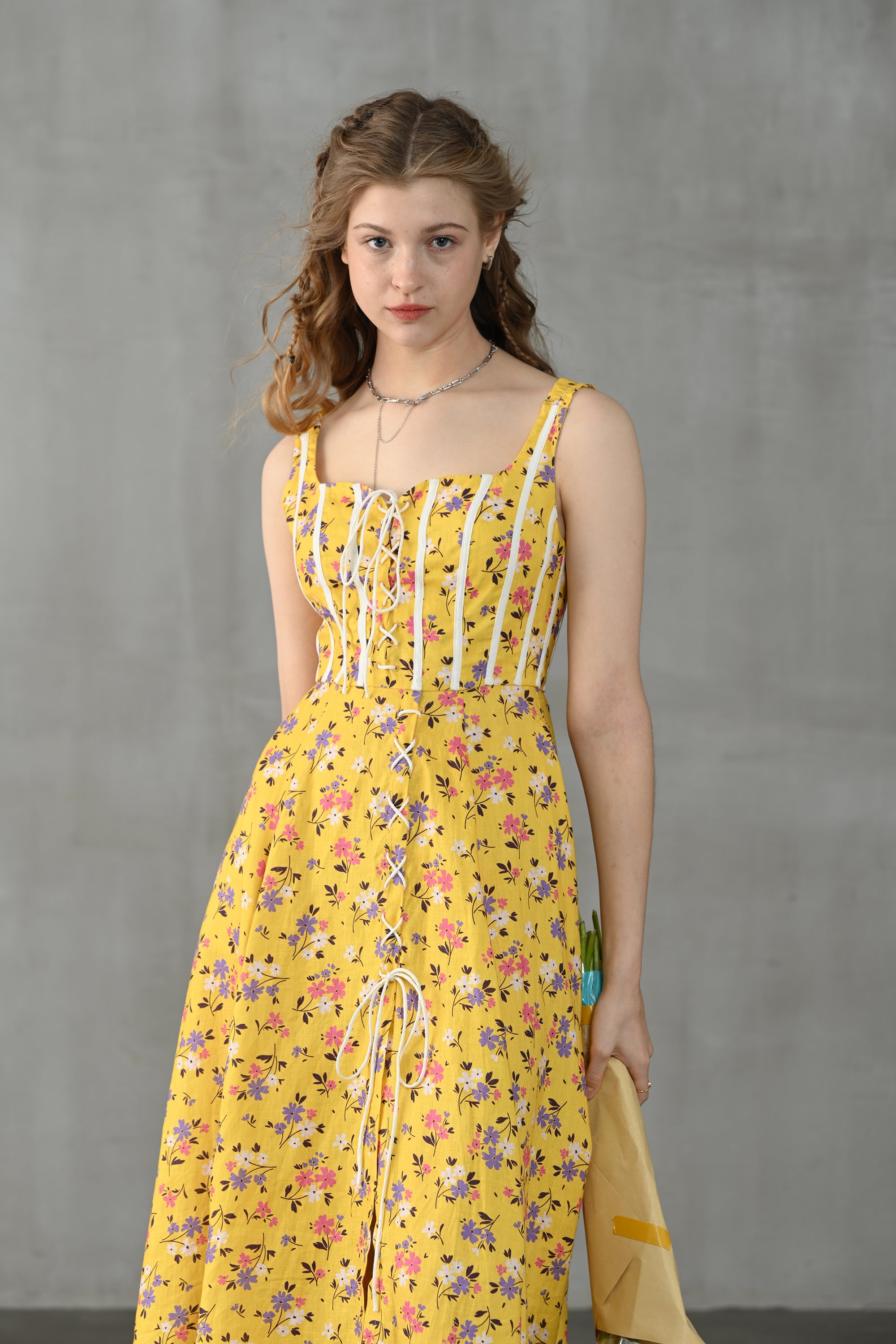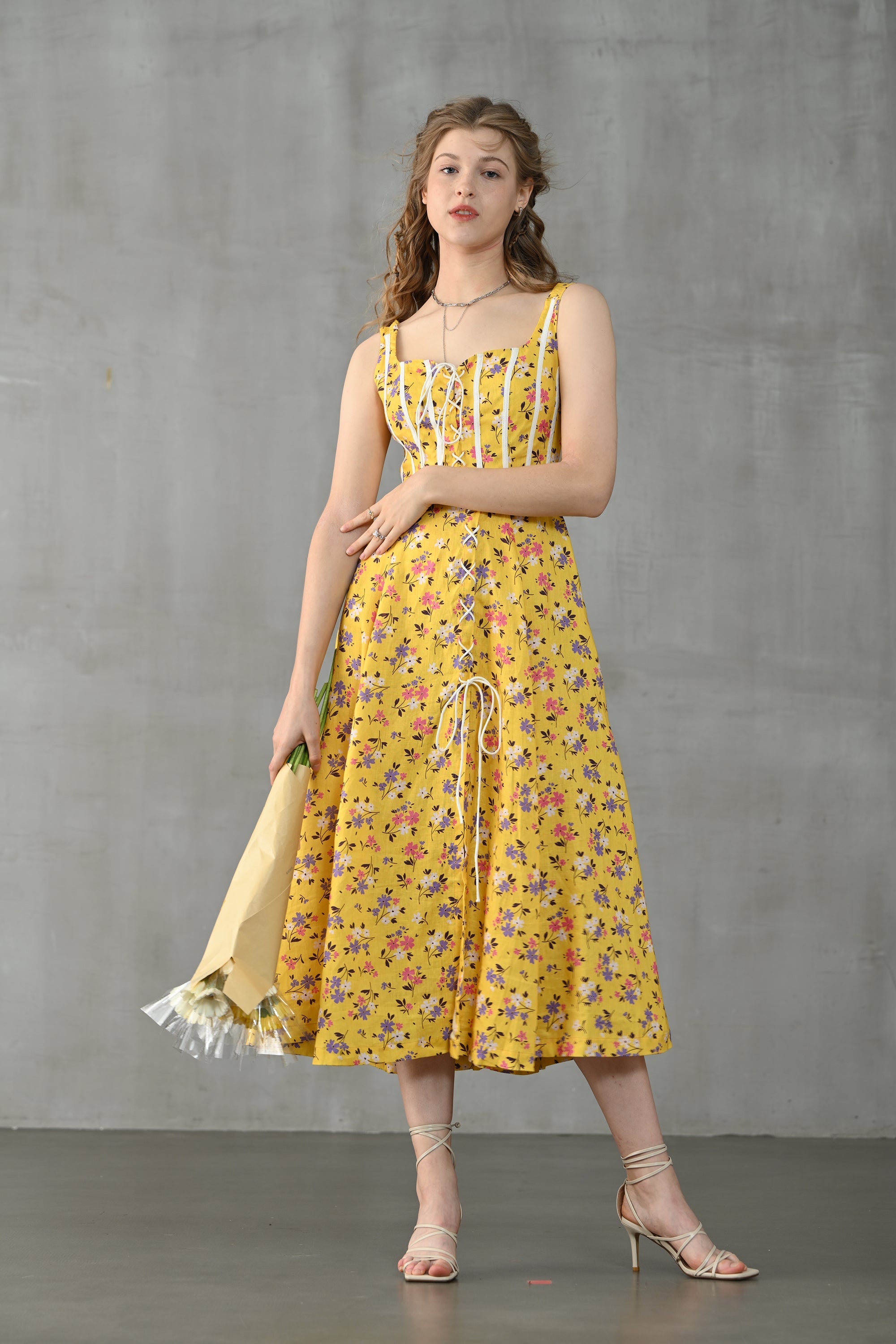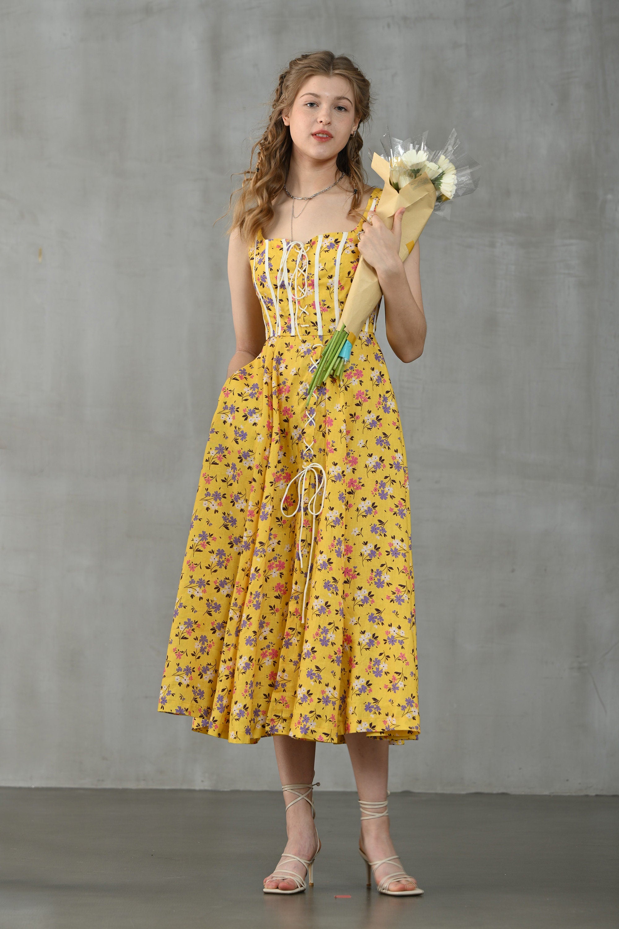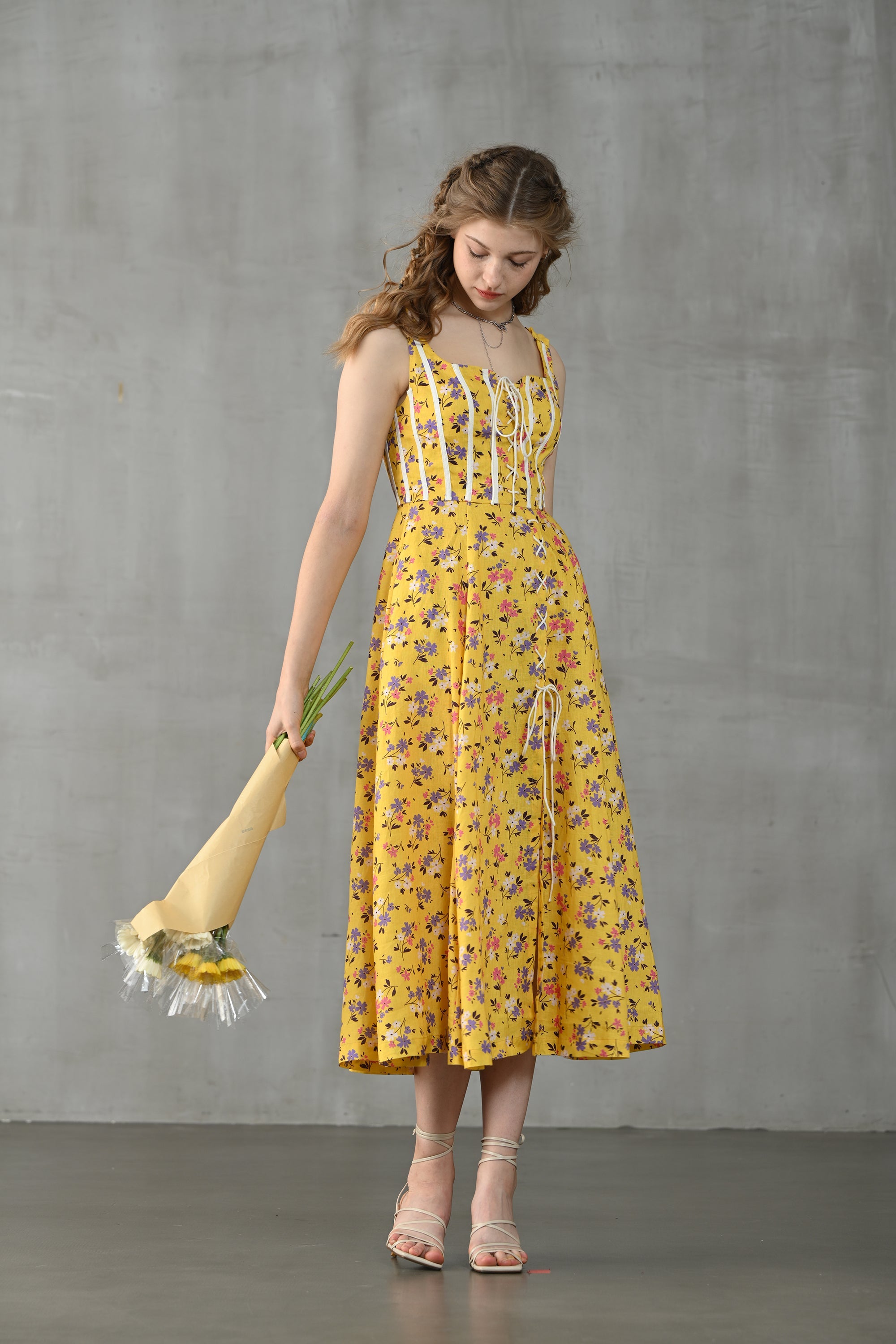 This dress from Linennaive is made from high-quality linen in a fresh shade of yellow and a pretty floral print. It has a lovely loose shape and delicate handmade pintucks. creating a look that is at once sophisticated and effortless