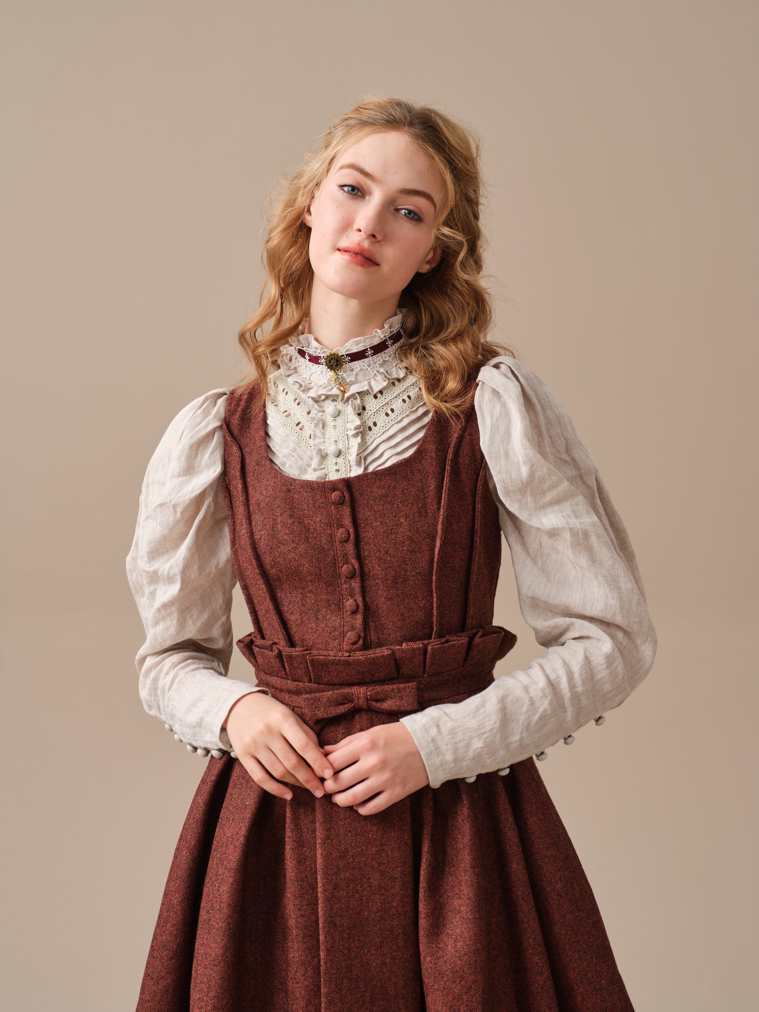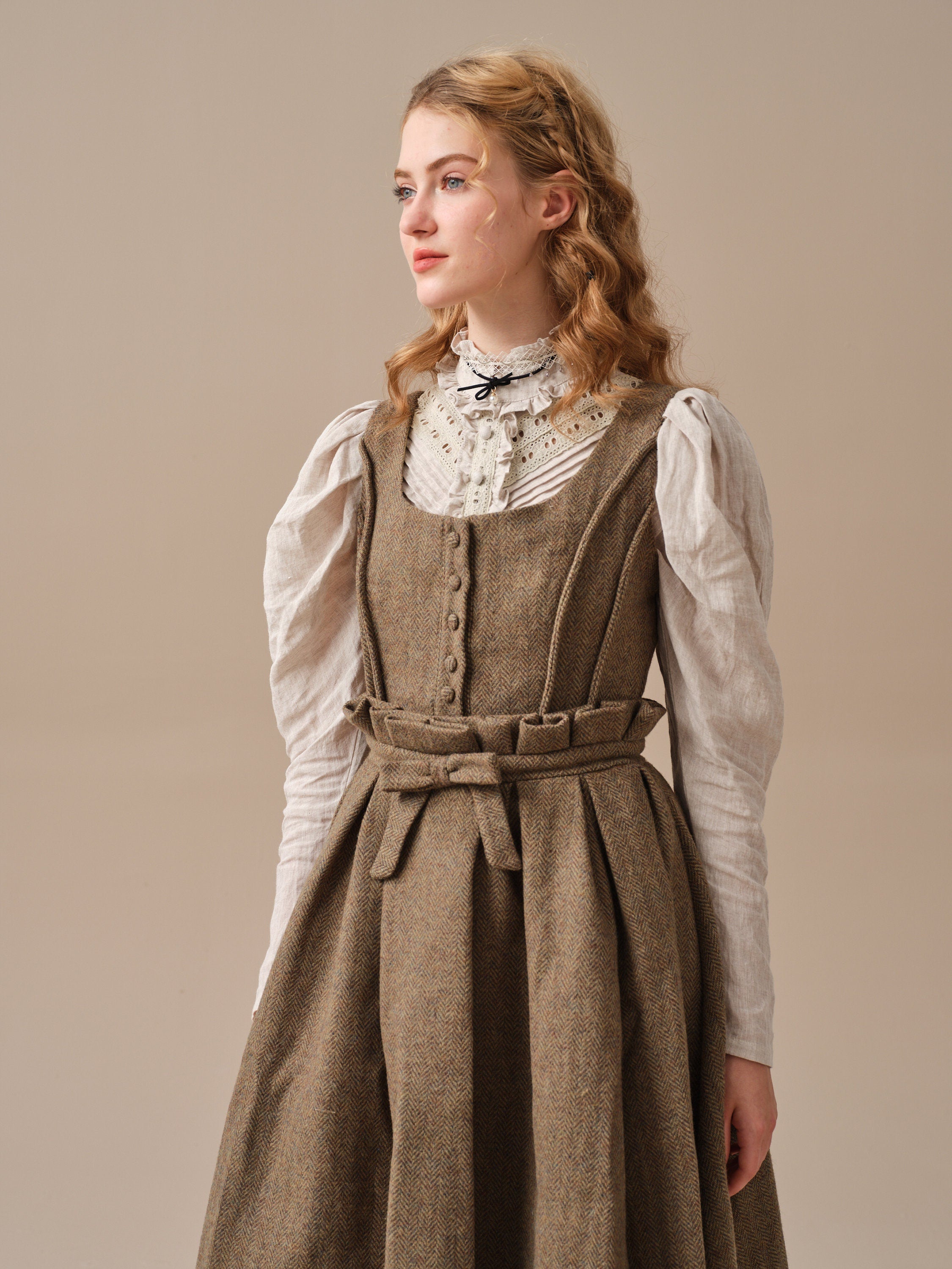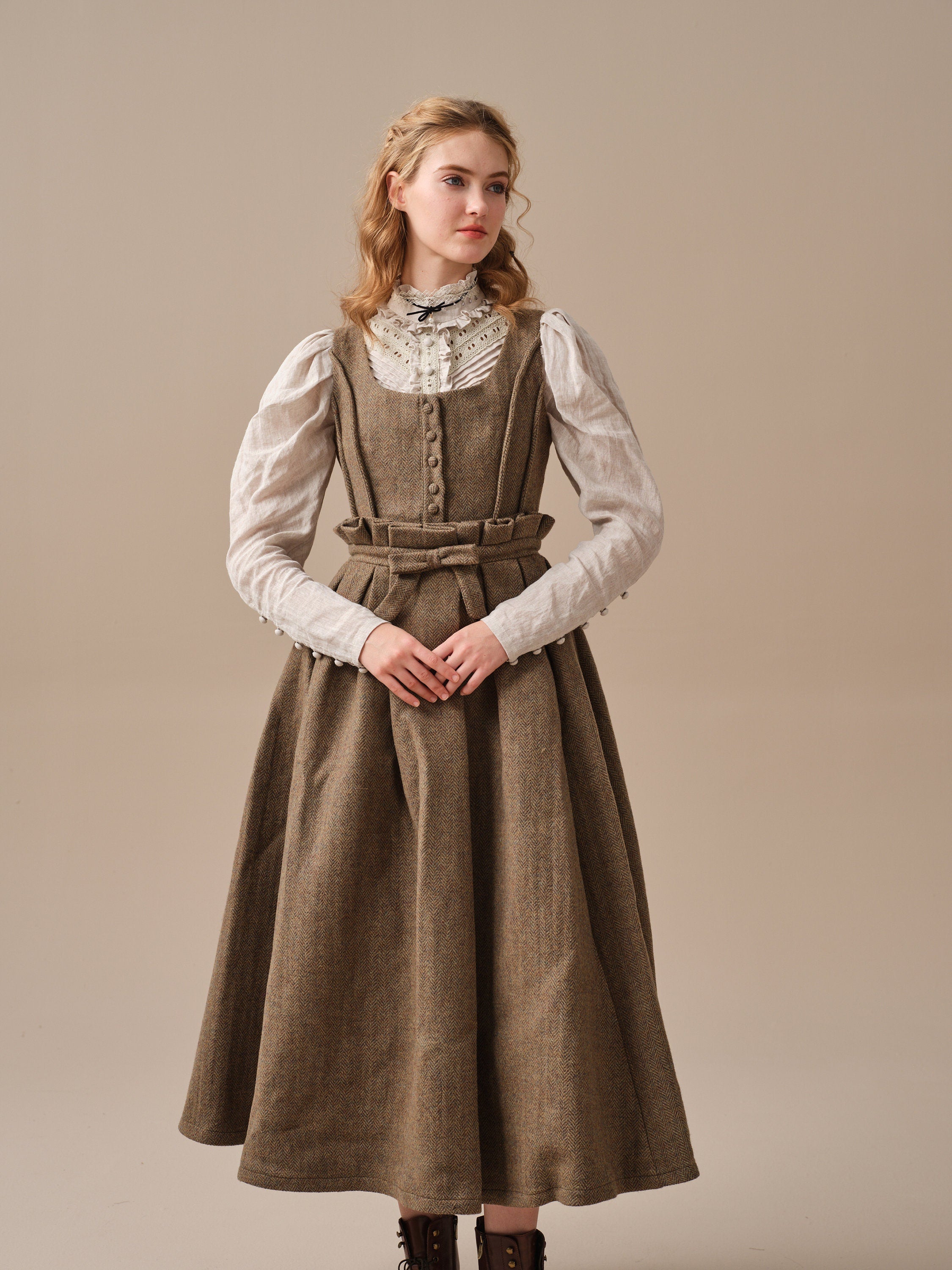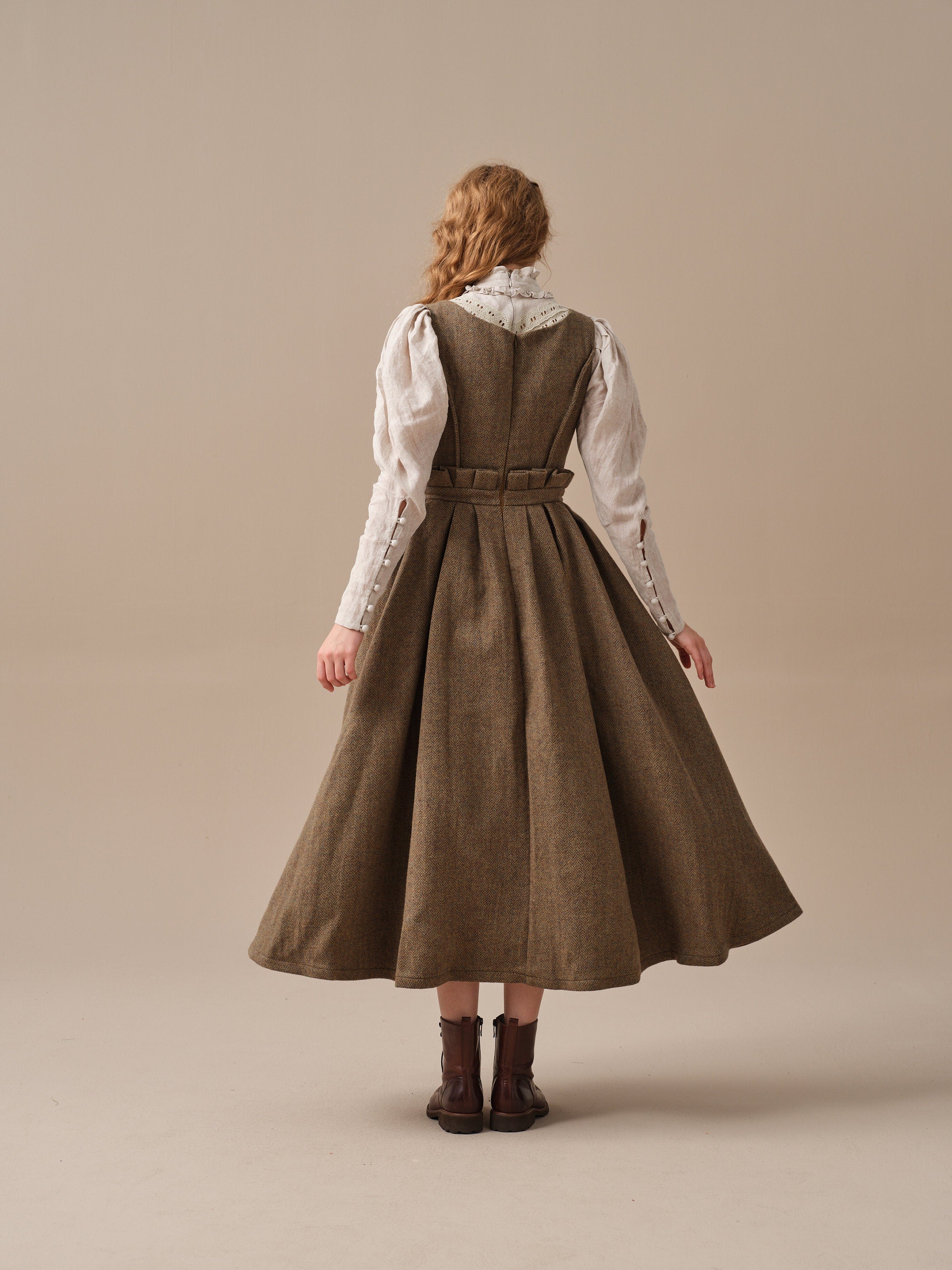 Step into a world of romance and sophistication in this wool dress, designed to captivate hearts.