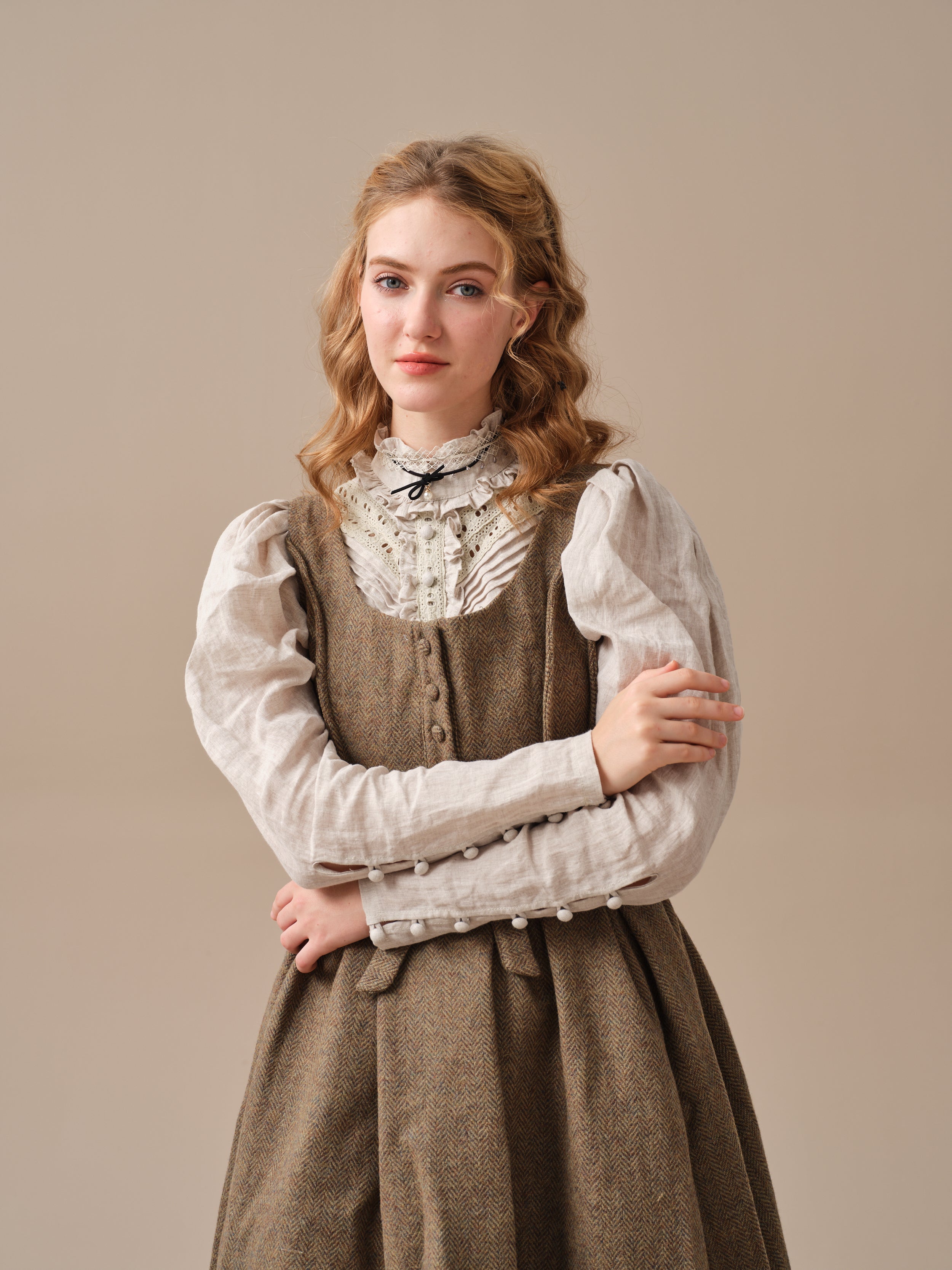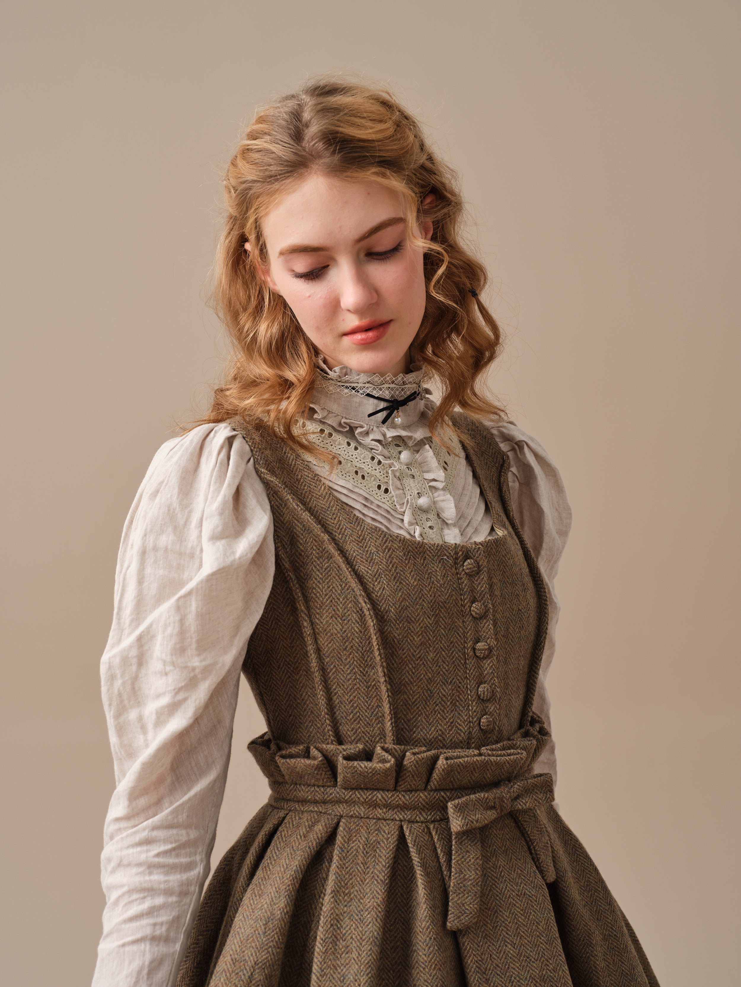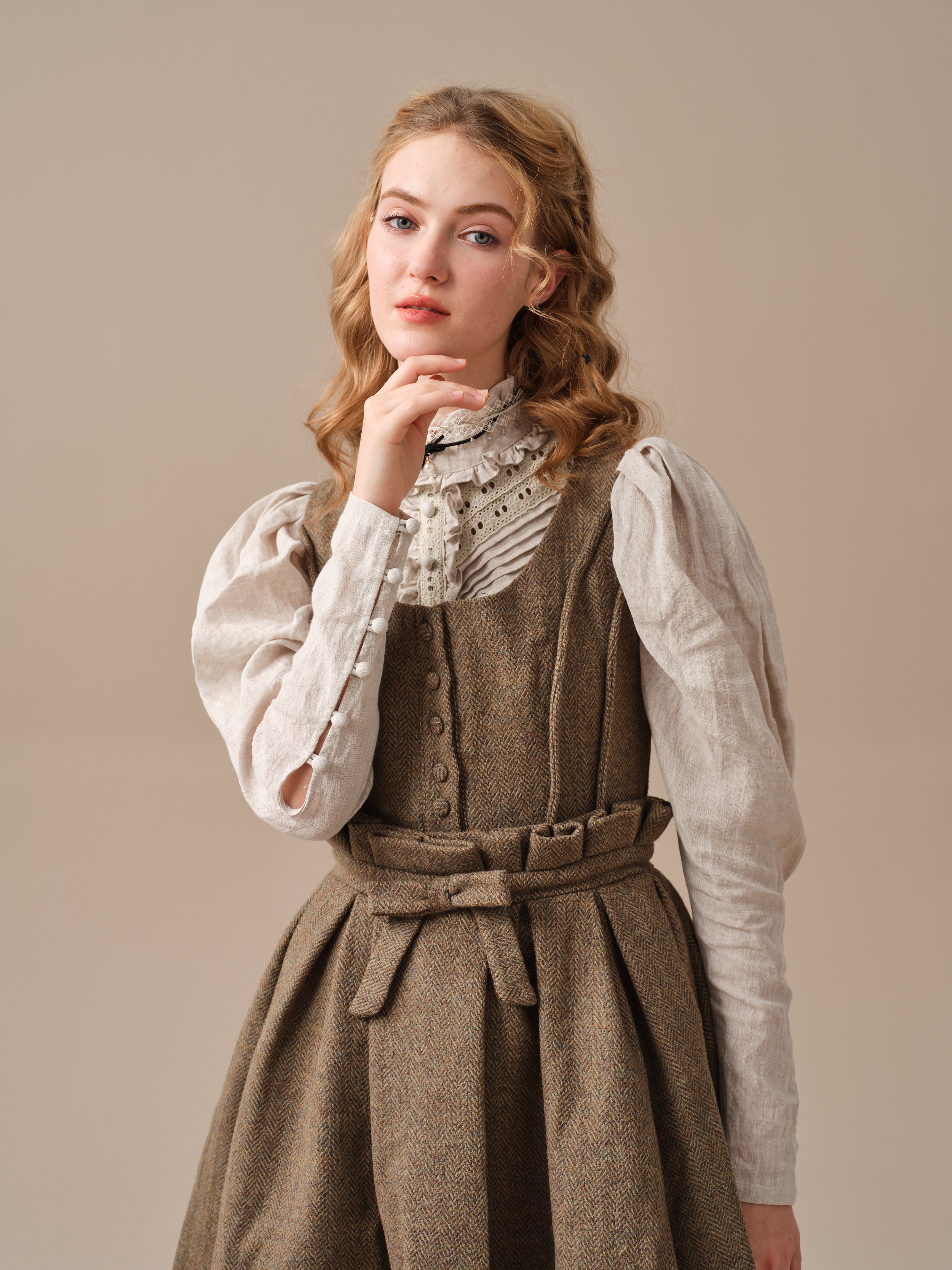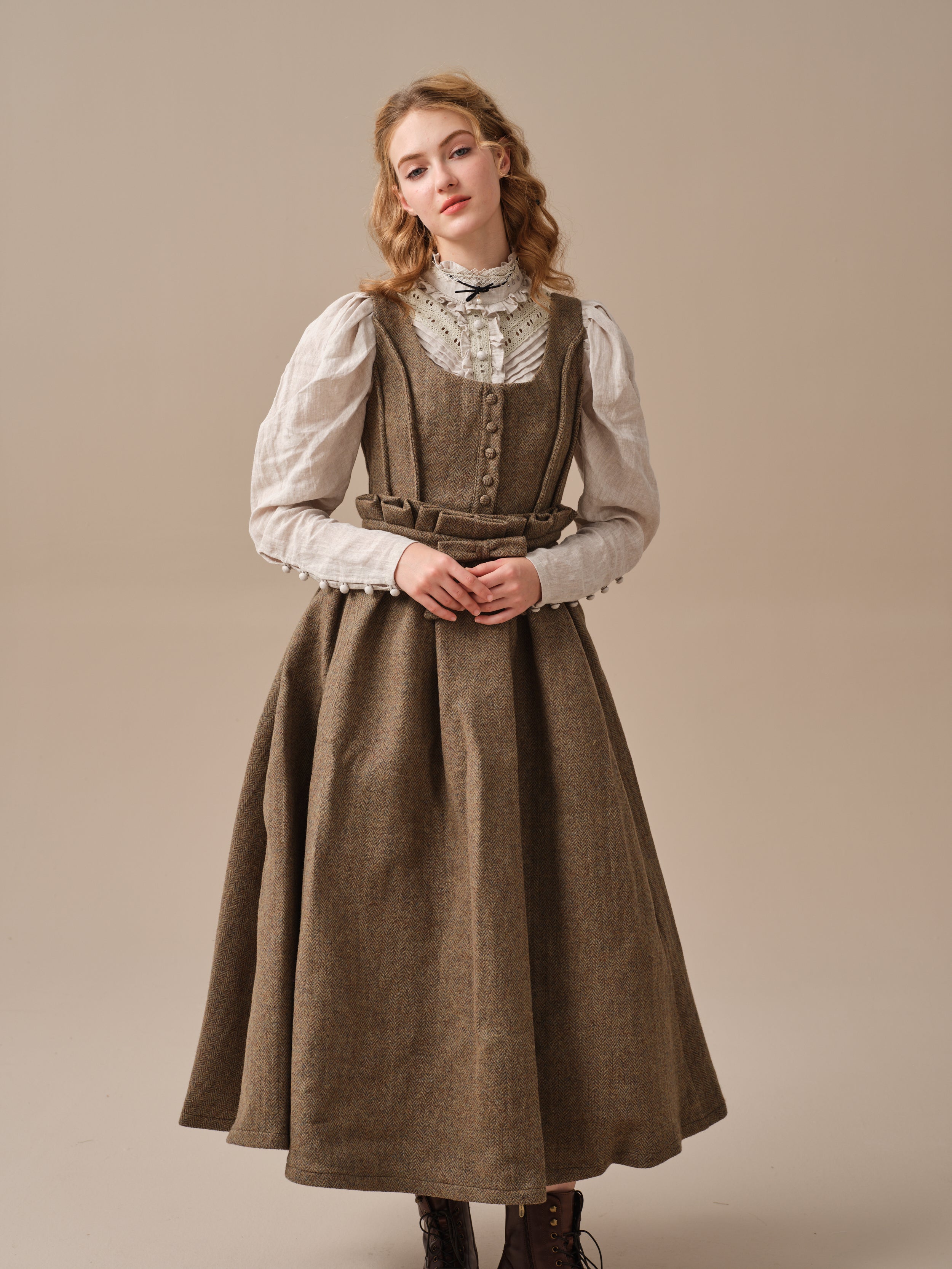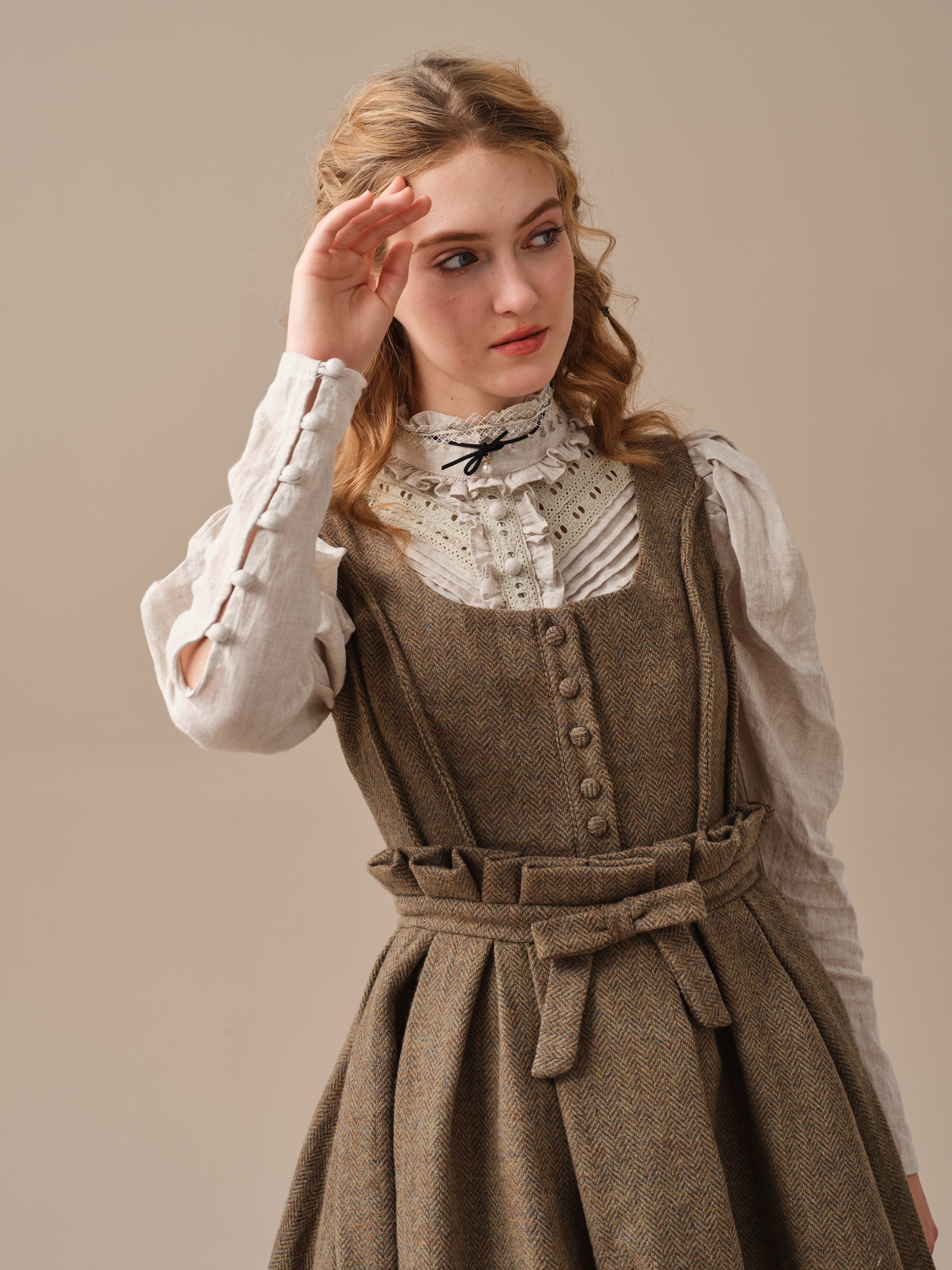Step into a world of romance and sophistication in this wool dress, designed to captivate hearts.