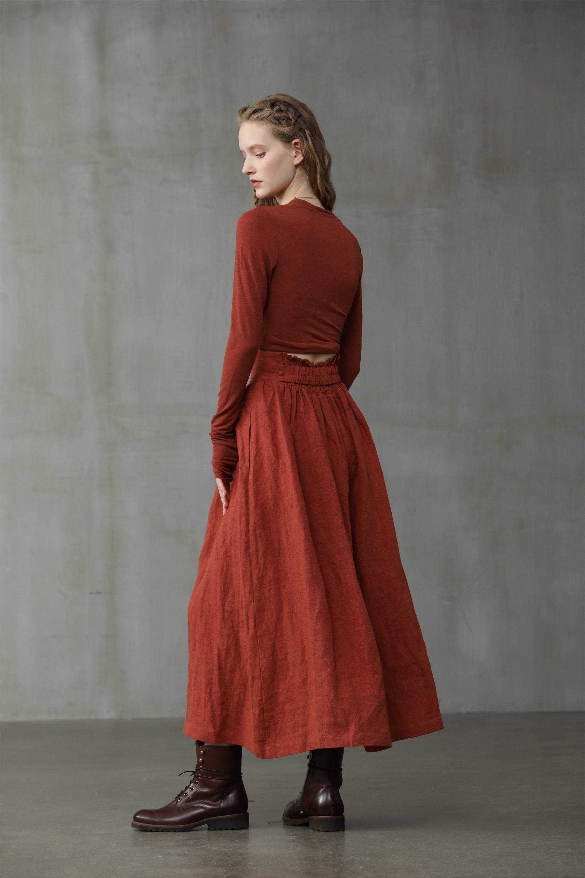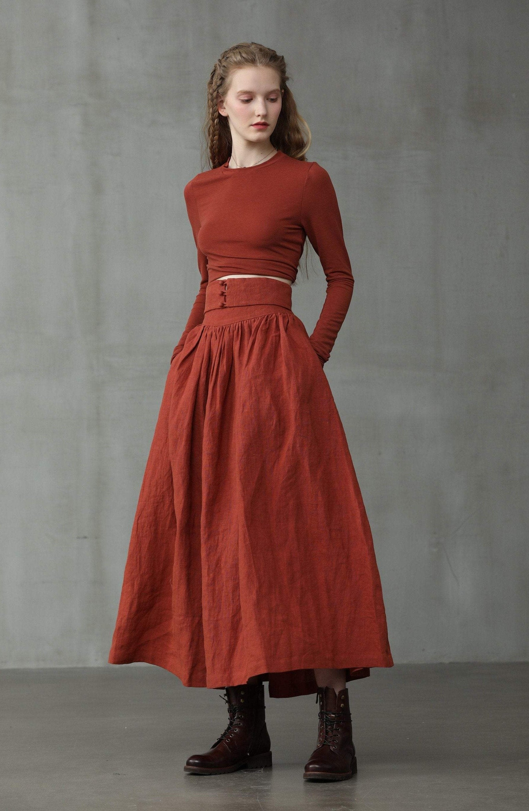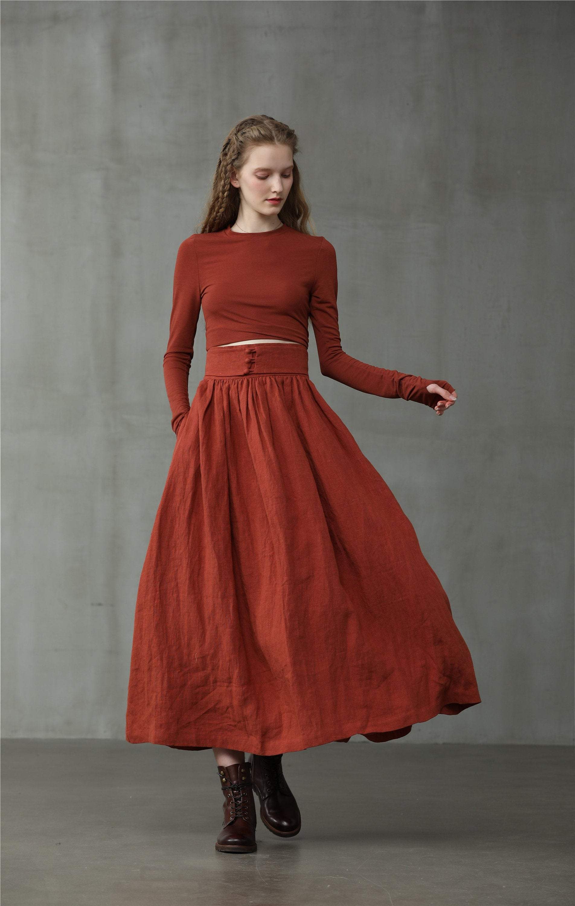 Featuring a a classic styled waist with buttons on the front, elastic waistband, and a maxi-length, deep pockets.
