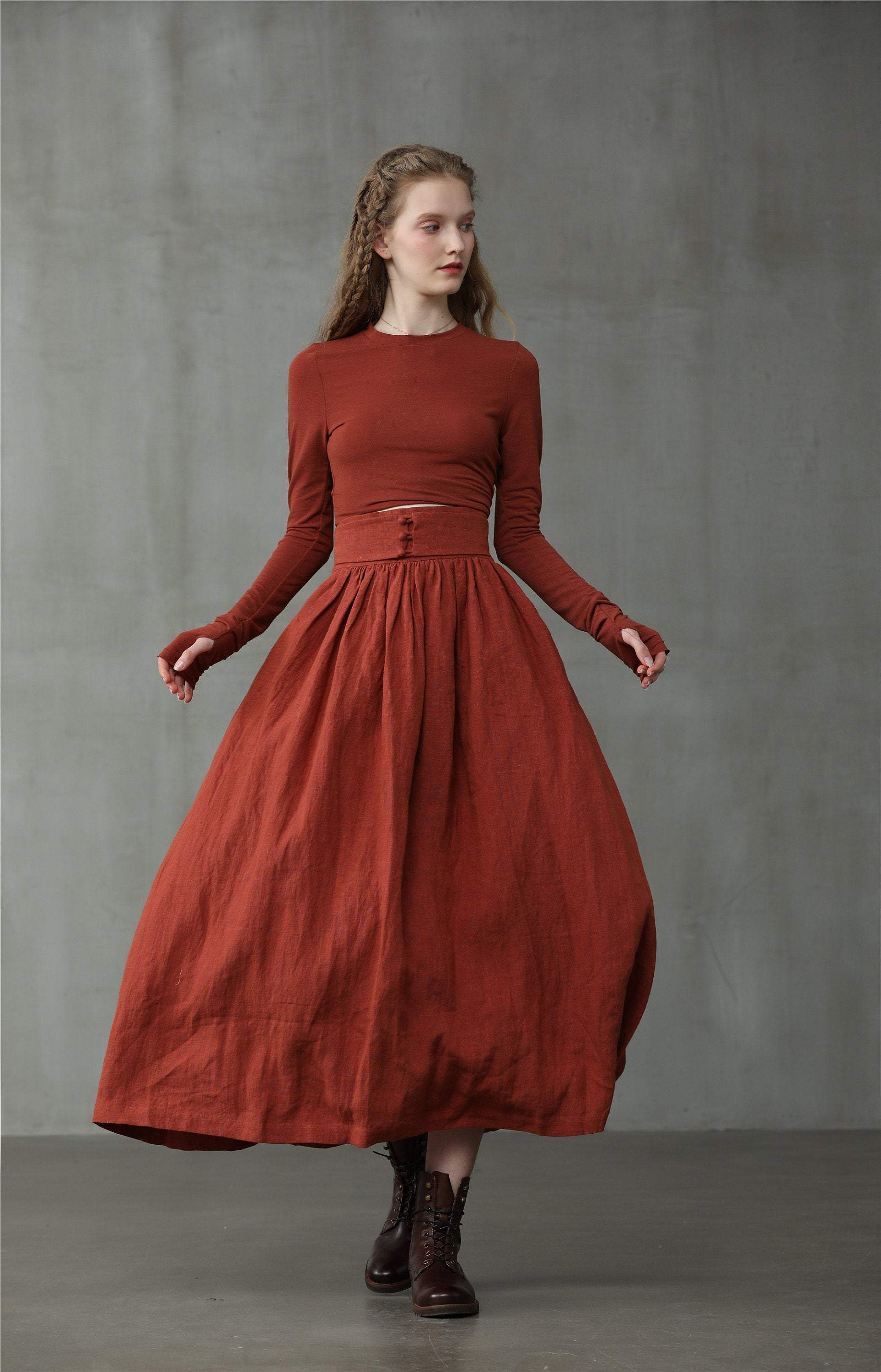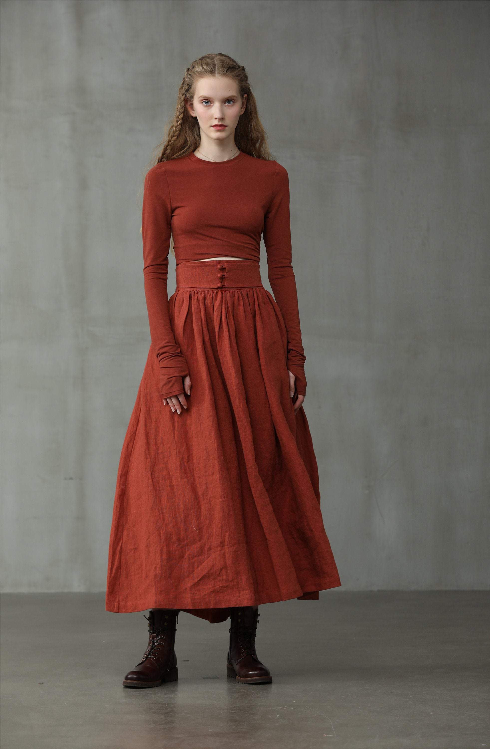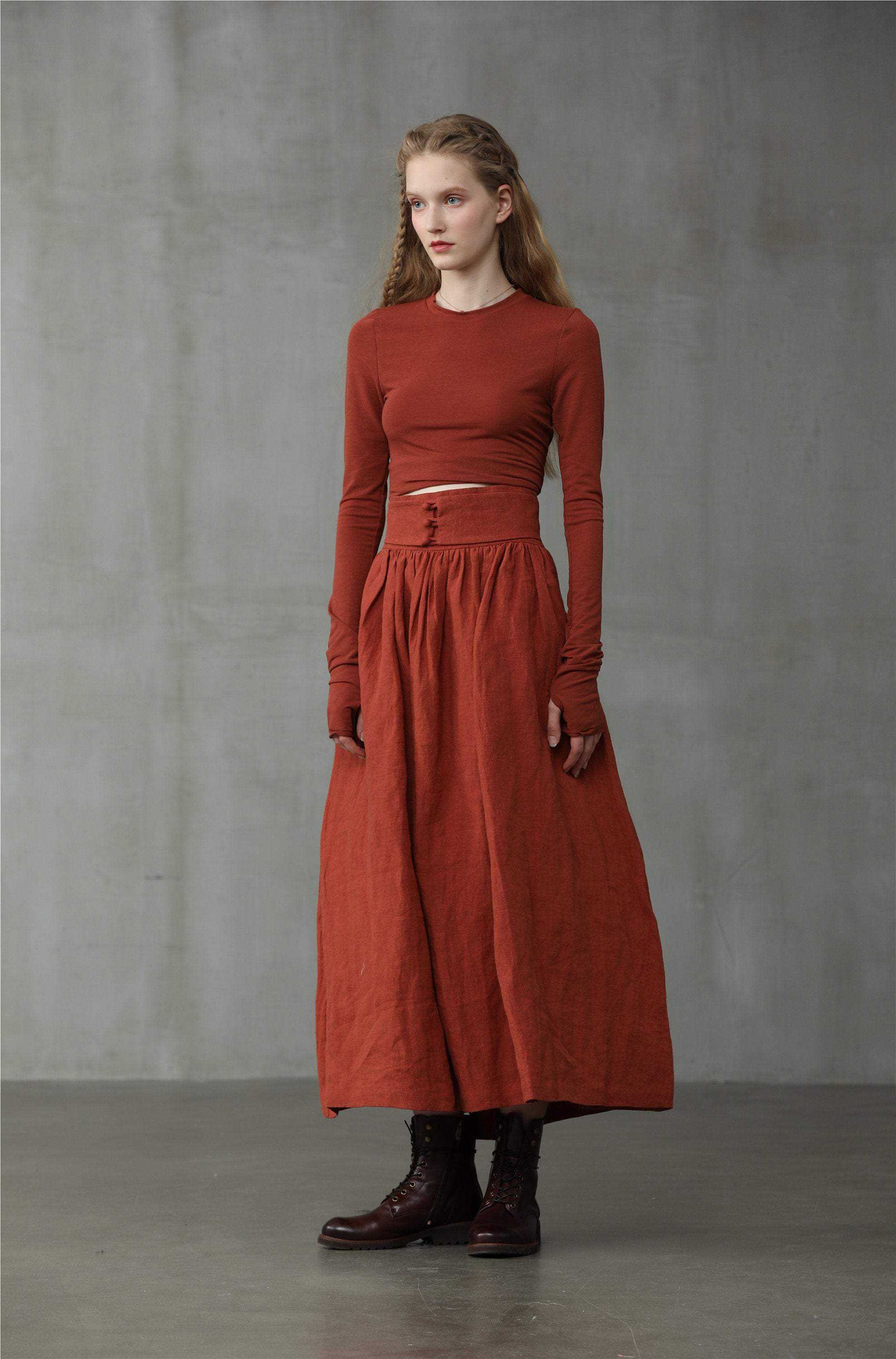 Featuring a a classic styled waist with buttons on the front, elastic waistband, and a maxi-length, deep pockets.