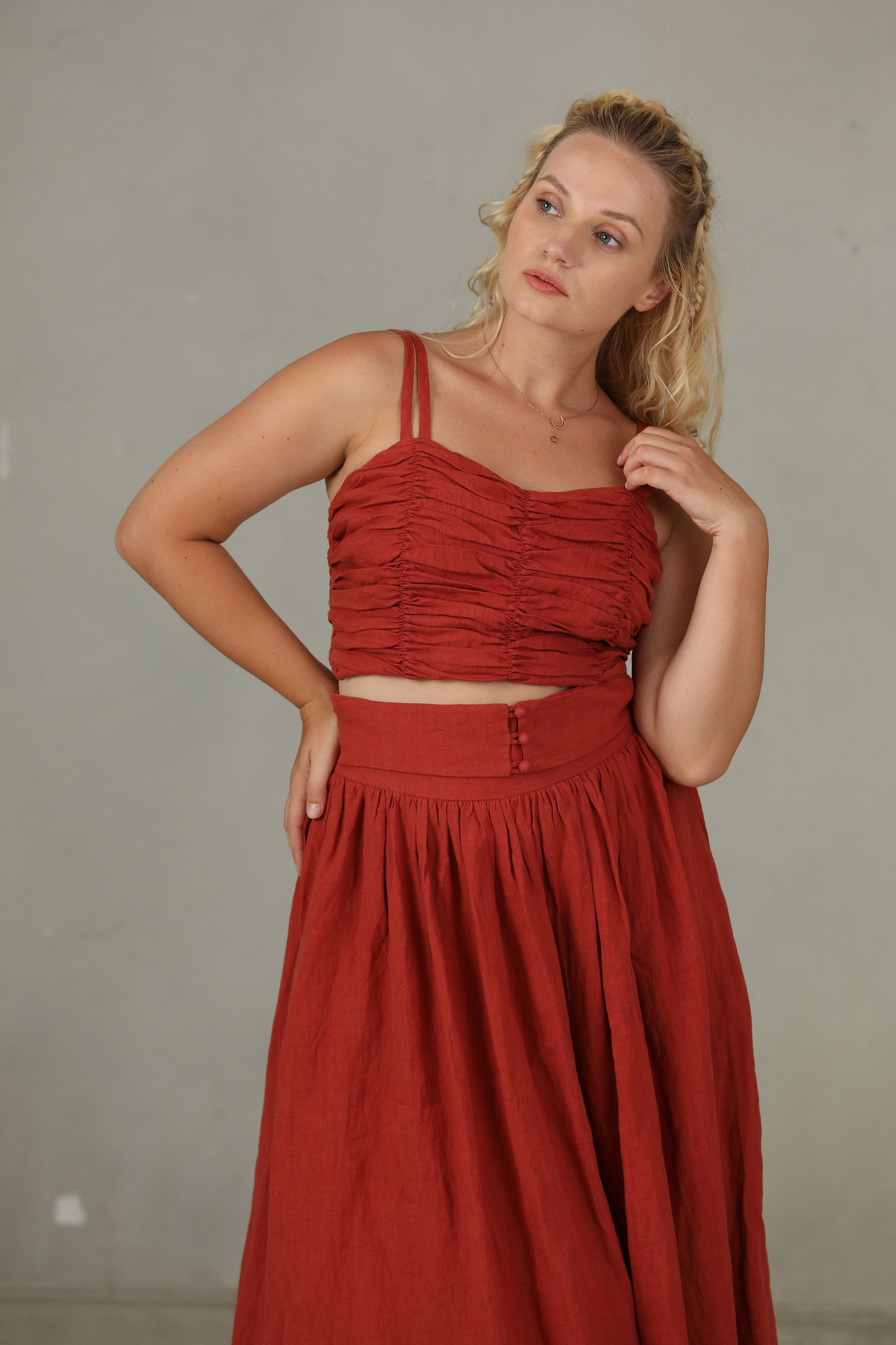 Enjoy the weather in this red linen A-line skirt from Linennaive. We know you're tempted.