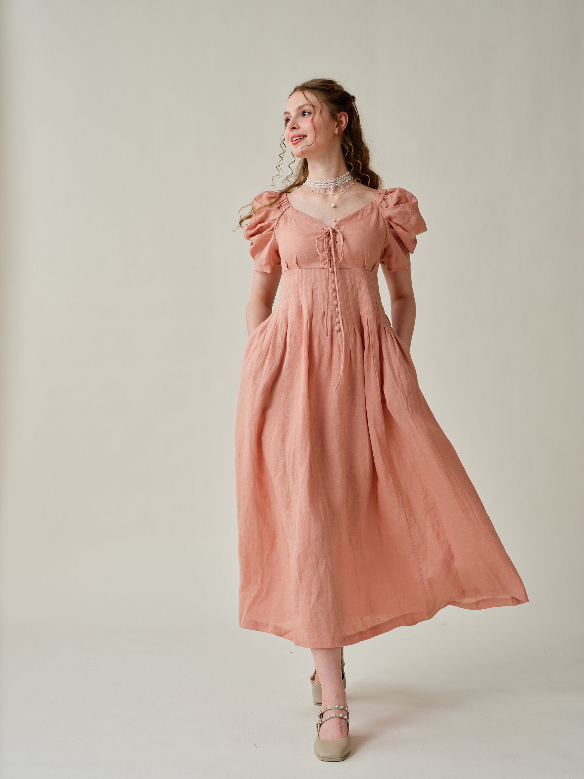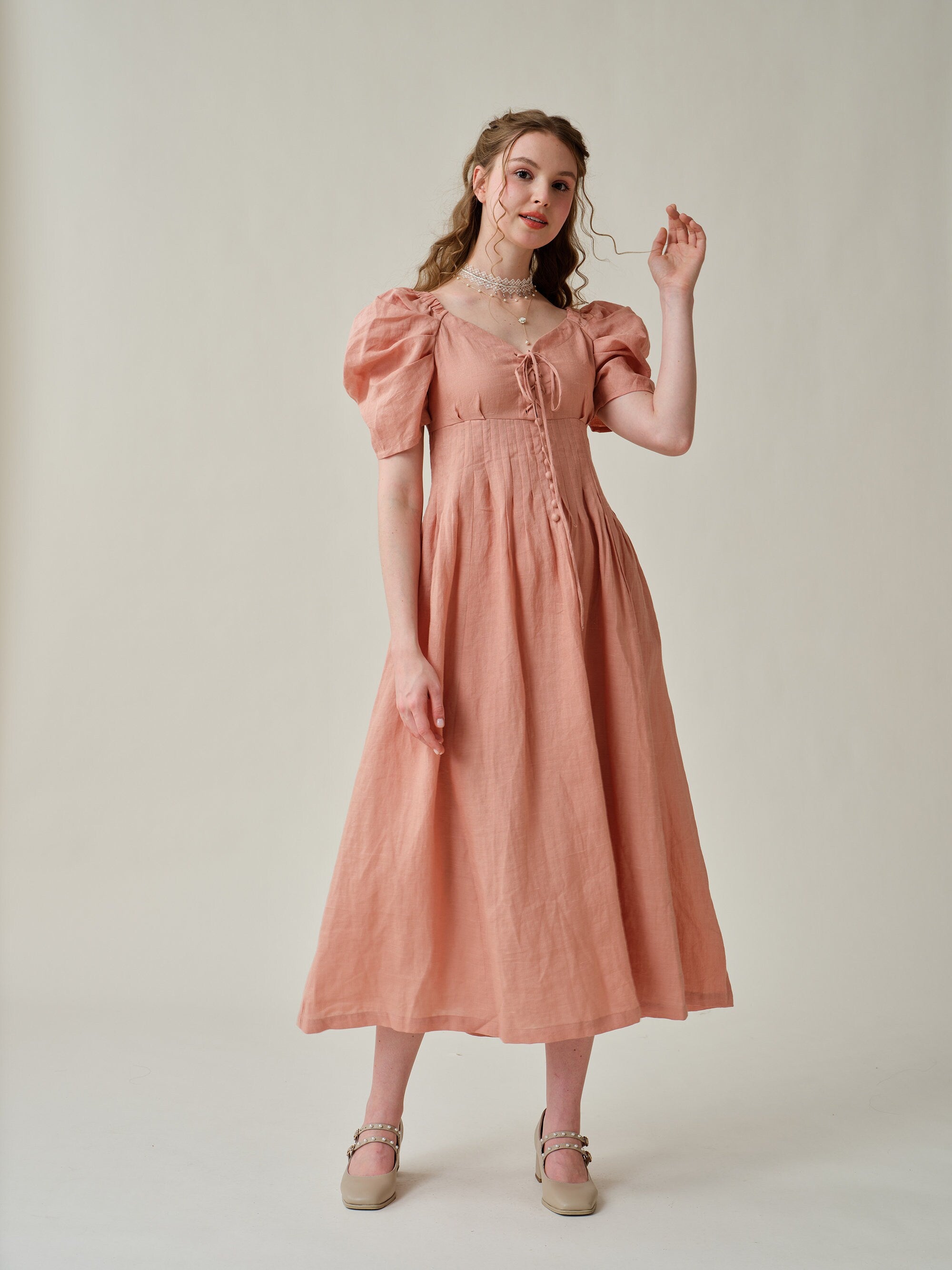 Crafted from breezy linen, this piece has a classic V-neck design combined with an elegant flare silhouette for charming style.