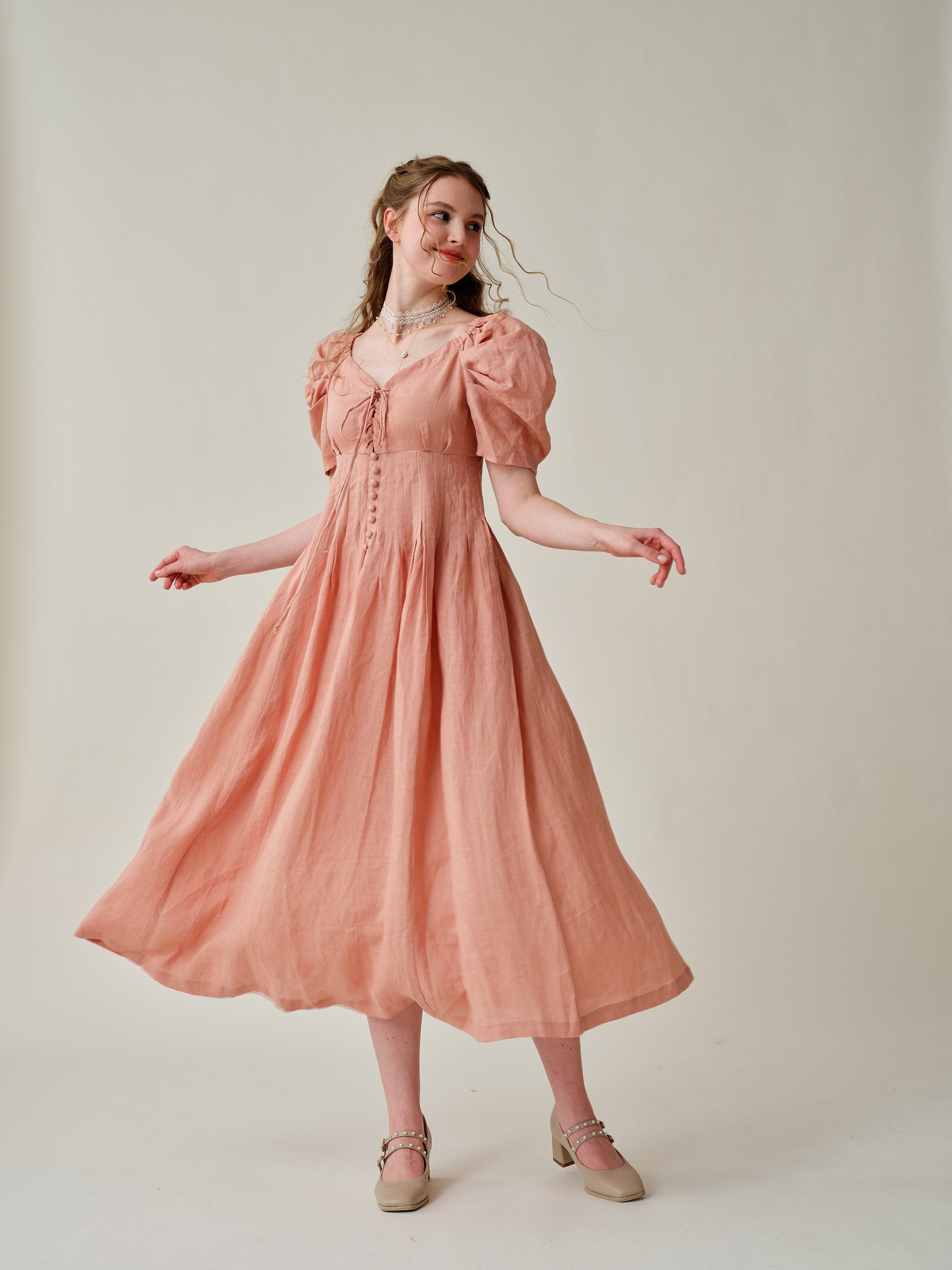 Crafted from breezy linen, this piece has a classic V-neck design combined with an elegant flare silhouette for charming style.