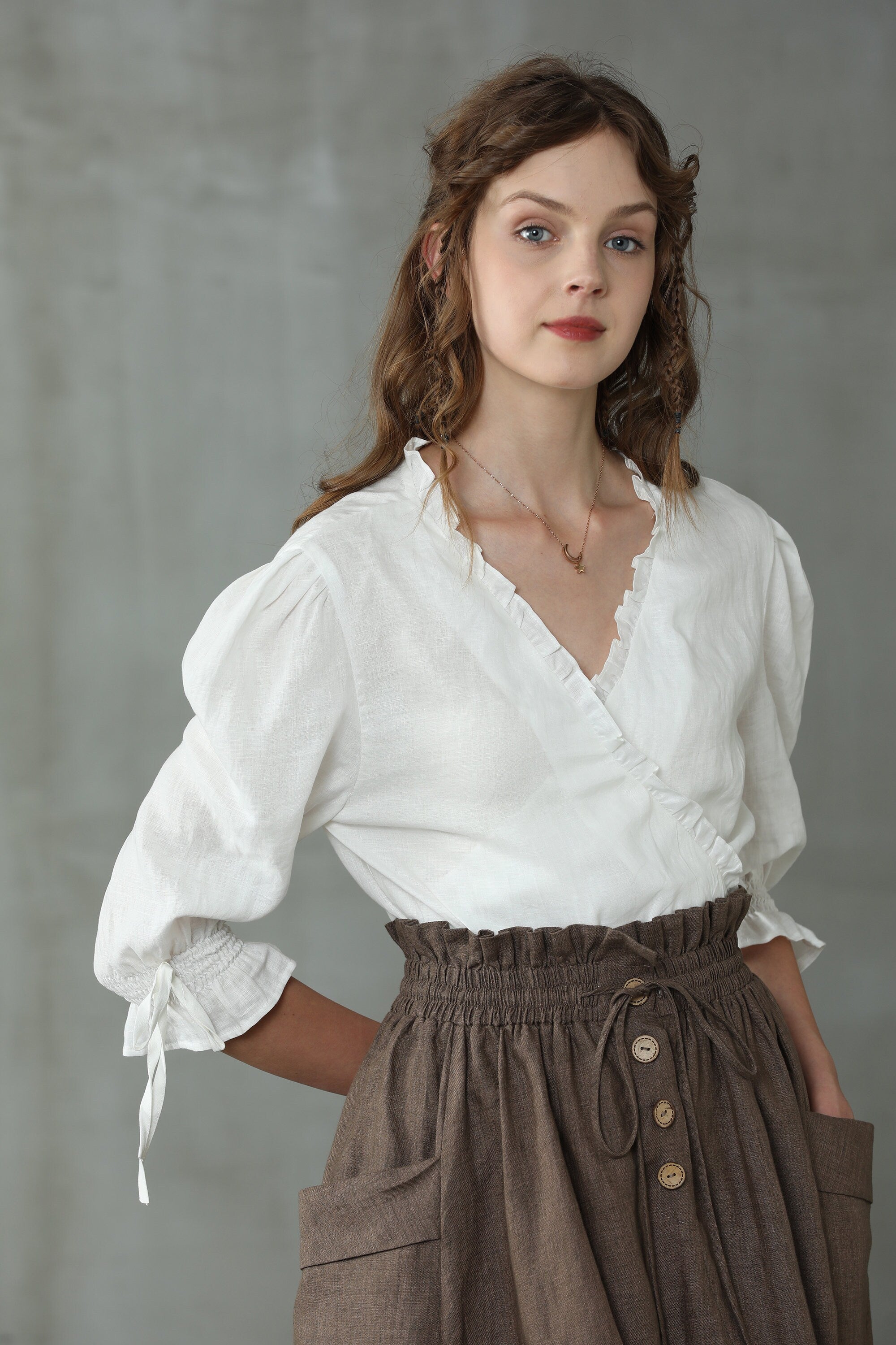 Crafted from soft linen and embellished with a ruffle collar, this blouse from linennaive will bring a delicate and feminine feel to your closet. A Spring/Summer wardrobe hero.