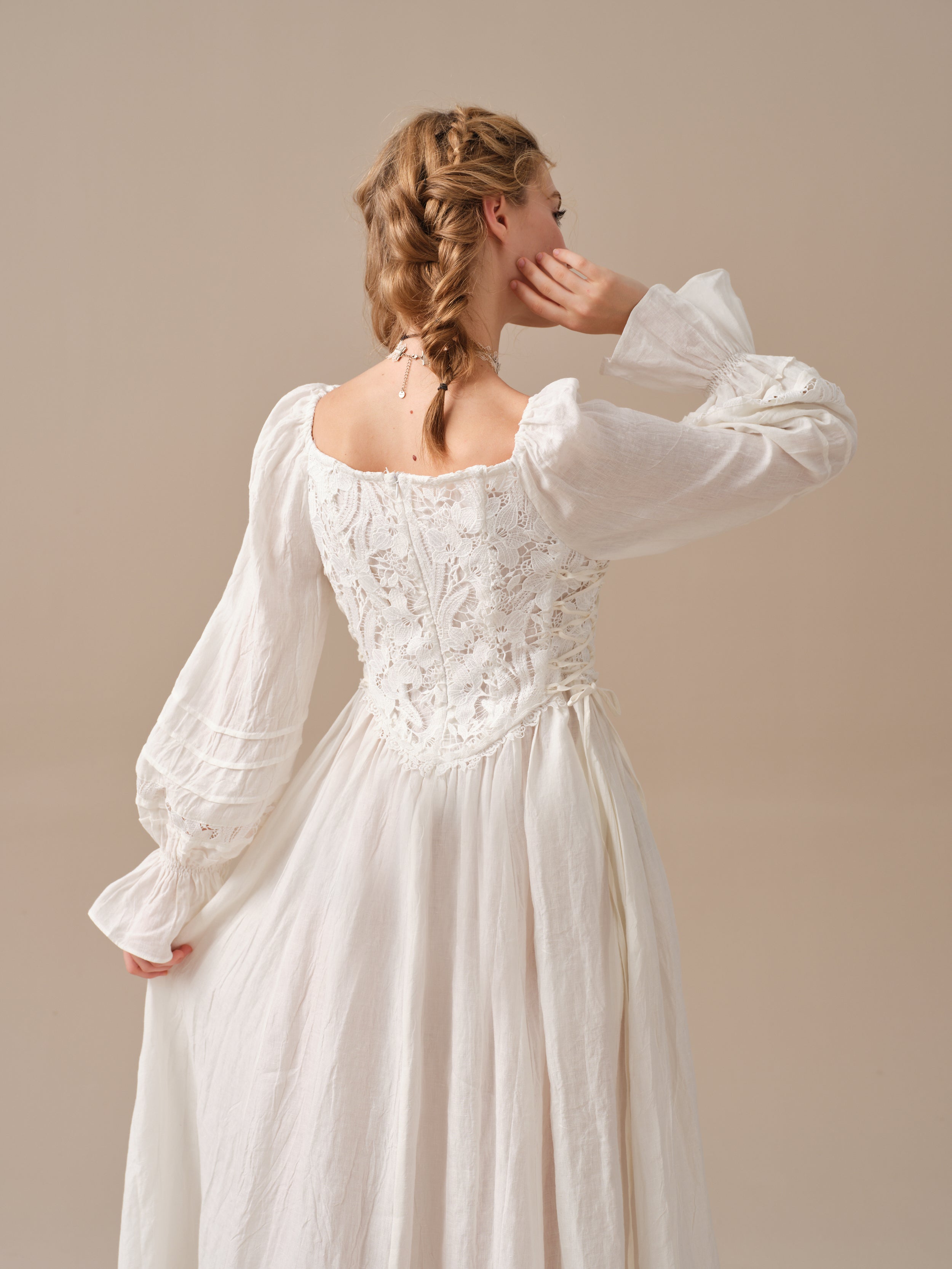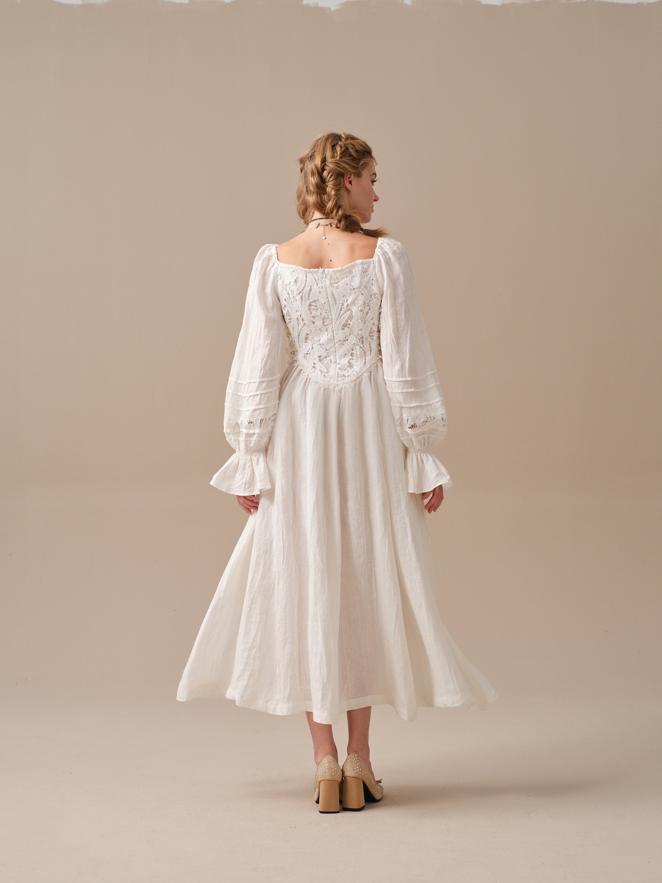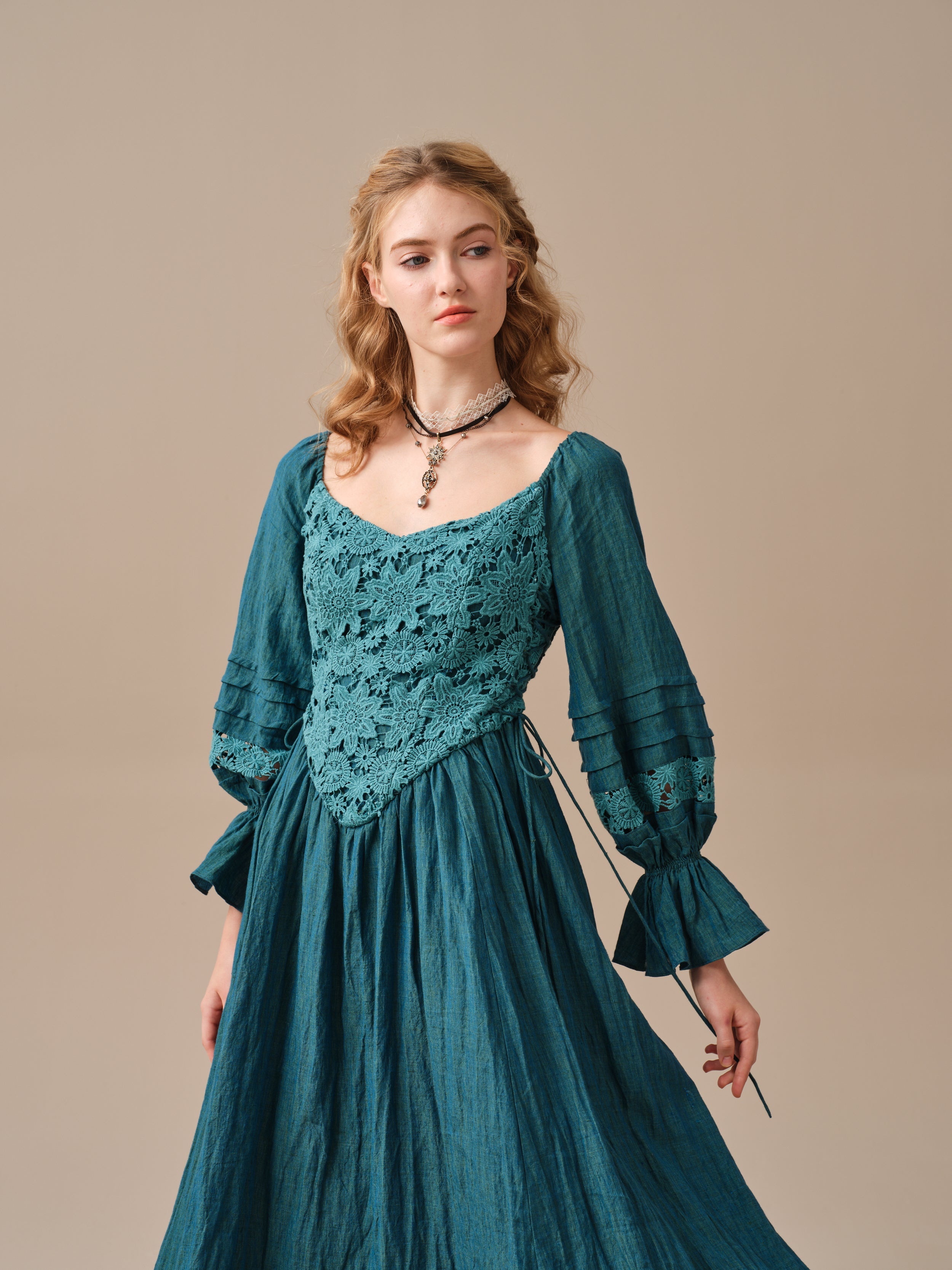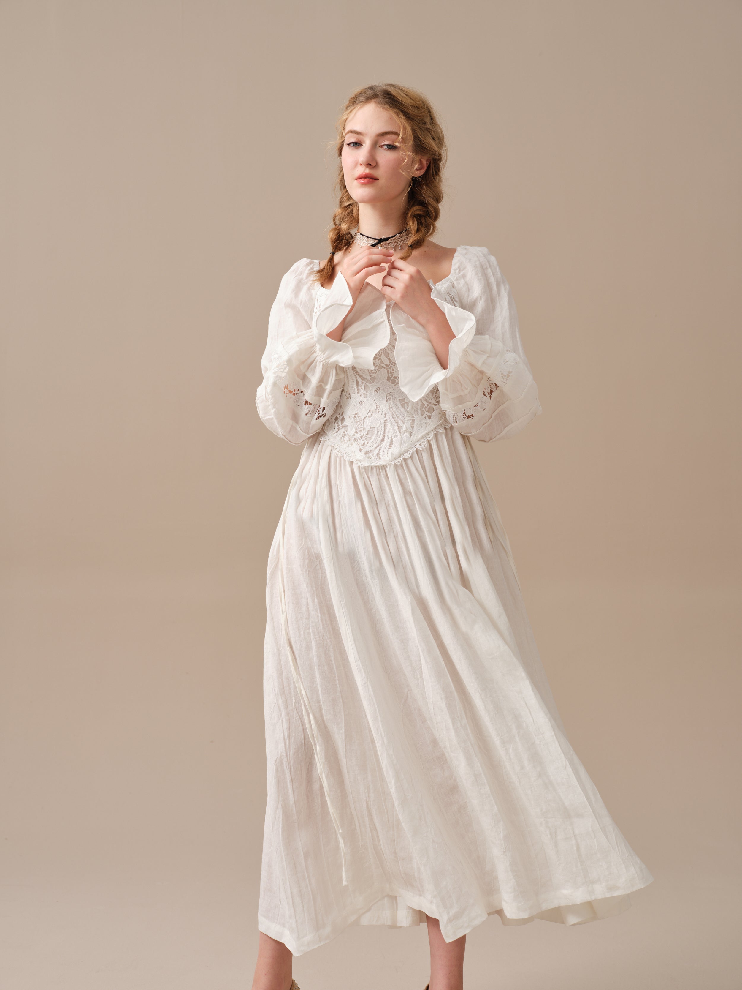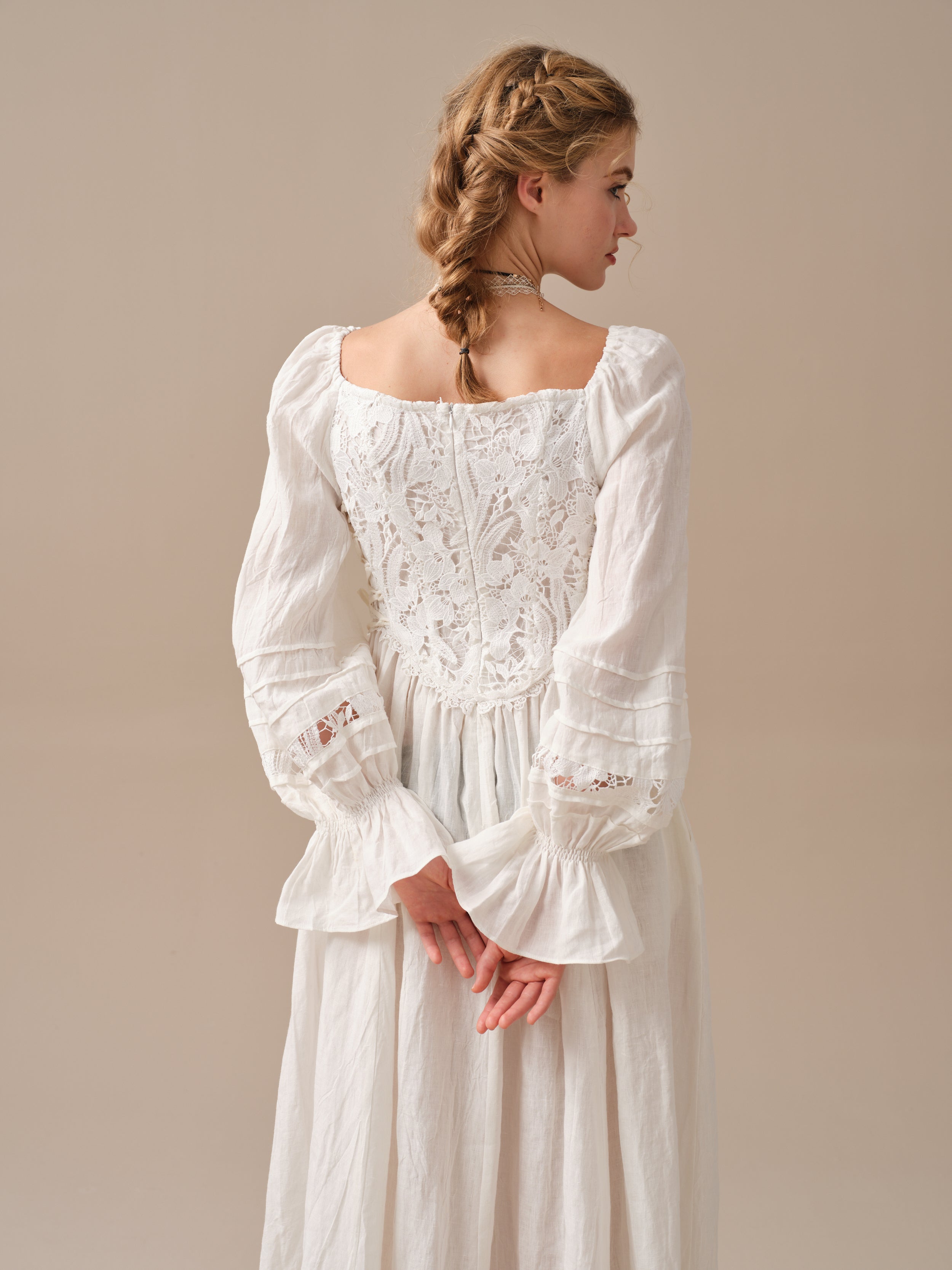 The color is so dreamy, this piece is embellished with delicate handmade lace embroidery in the same color on the front, back and sleeves, exuding timeless elegance and romance.