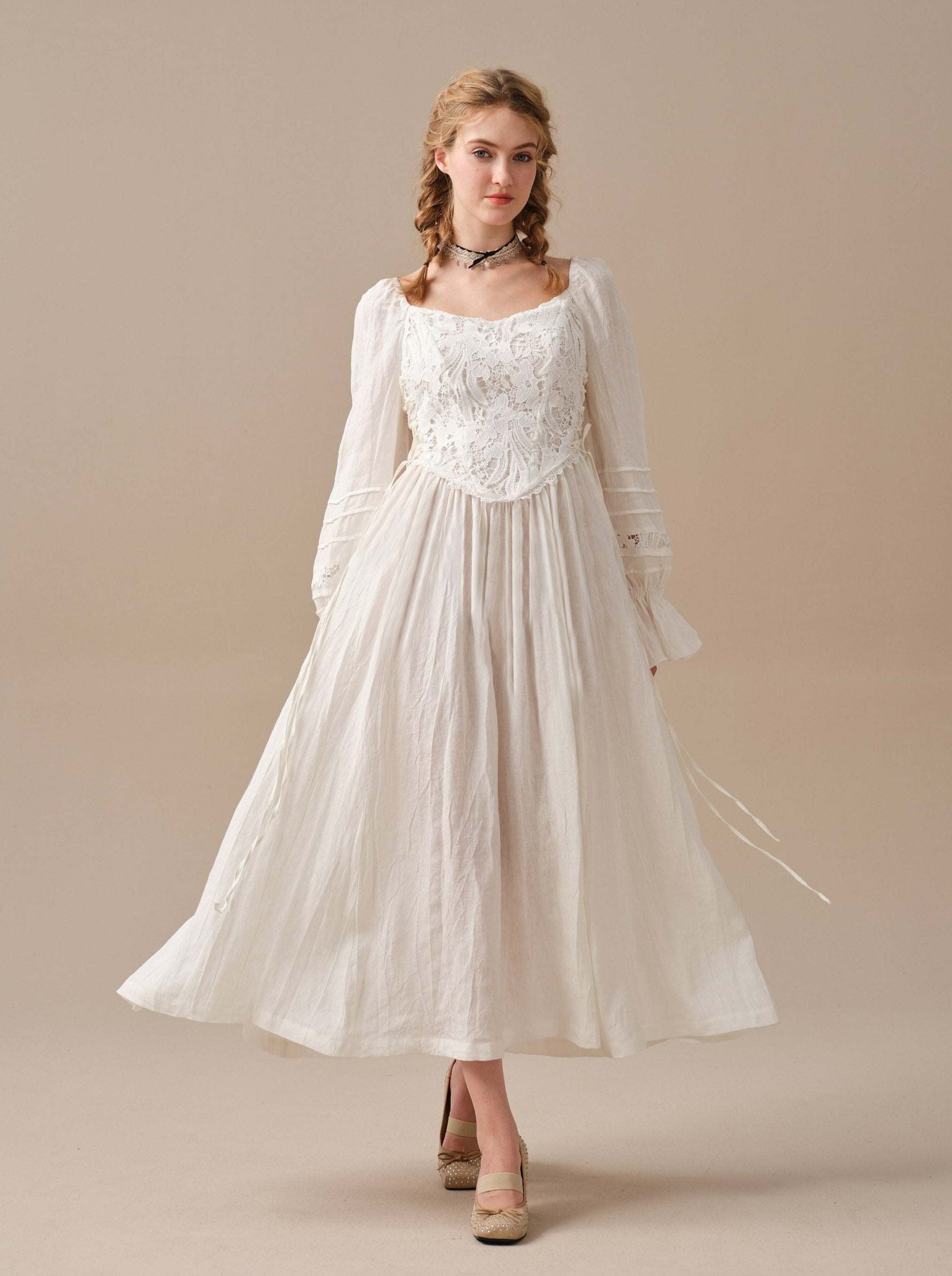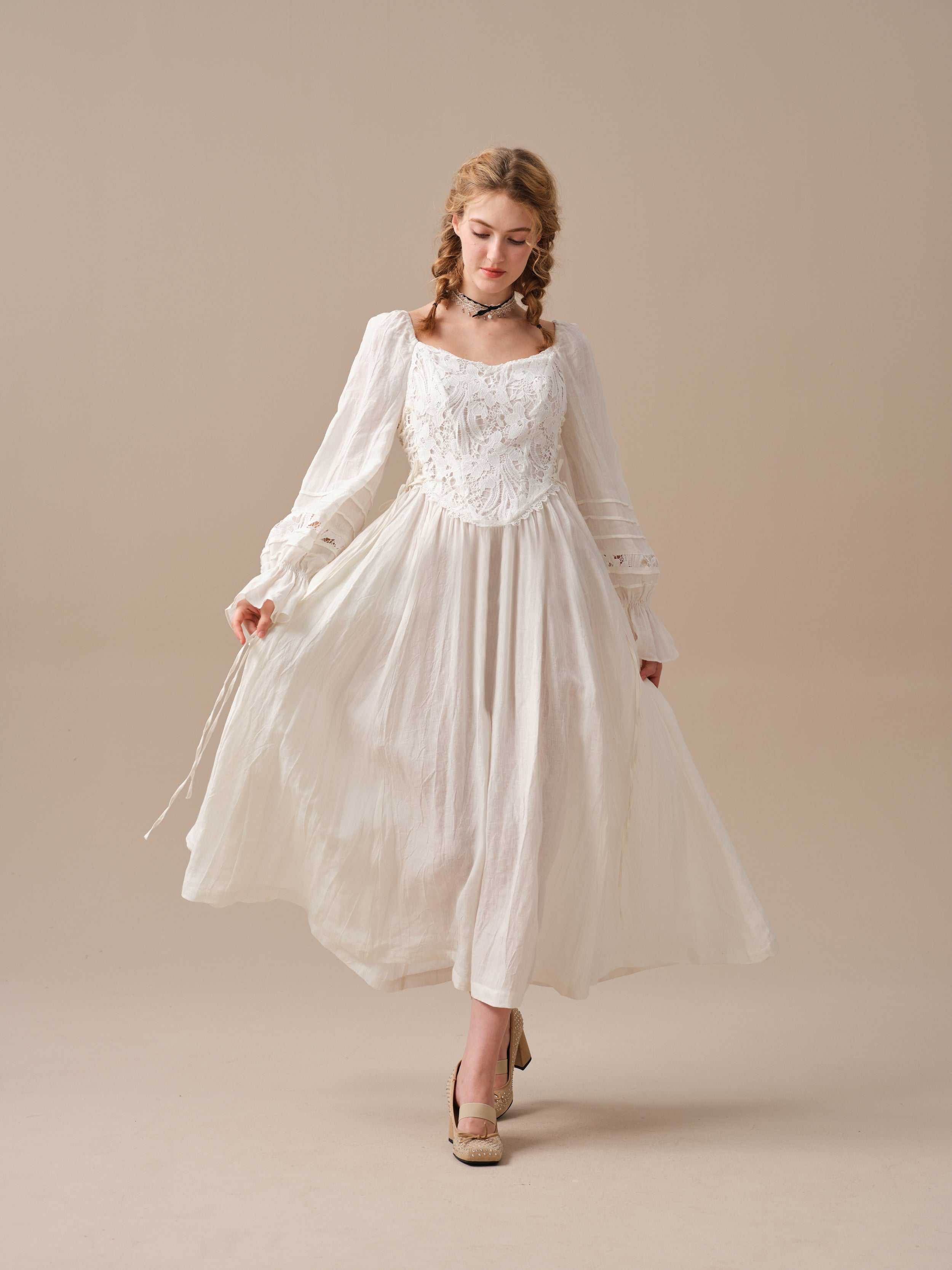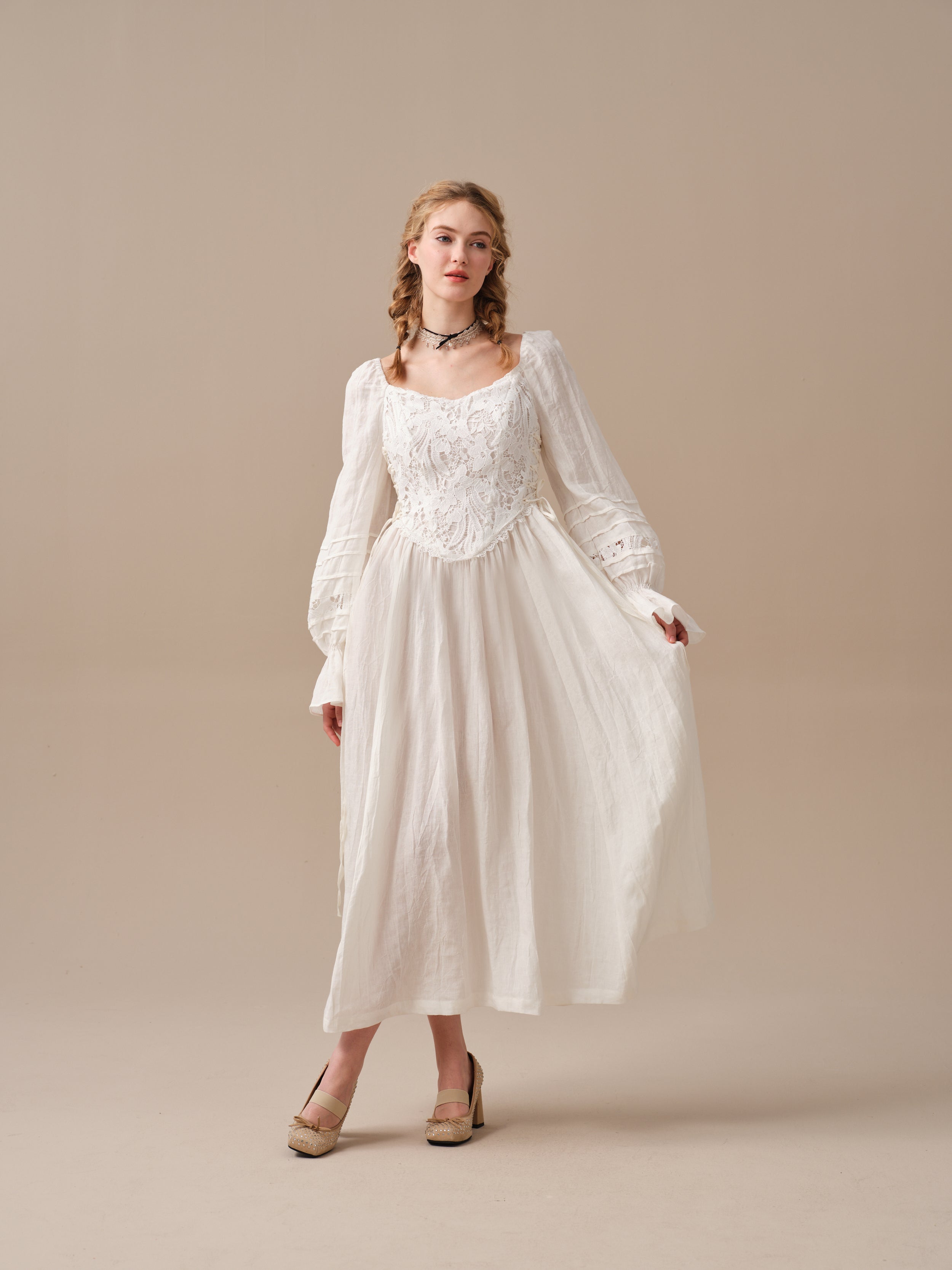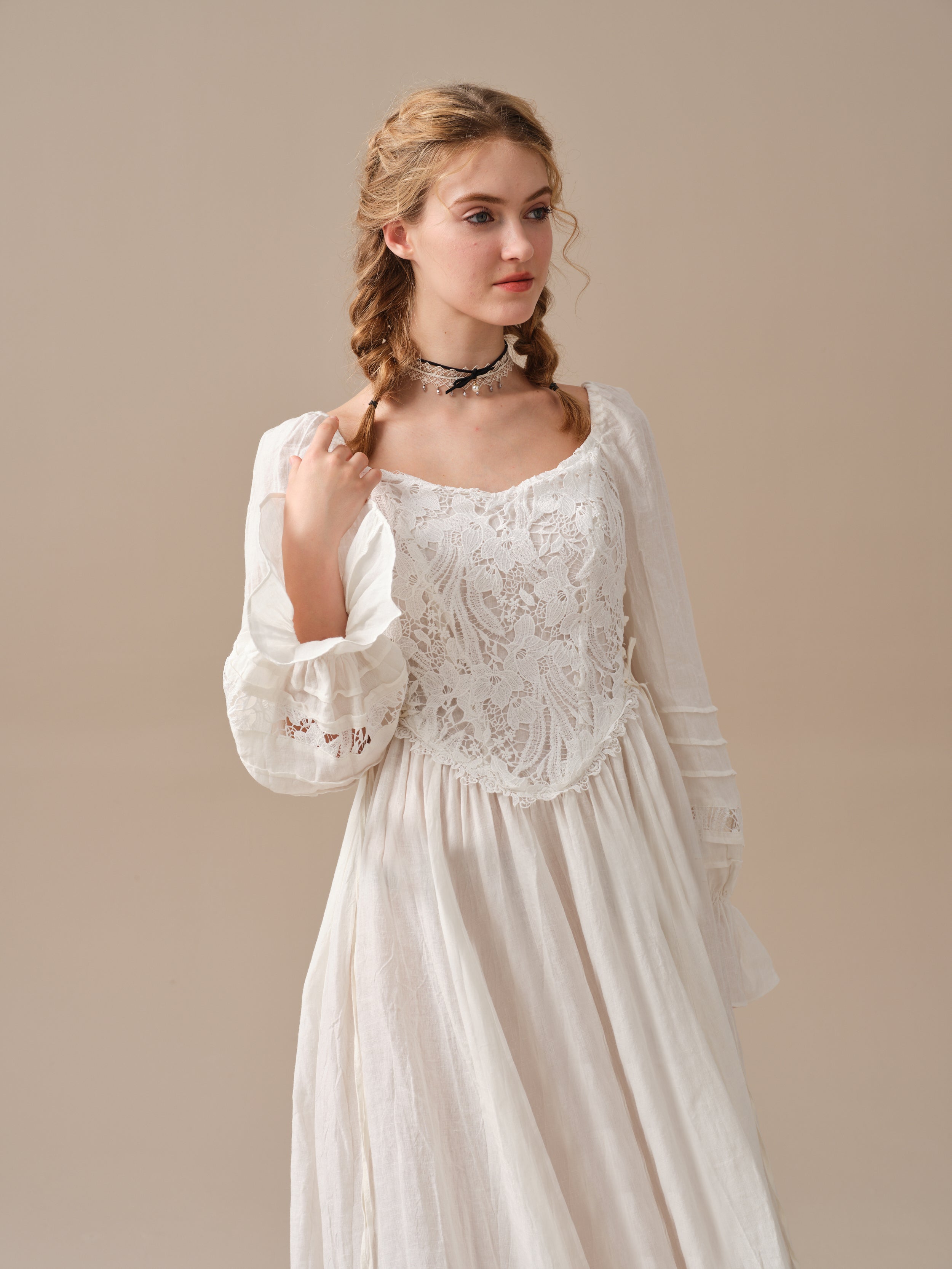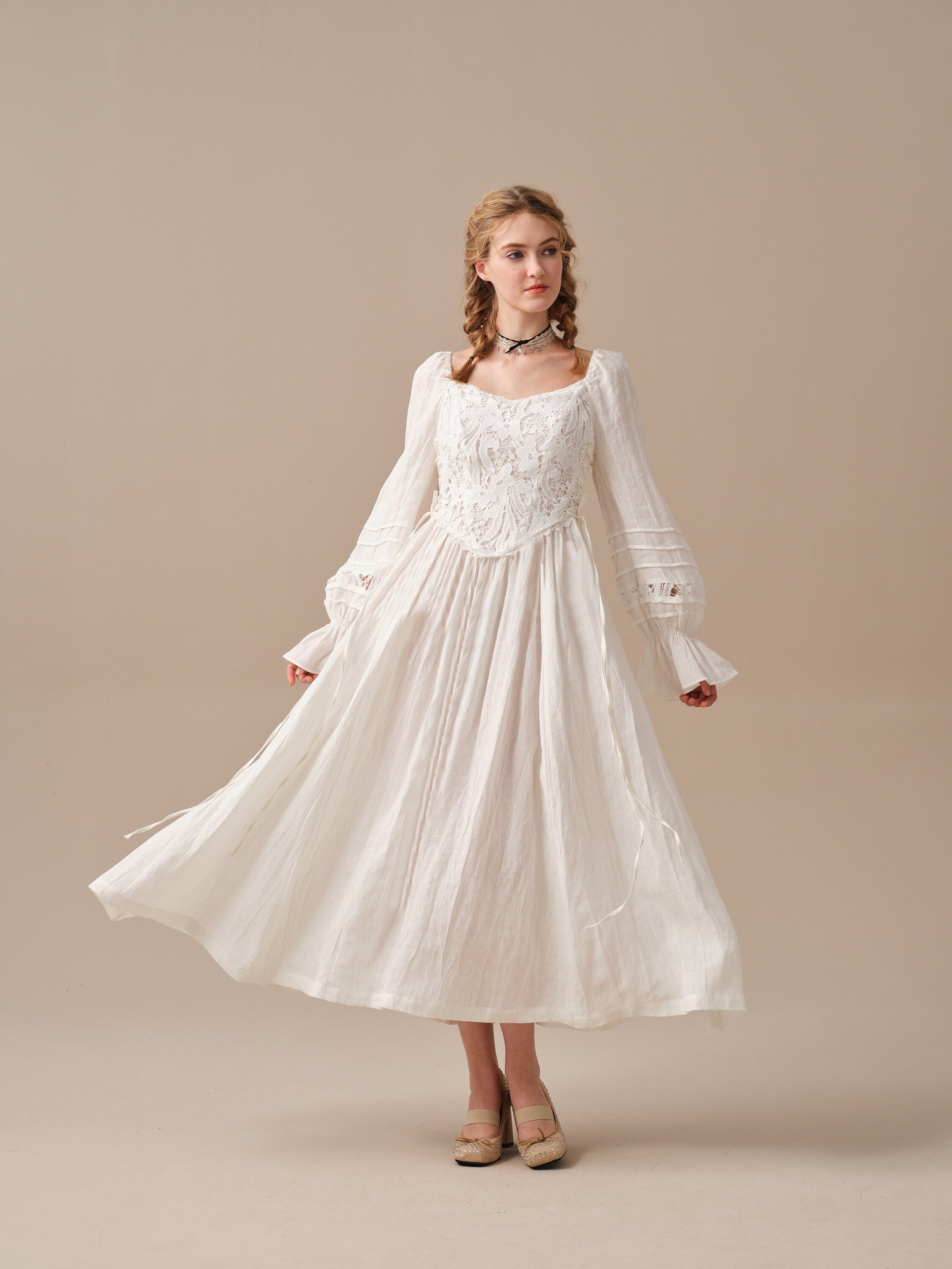 The color is so dreamy, this piece is embellished with delicate handmade lace embroidery in the same color on the front, back and sleeves, exuding timeless elegance and romance.
