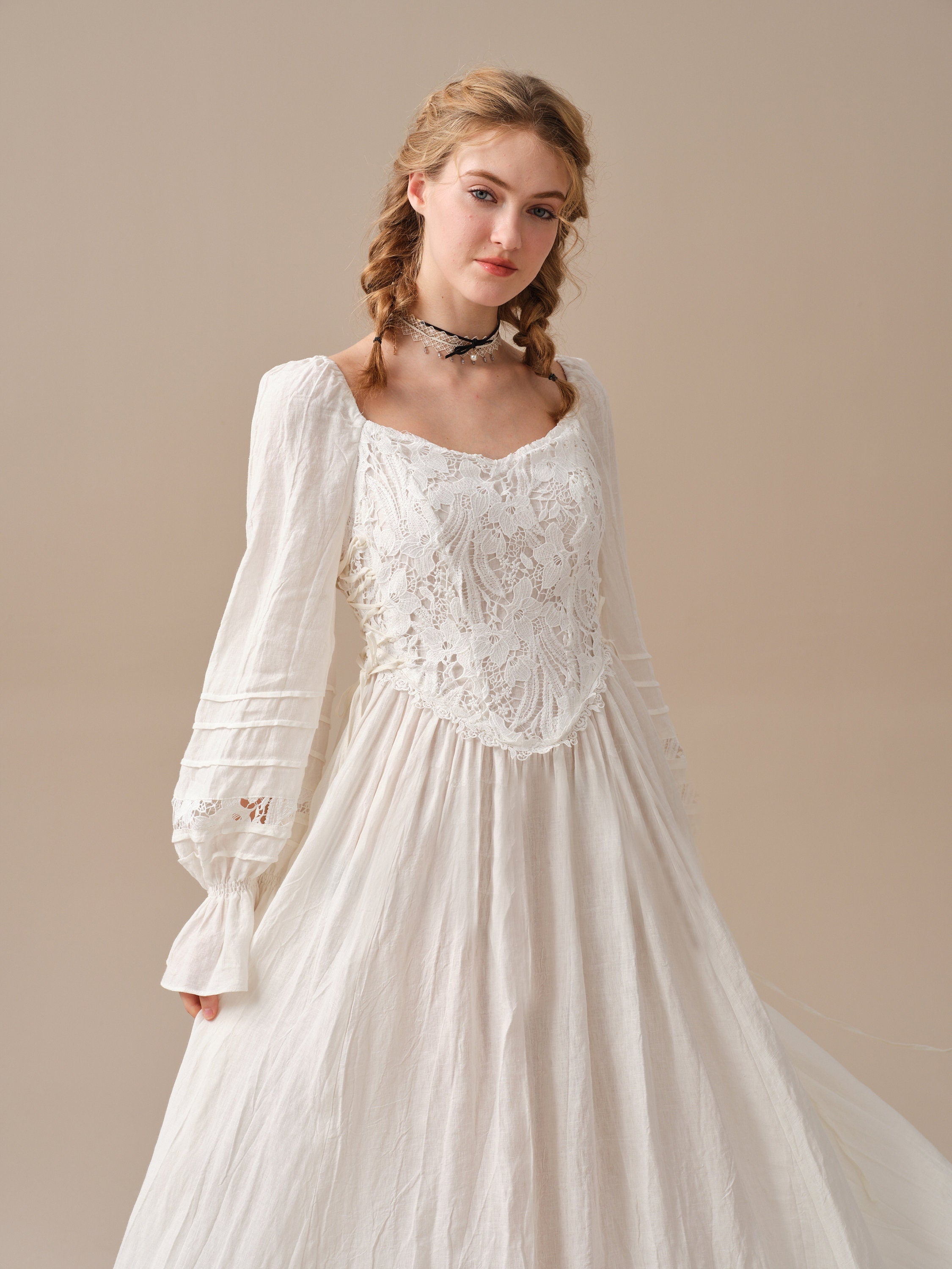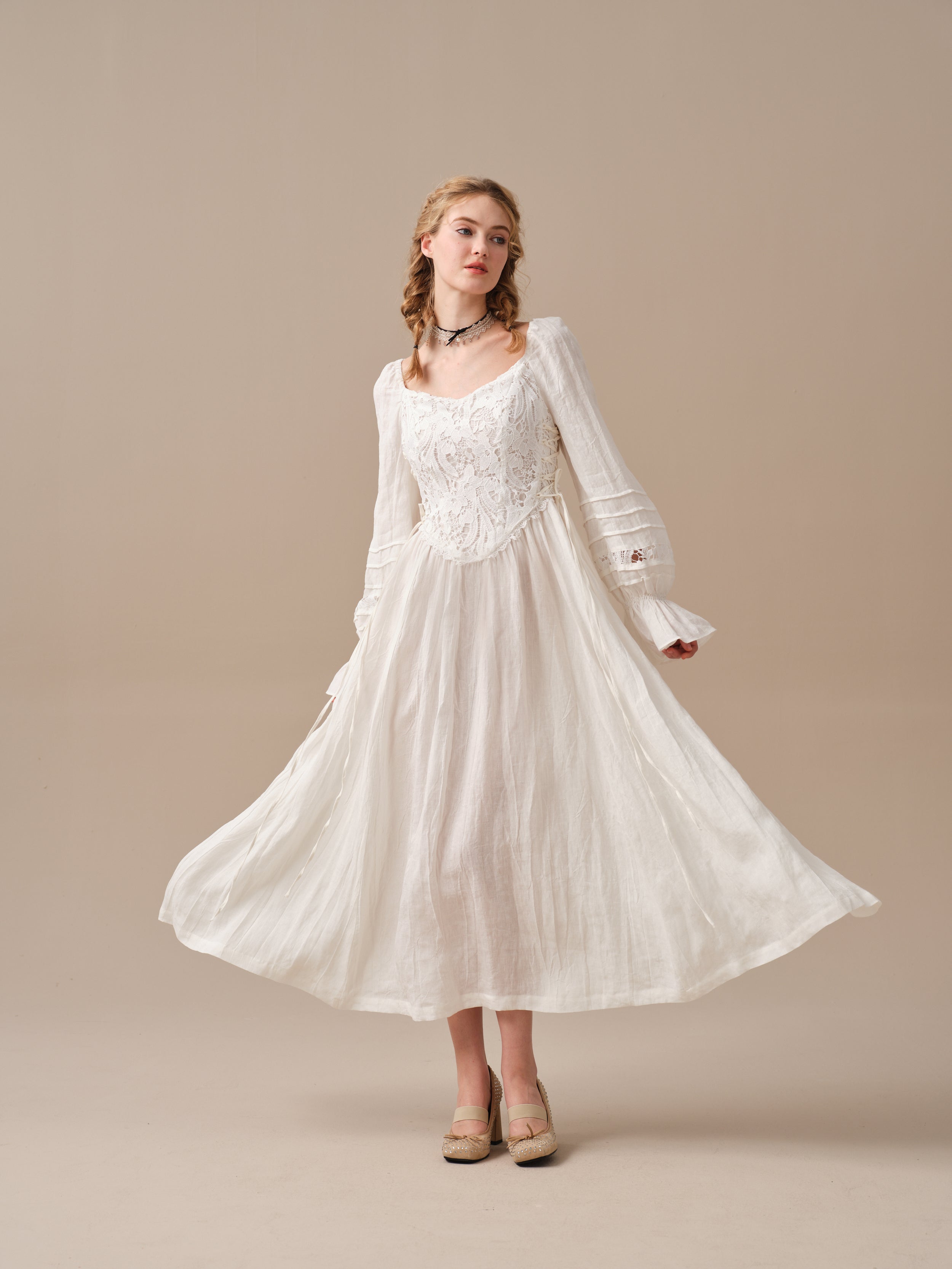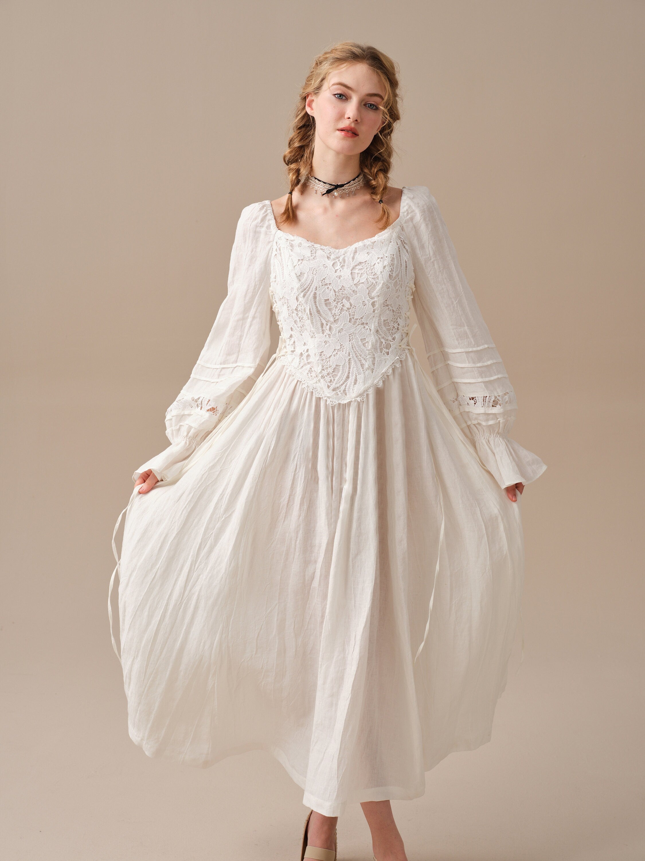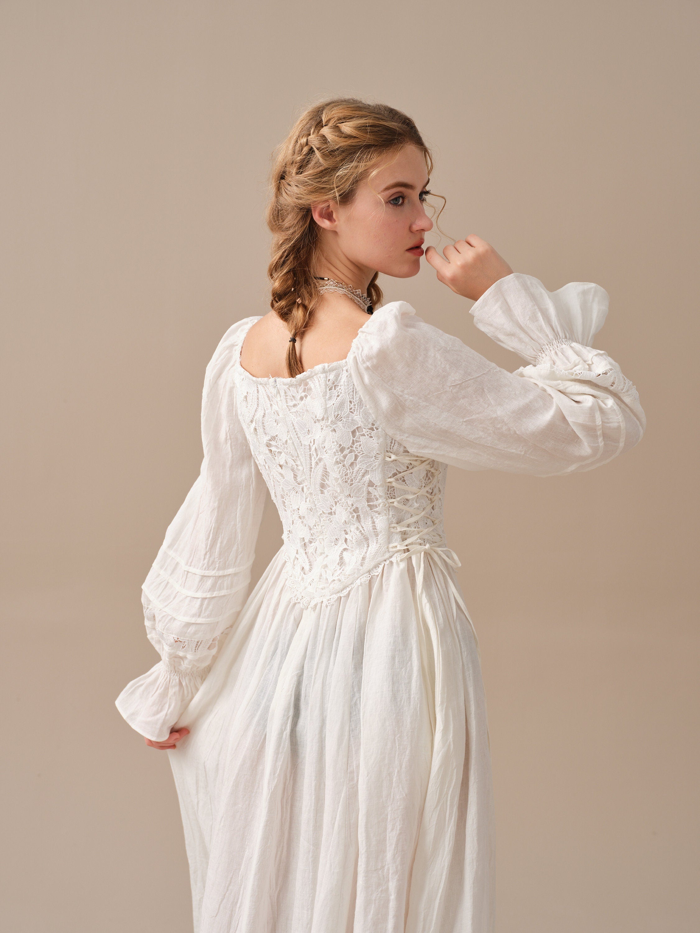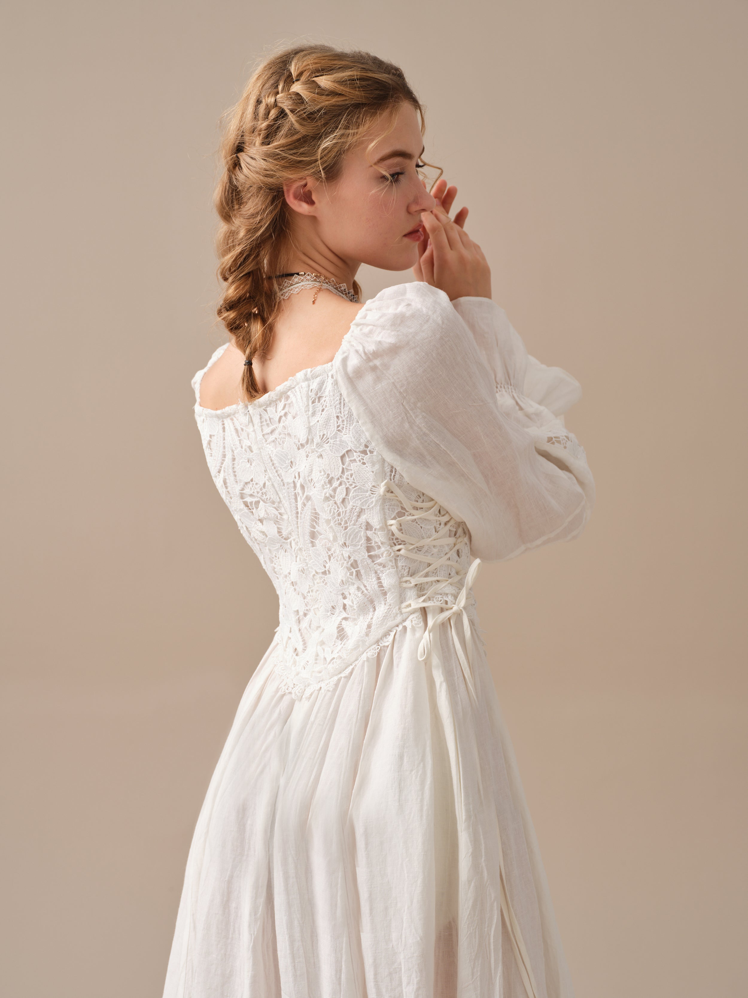 The color is so dreamy, this piece is embellished with delicate handmade lace embroidery in the same color on the front, back and sleeves, exuding timeless elegance and romance.