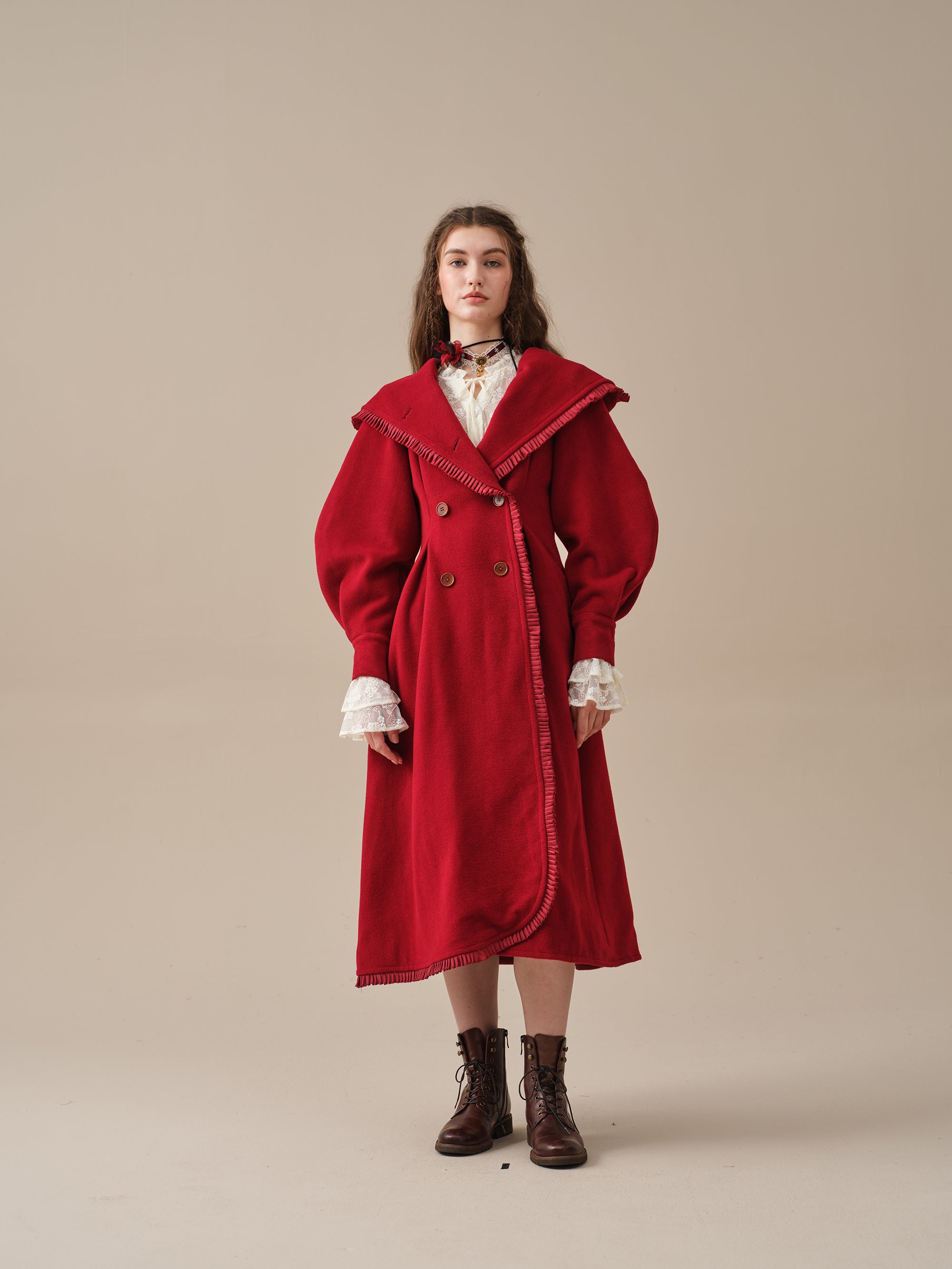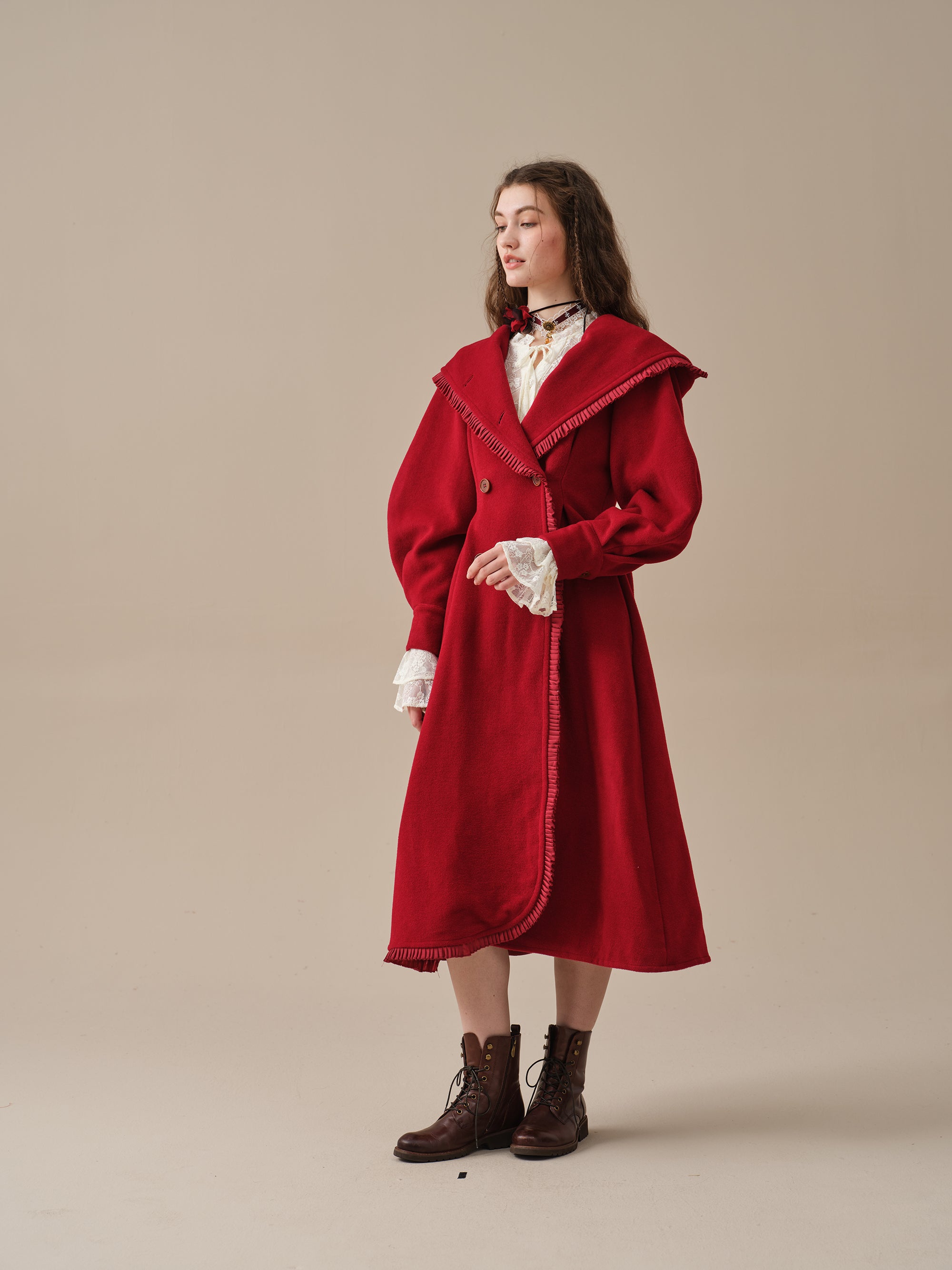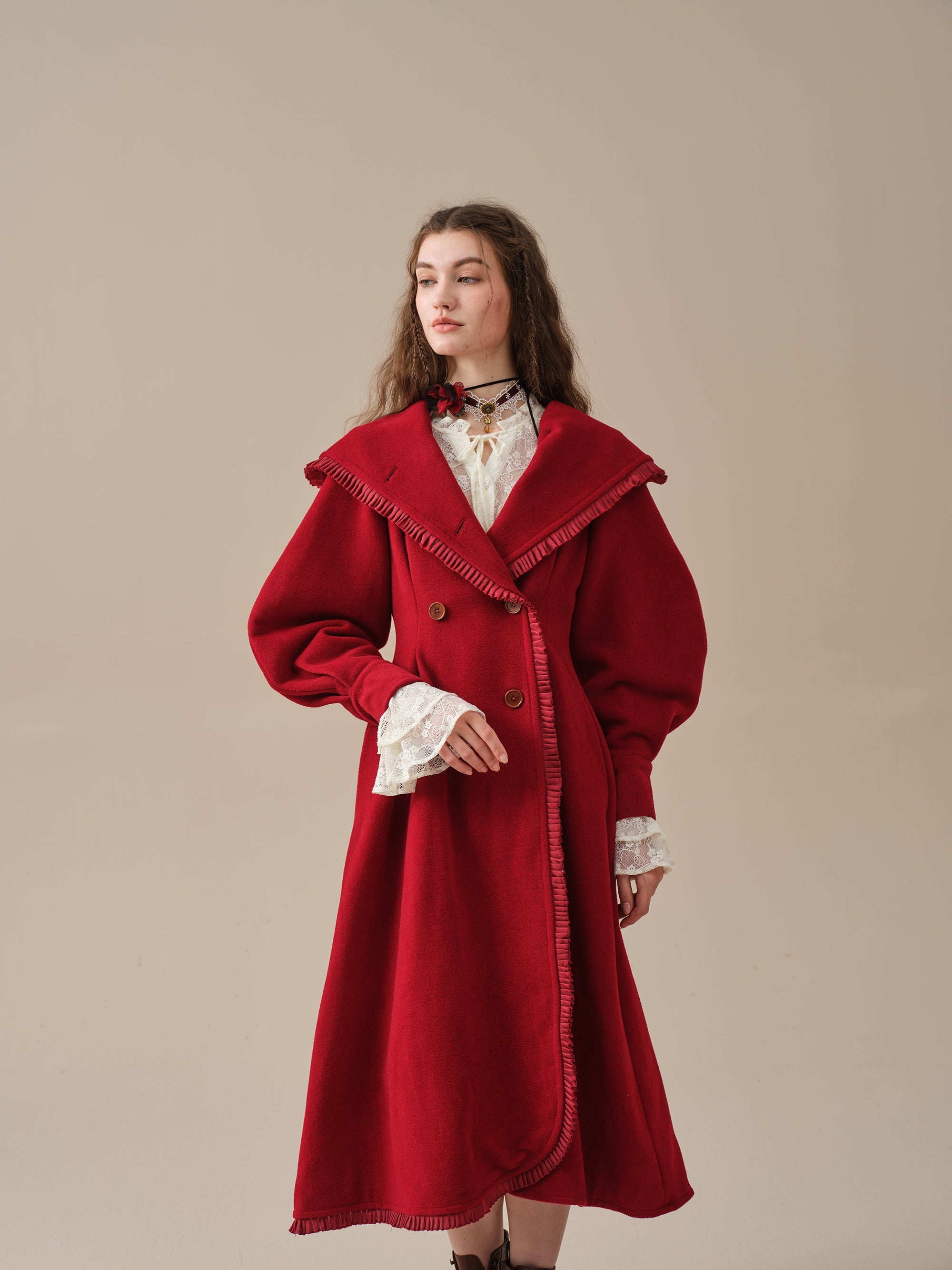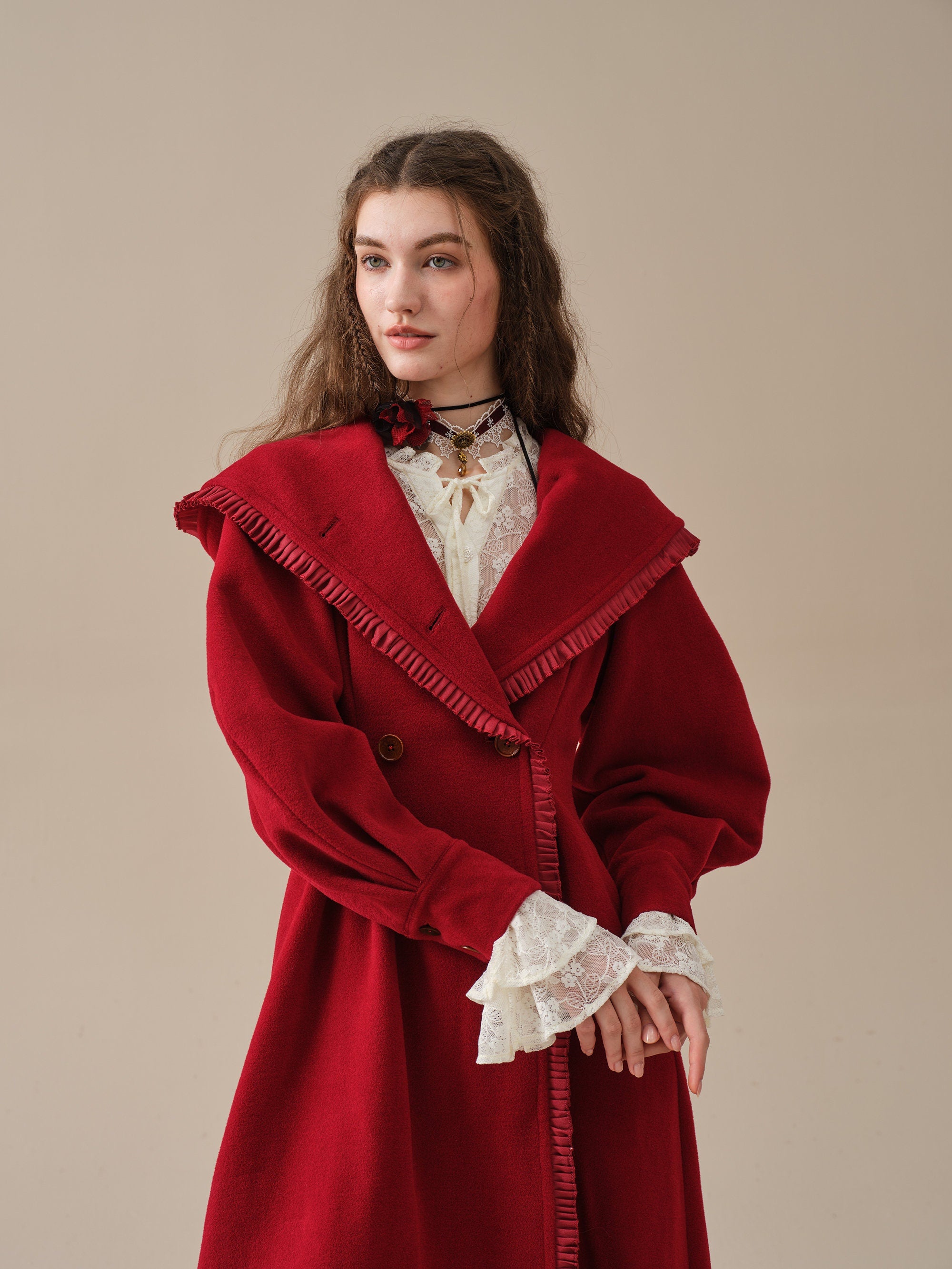 The generously-sized hood, reminiscent of fairytale coats, offers both protection against the elements and a touch of whimsy. The delicate ruffle trims akin to the petals of a blossoming flower, flutter playfully in the breeze, infusing your every step with a sense of enchantment.