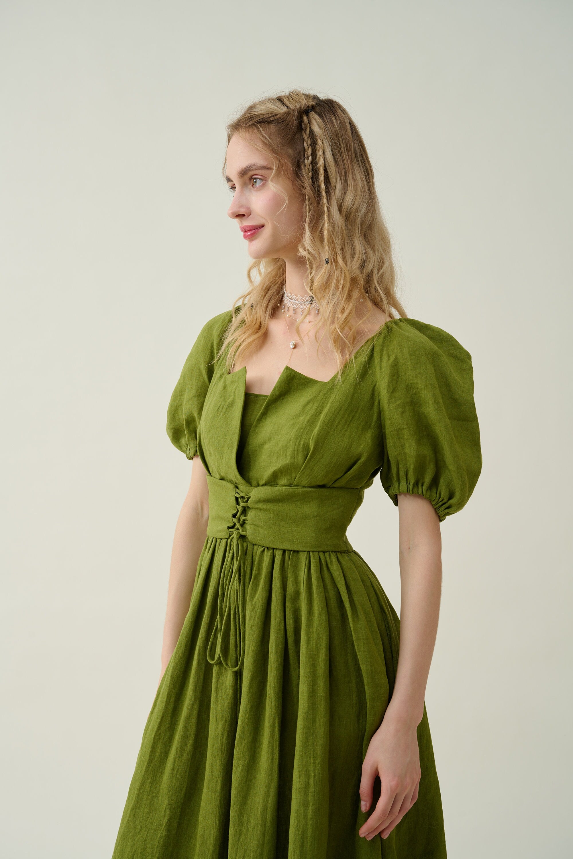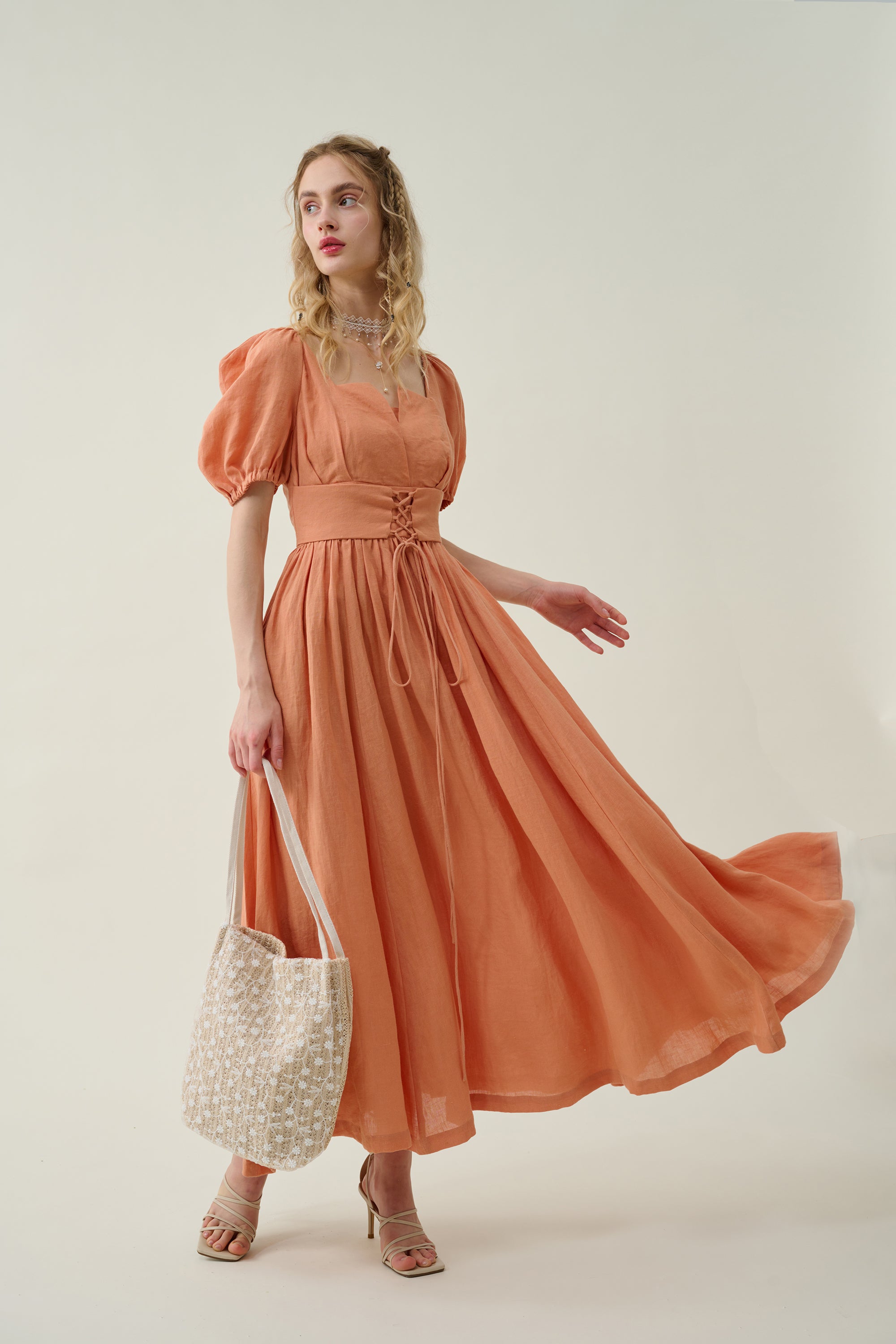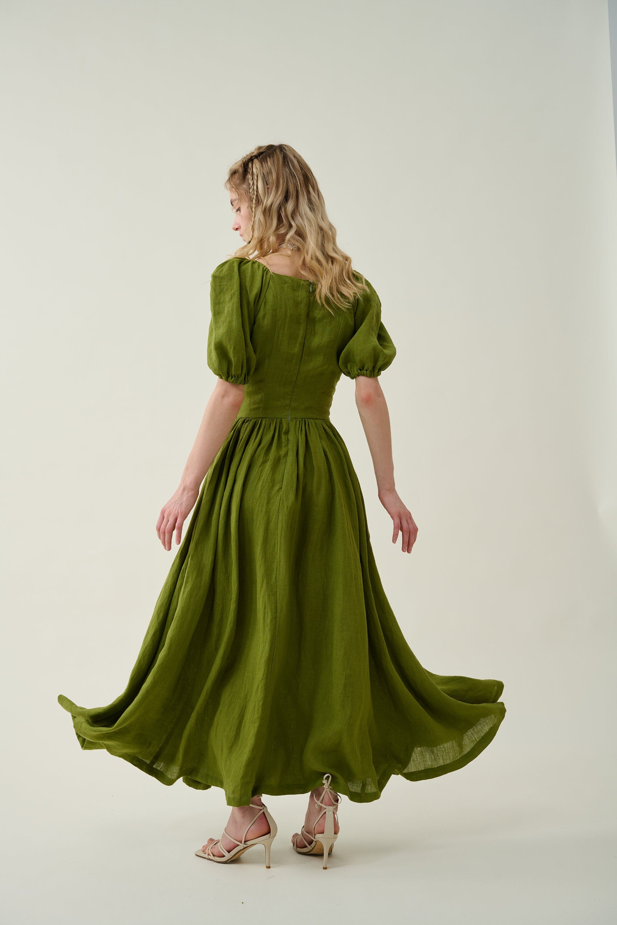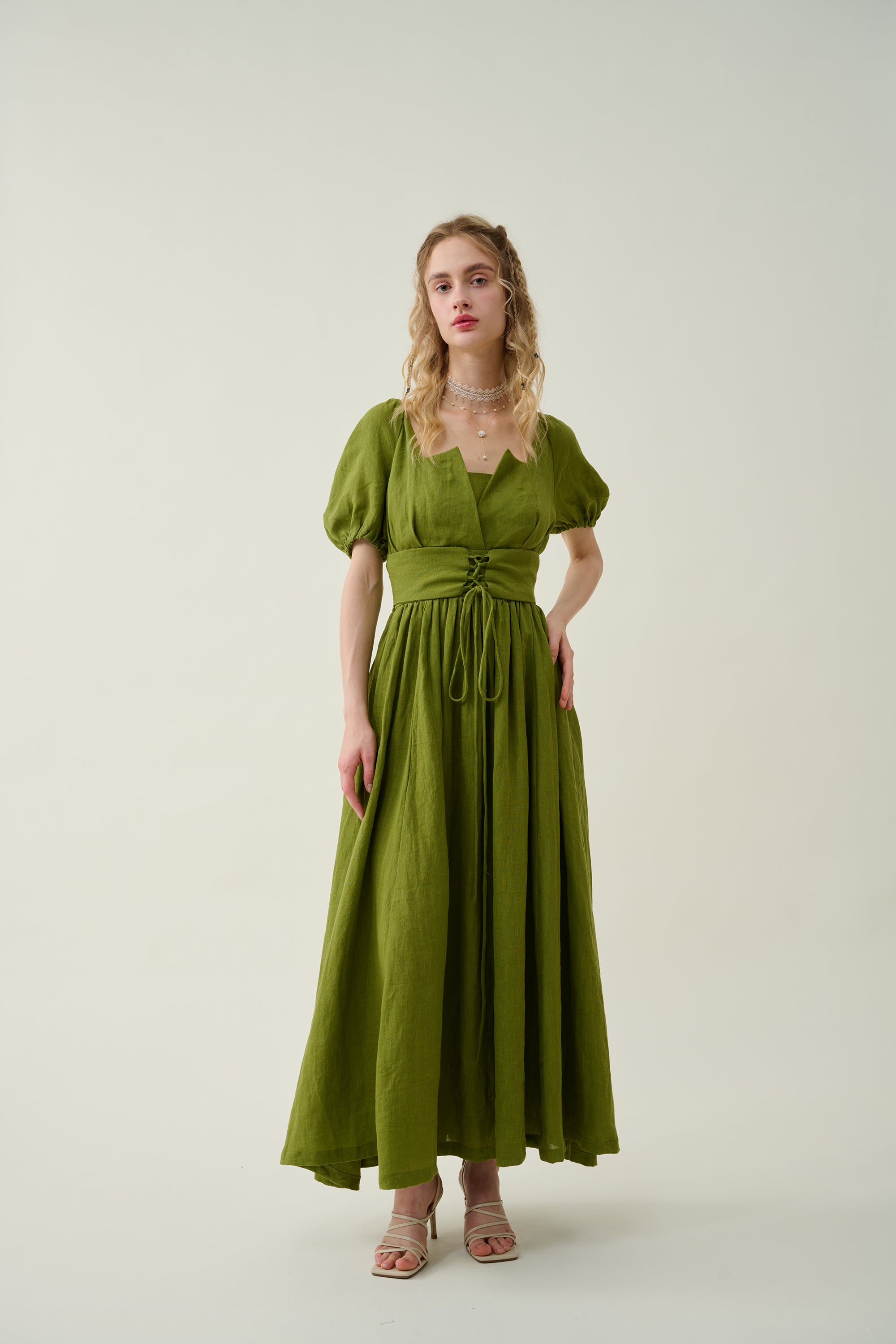 Combining sophisticated details with effortless glamour, this dress from Linennaive is elegantly styled with a retro petal square neckline that complement the A-line skirt.