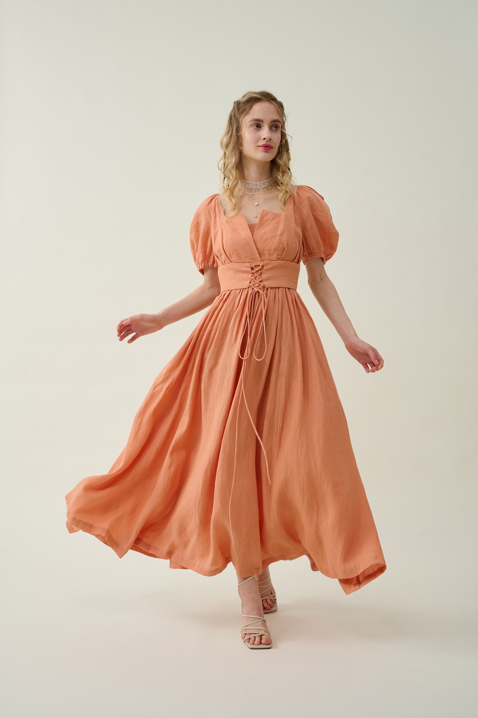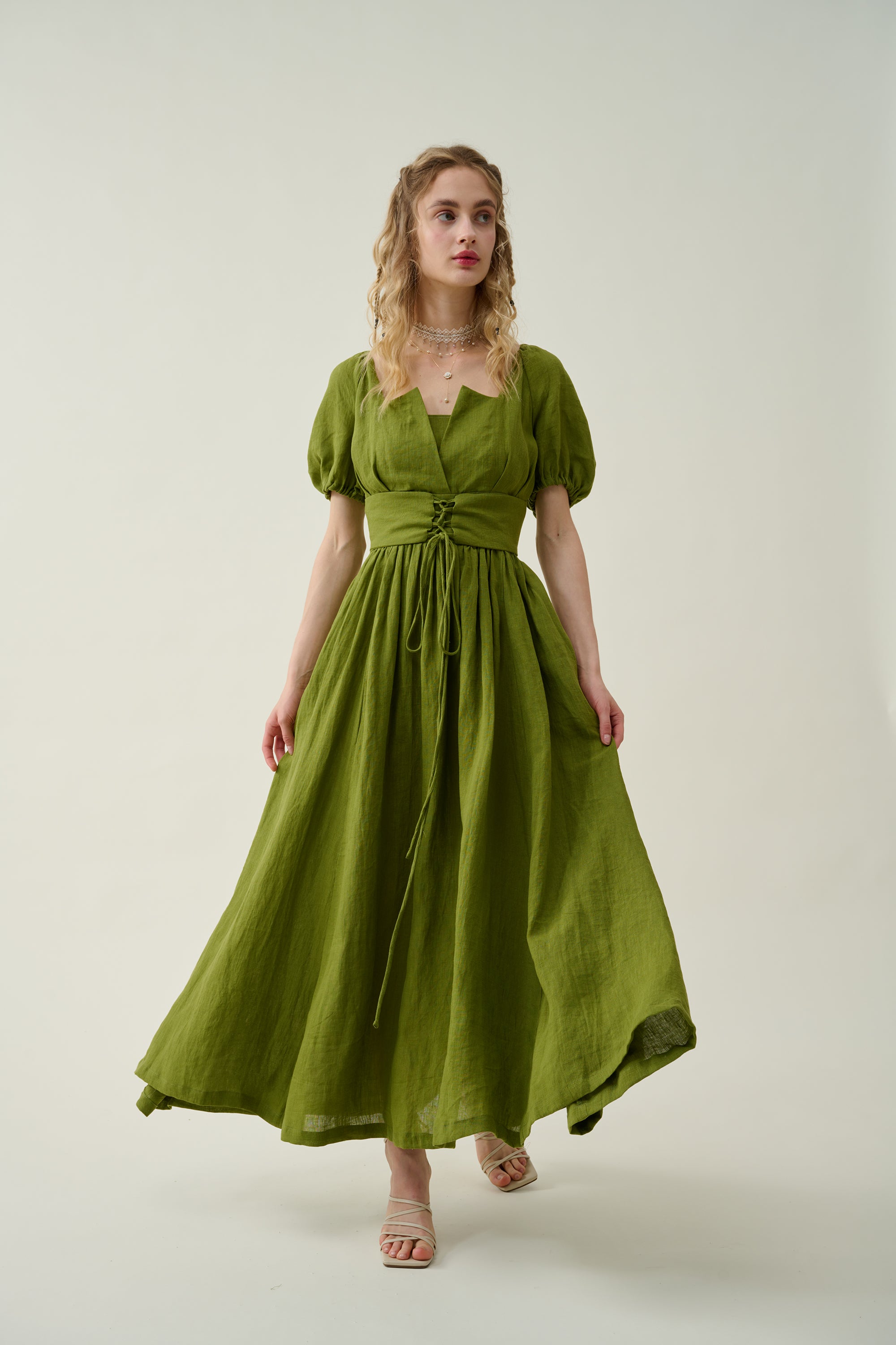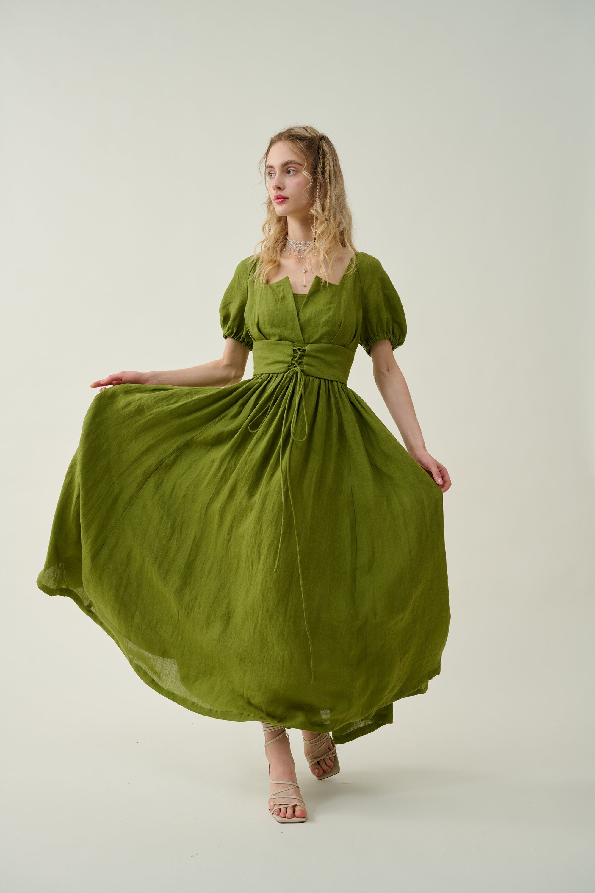 Combining sophisticated details with effortless glamour, this dress from Linennaive is elegantly styled with a retro petal square neckline that complement the A-line skirt.