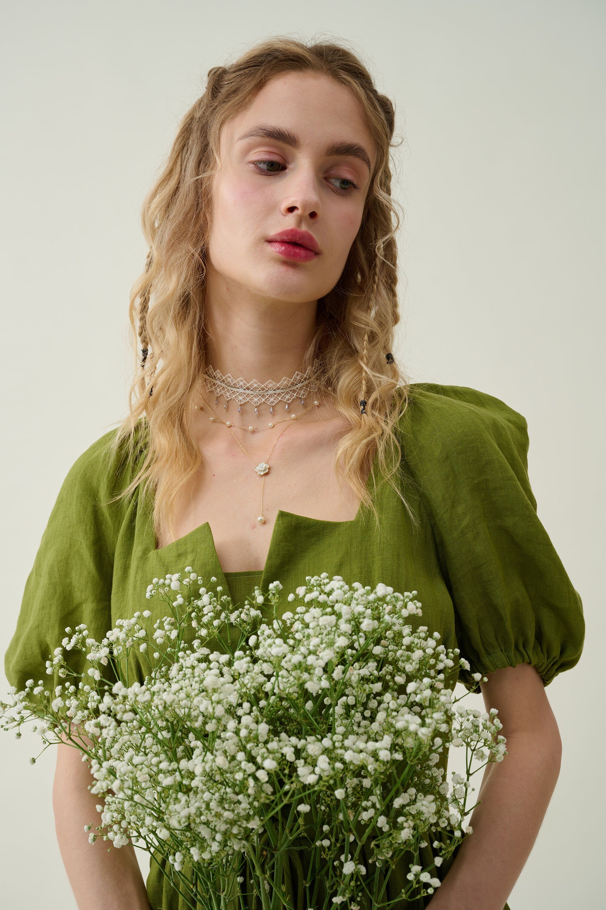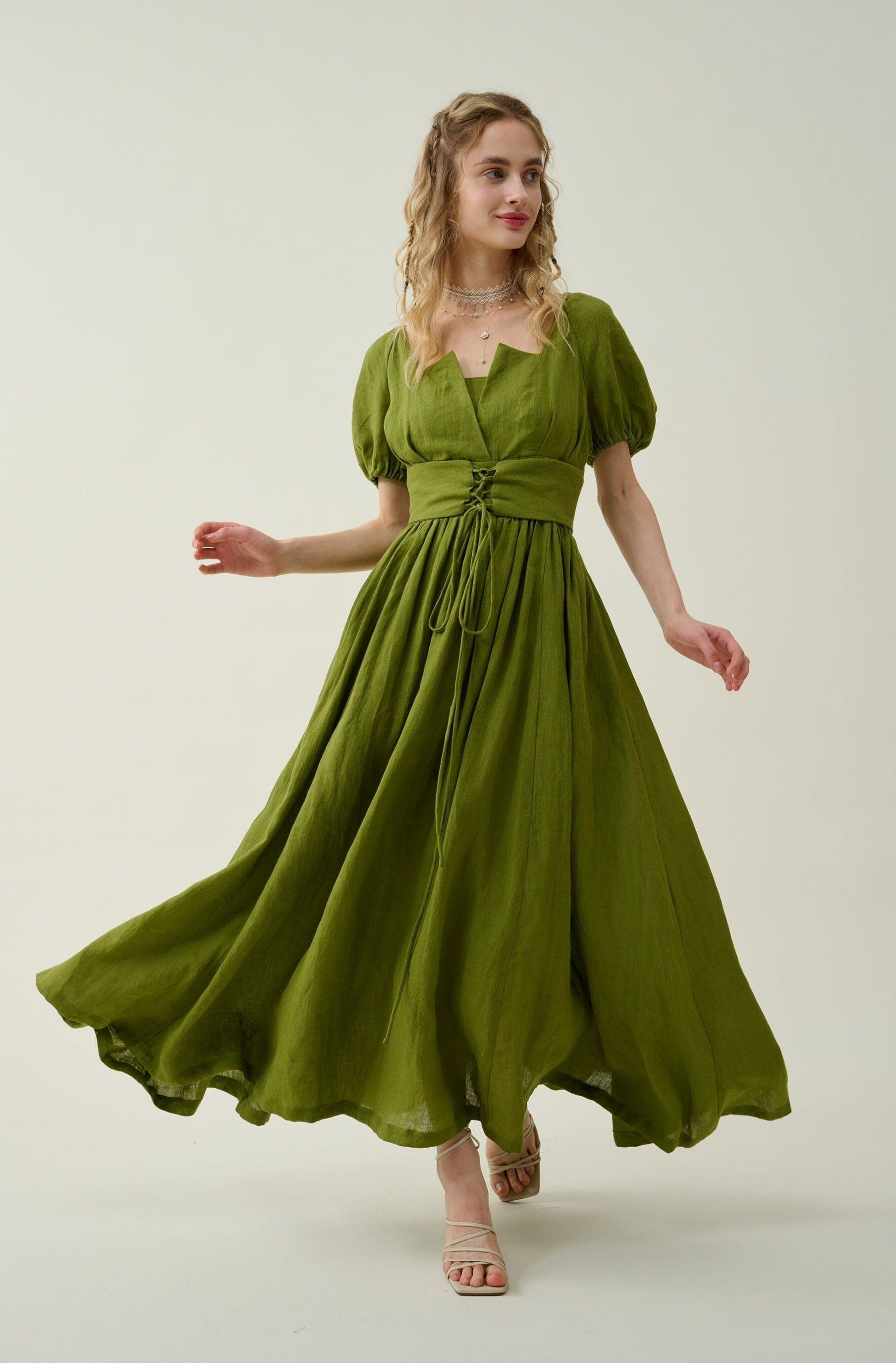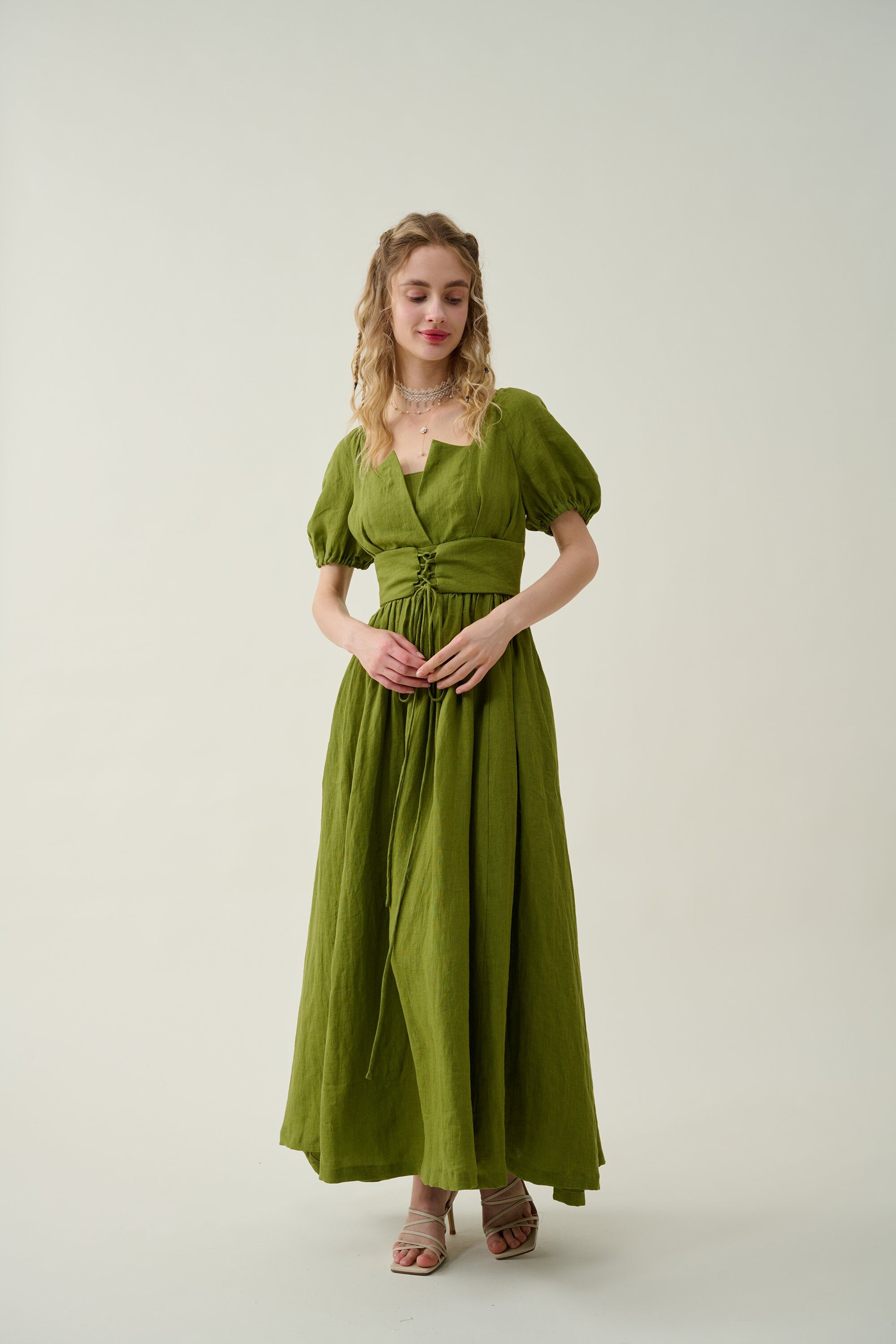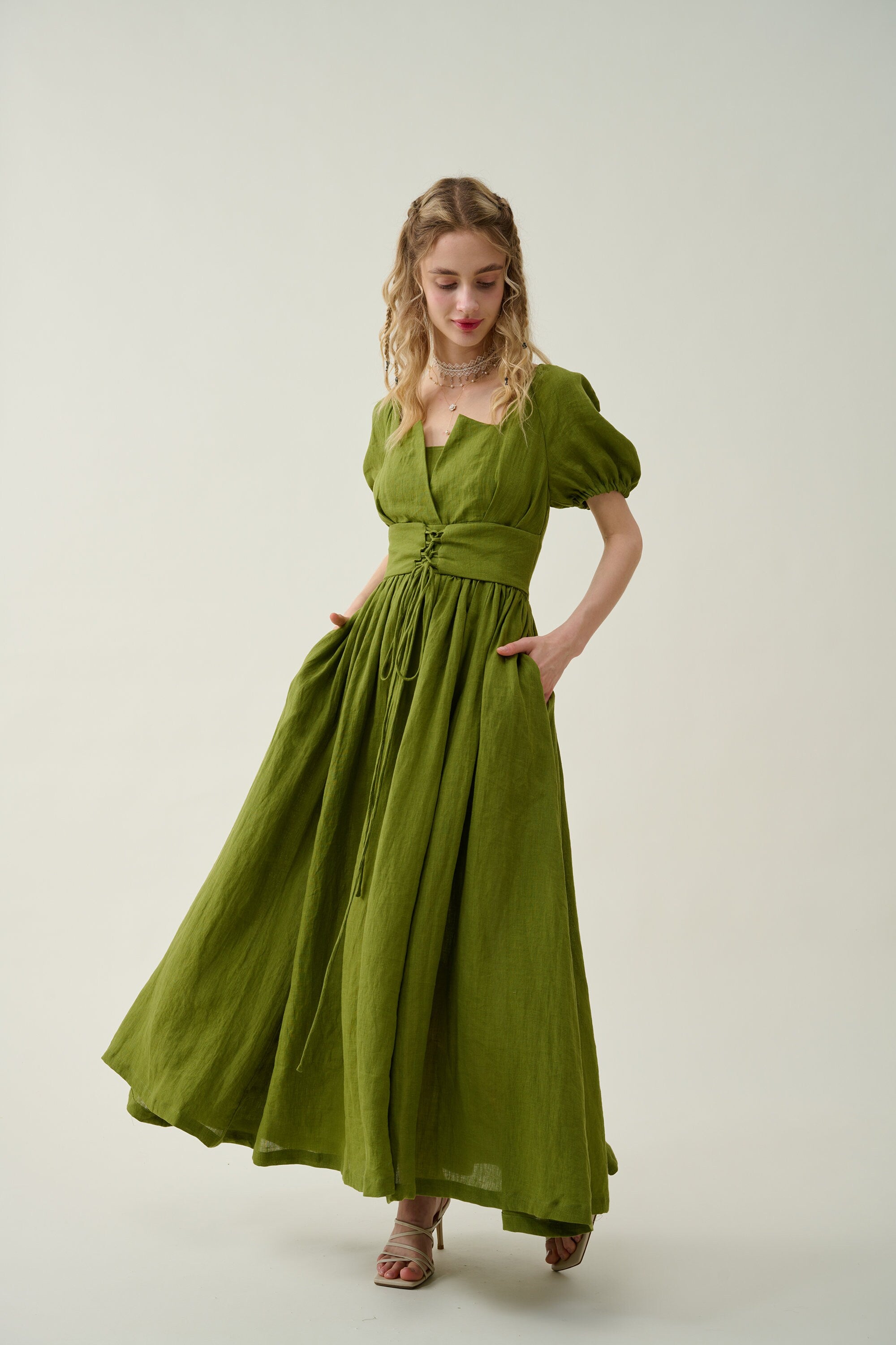 Combining sophisticated details with effortless glamour, this dress from Linennaive is elegantly styled with a retro petal square neckline that complement the A-line skirt.