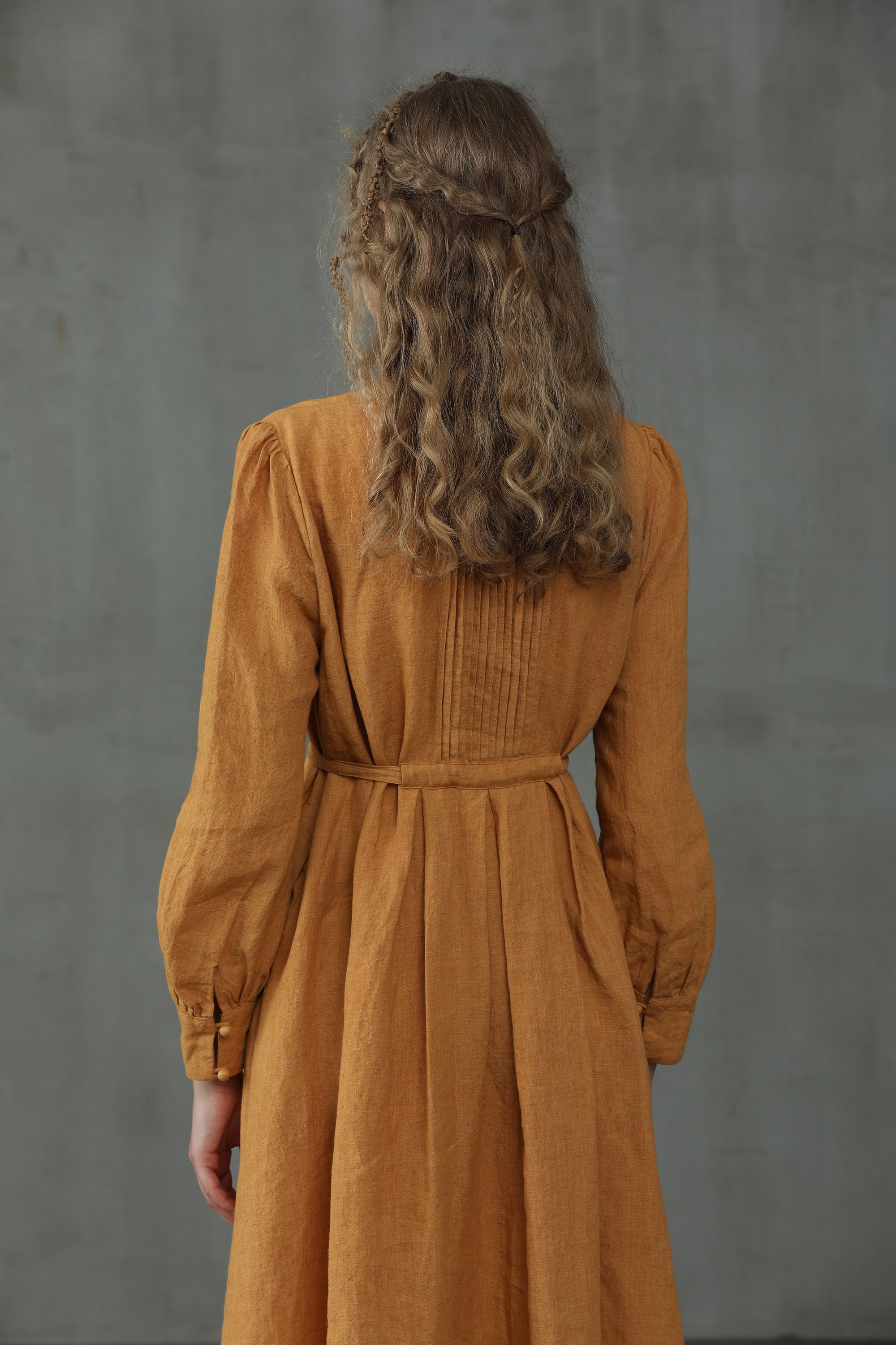 Handmade details: cute standard collar, 20+ pintucks on the back, exquisite laces to the front. puff sleeves and side pockets.