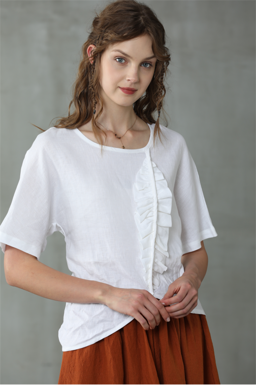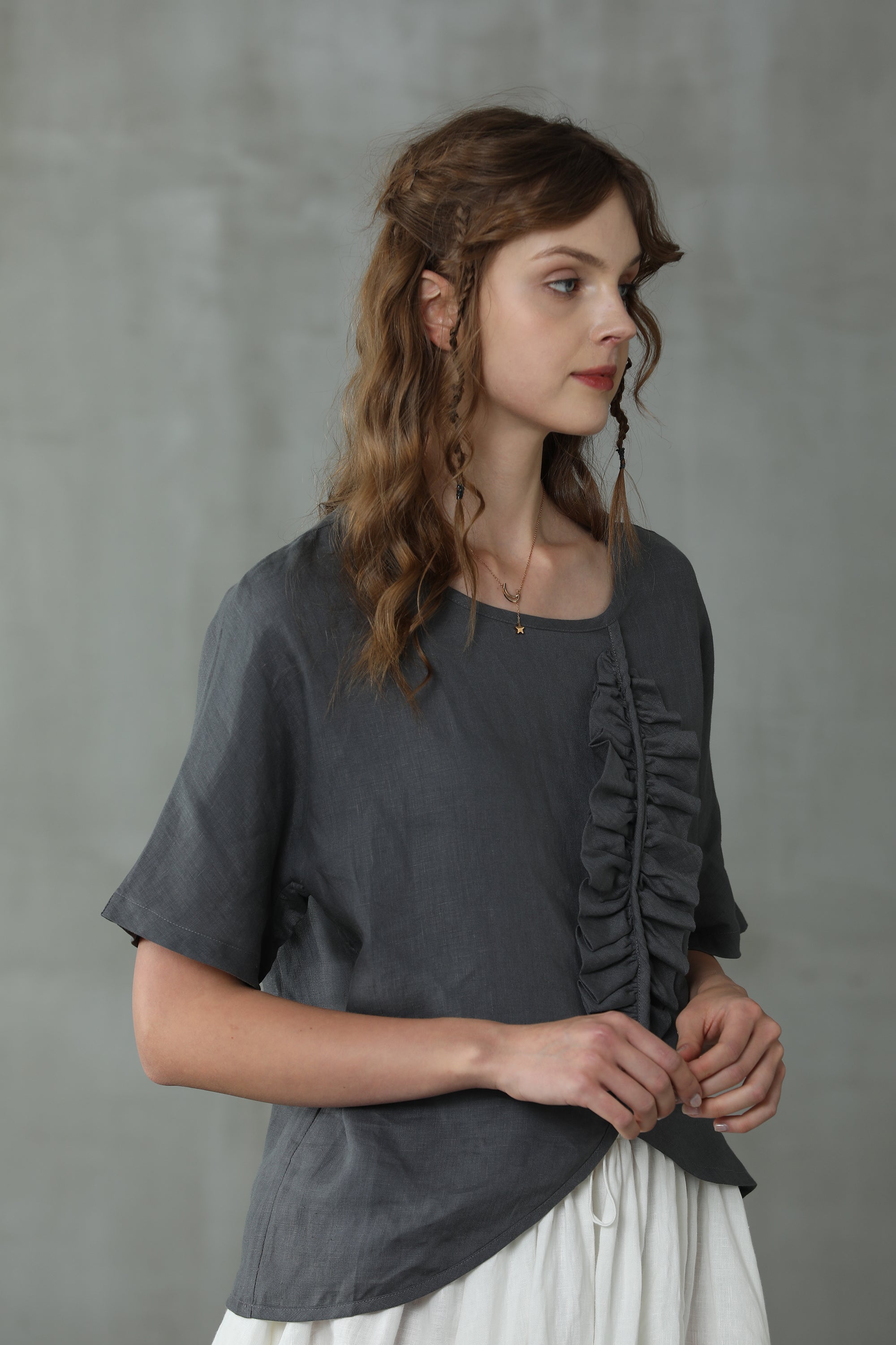 √ Every linen top in our earth day collection features a limited edition handmde leaf of linen.