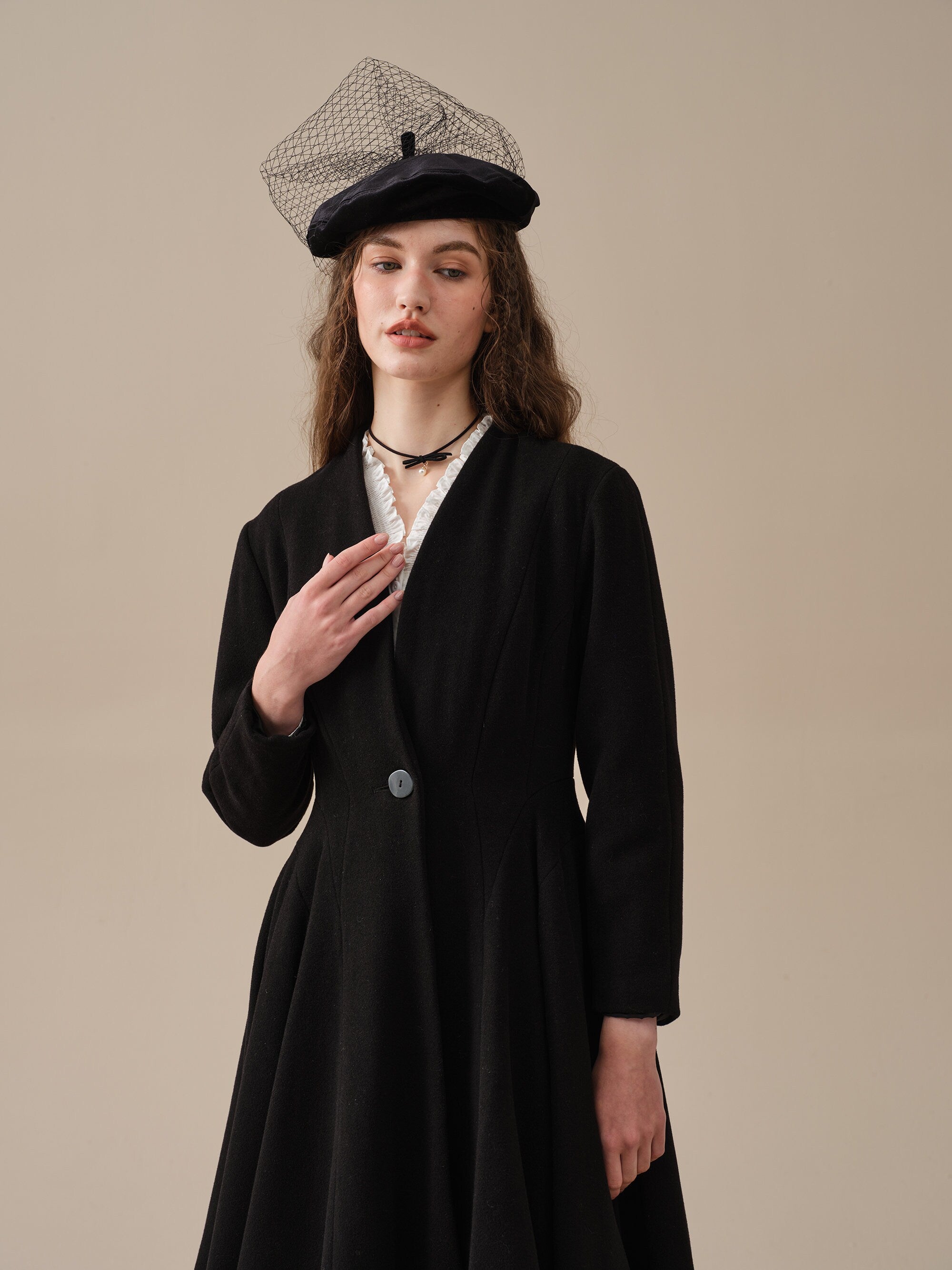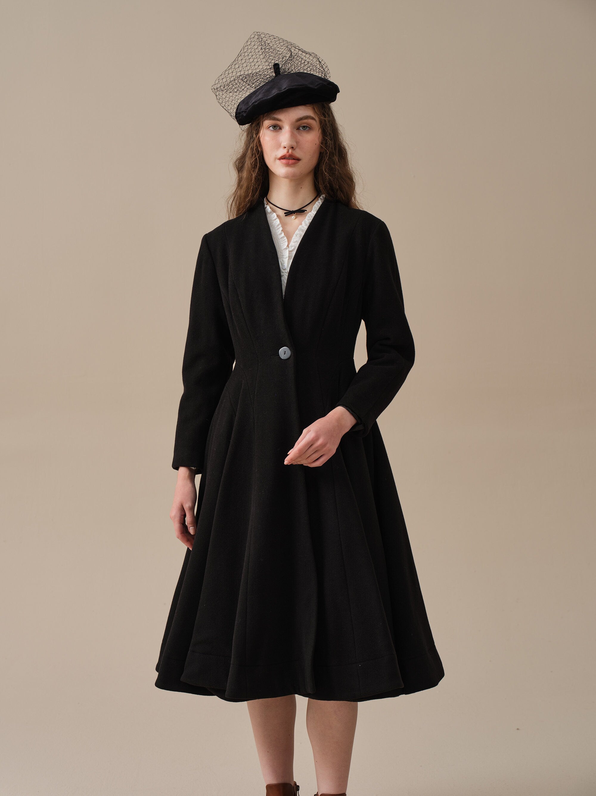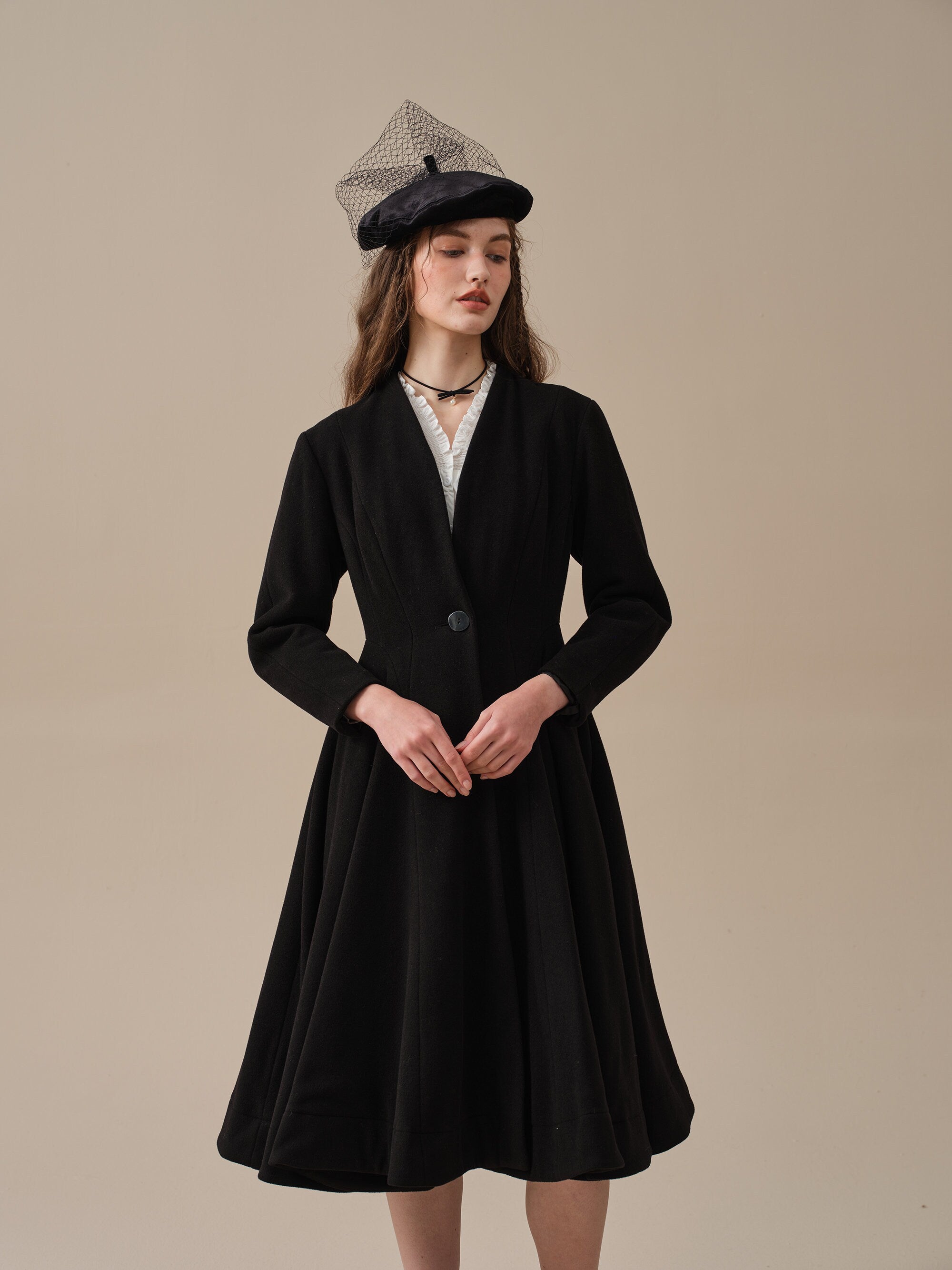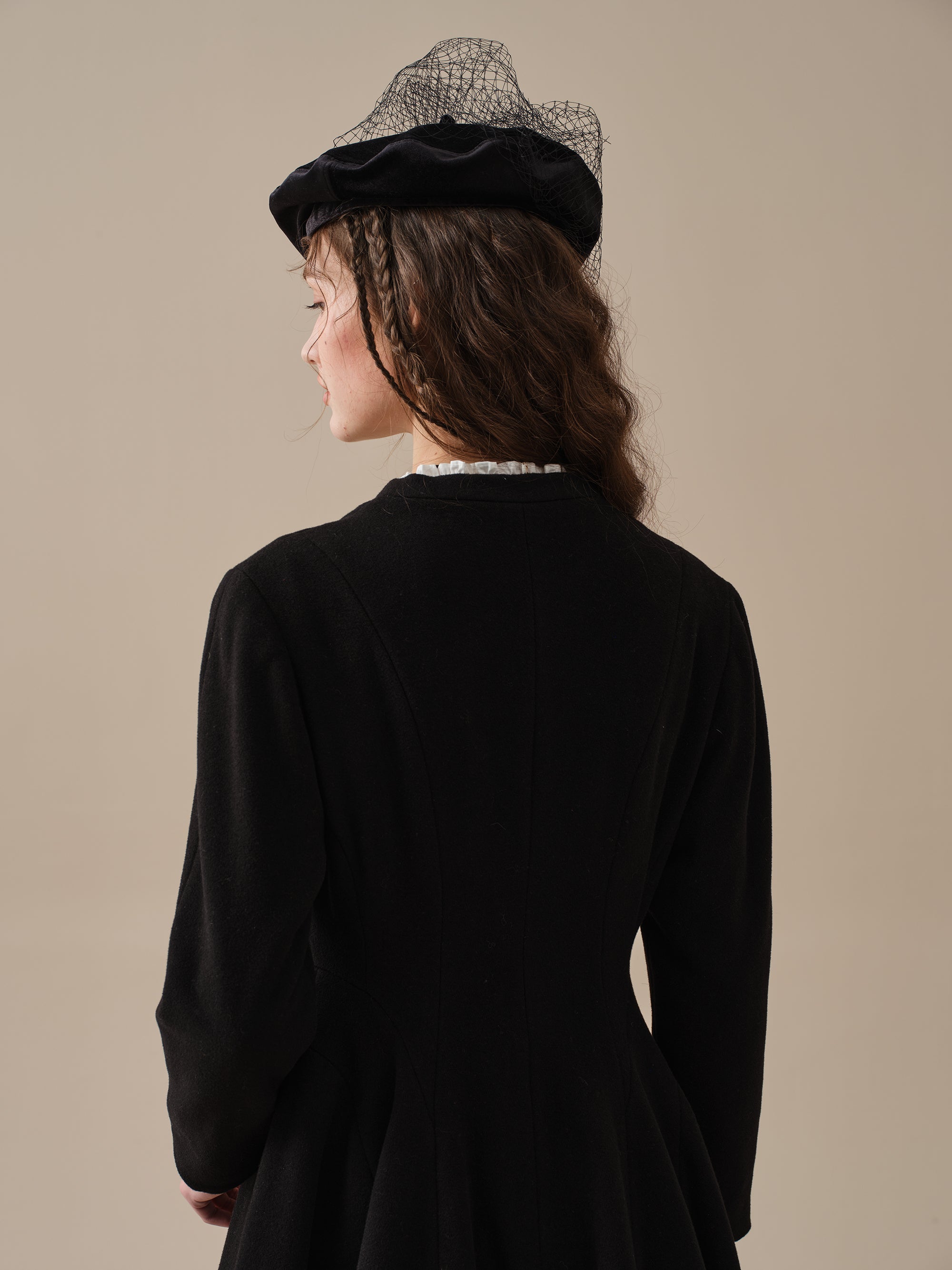 With a flattering waist and vicorian layered full skirt, this wool fitted jacket is as sophisticated as it gets.