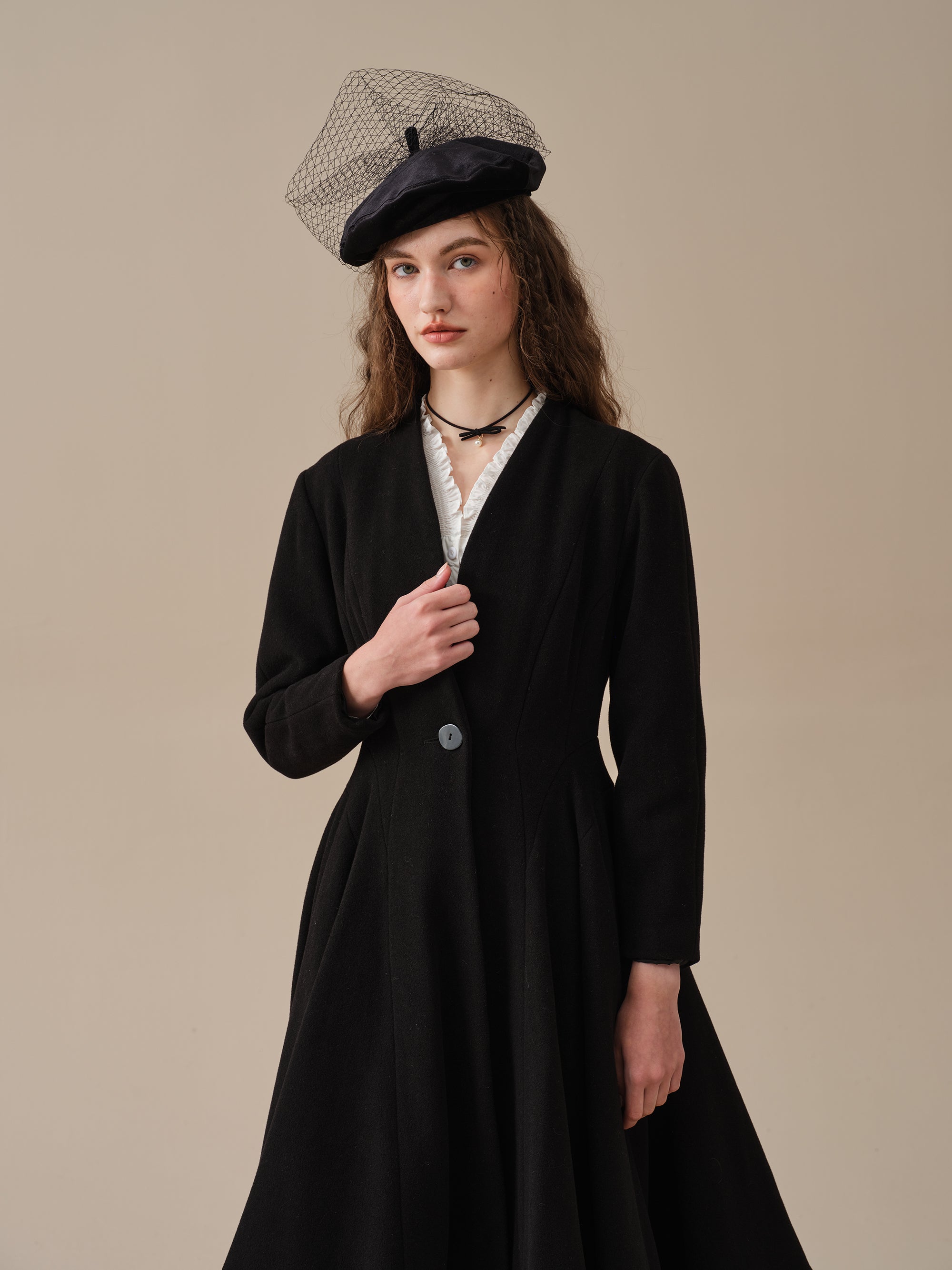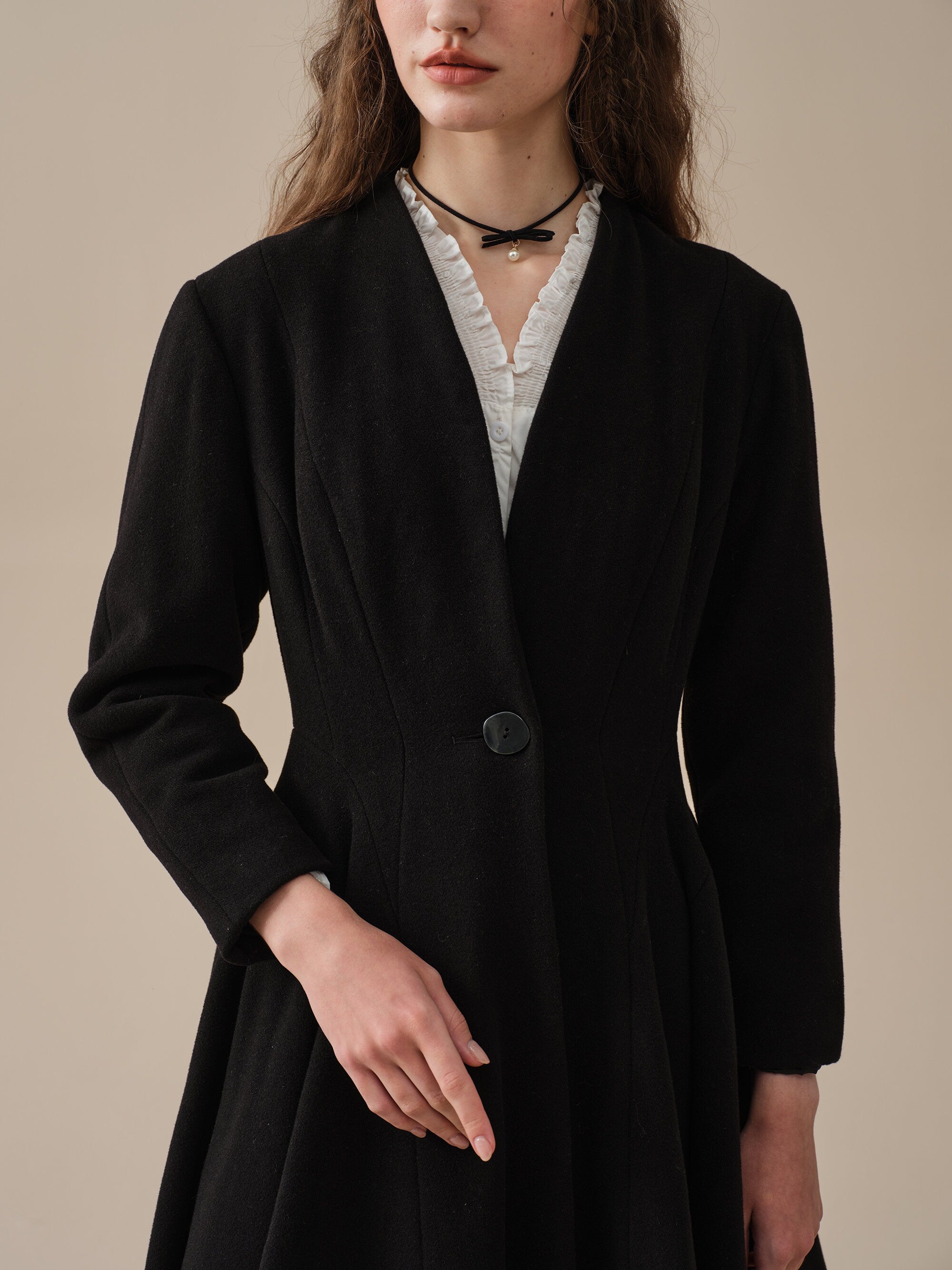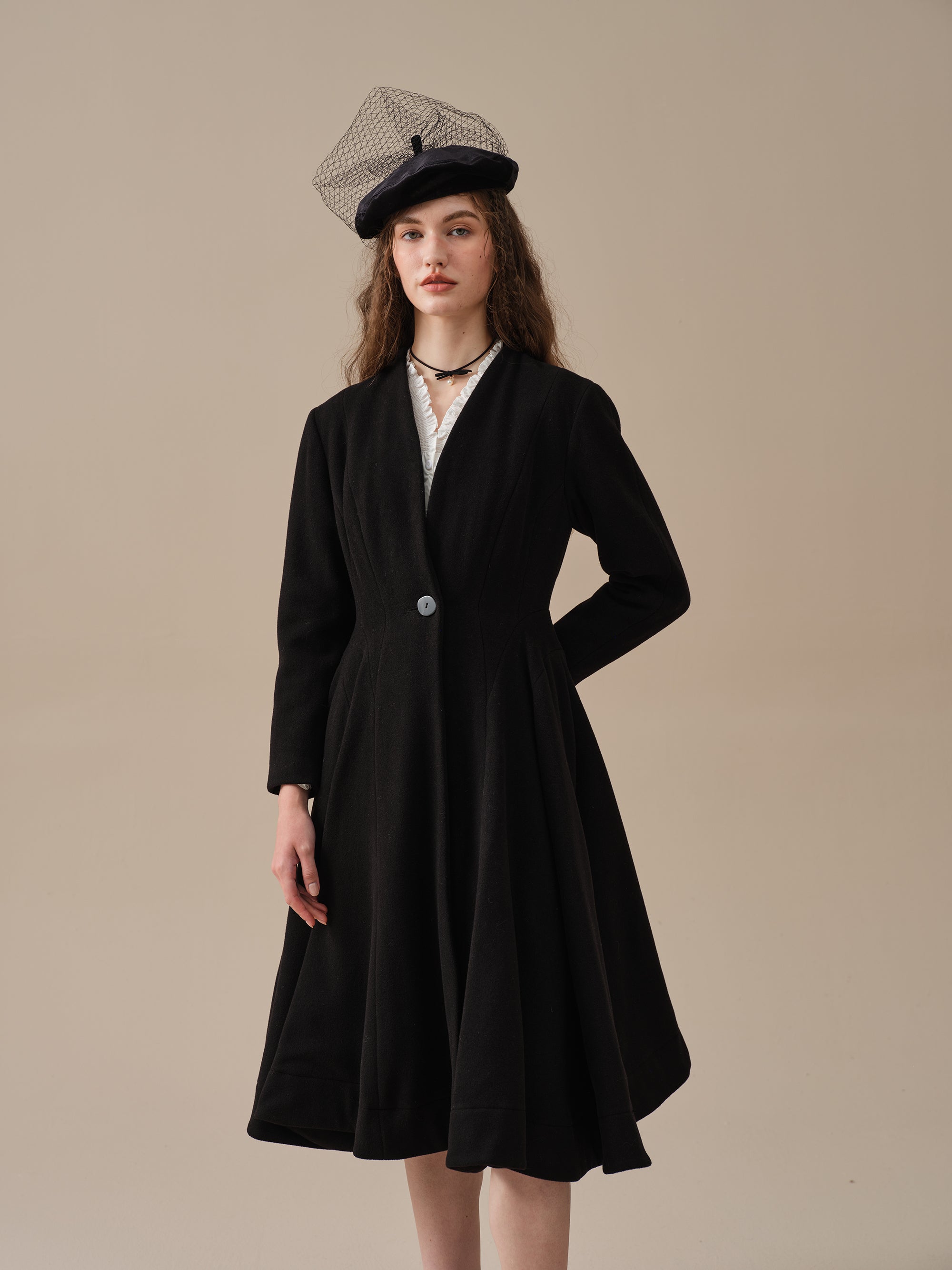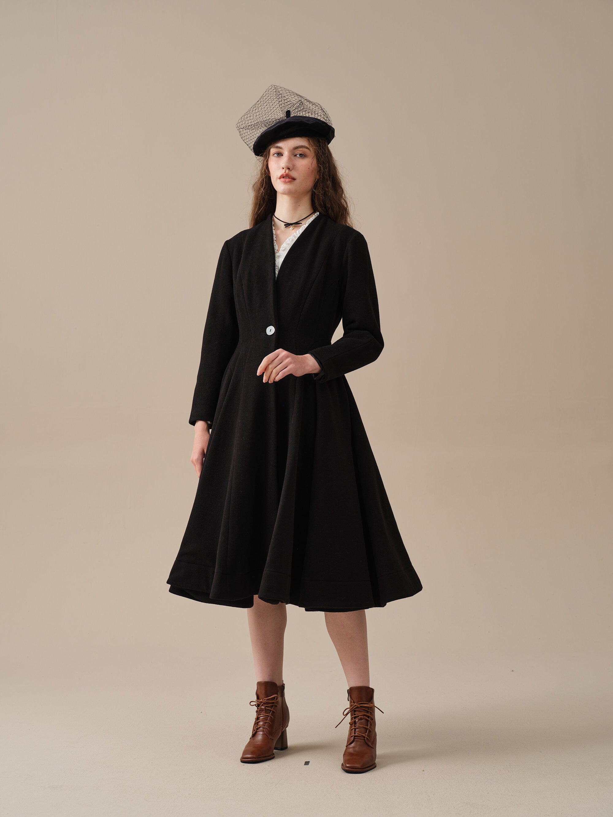With a flattering waist and vicorian layered full skirt, this wool fitted jacket is as sophisticated as it gets.