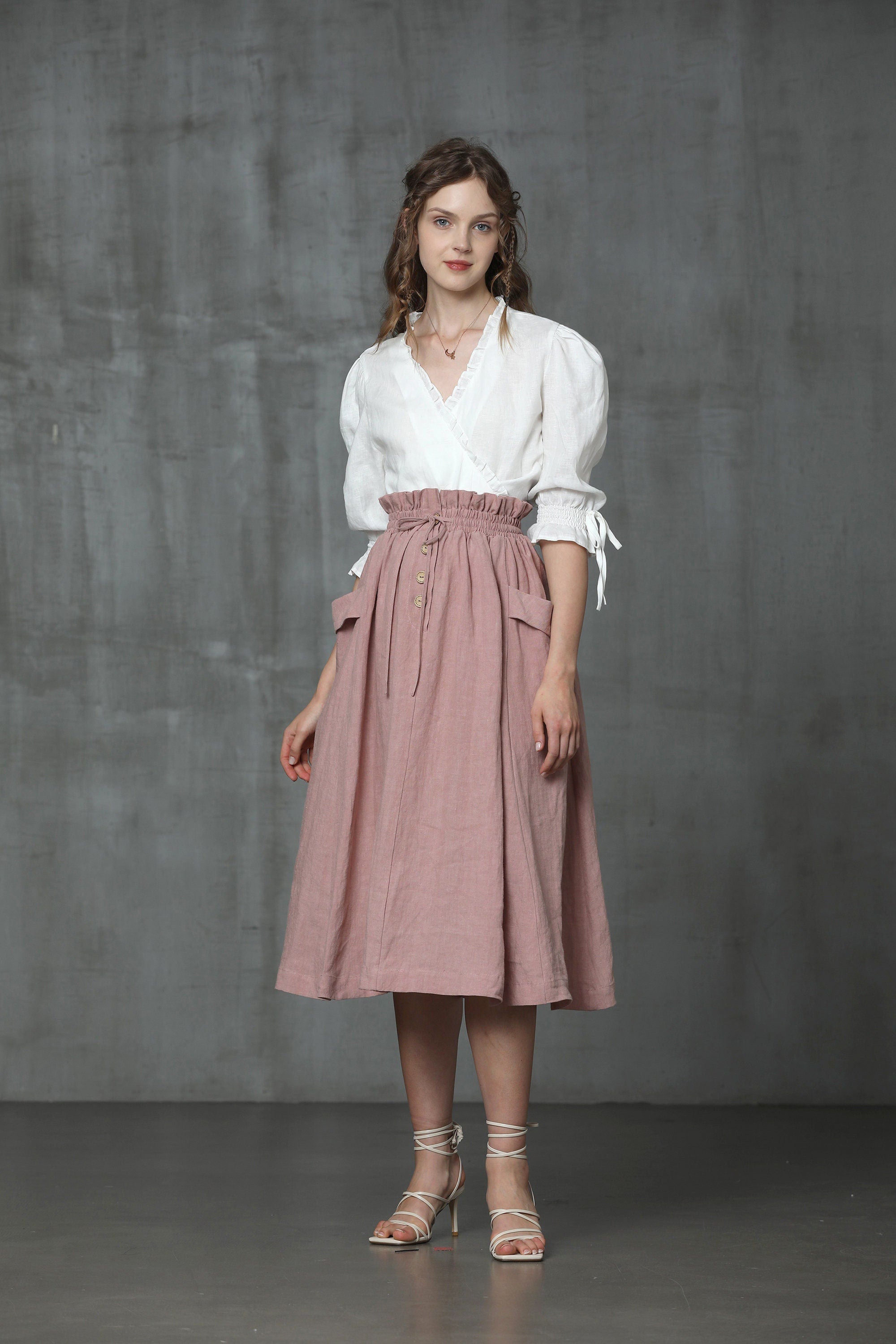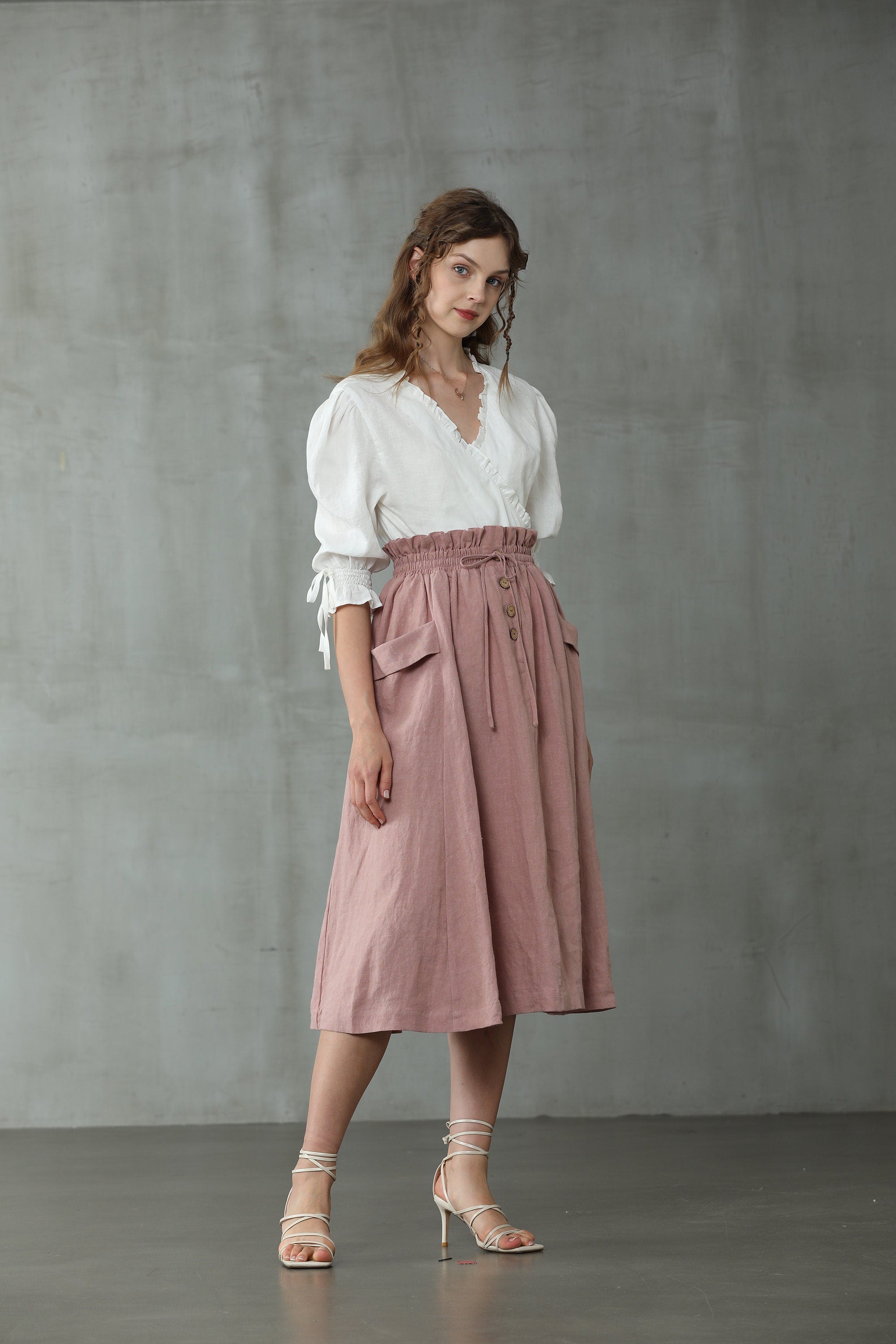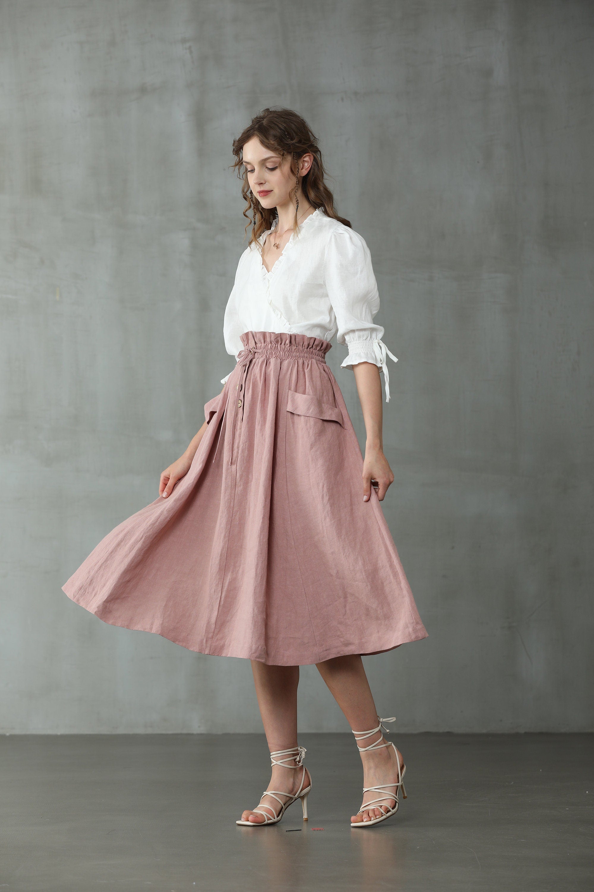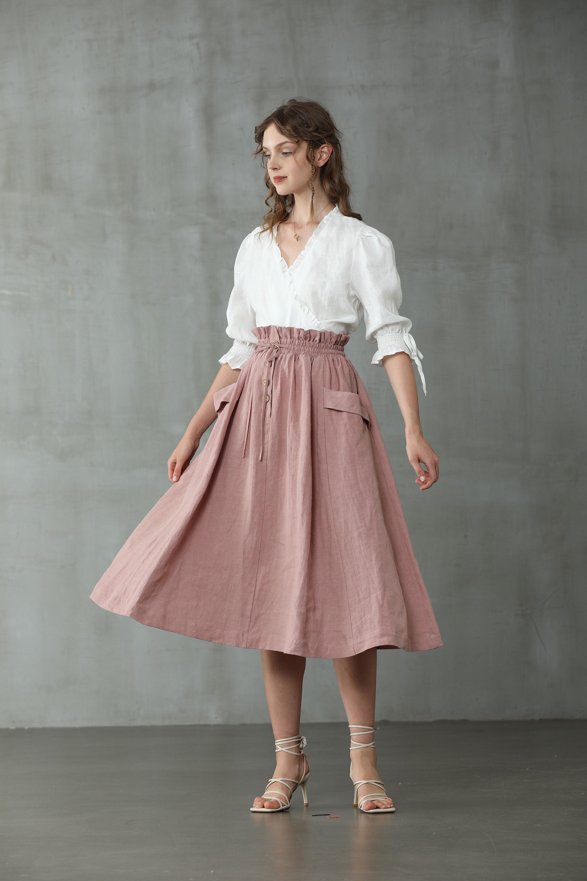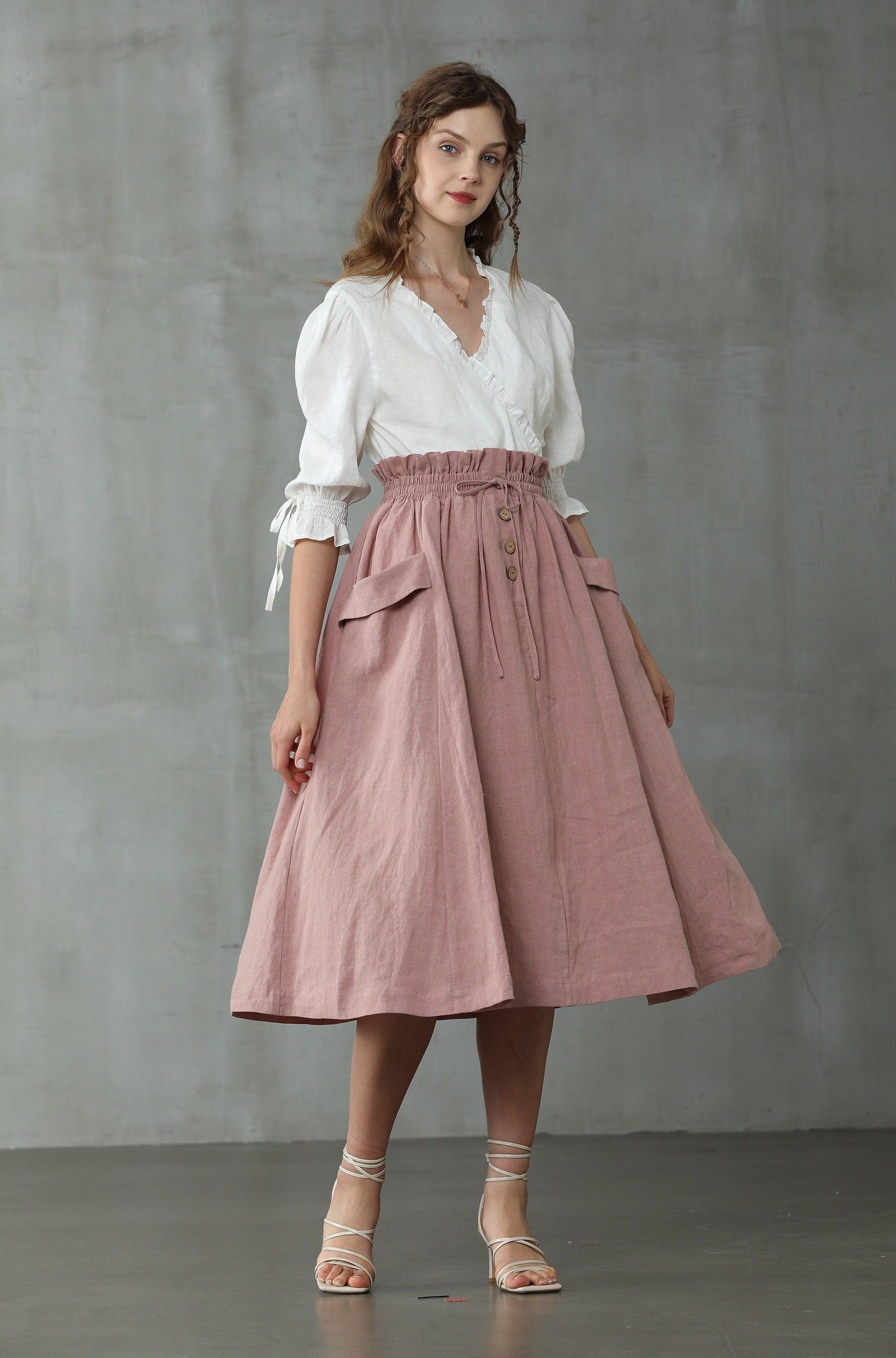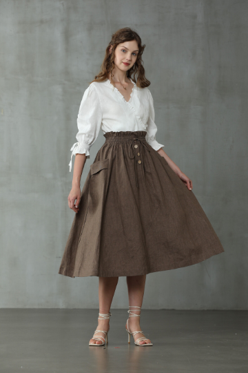 Crafted from soft linen, the skirt has a flared A-line silhouette that swishes so elegantly as you walk. boasts a utilitarian aesthetic thanks to its front button fastening and slip pockets at the sides.