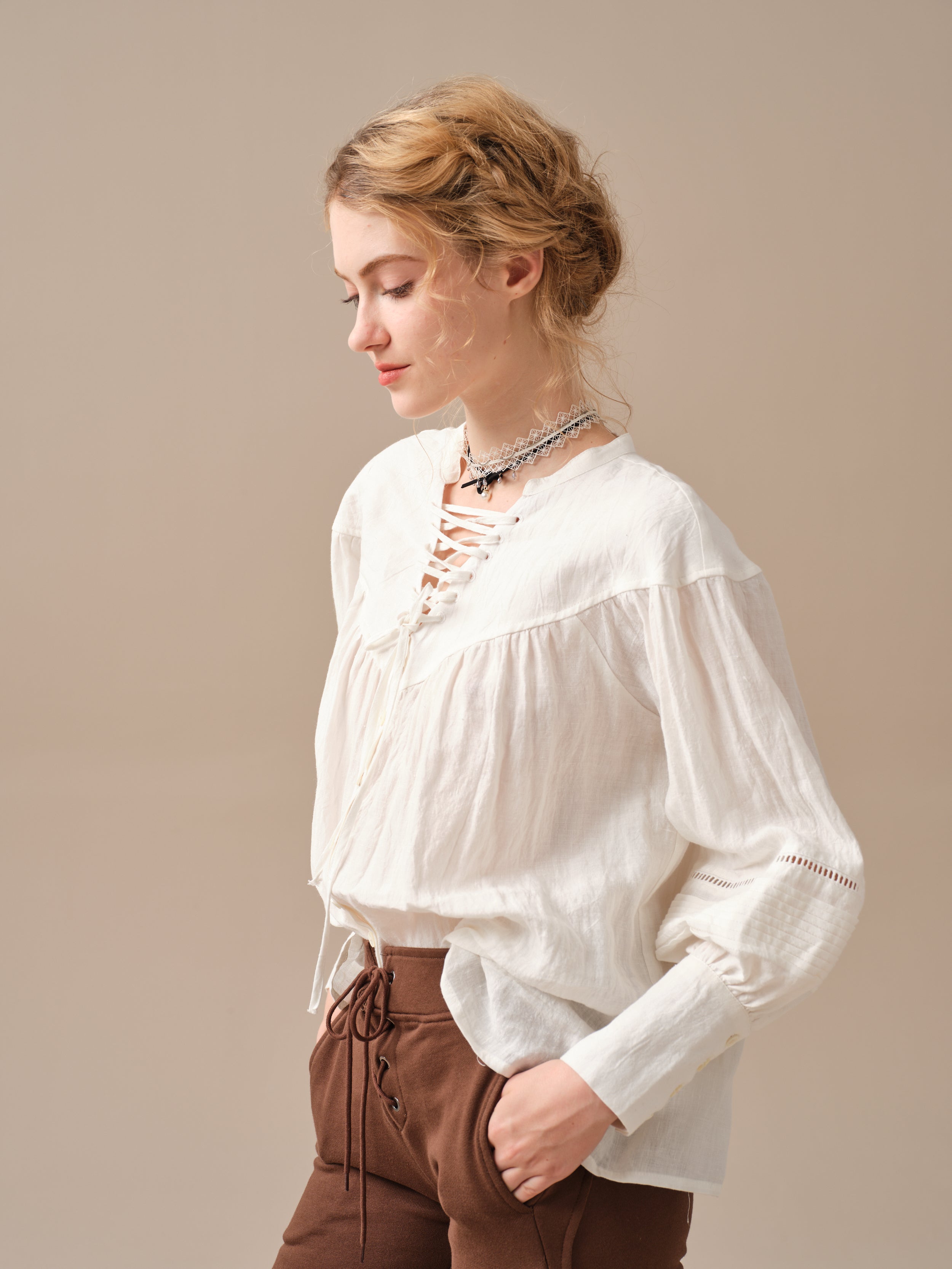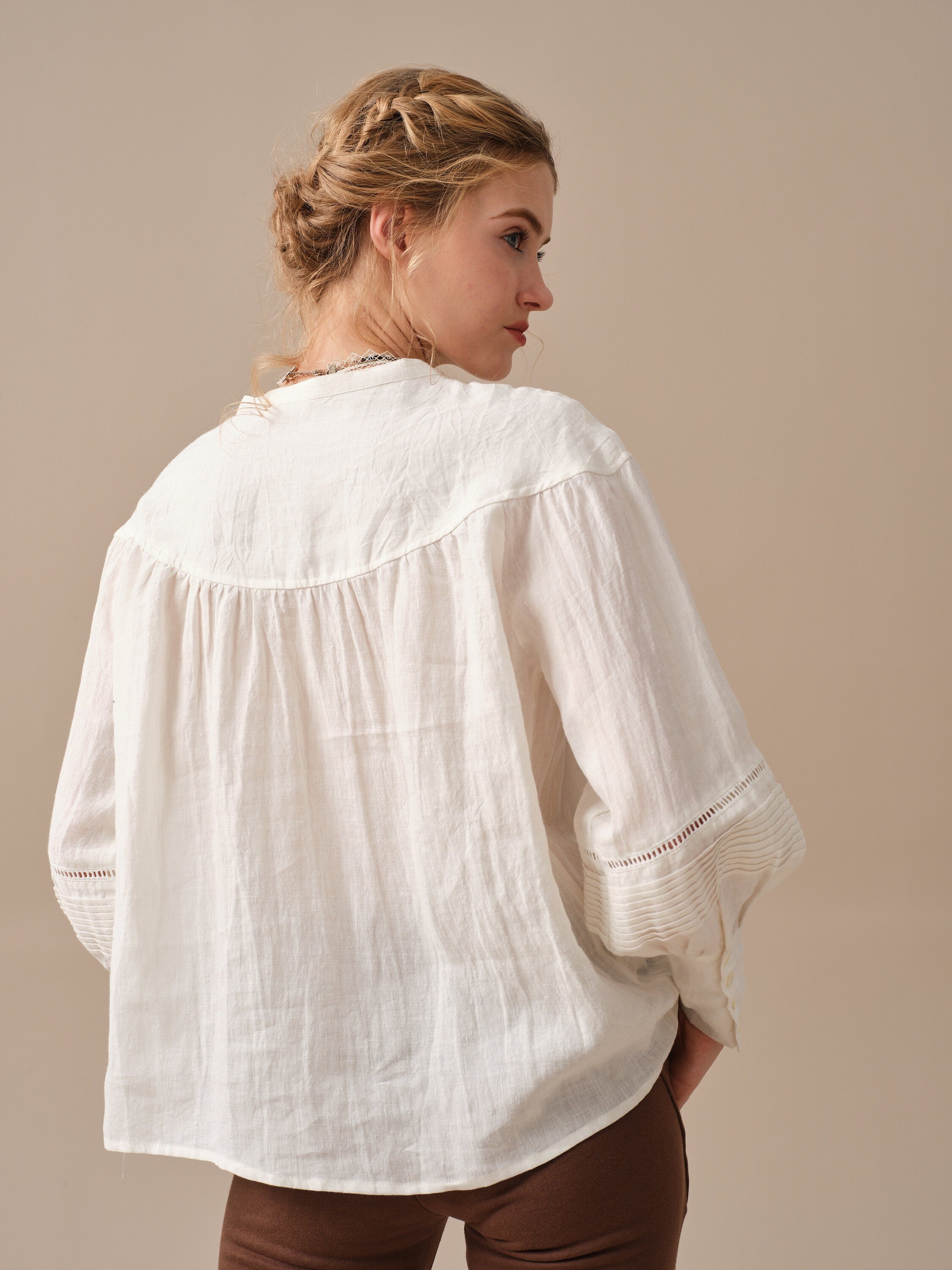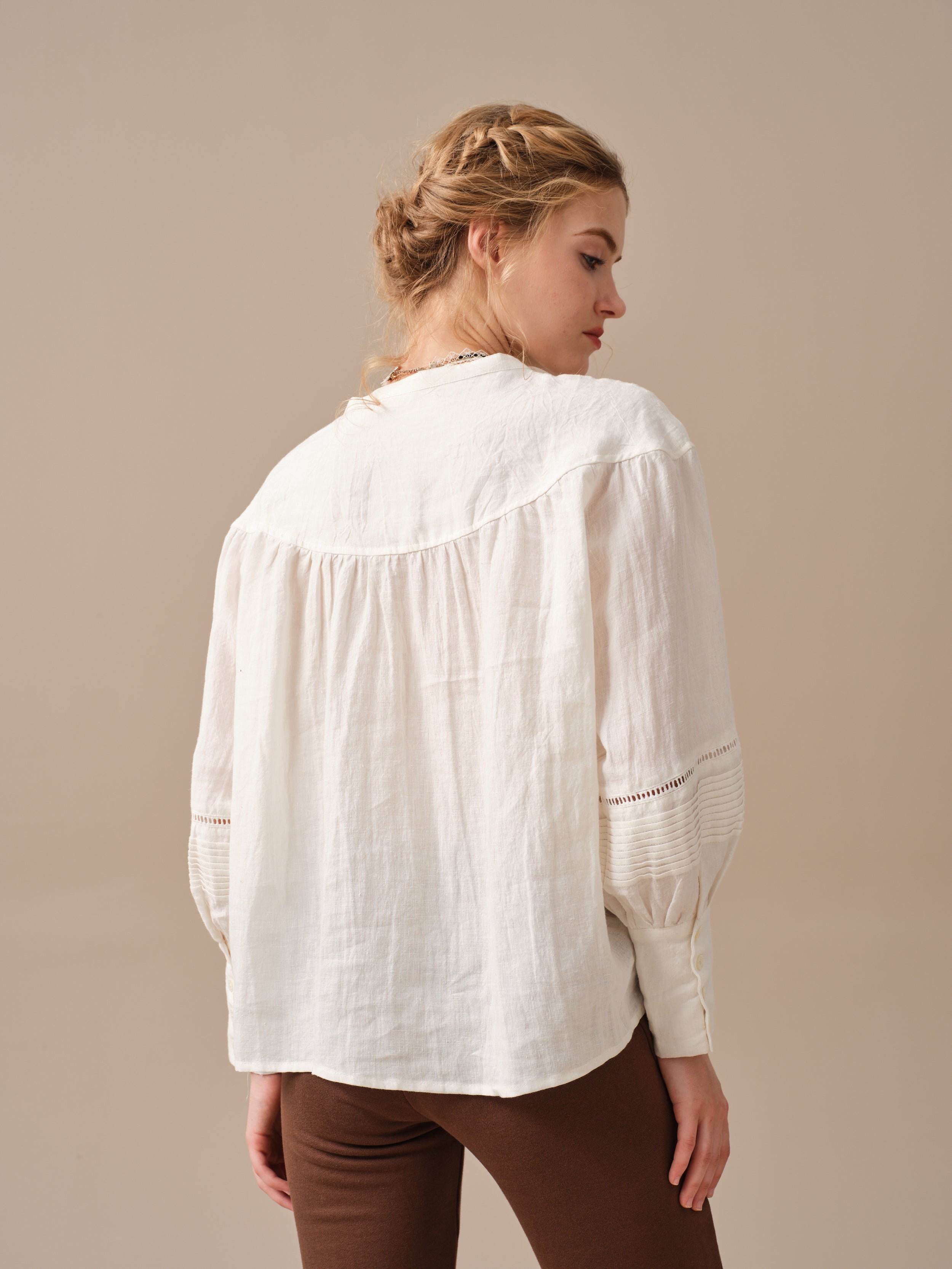 Linennaive illustrates a relaxed aesthetic with this long-sleeved blouse.