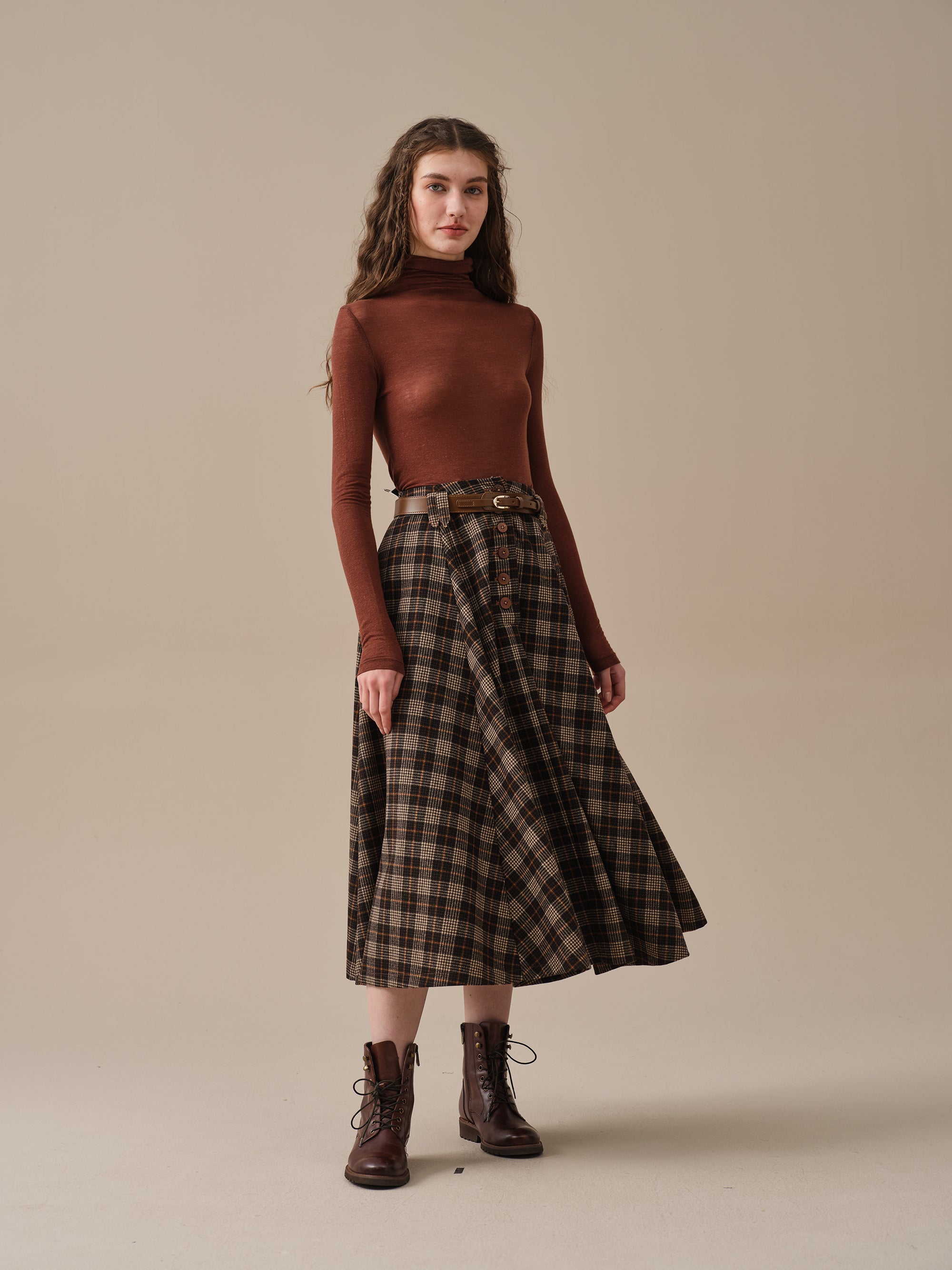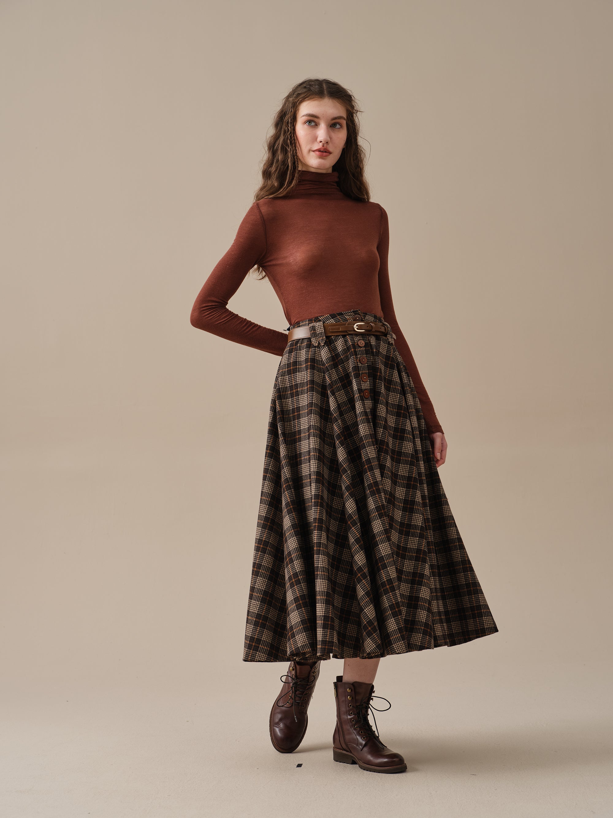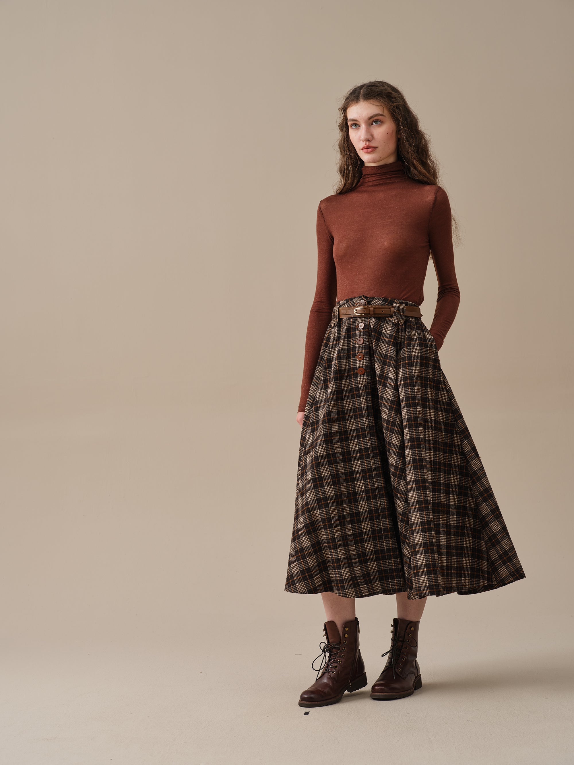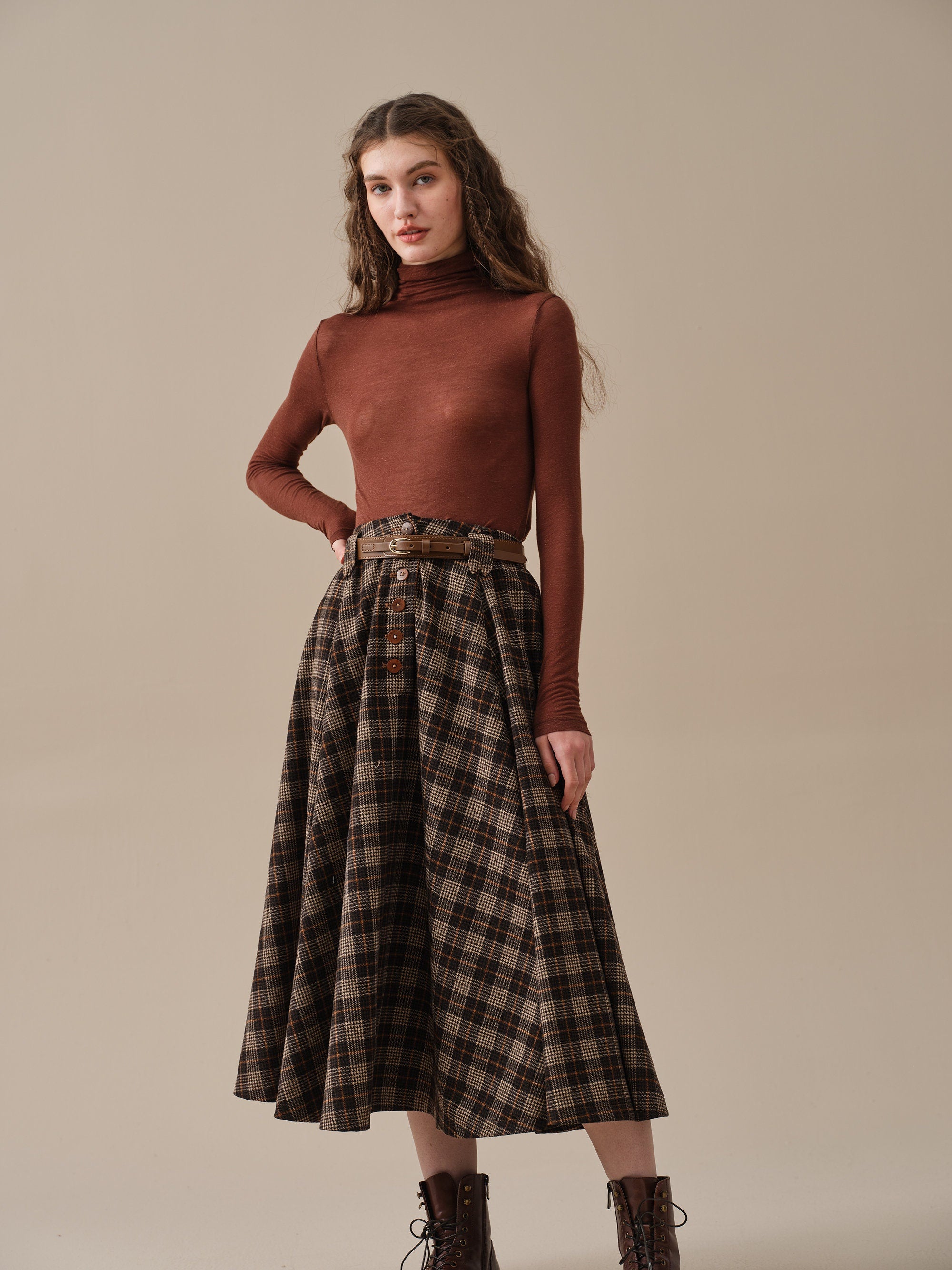 Indulge in the exquisiteness of this skirt. Its soft wool fabric ensures that you can move with ease and confidence, empowering you to conquer the day with grace and poise.