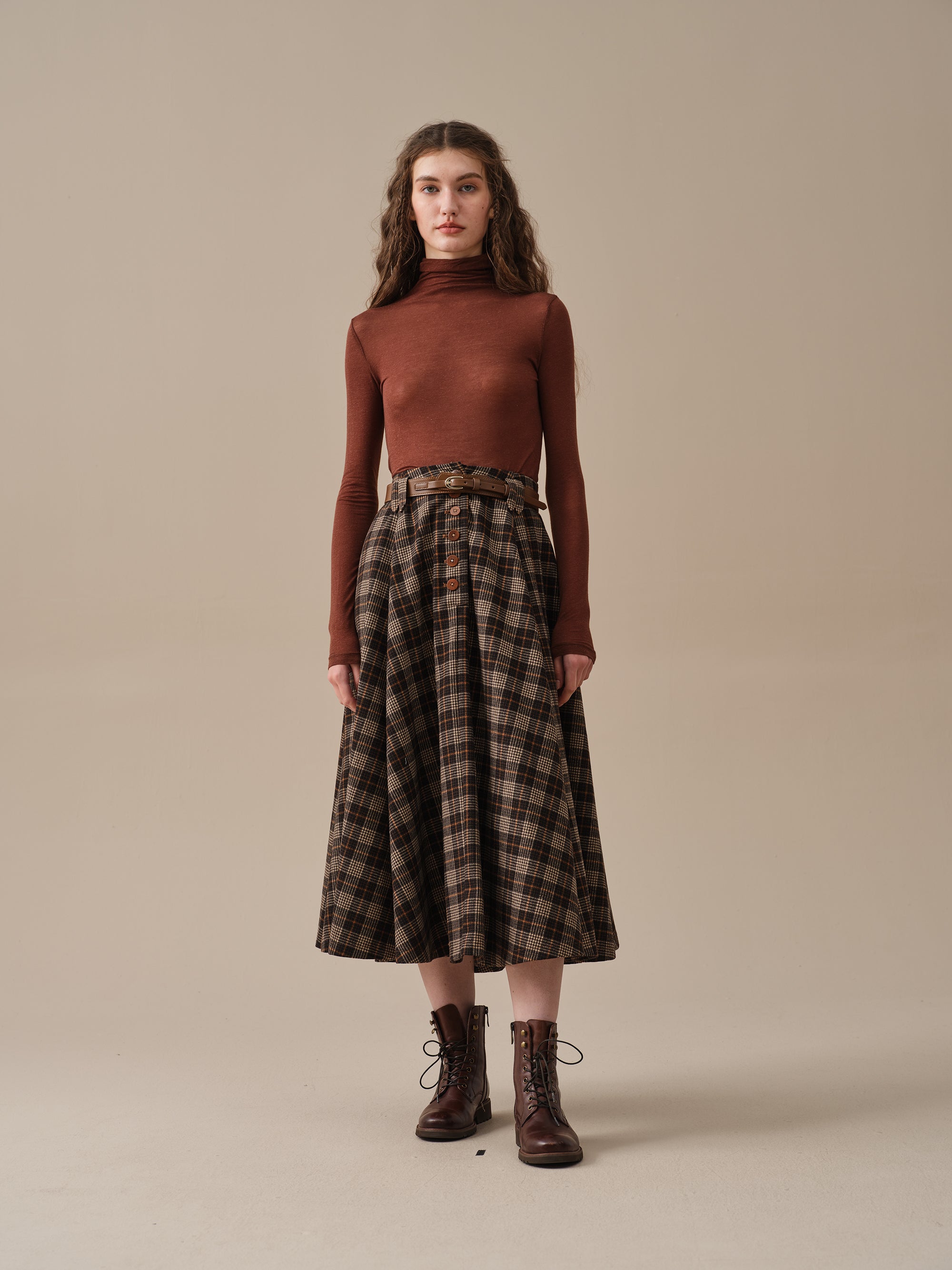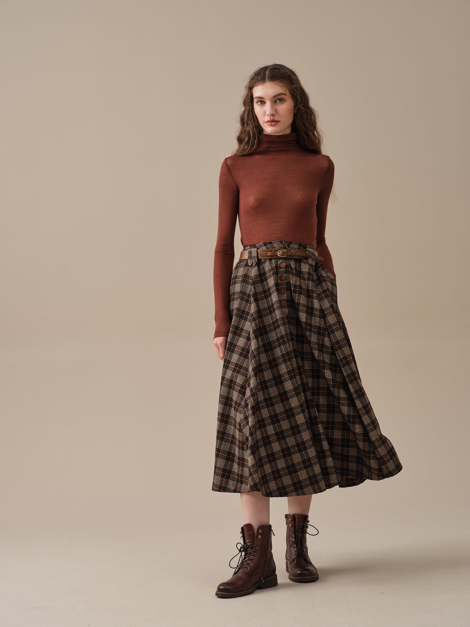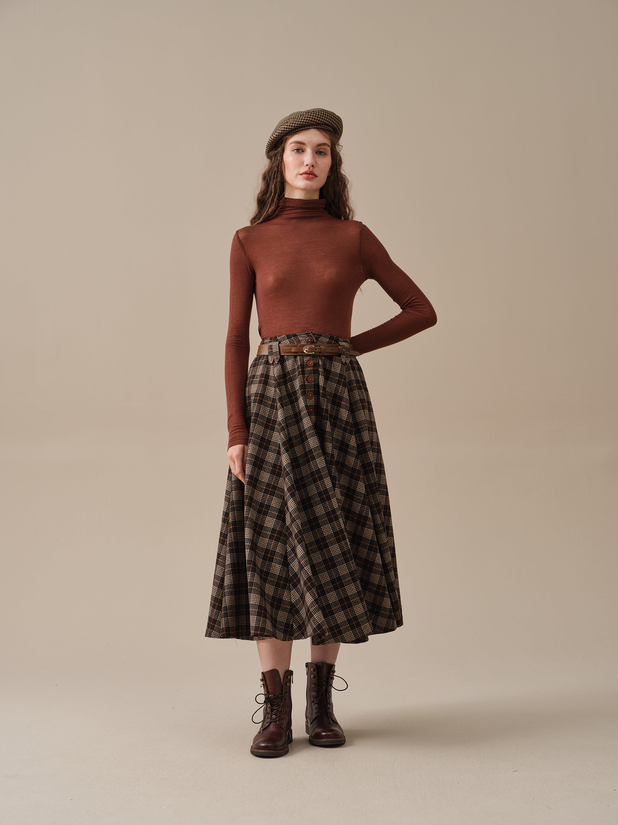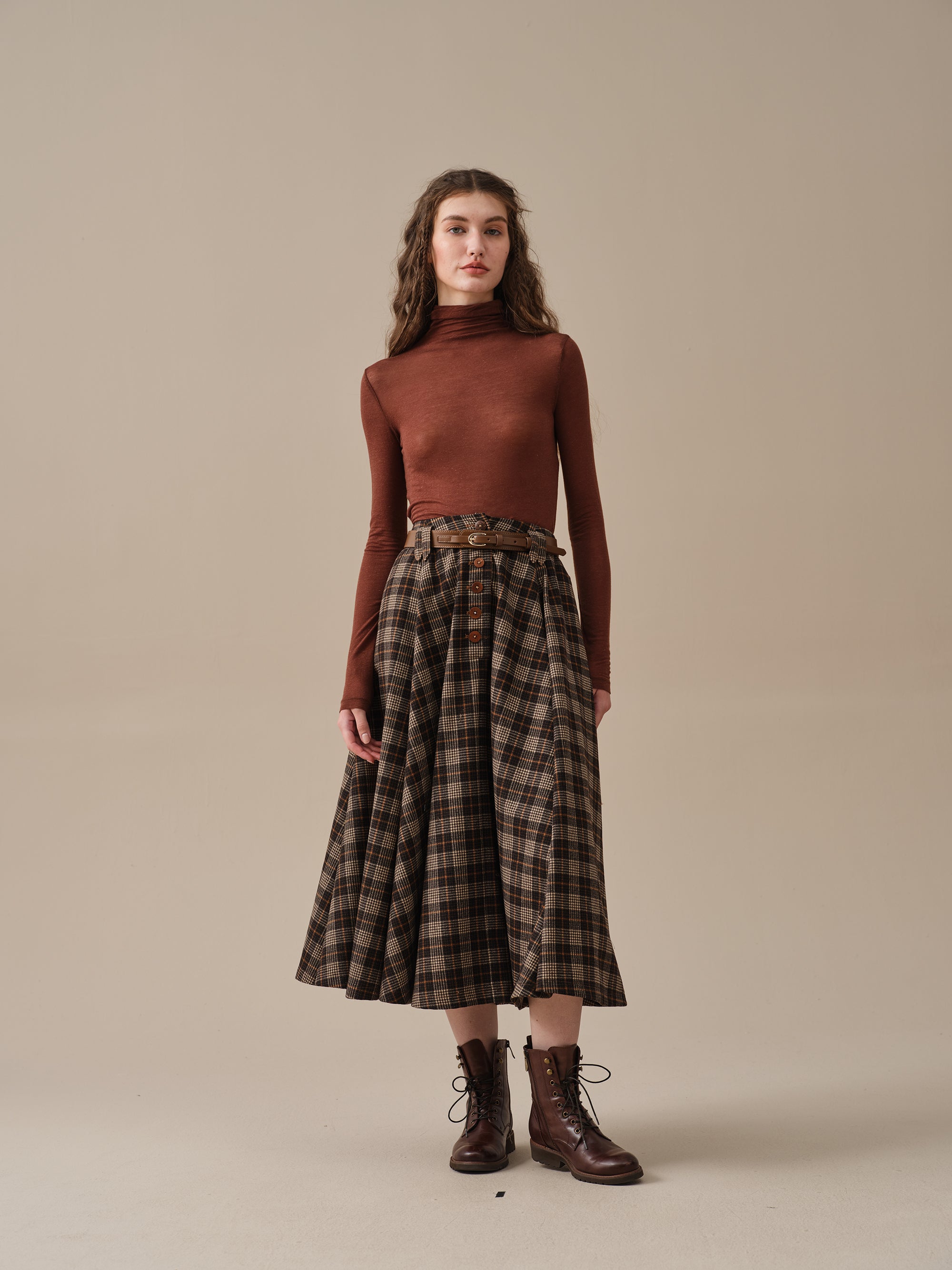 Indulge in the exquisiteness of this skirt. Its soft wool fabric ensures that you can move with ease and confidence, empowering you to conquer the day with grace and poise.