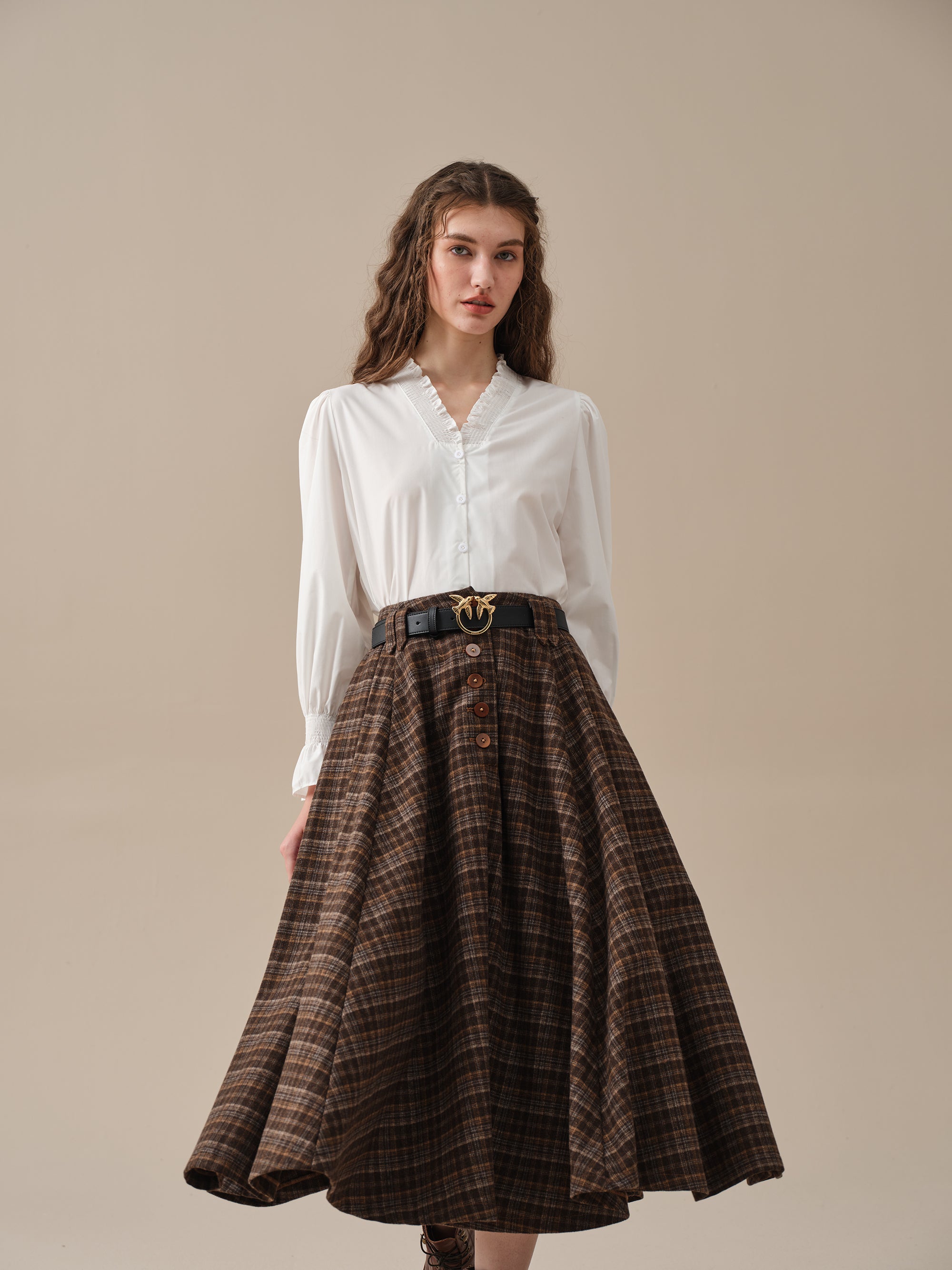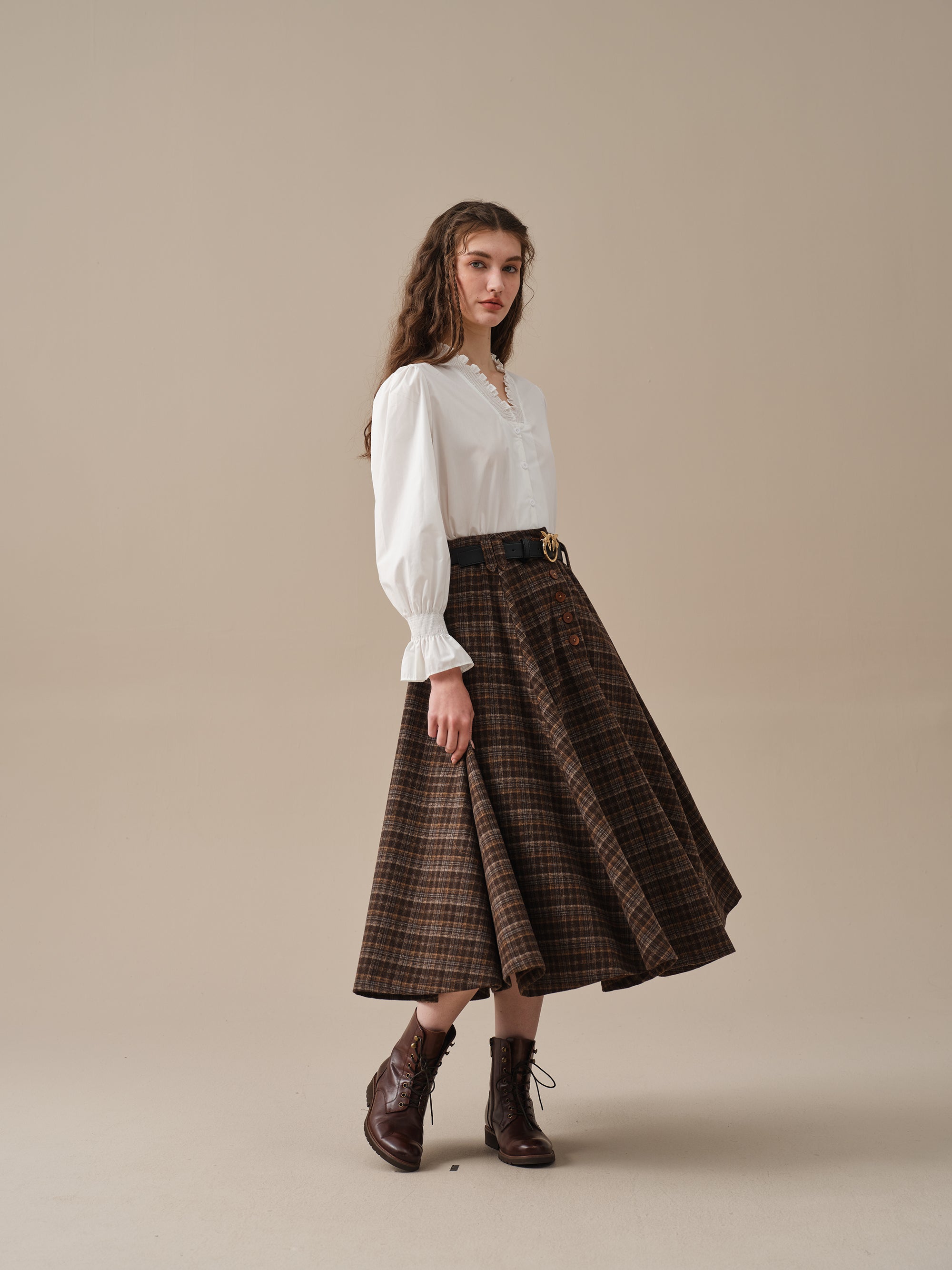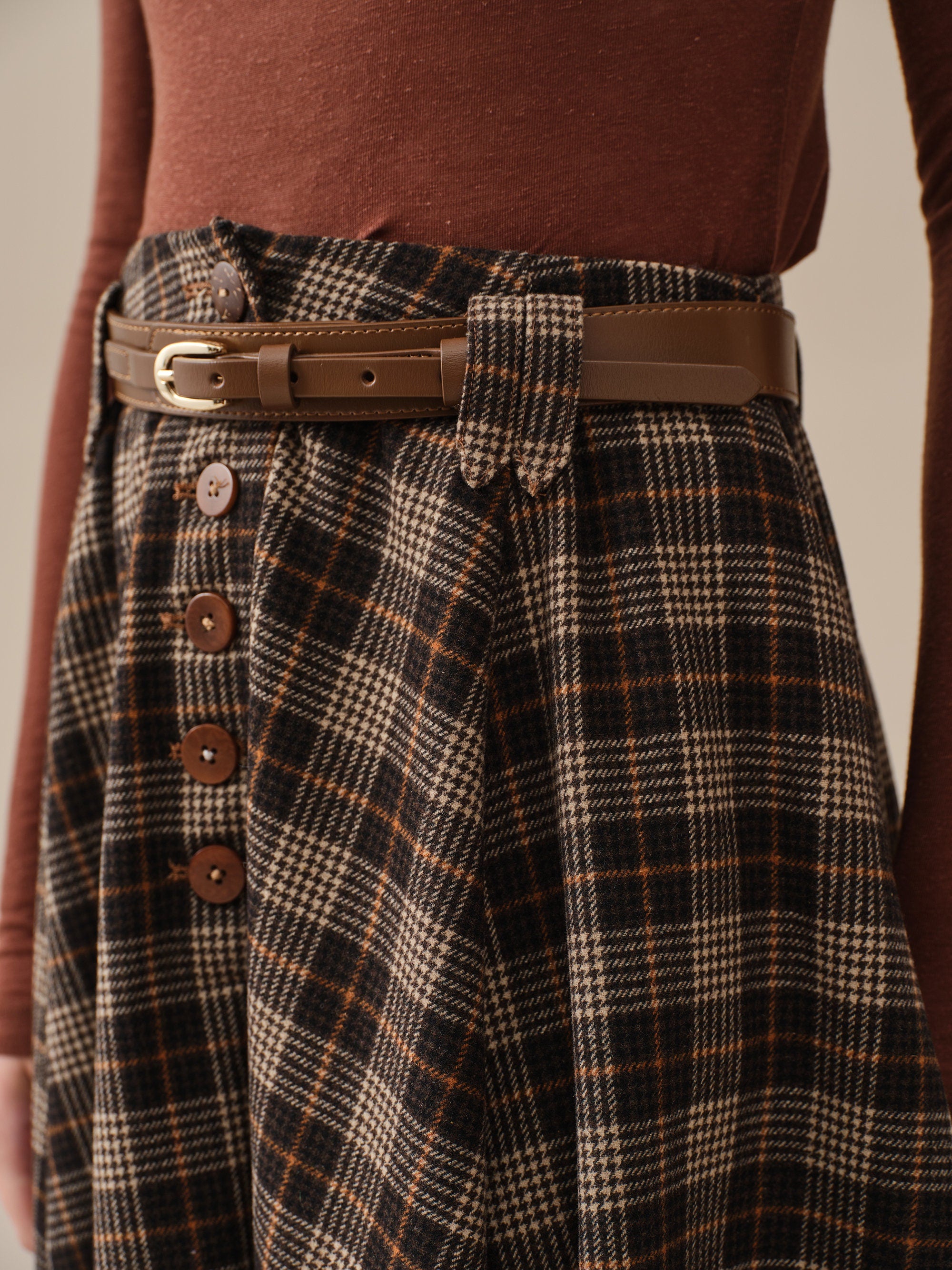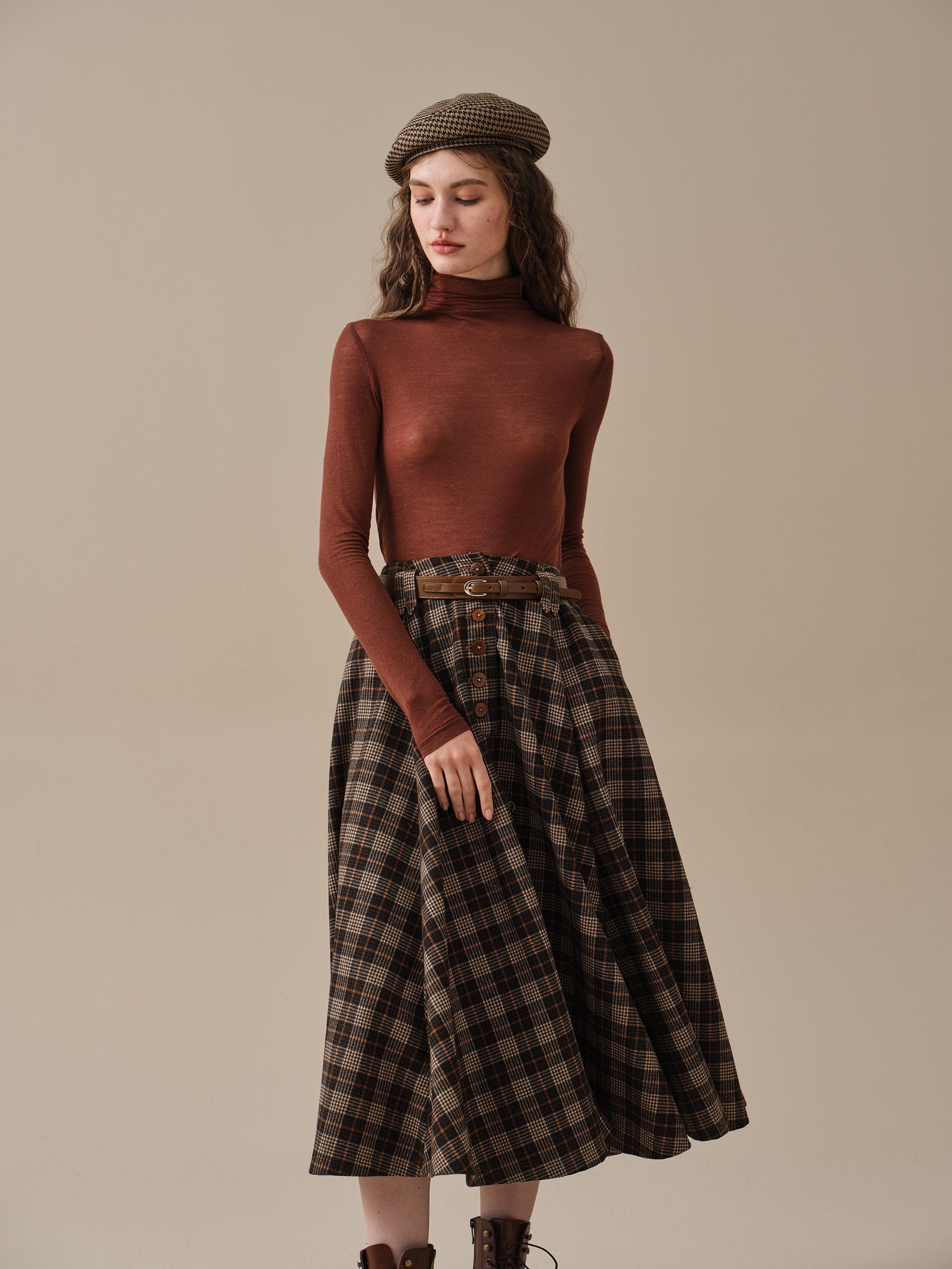 Indulge in the exquisiteness of this skirt. Its soft wool fabric ensures that you can move with ease and confidence, empowering you to conquer the day with grace and poise.