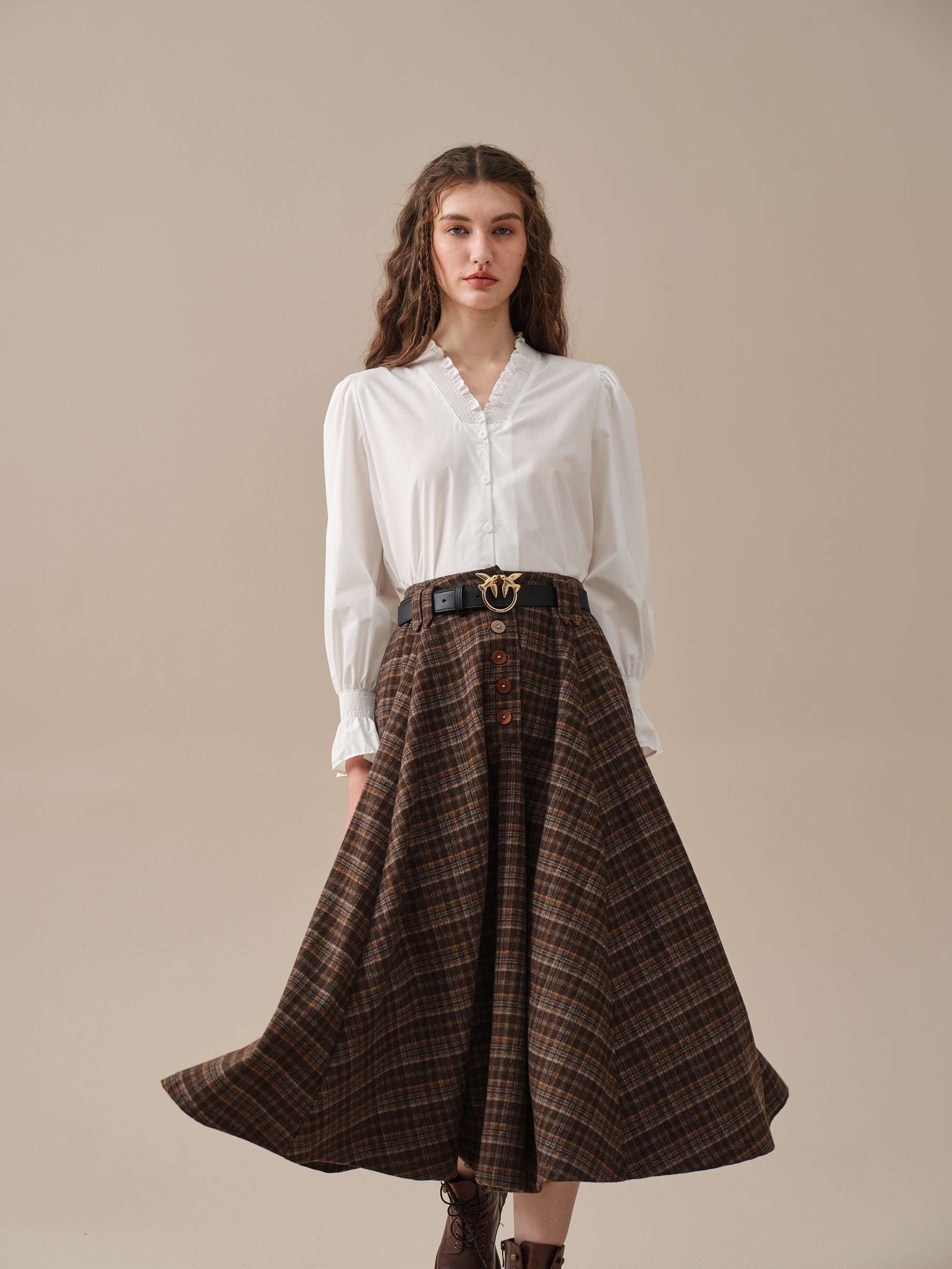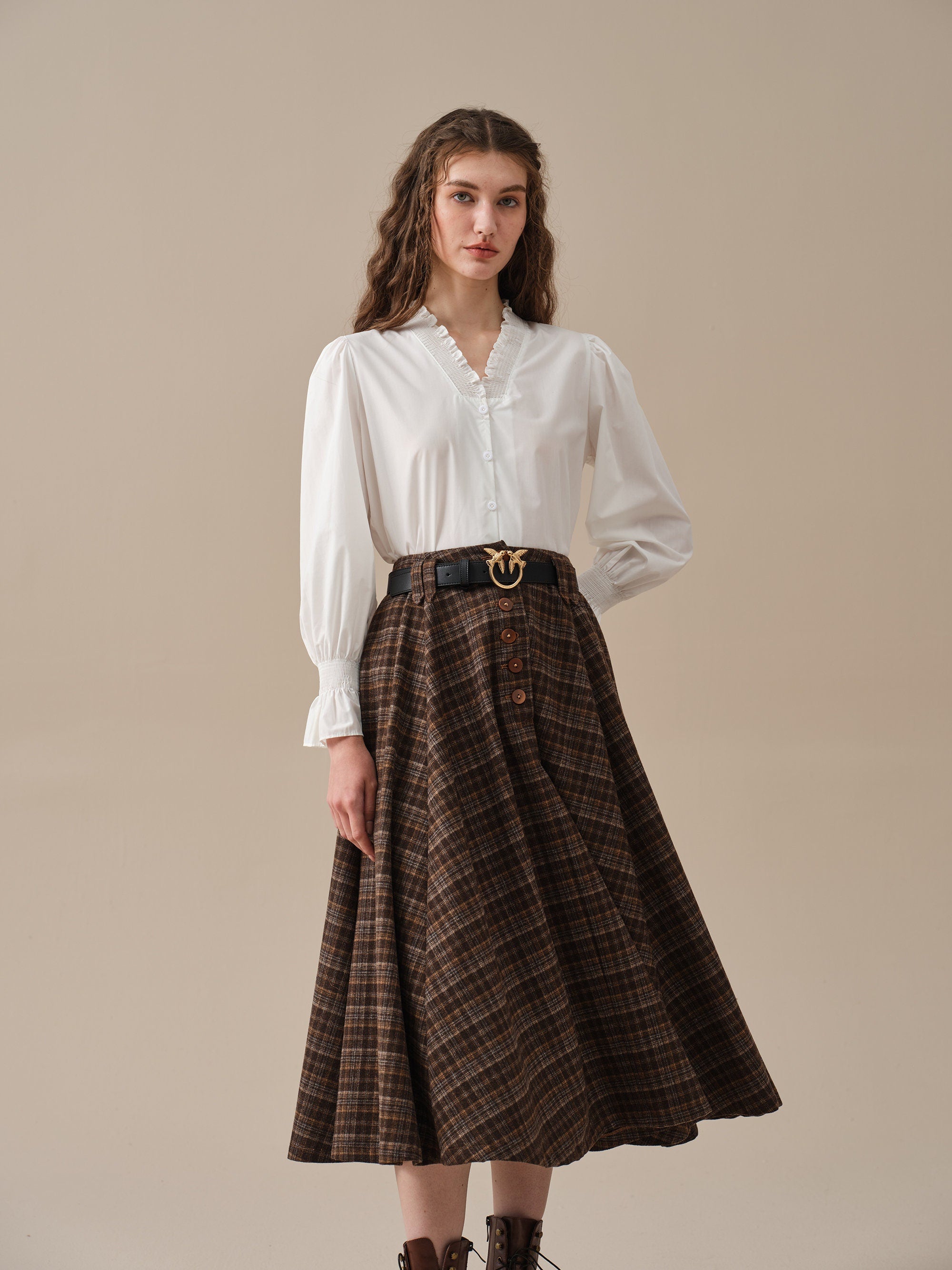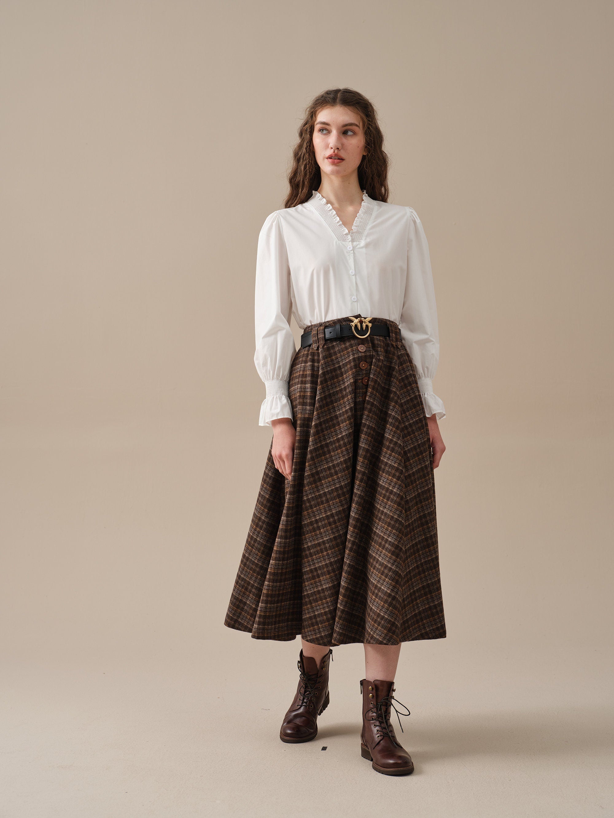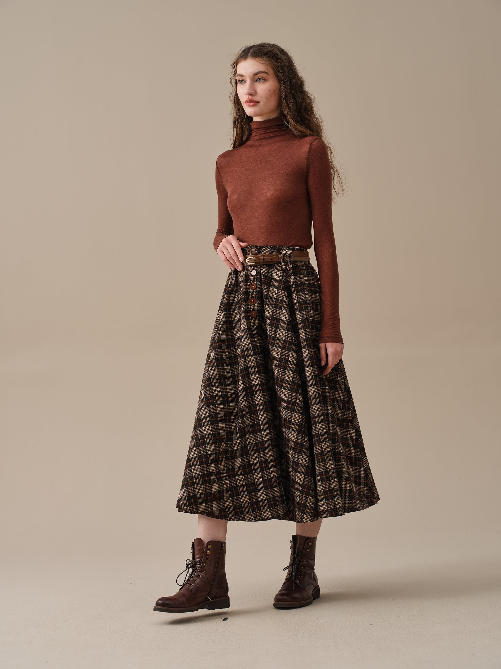 Indulge in the exquisiteness of this skirt. Its soft wool fabric ensures that you can move with ease and confidence, empowering you to conquer the day with grace and poise.