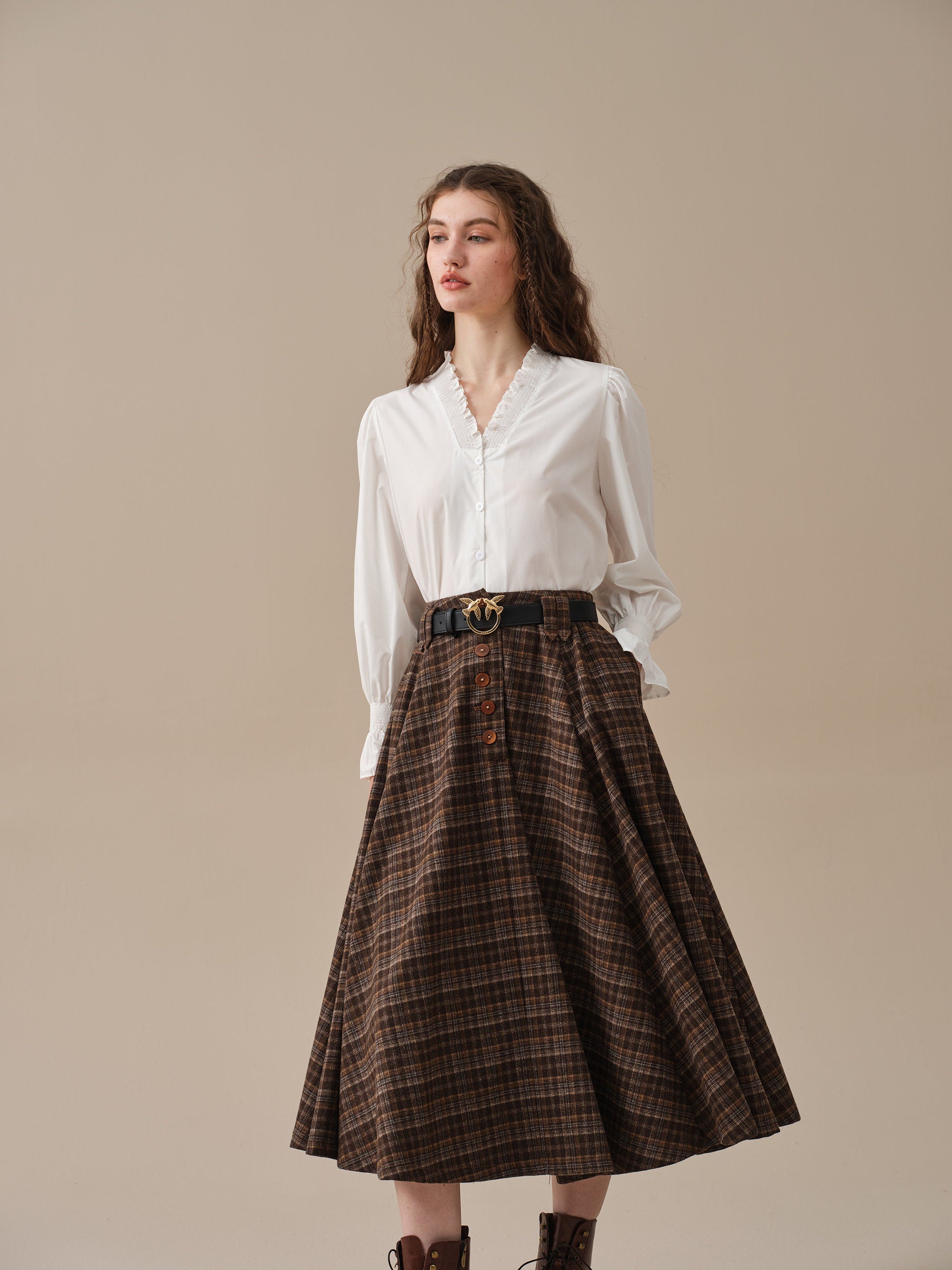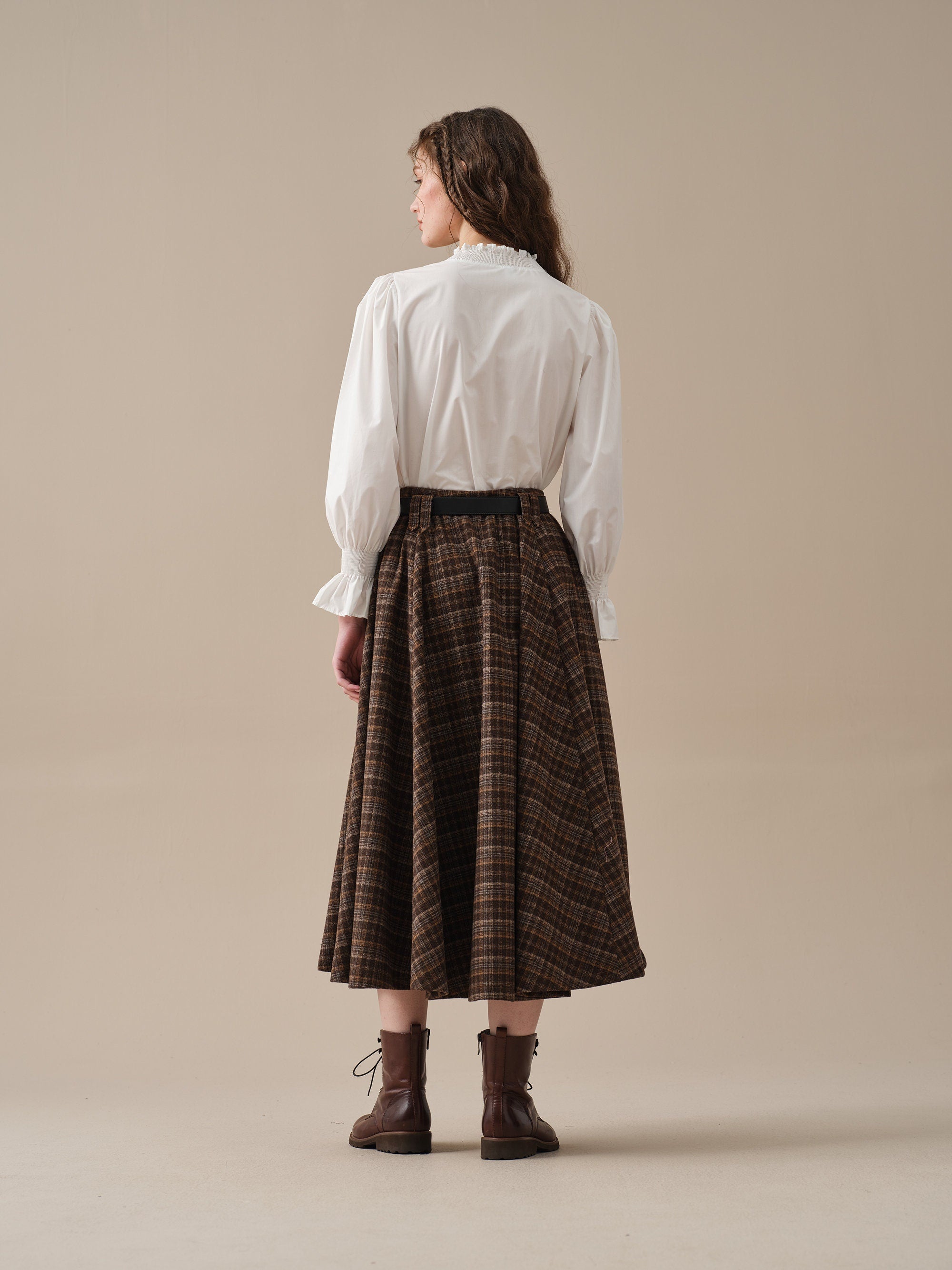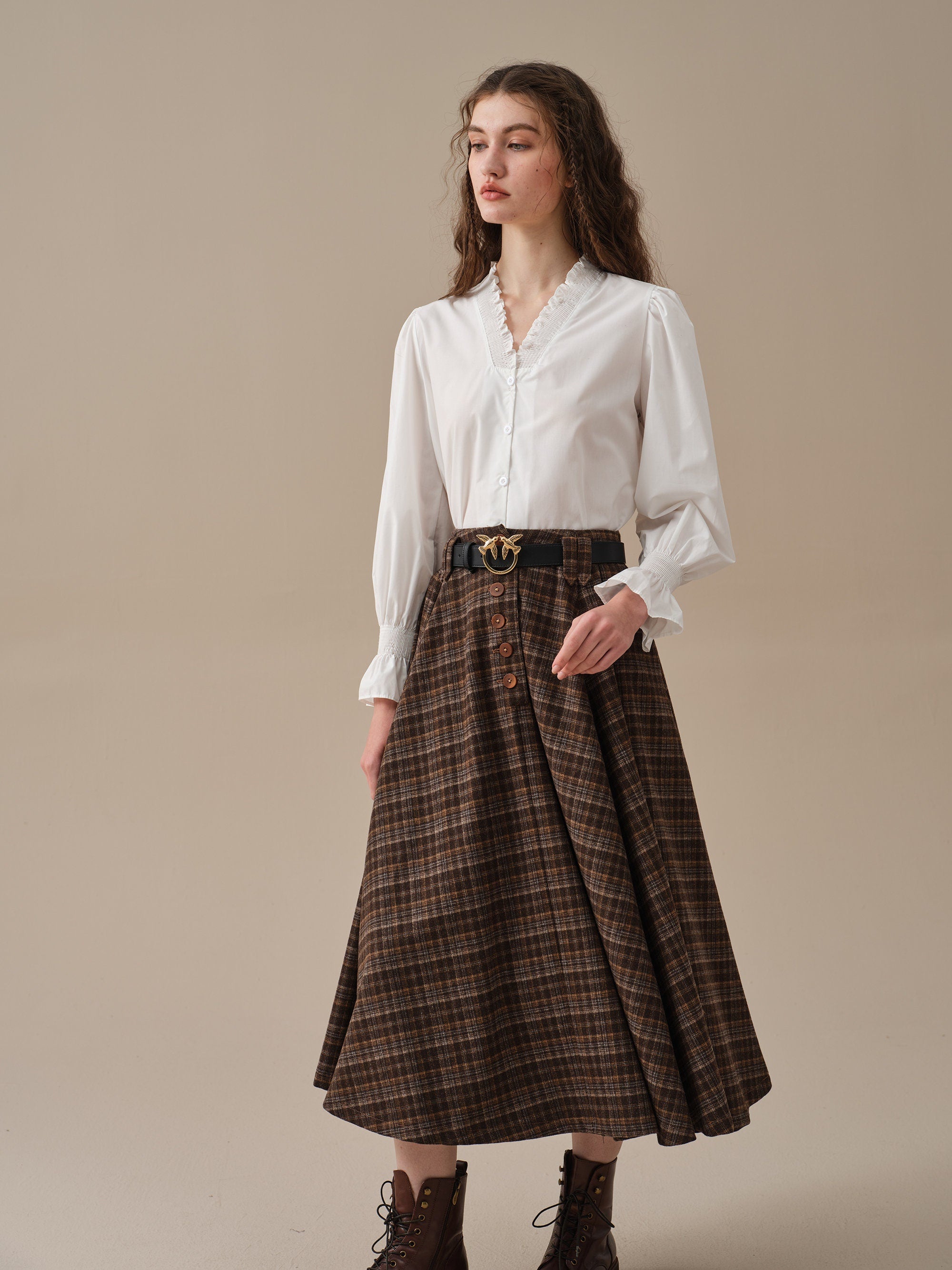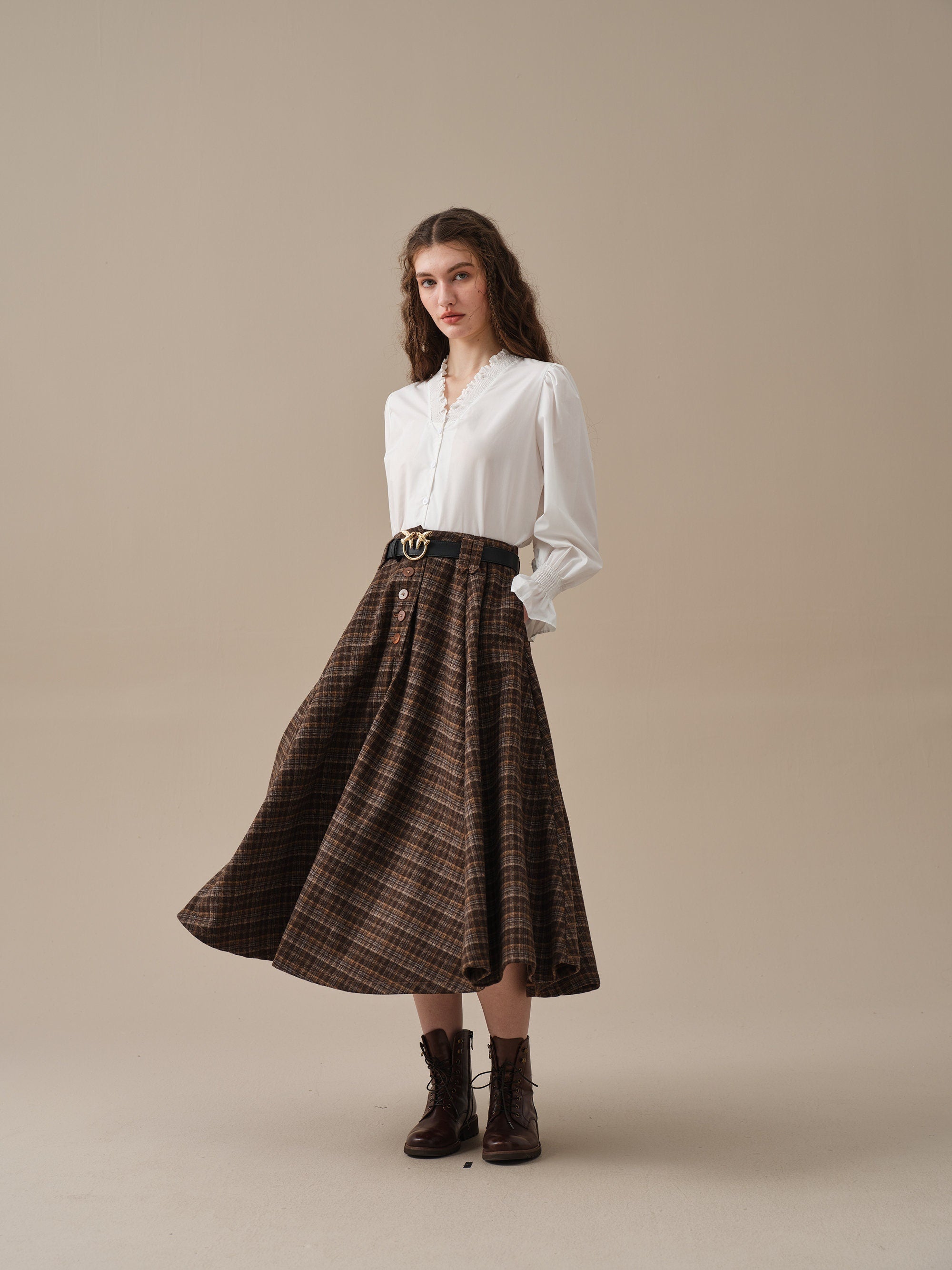 Indulge in the exquisiteness of this skirt. Its soft wool fabric ensures that you can move with ease and confidence, empowering you to conquer the day with grace and poise.