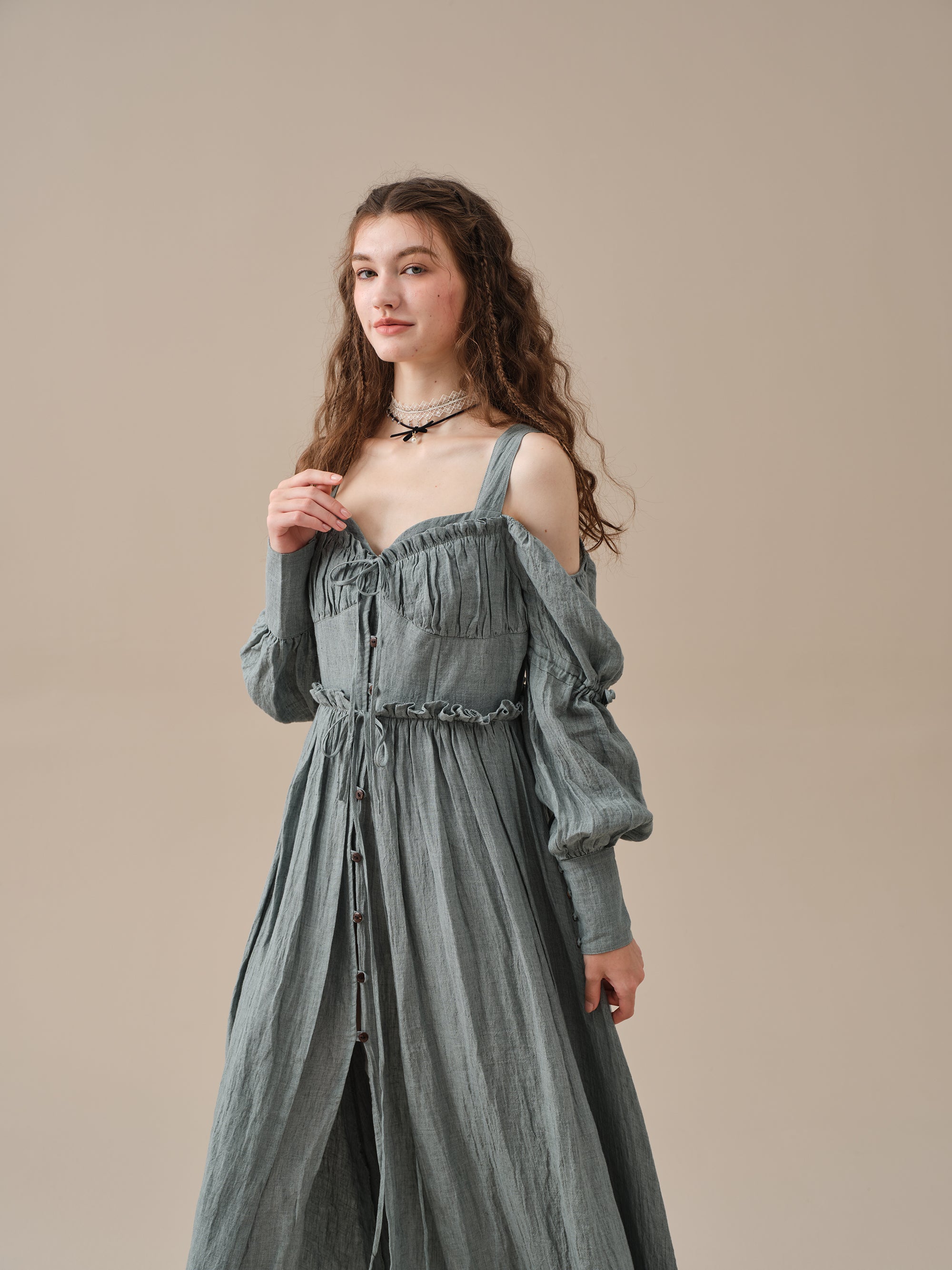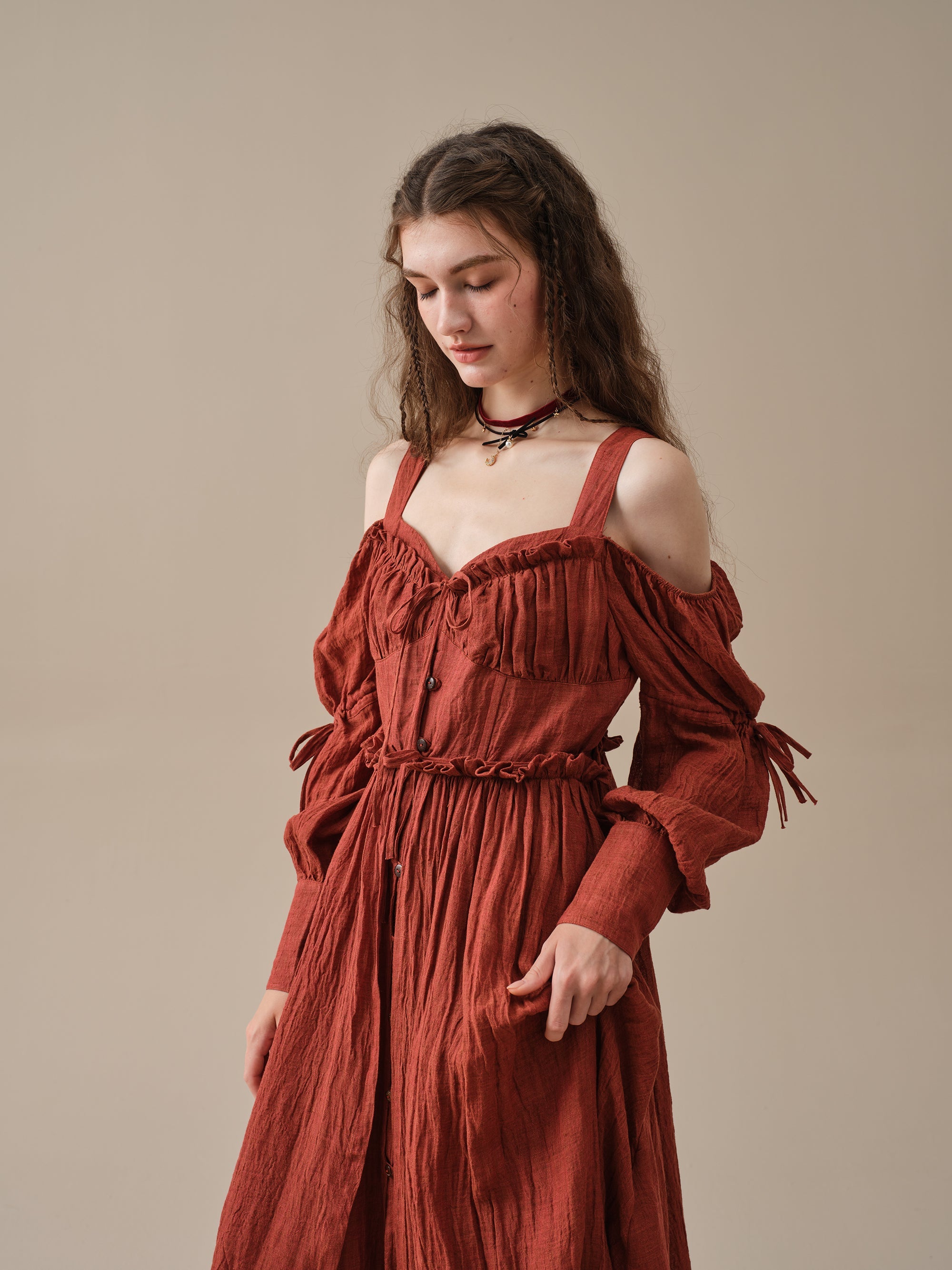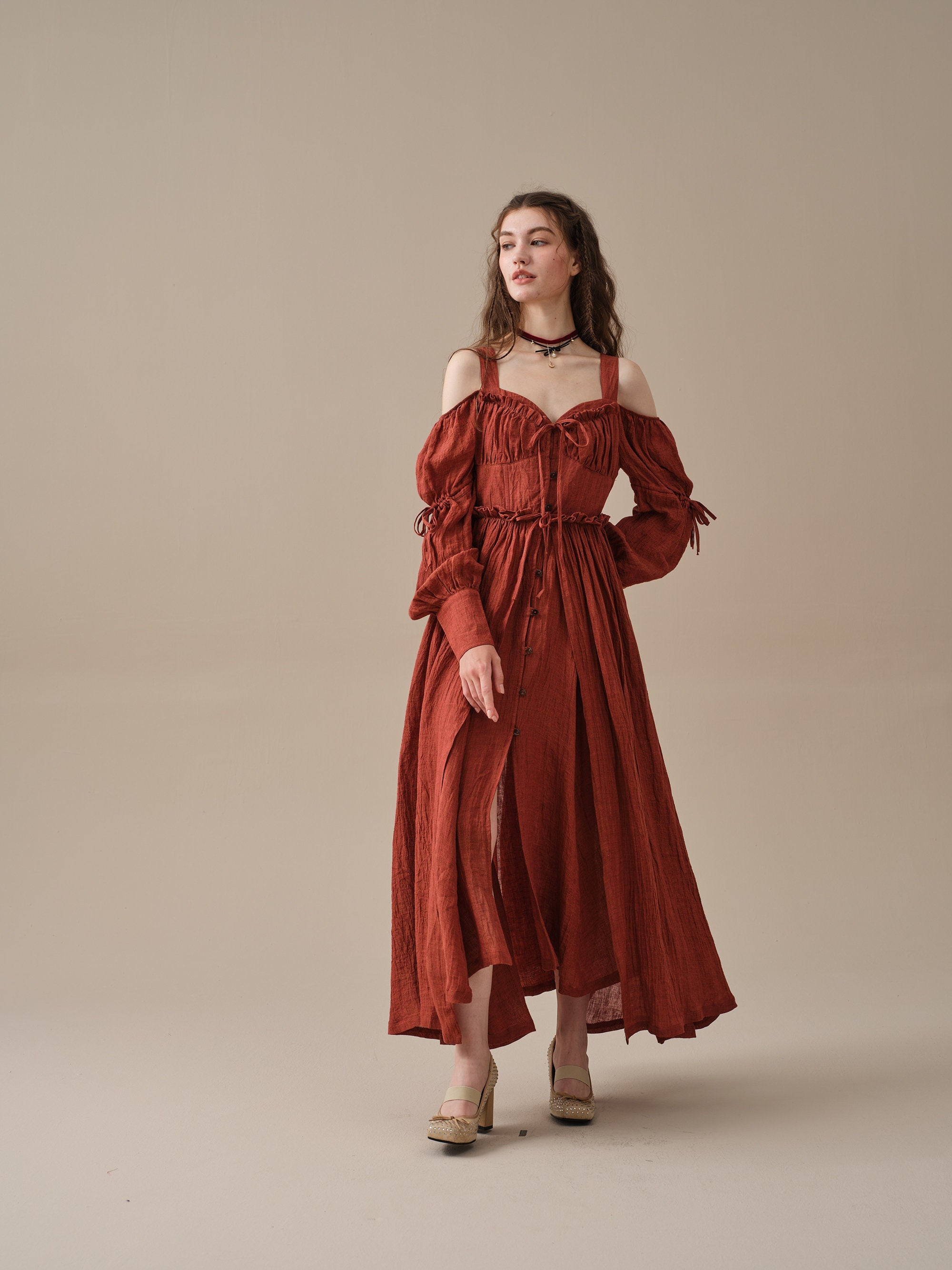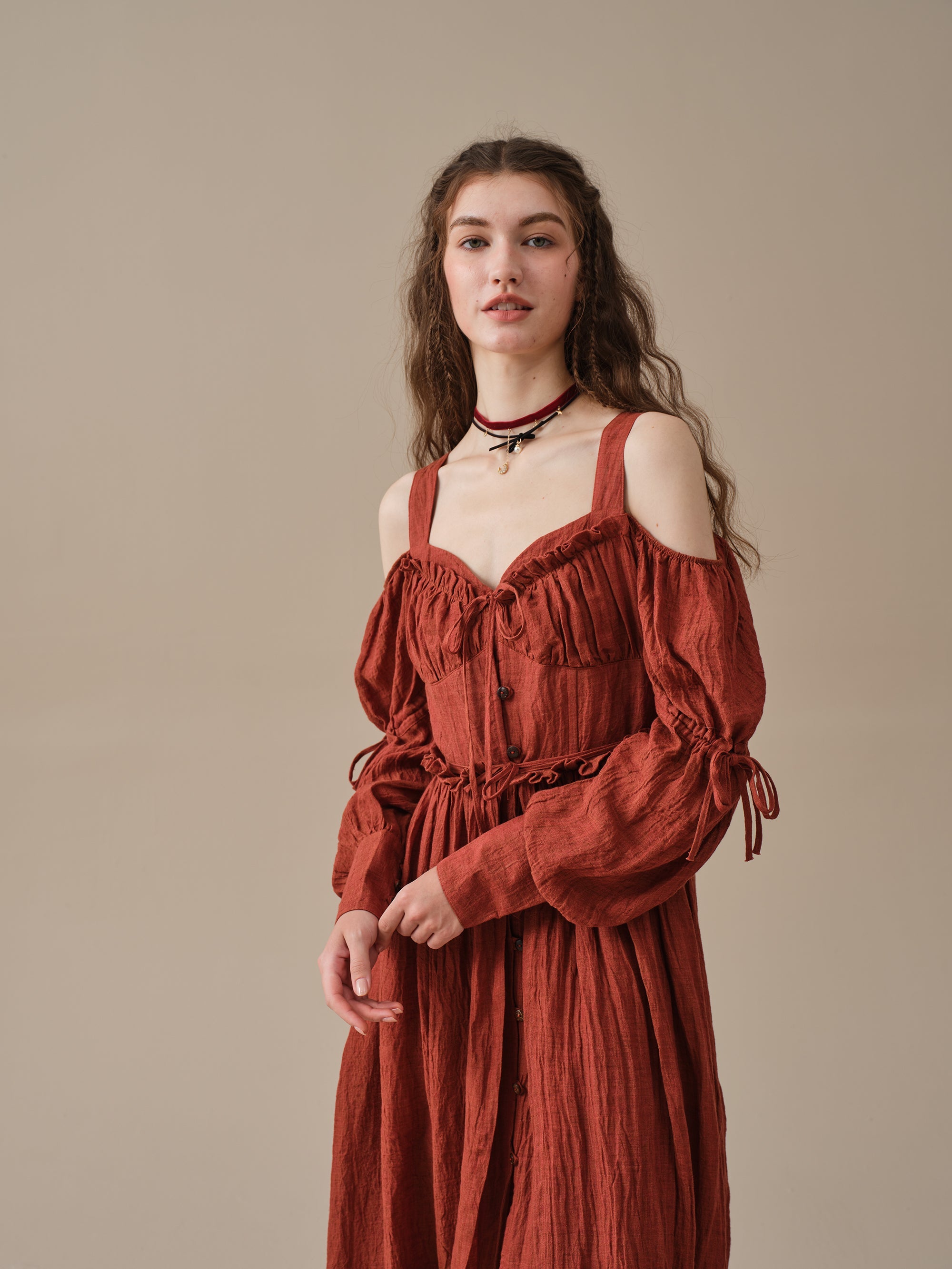 It's detailed with delicate ruffles, feminine silhouette and soft hues, perfect for whimsical and romantic looks. Eye-catching details such as cold-shoulder design, sweet sweetheart neckline,layered design, pleated details, front button fastening, lace-up details and charming puff sleeves, it exudes femininity at any time.