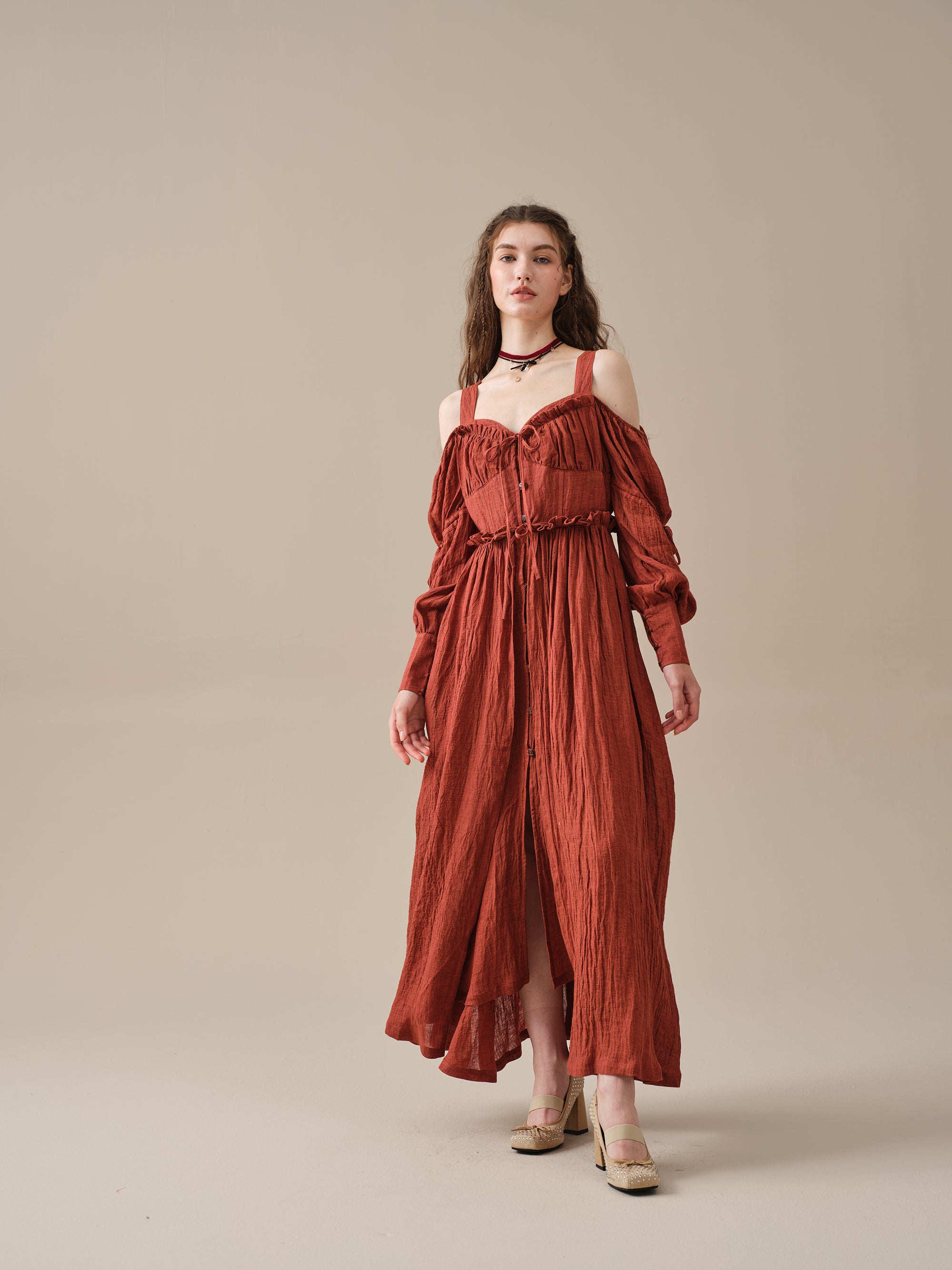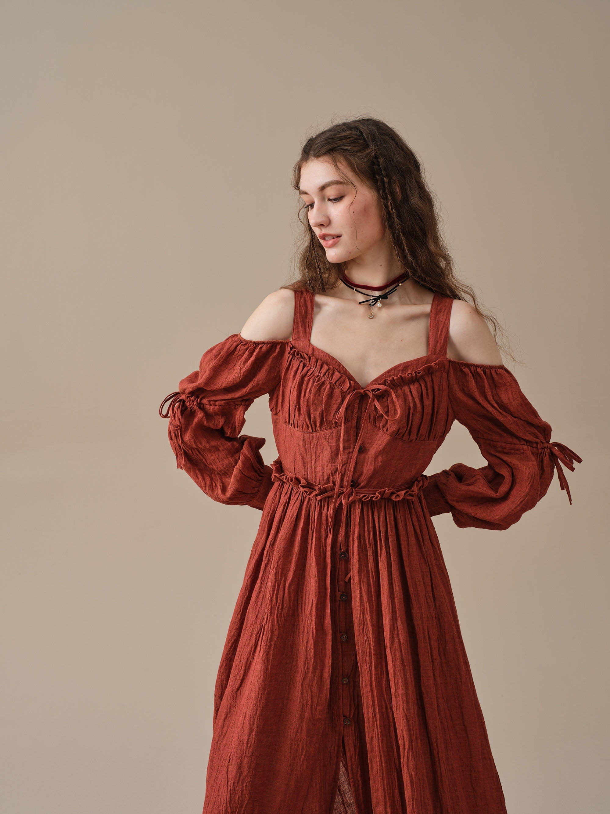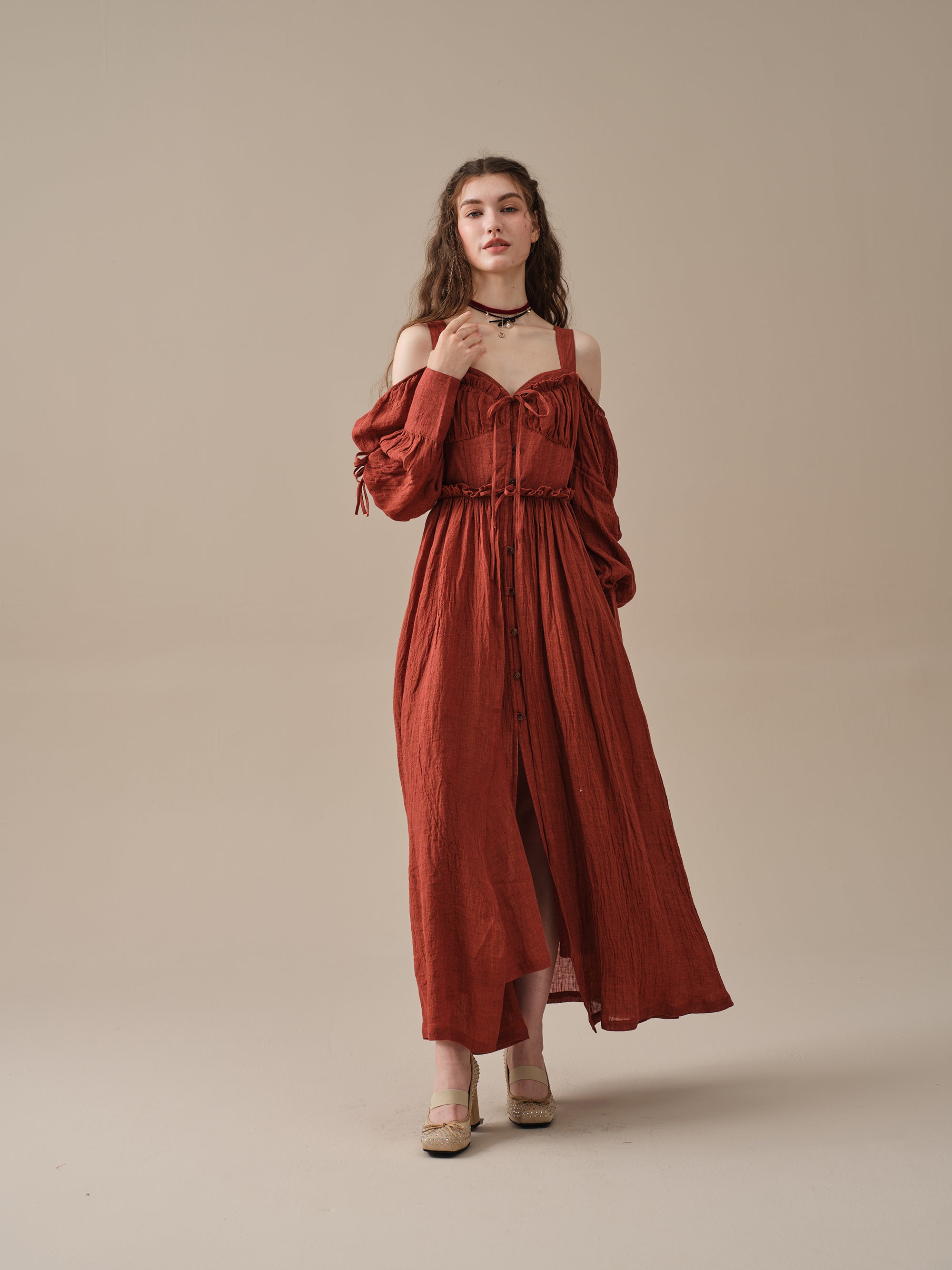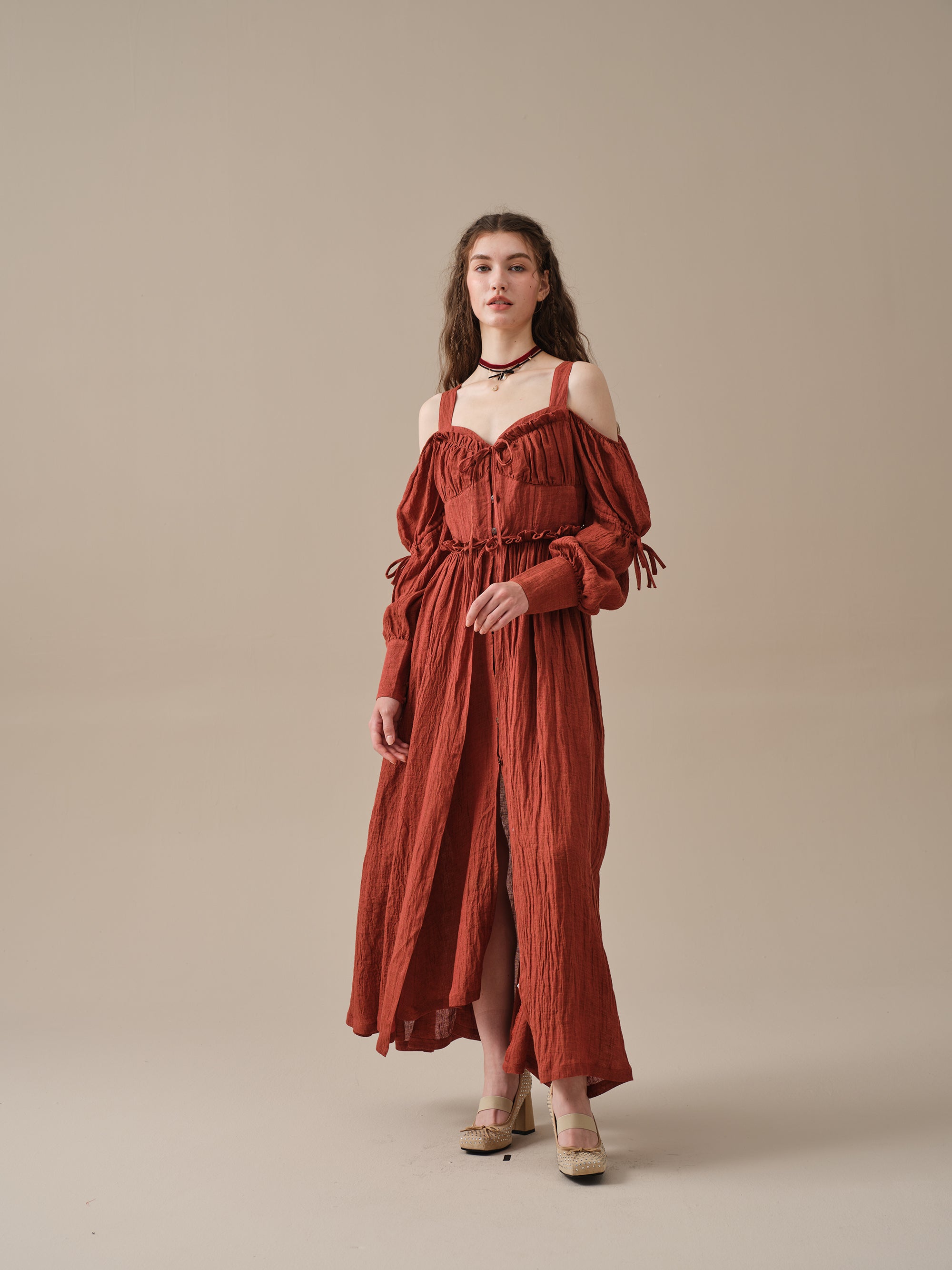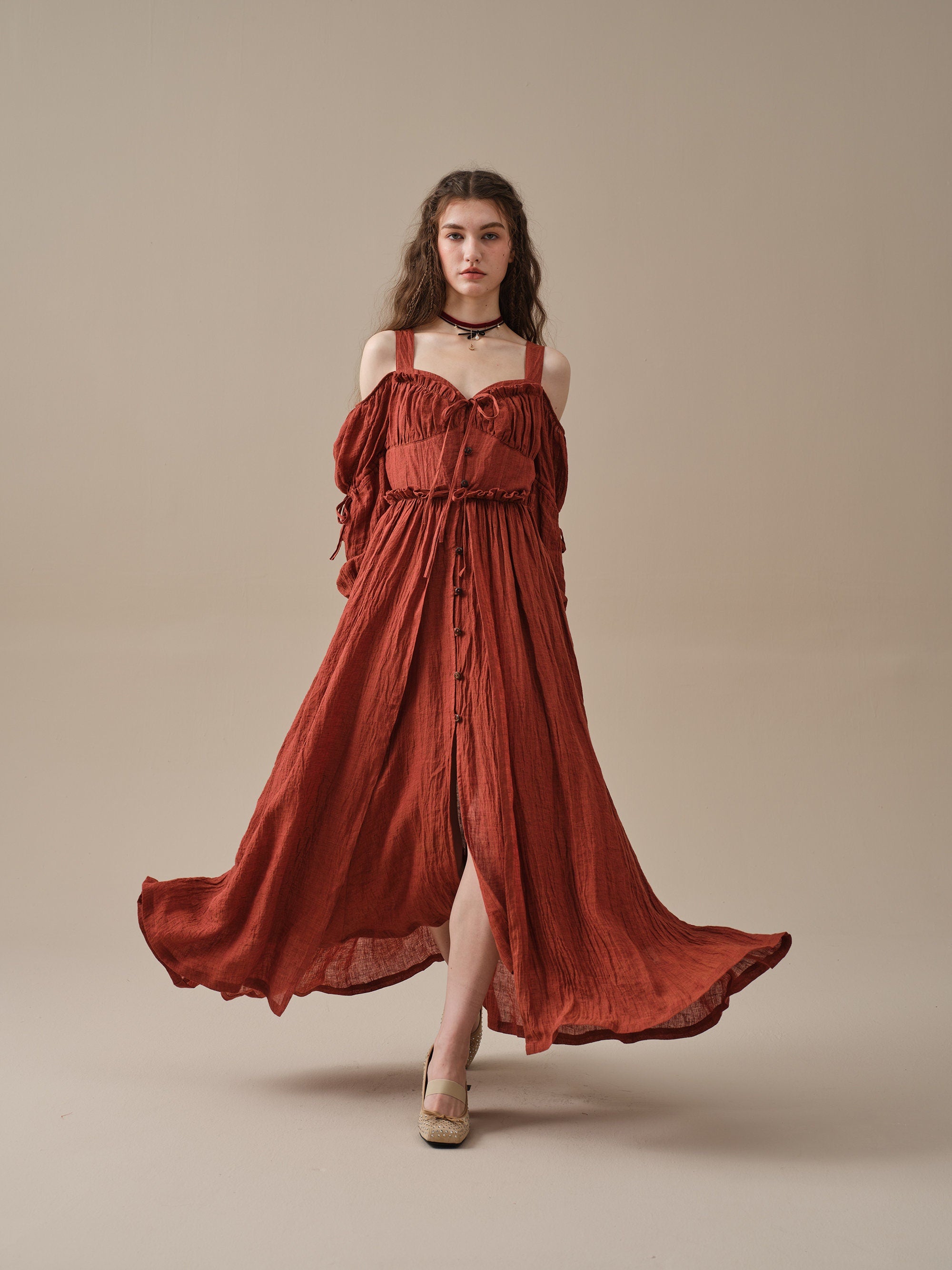 It's detailed with delicate ruffles, feminine silhouette and soft hues, perfect for whimsical and romantic looks. Eye-catching details such as cold-shoulder design, sweet sweetheart neckline,layered design, pleated details, front button fastening, lace-up details and charming puff sleeves, it exudes femininity at any time.