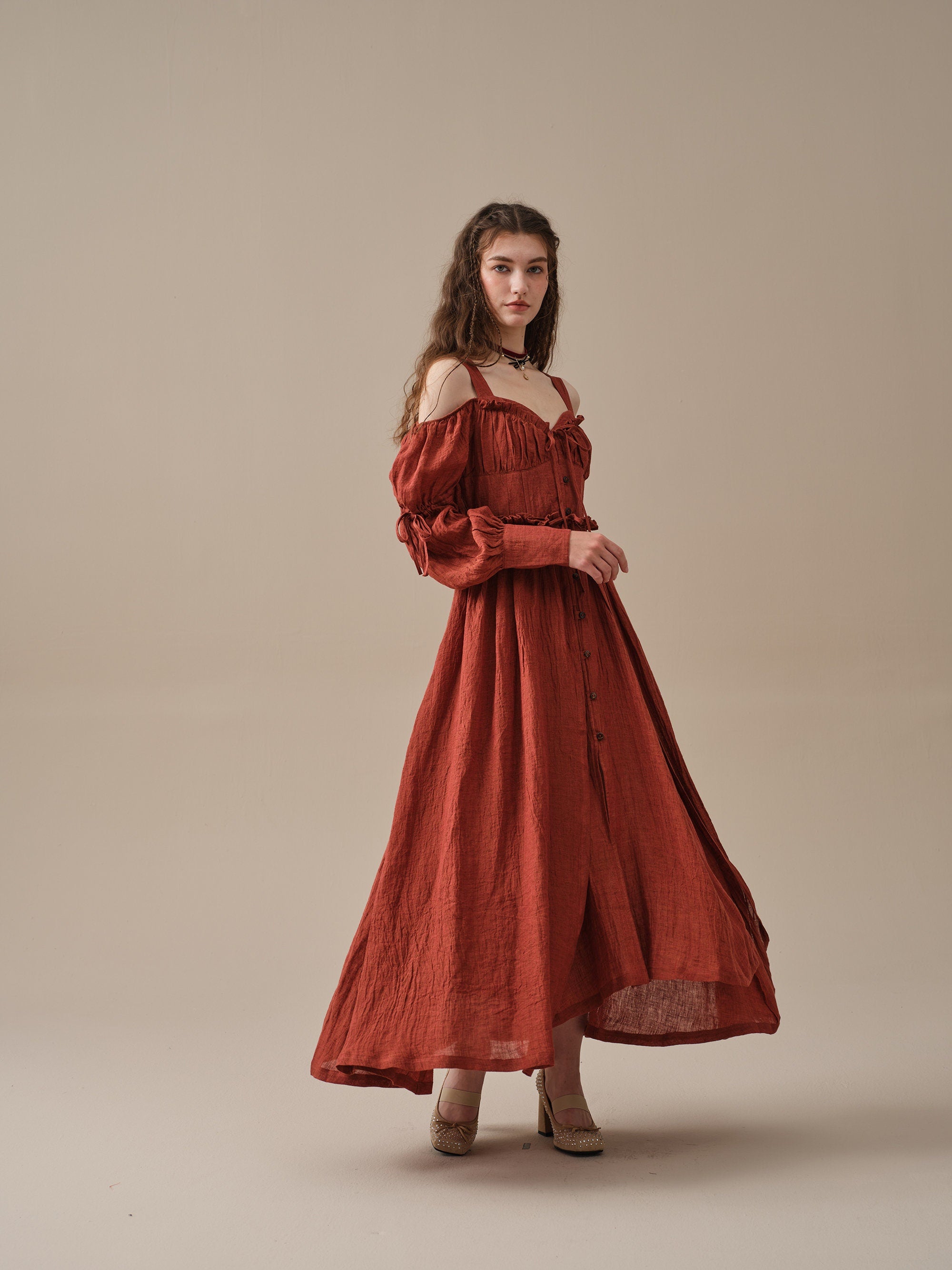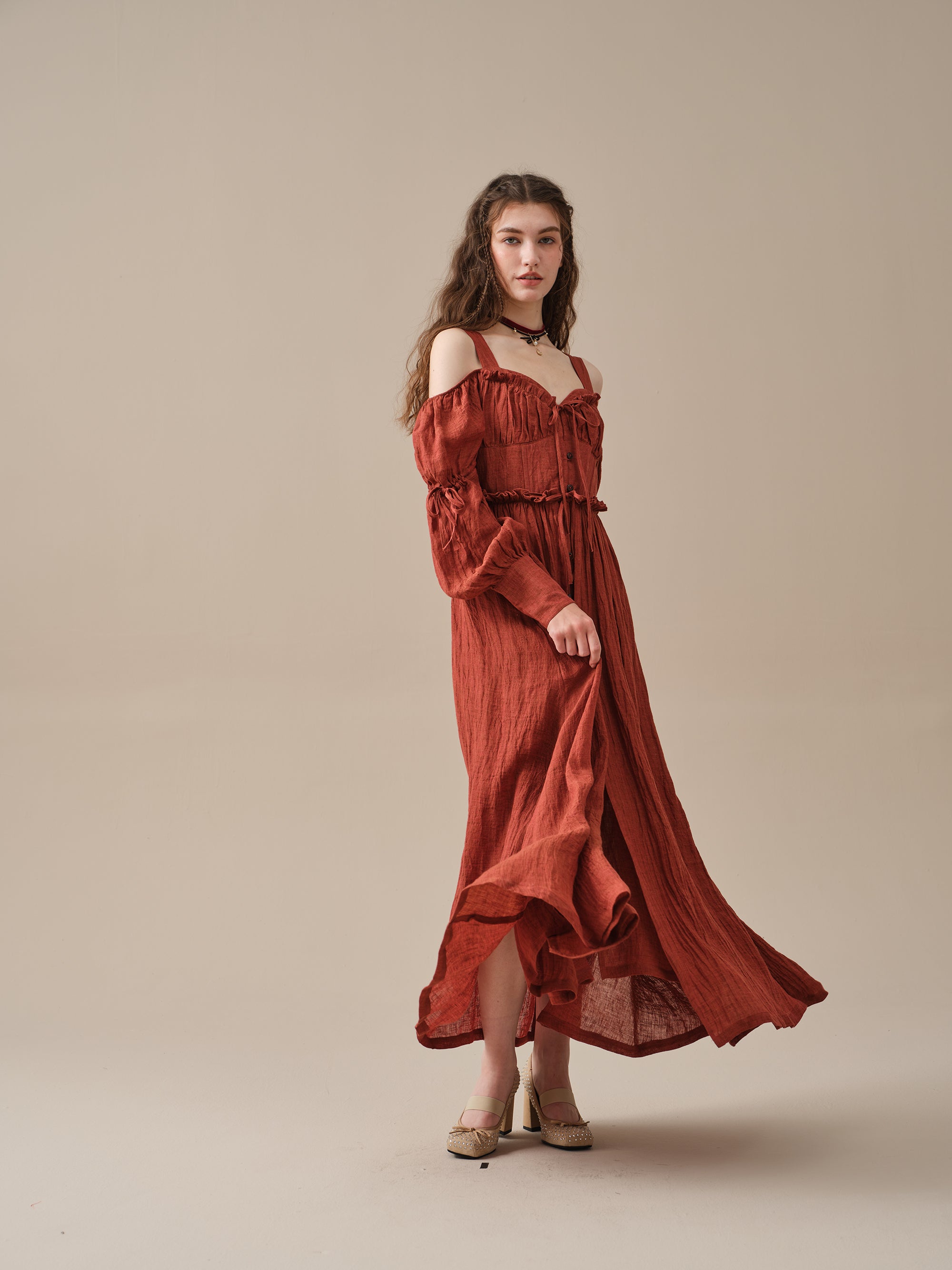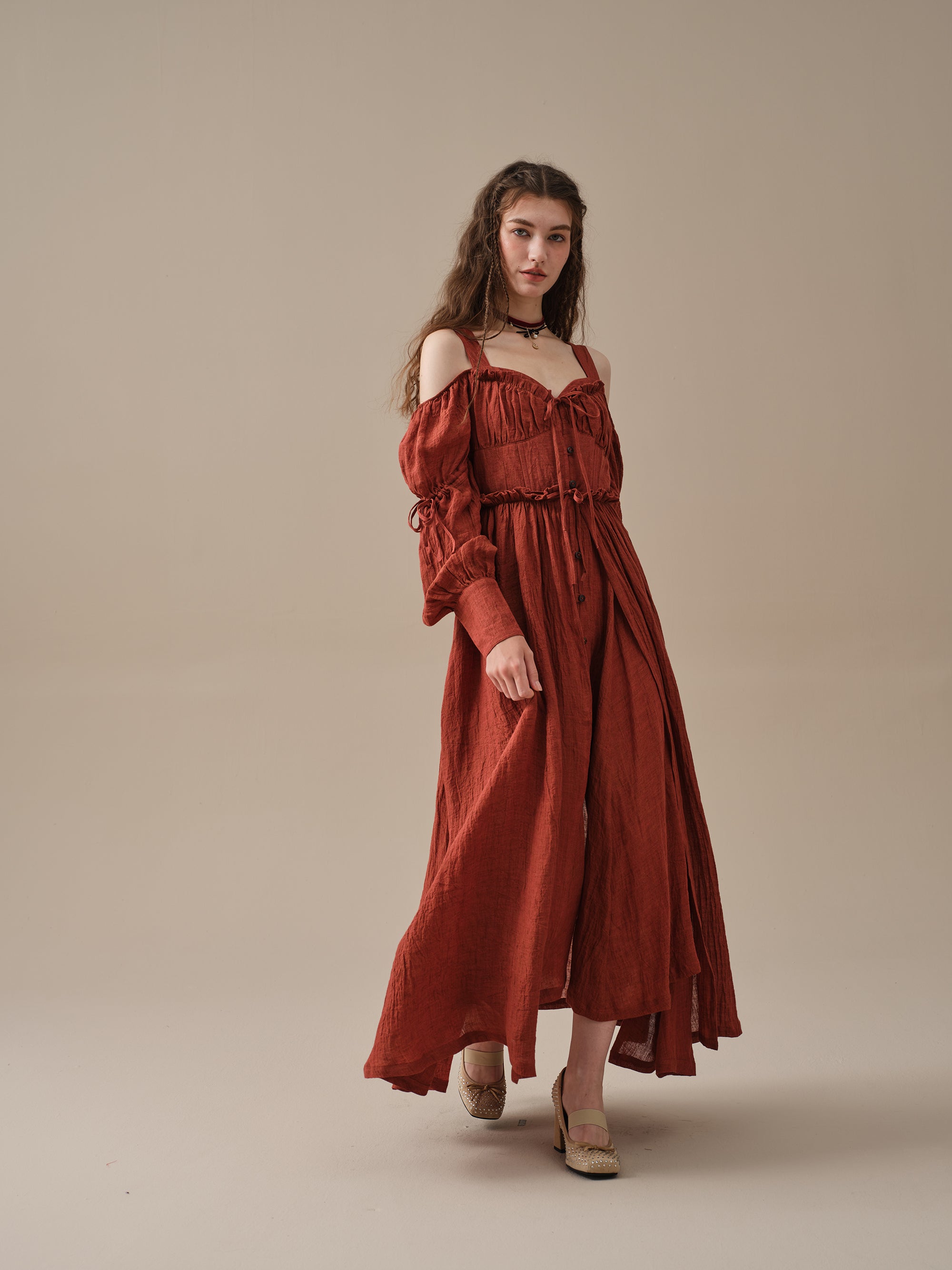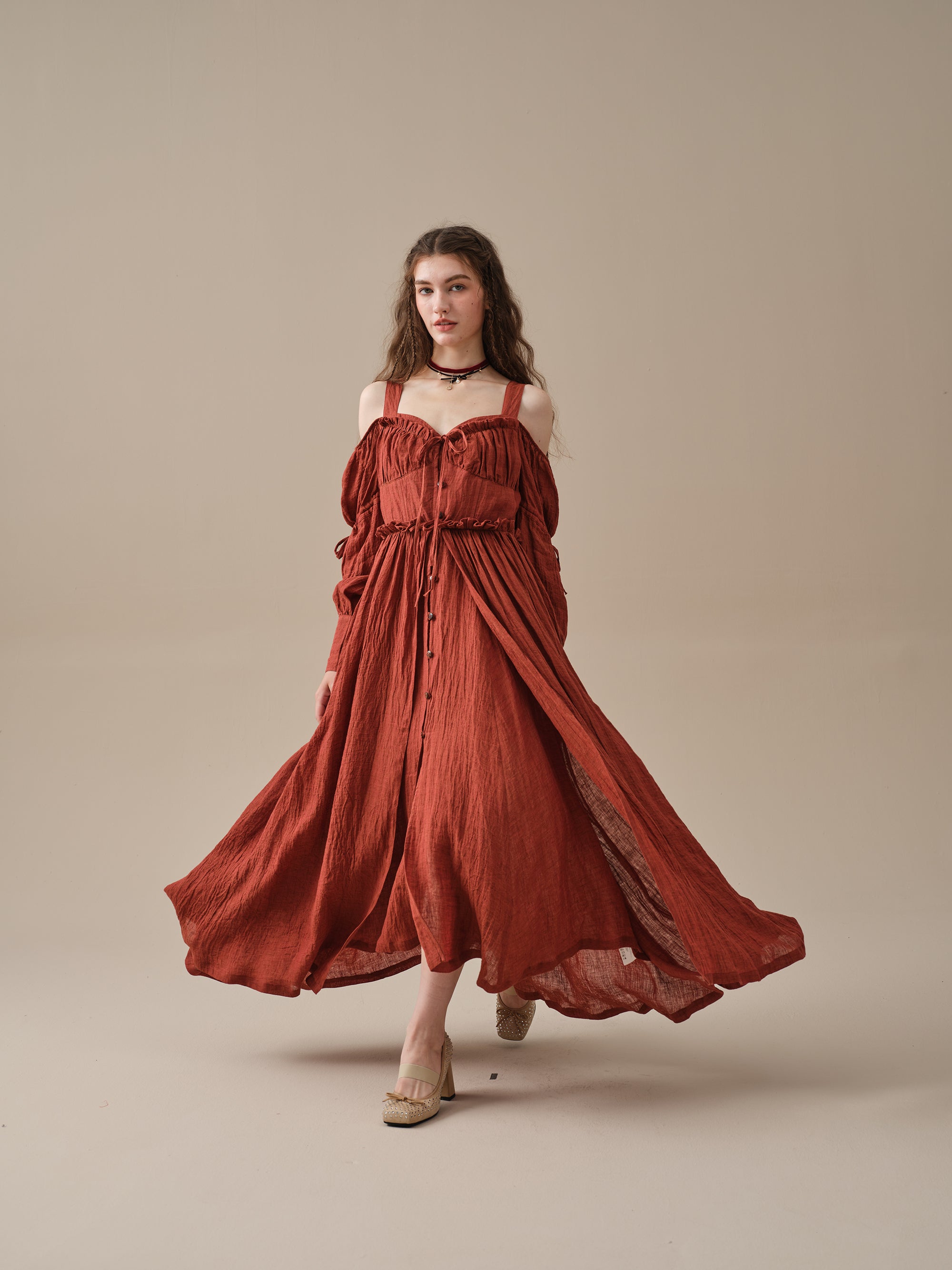 It's detailed with delicate ruffles, feminine silhouette and soft hues, perfect for whimsical and romantic looks. Eye-catching details such as cold-shoulder design, sweet sweetheart neckline,layered design, pleated details, front button fastening, lace-up details and charming puff sleeves, it exudes femininity at any time.