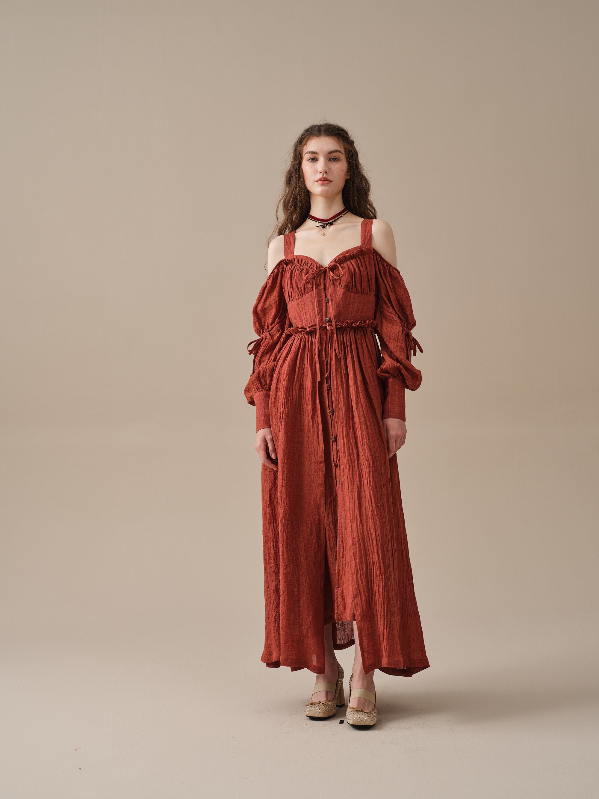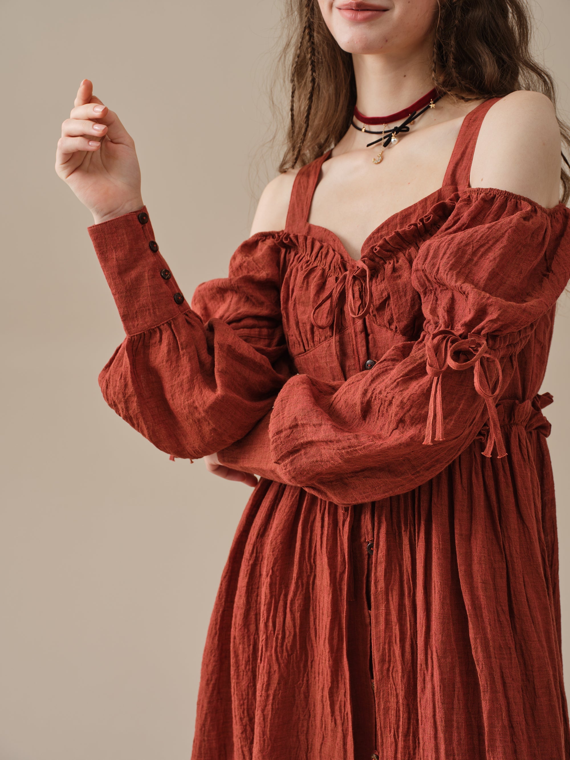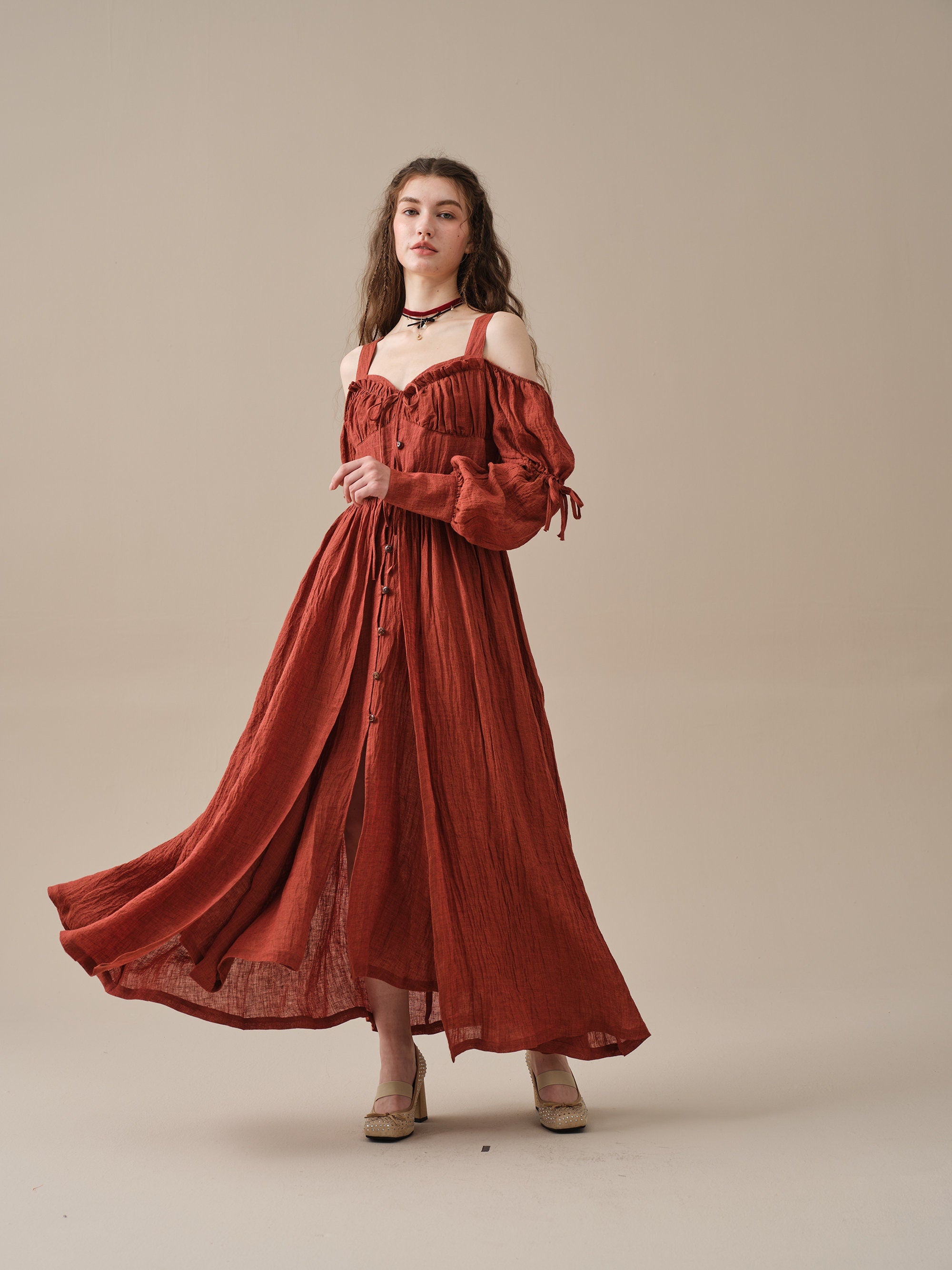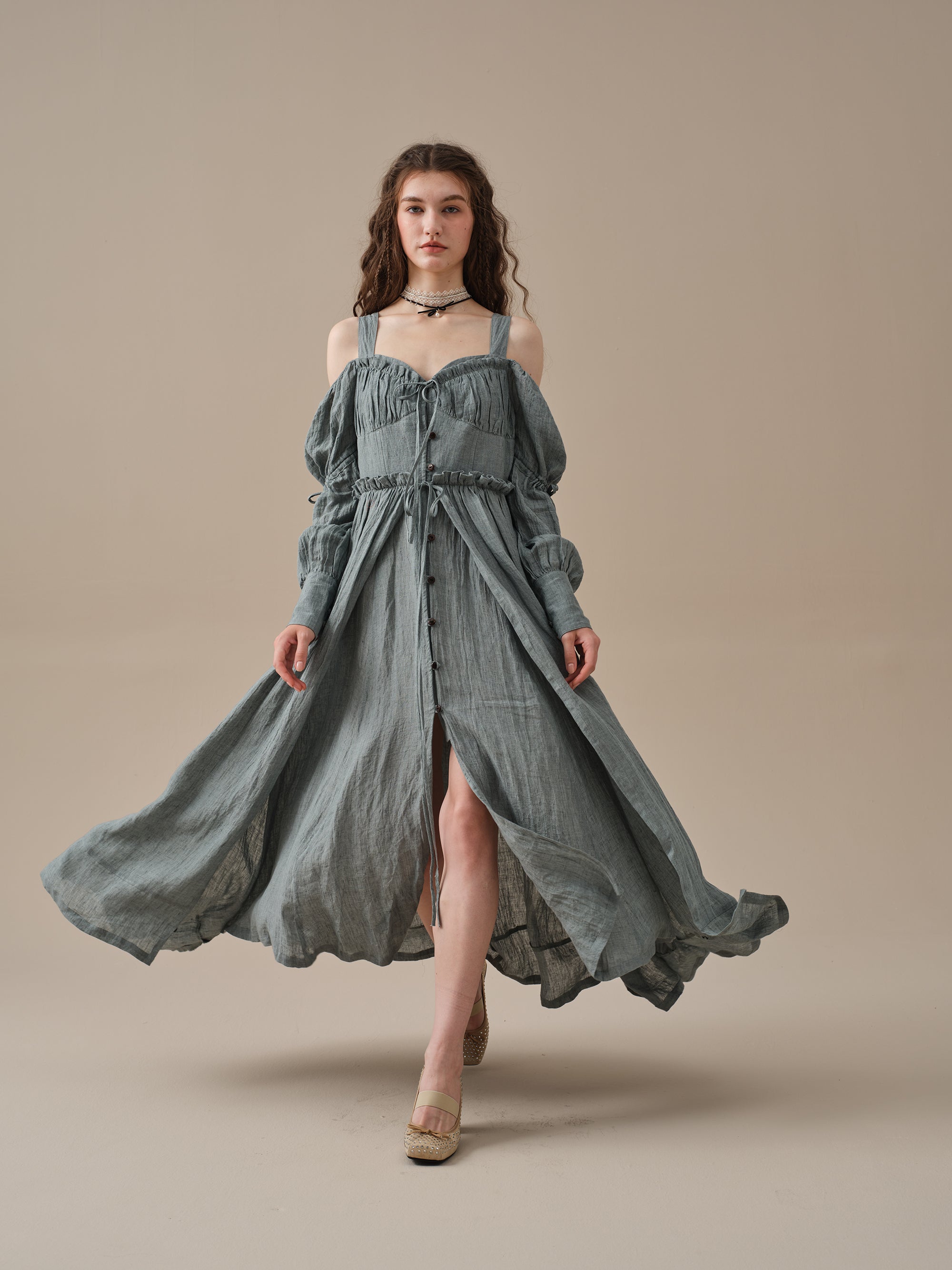 It's detailed with delicate ruffles, feminine silhouette and soft hues, perfect for whimsical and romantic looks. Eye-catching details such as cold-shoulder design, sweet sweetheart neckline,layered design, pleated details, front button fastening, lace-up details and charming puff sleeves, it exudes femininity at any time.